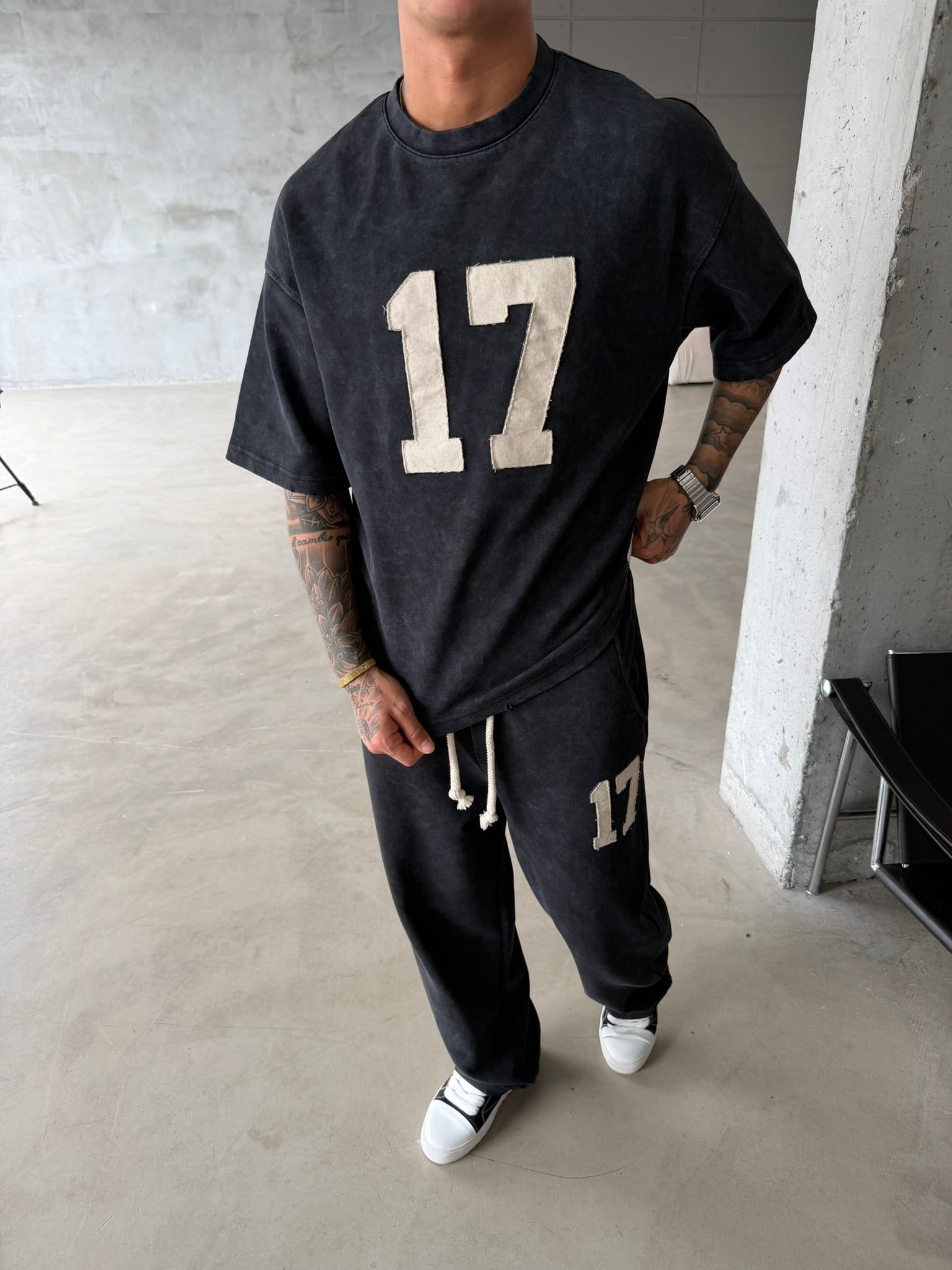 17 Premium Acid Yıkamalı Eşofman Takımı - Siyah (TKM.0001-Siyah-S)