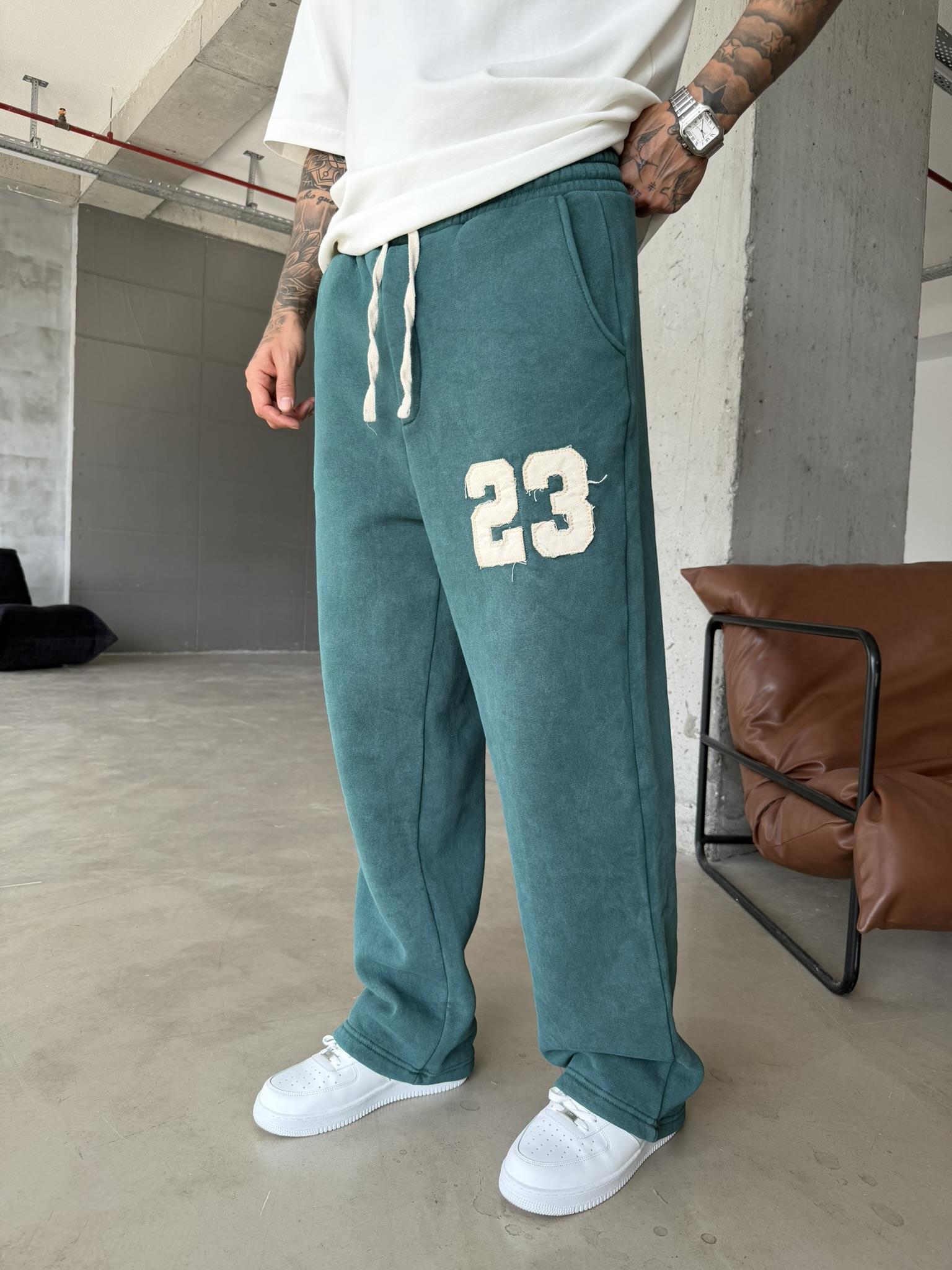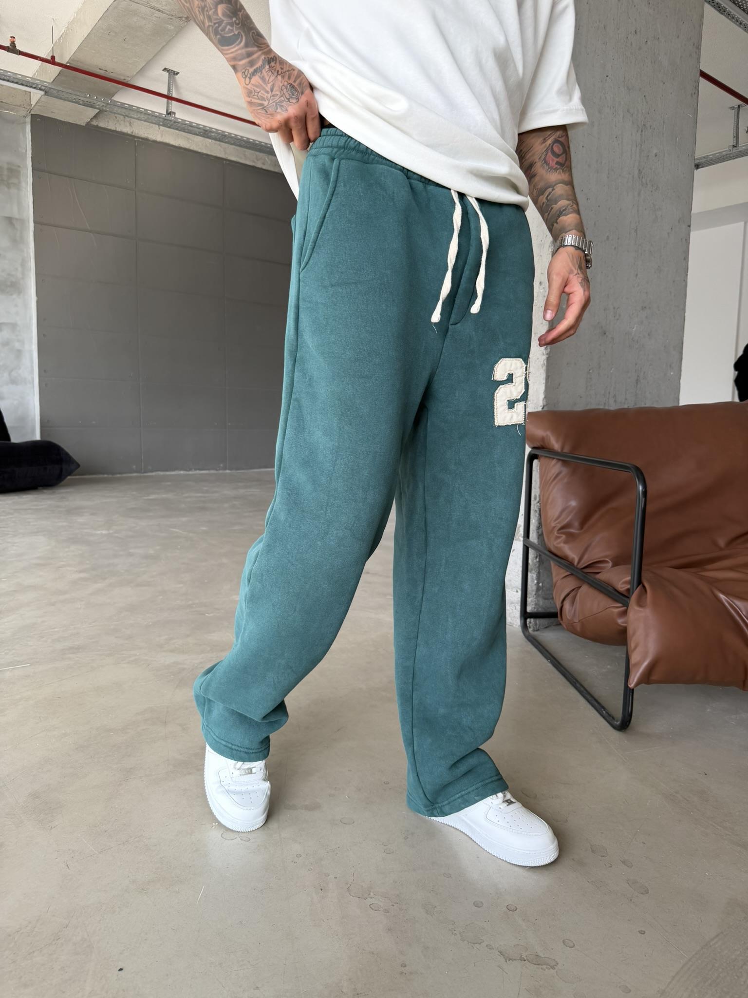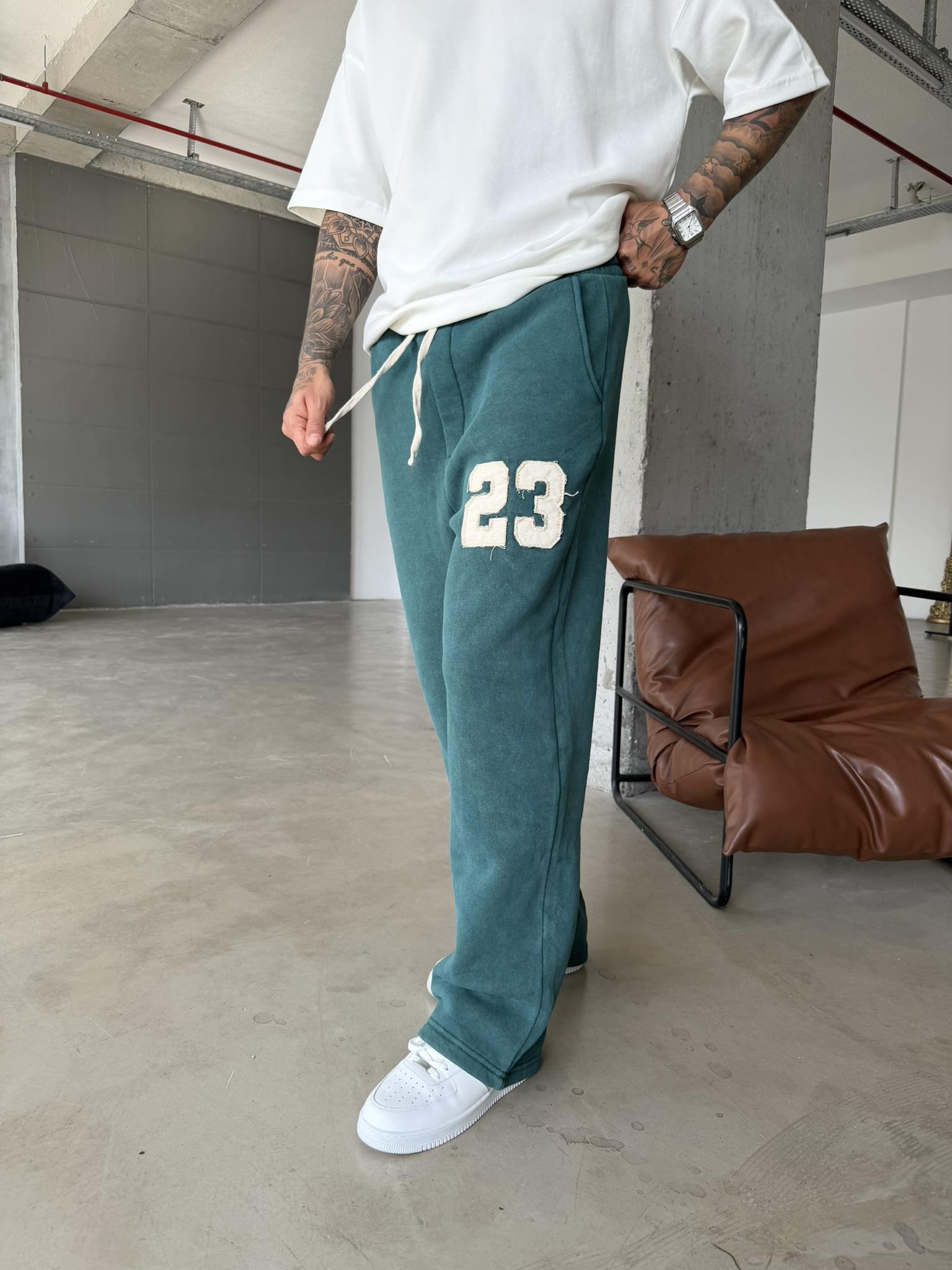 23 Patcht Yıkamalı Premium Eşofman - Yeşil (EŞF.0033-Yeşil-S)
