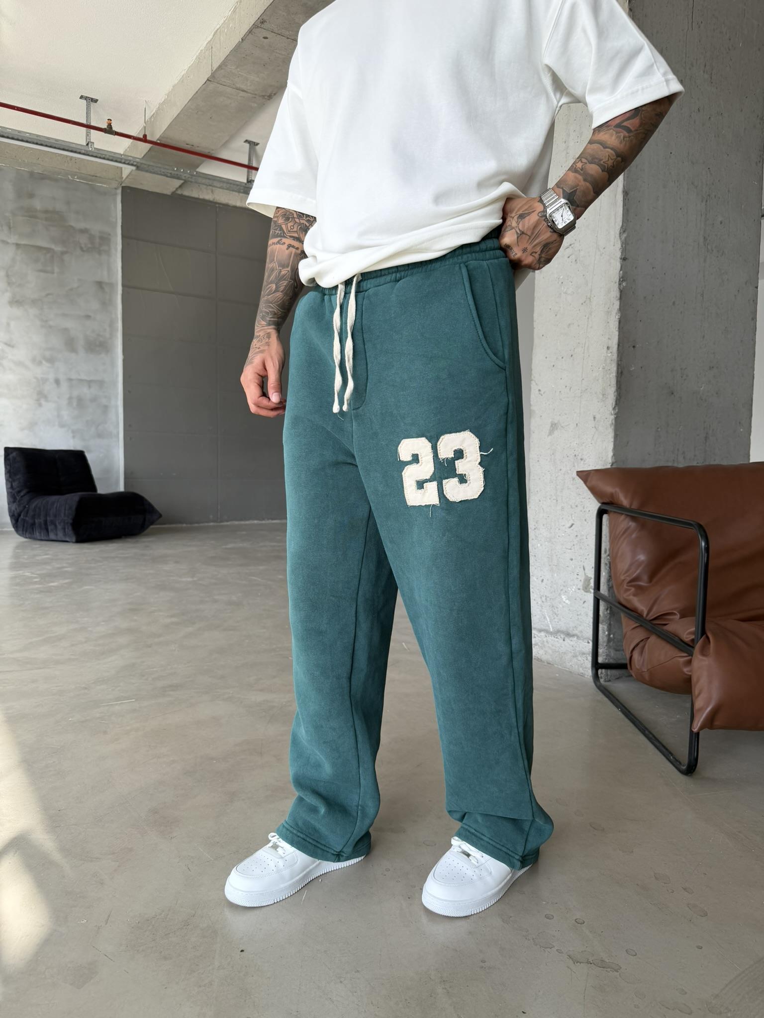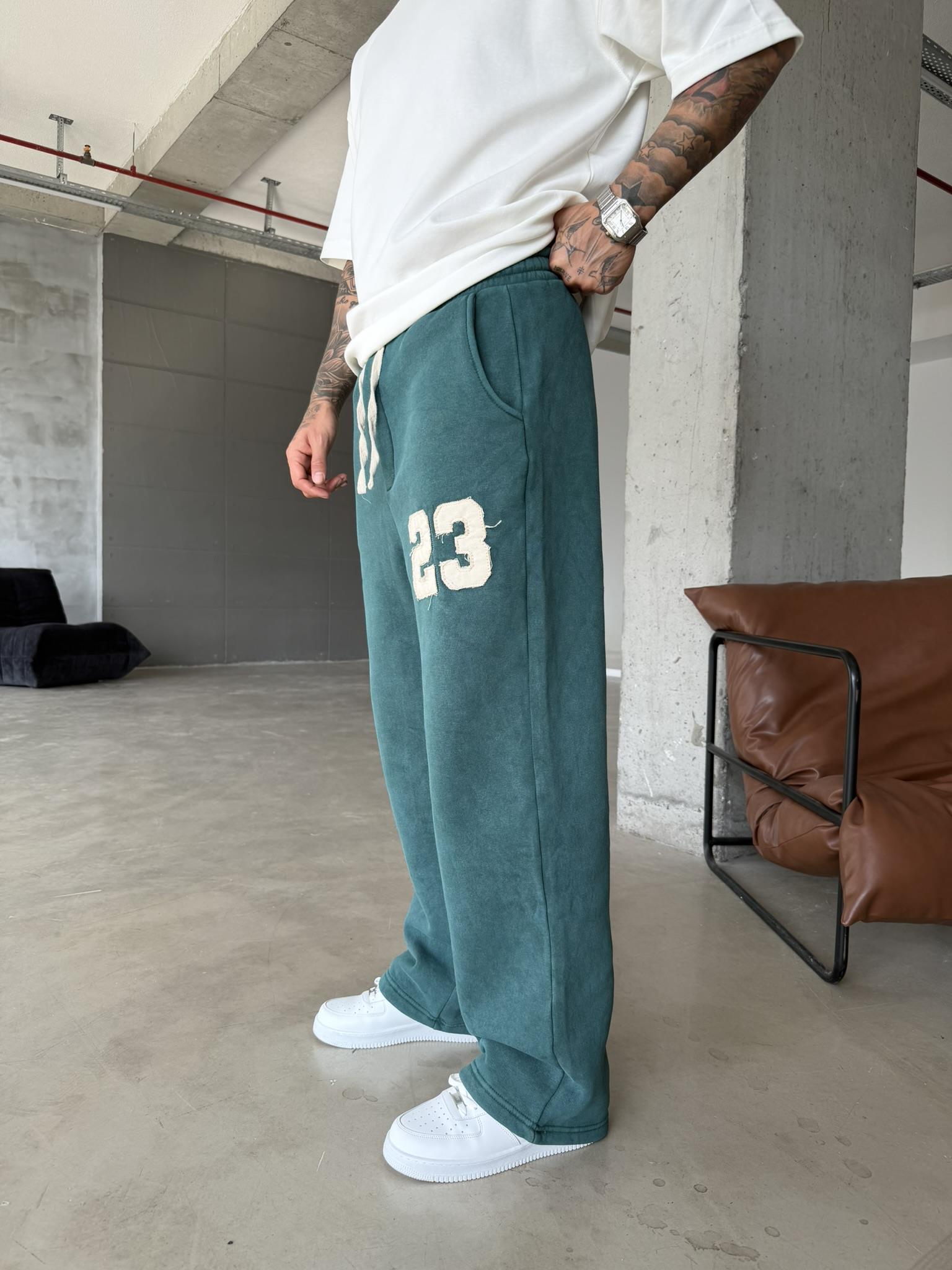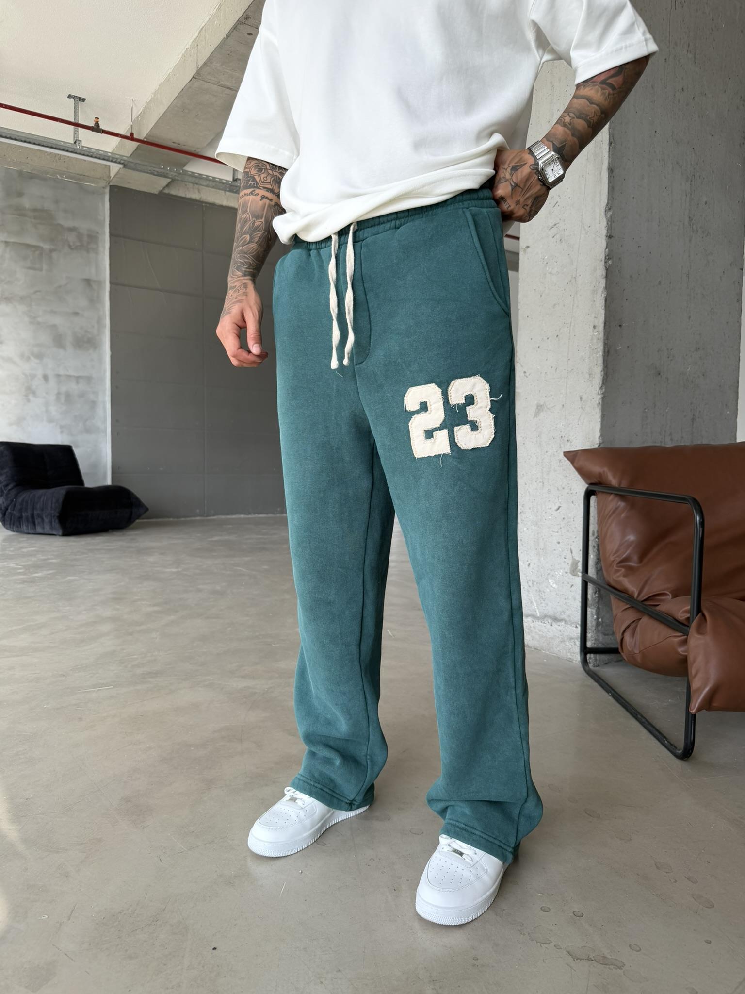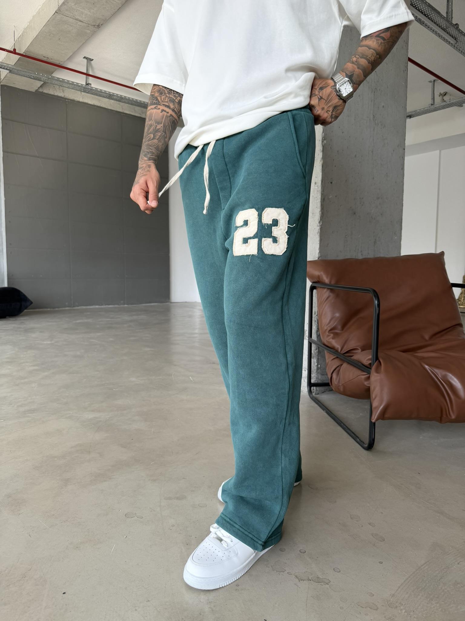 23 Patcht Yıkamalı Premium Eşofman - Yeşil (EŞF.0033-Yeşil-S)