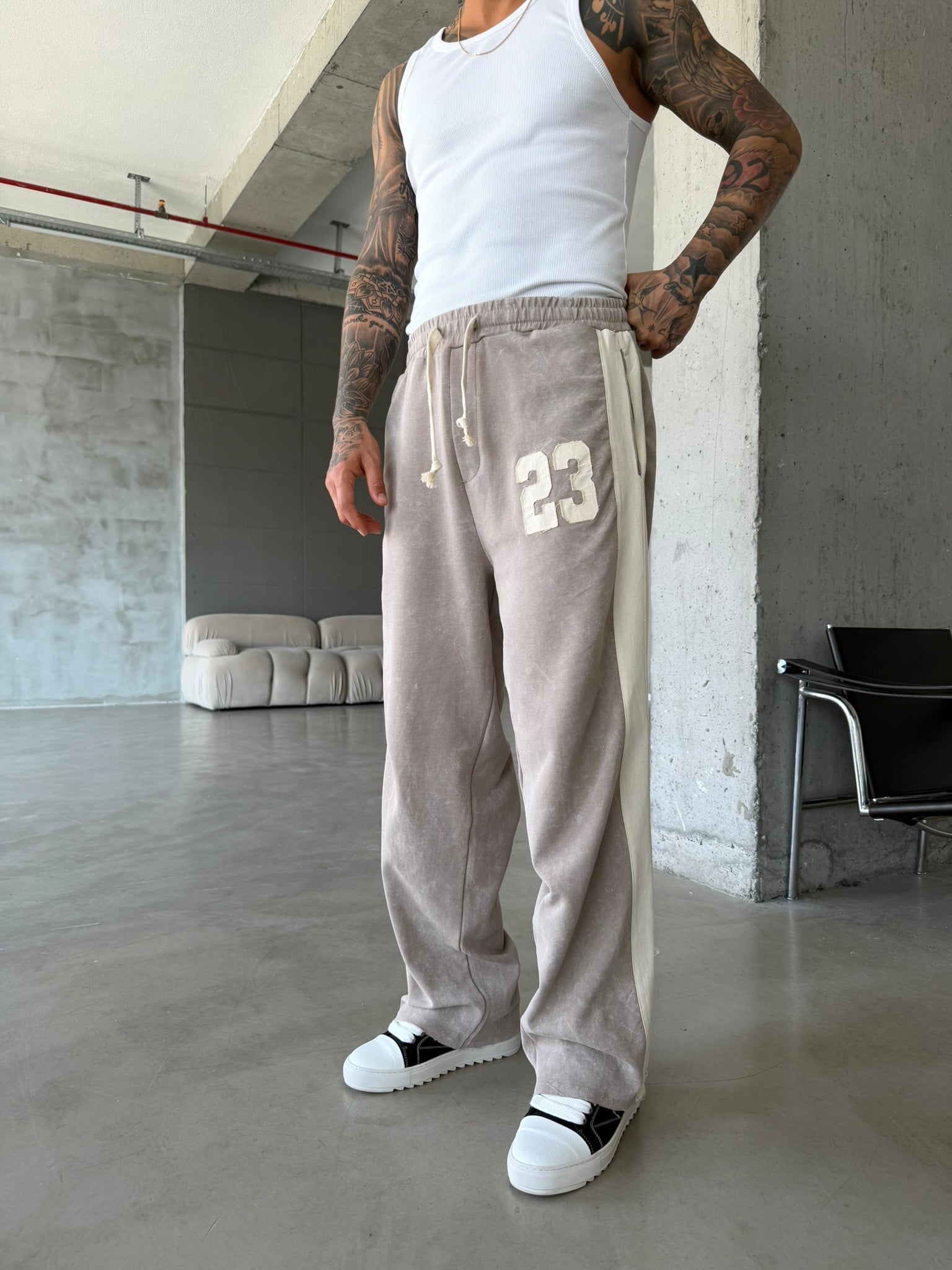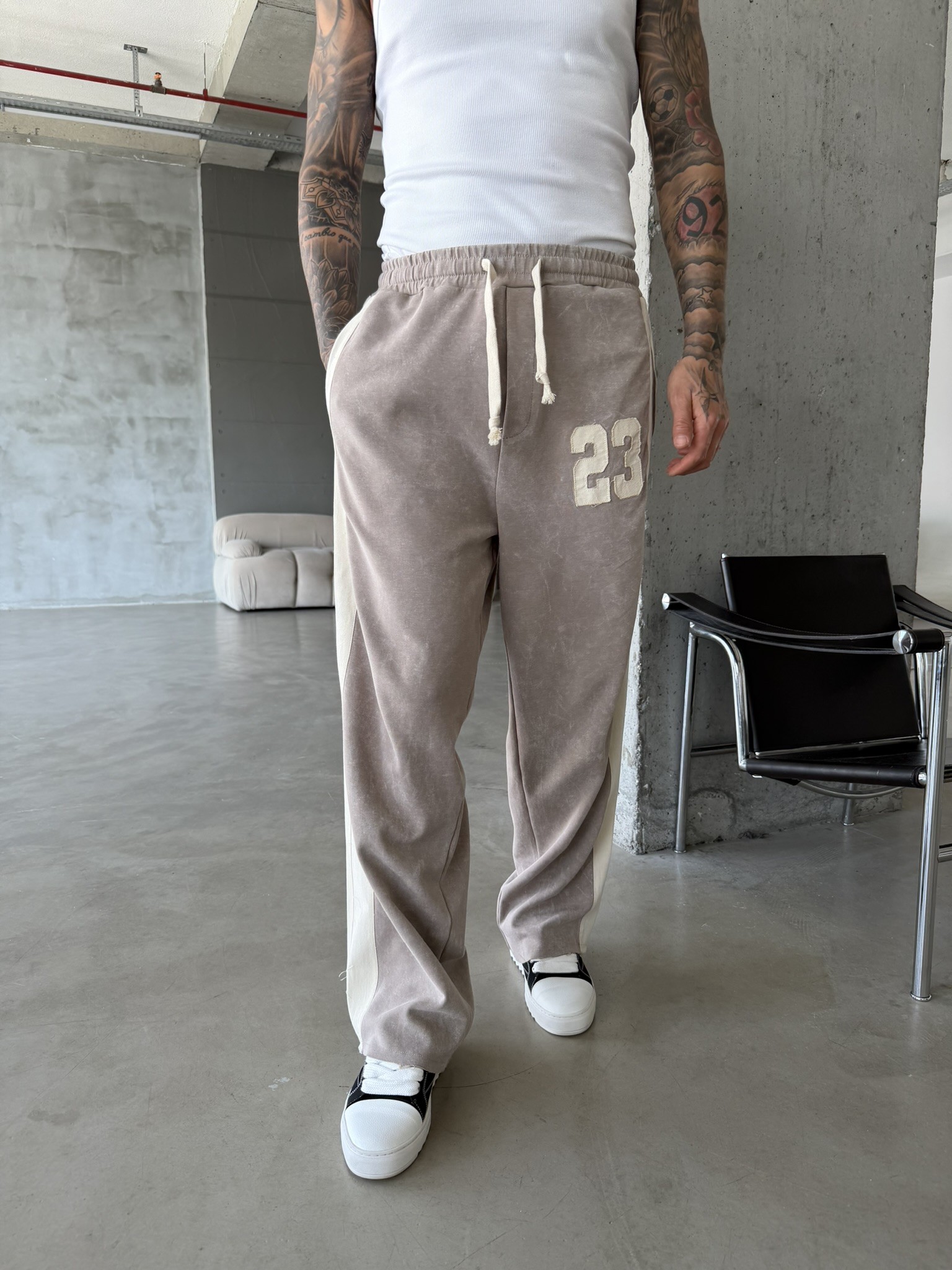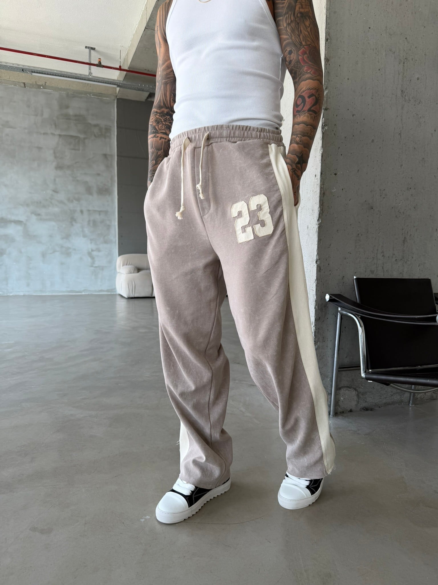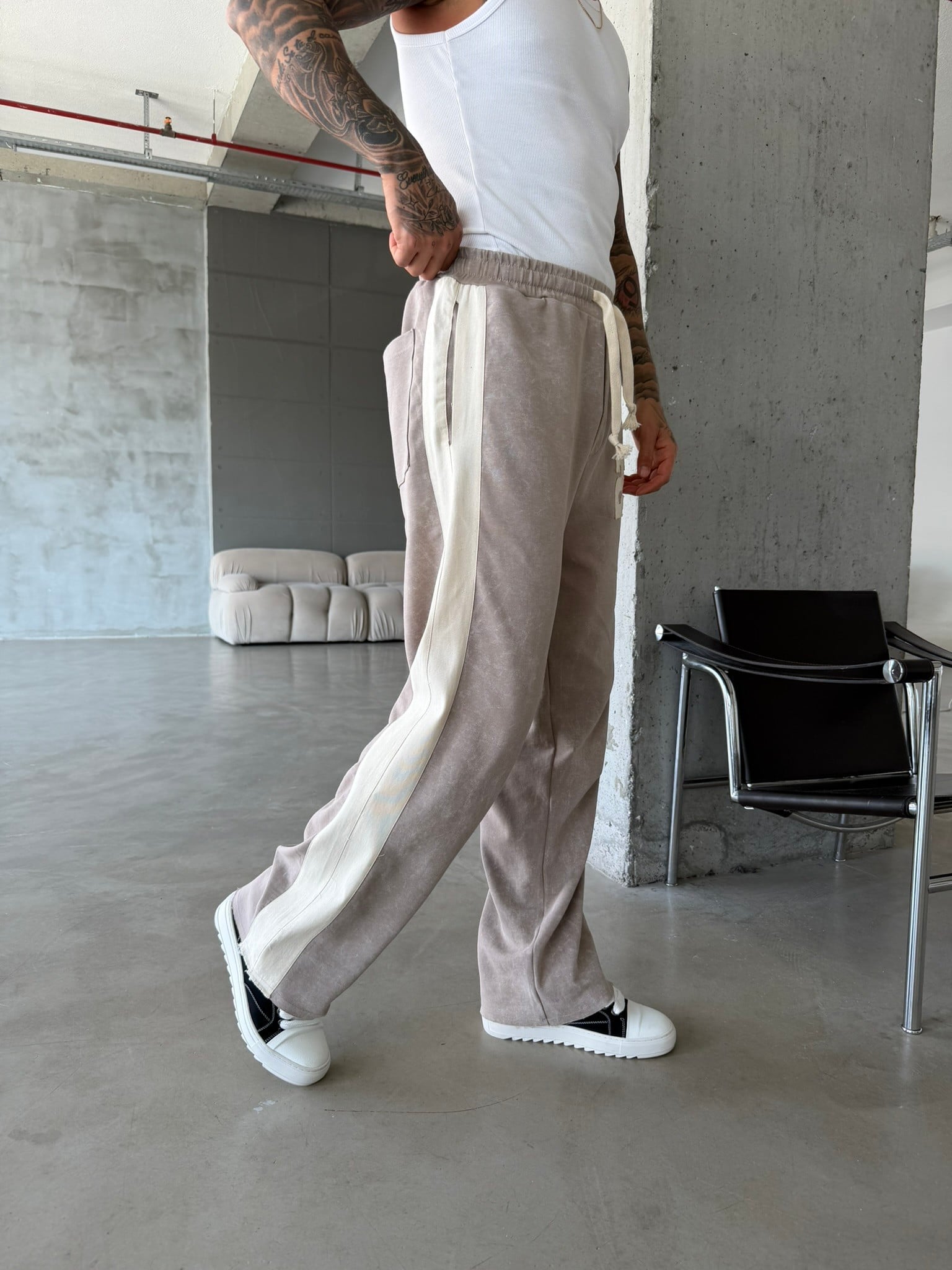 23 Premium Acid Yıkama Şeritli Eşofman - Bej (EŞF.0063-Bej-S)