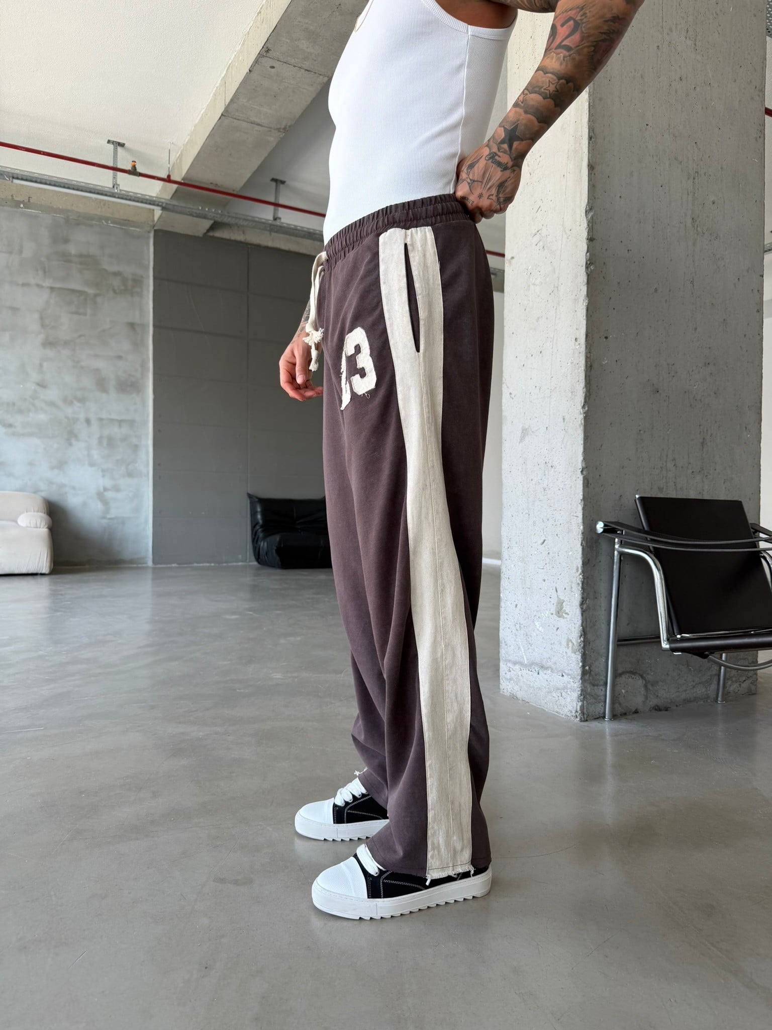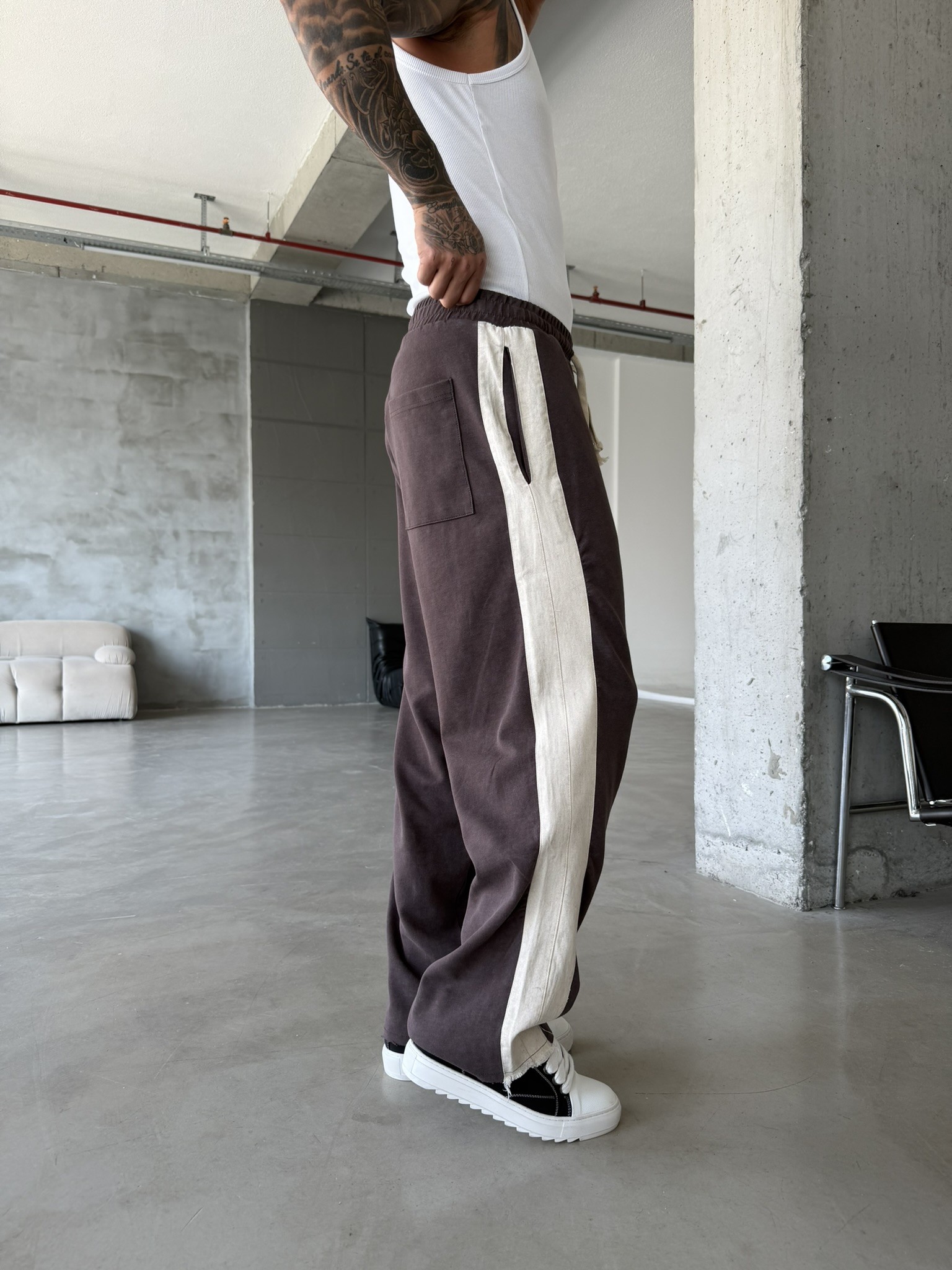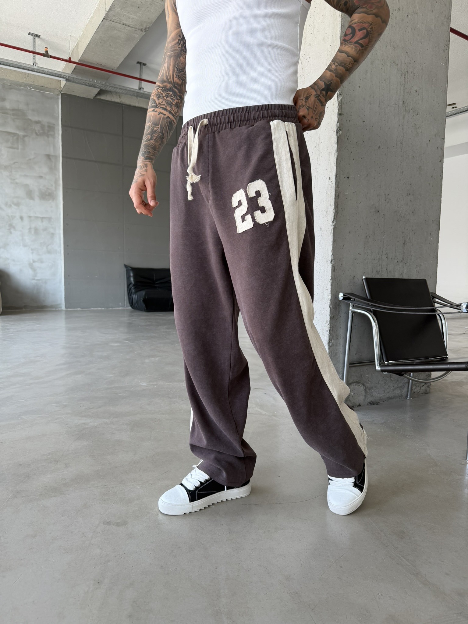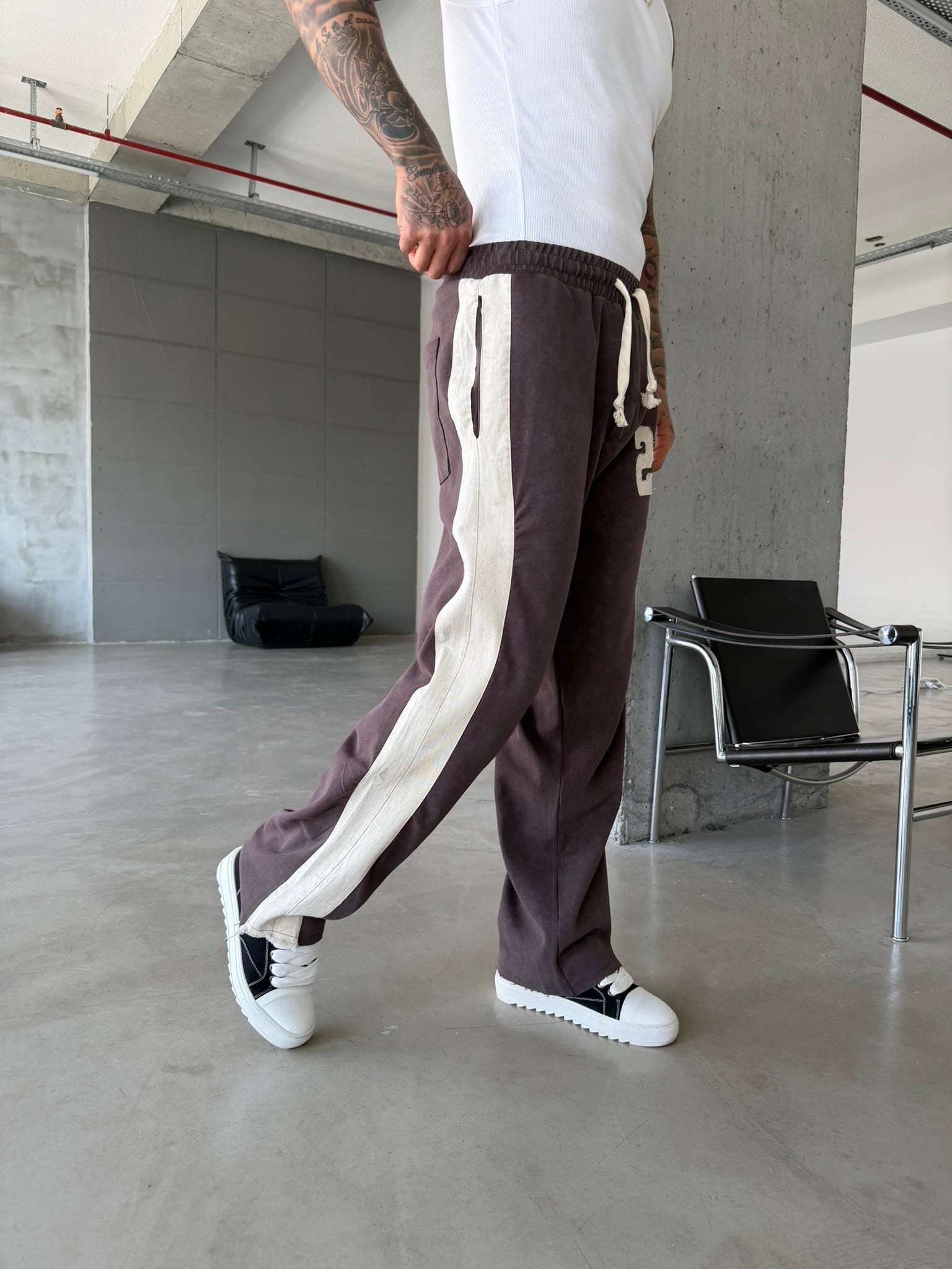 23 Premium Acid Yıkama Şeritli Eşofman - Kahve (EŞF.0063-Kahve-S)