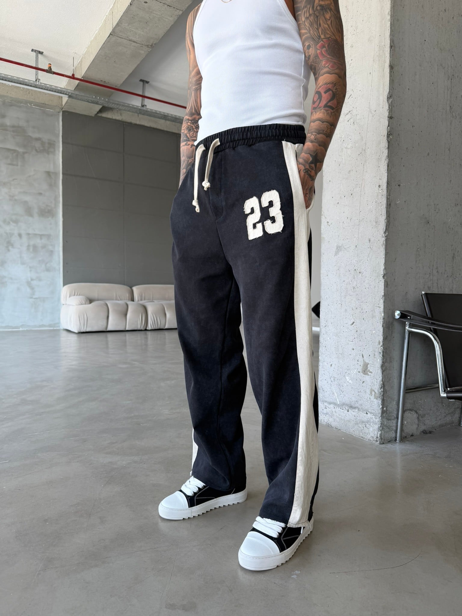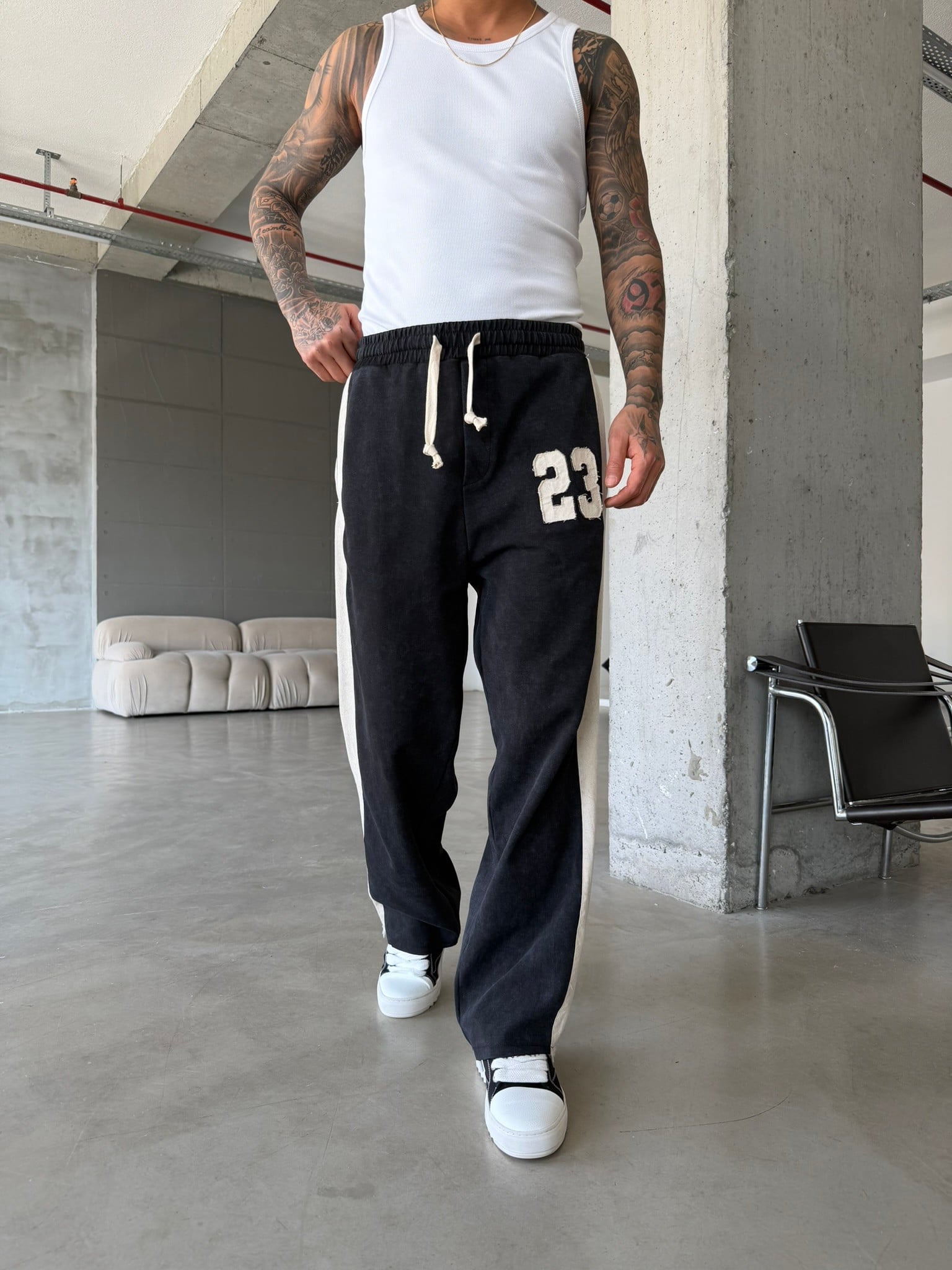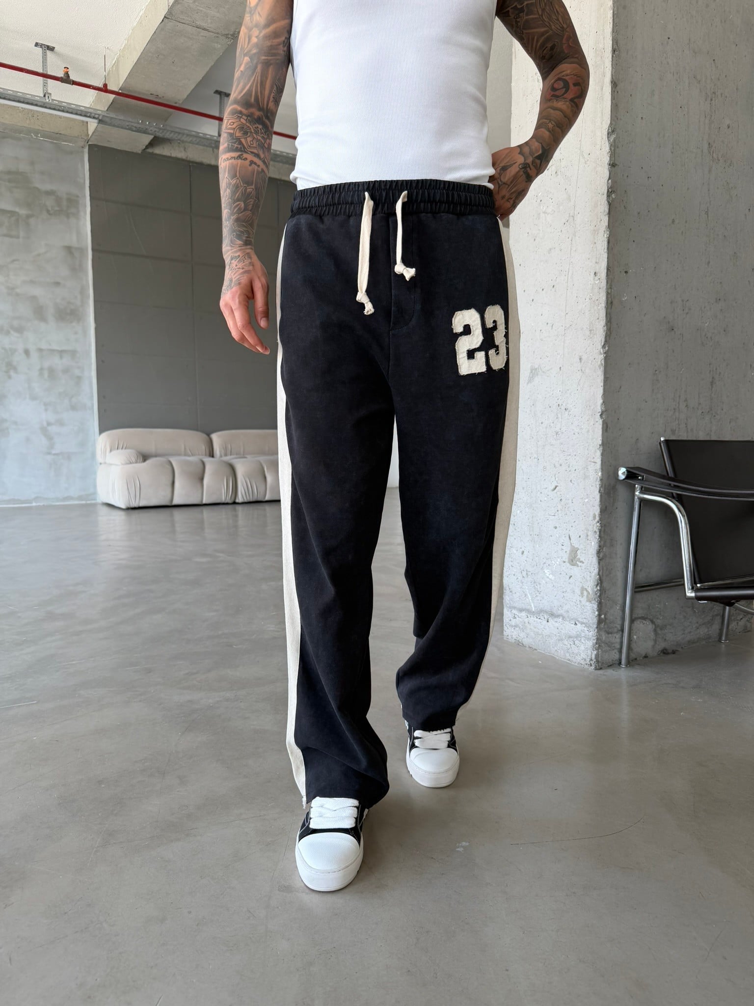 23 Premium Acid Yıkama Şeritli Eşofman - Siyah (EŞF.0063-Siyah-S)