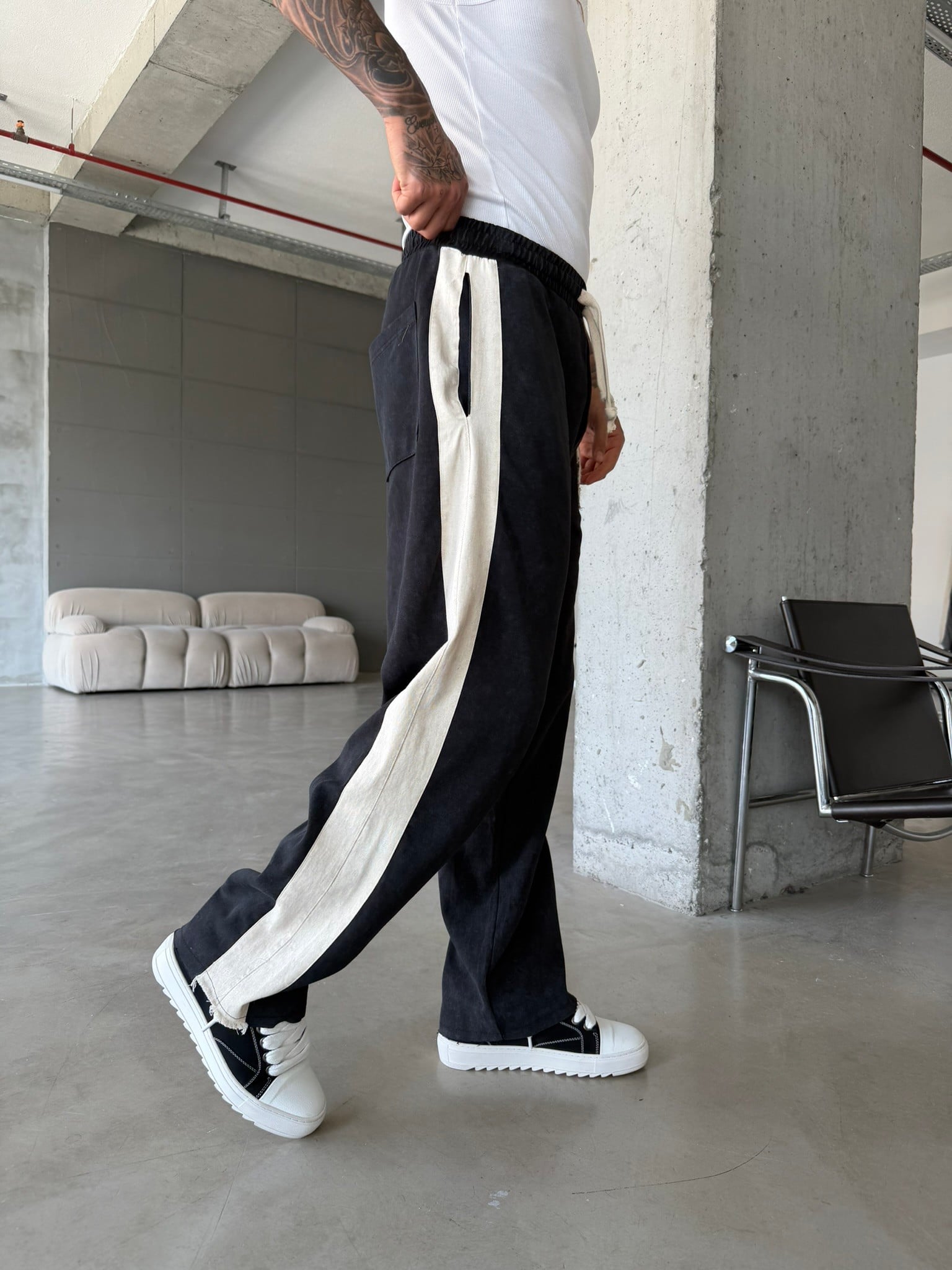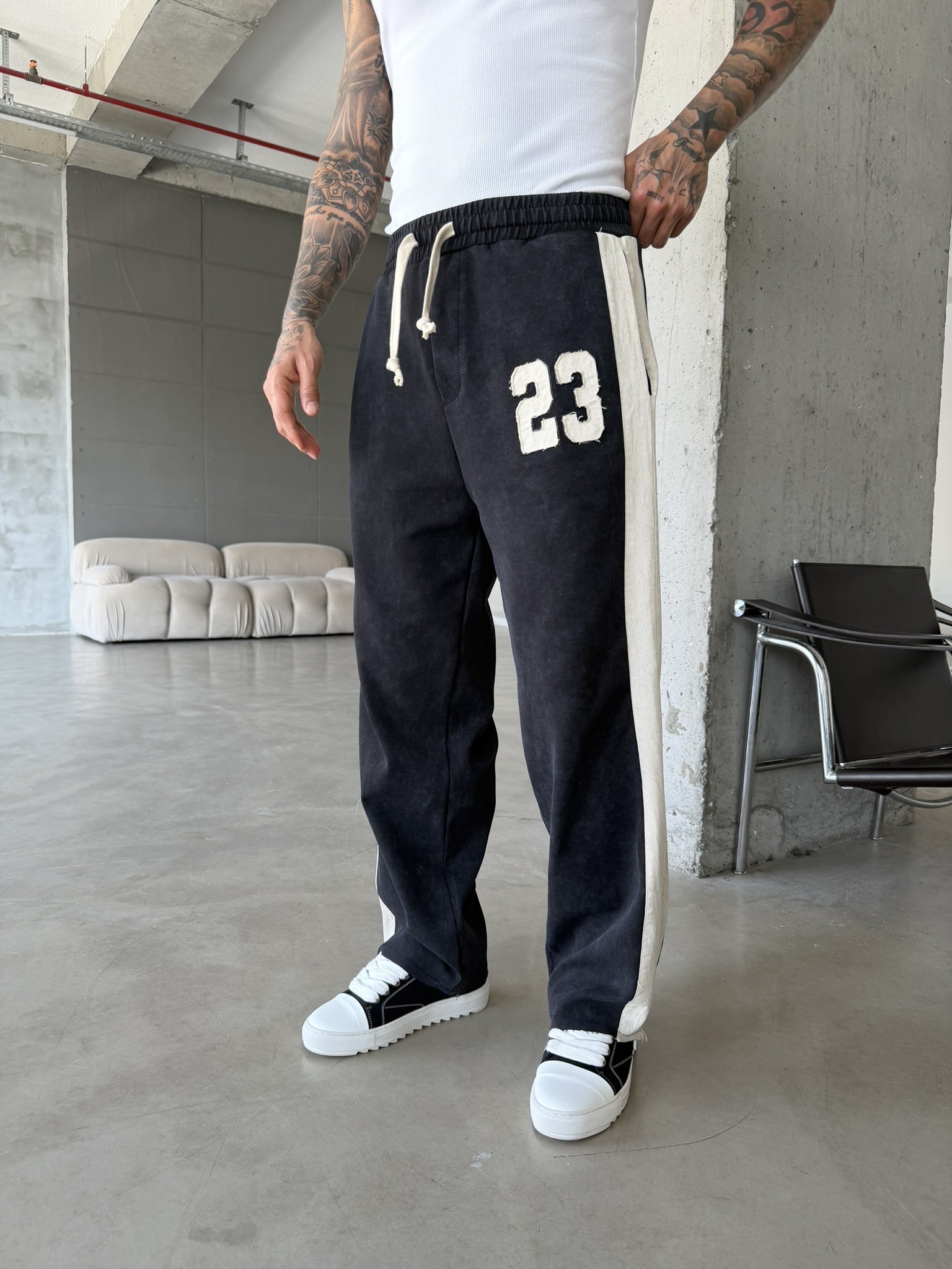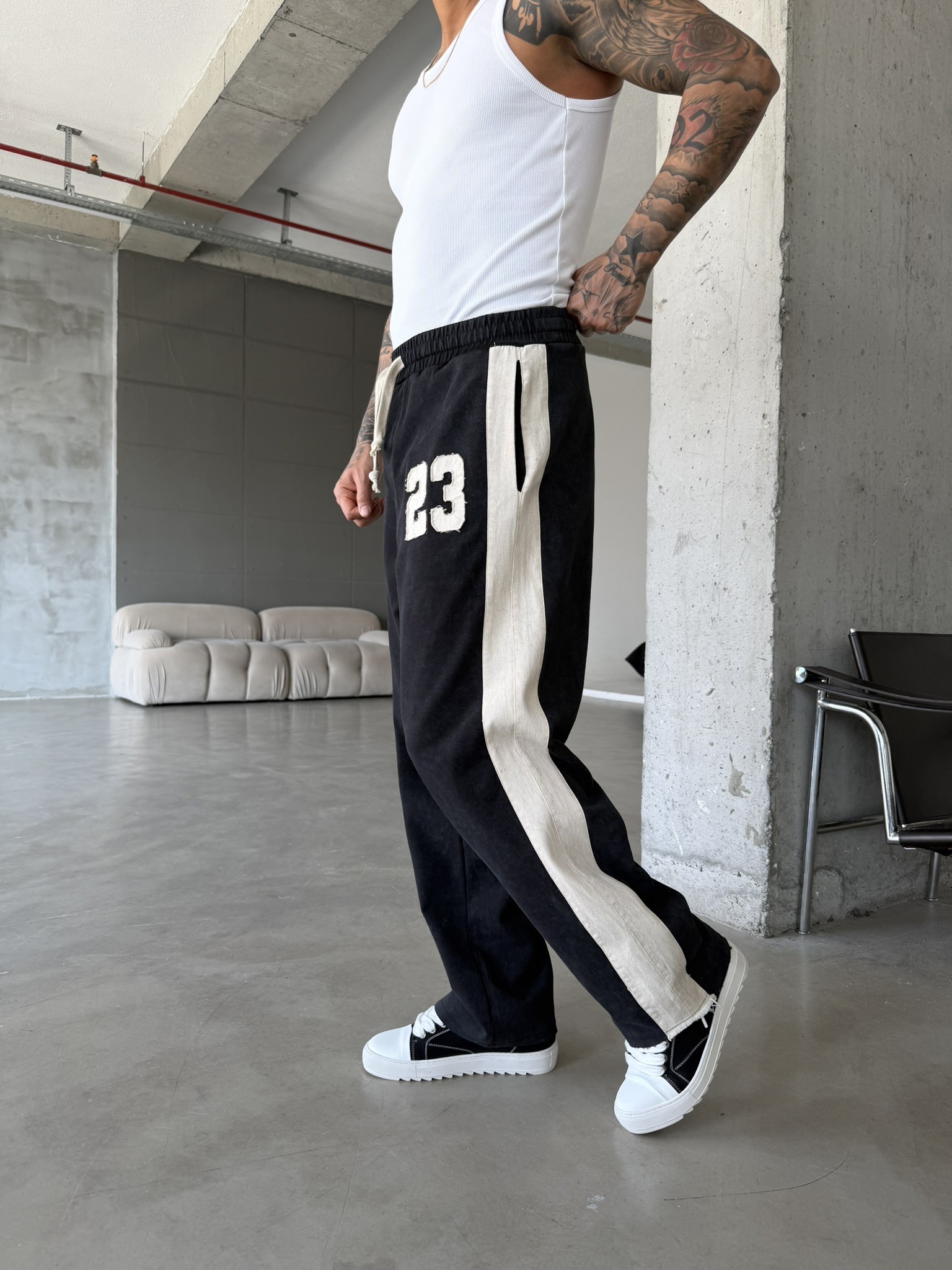 23 Premium Acid Yıkama Şeritli Eşofman - Siyah (EŞF.0063-Siyah-S)