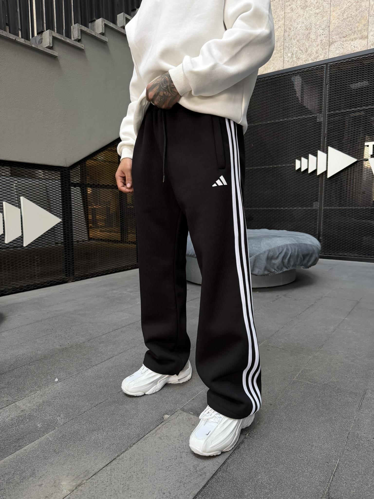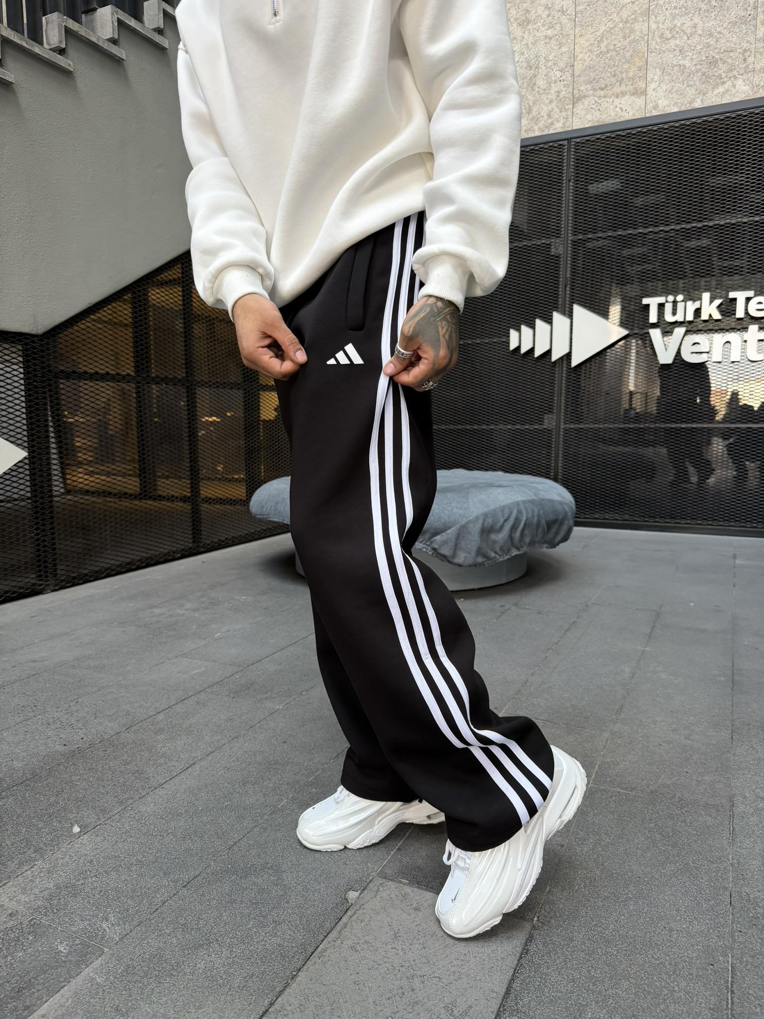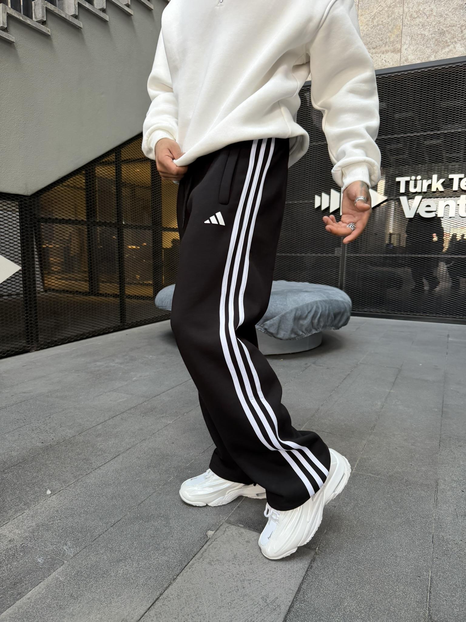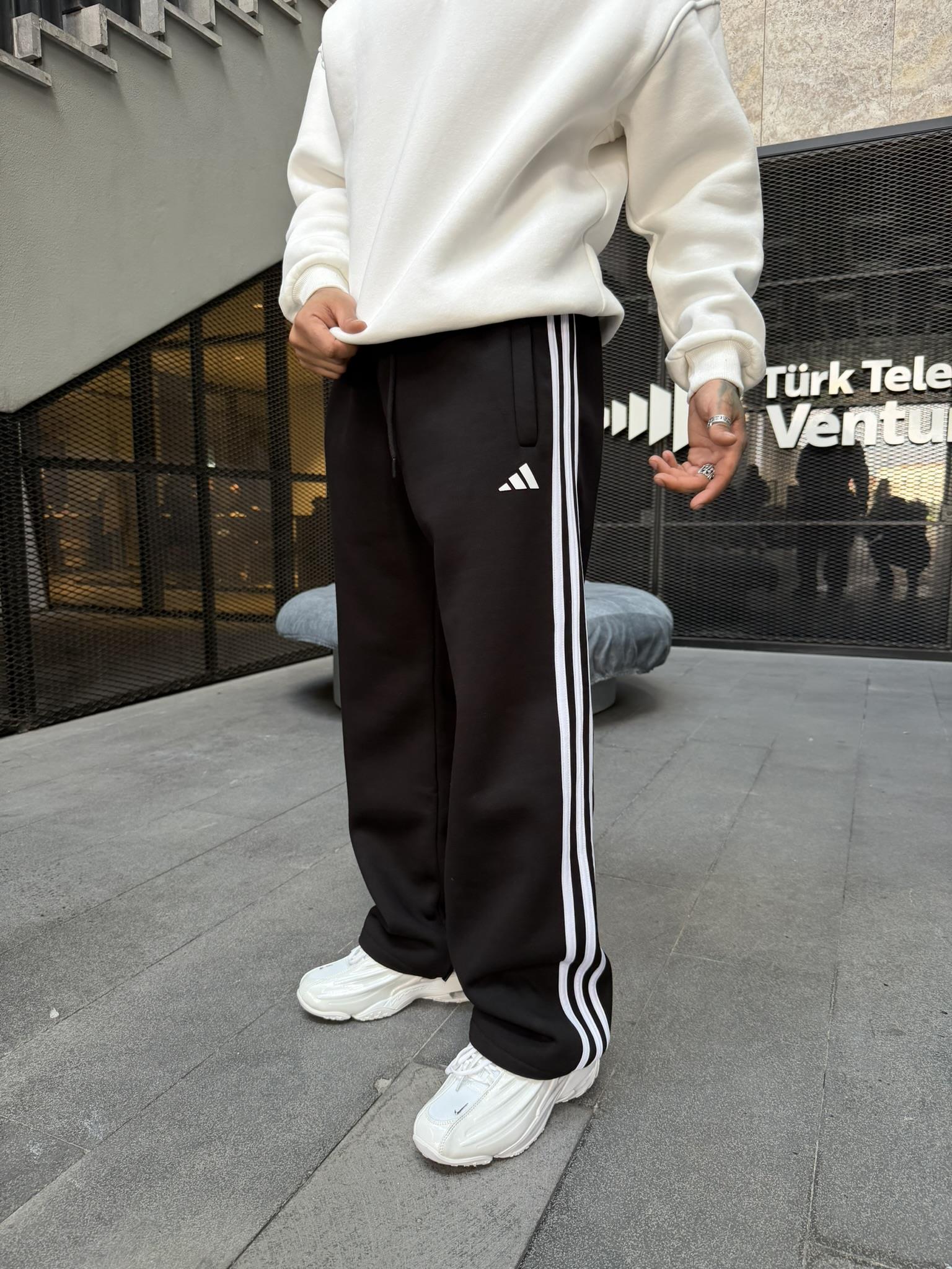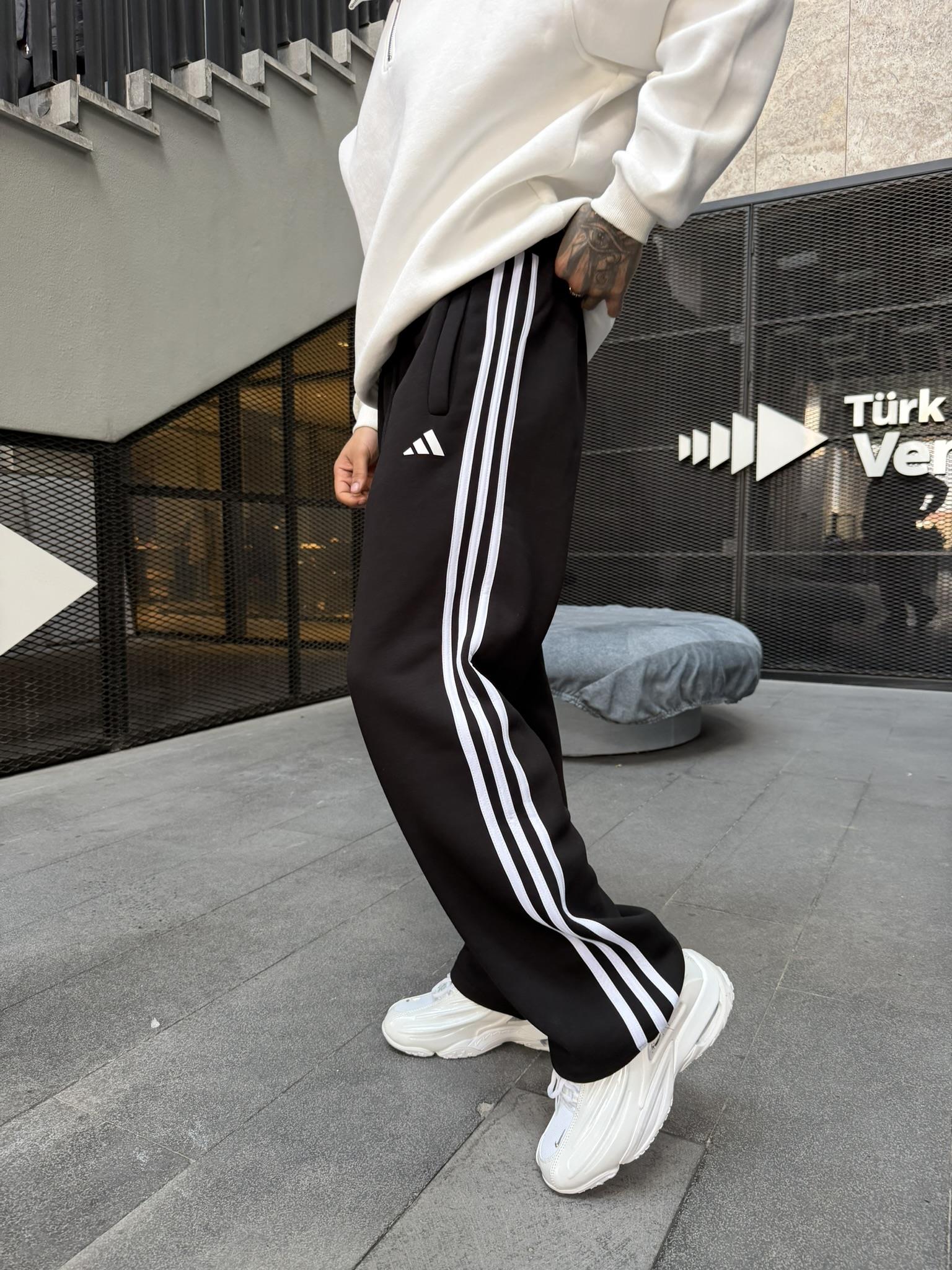 3 İplik Premium Üç Şeritli Enjeksiyon Baggy Eşofman - Siyah (EŞF.0039-Siyah-S)