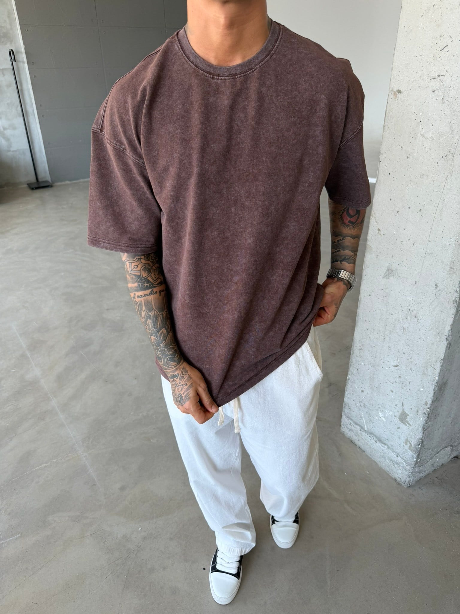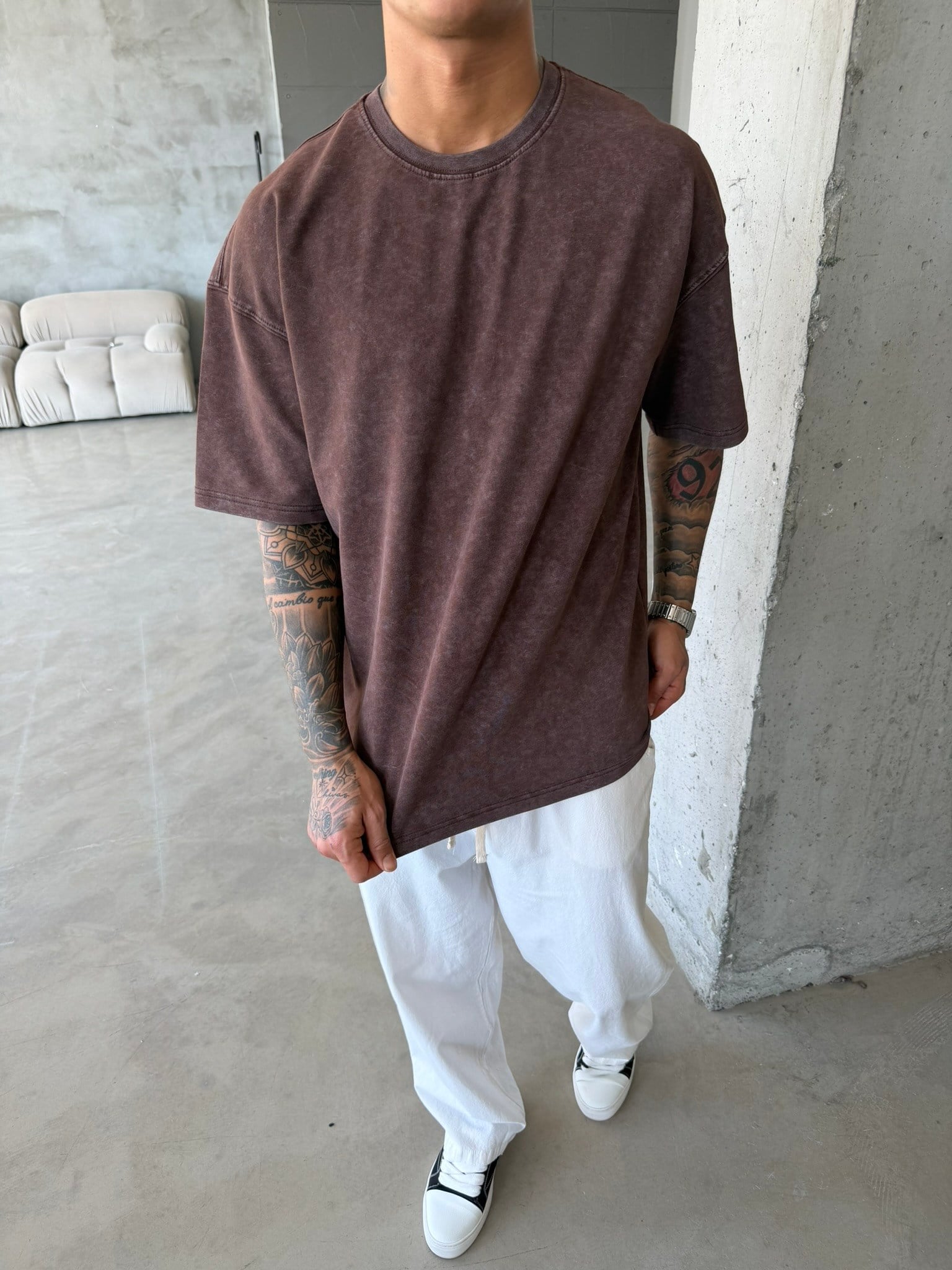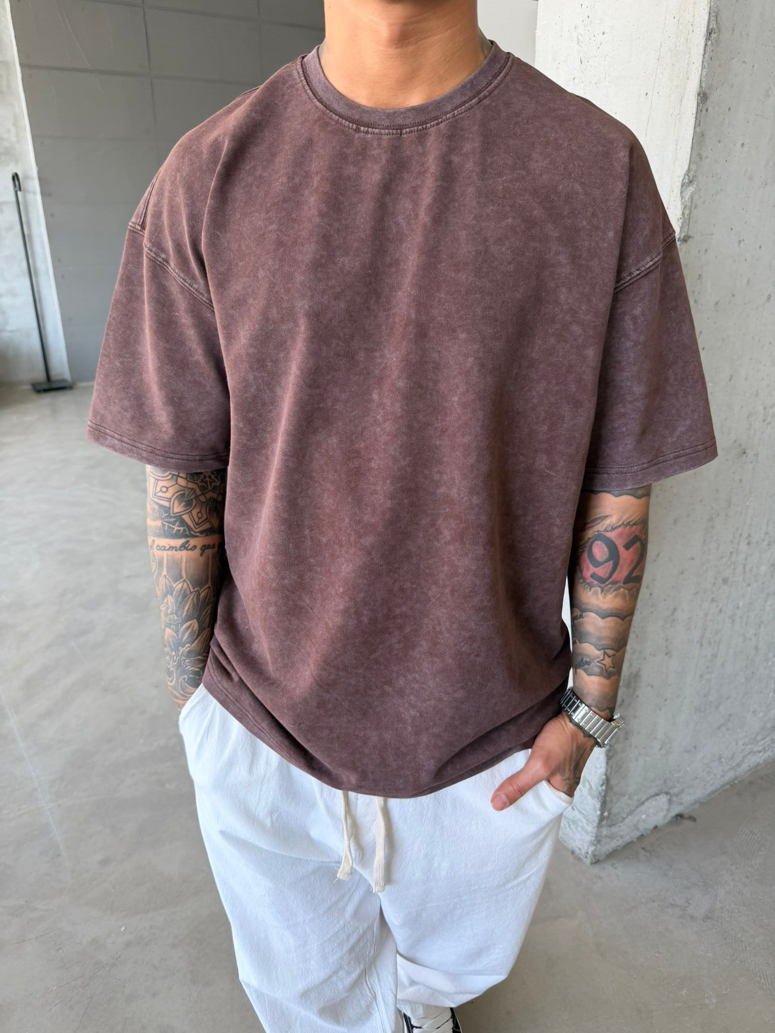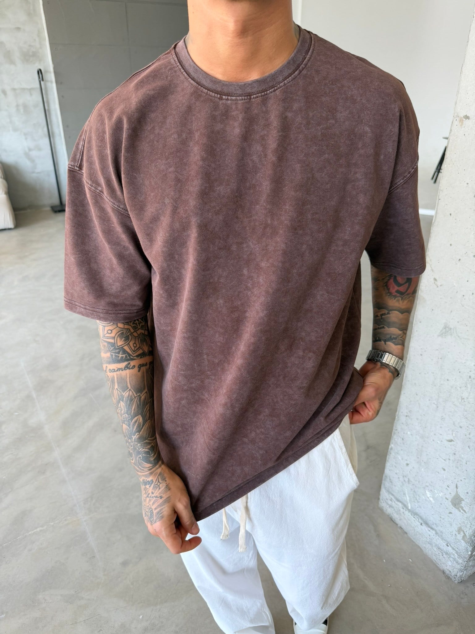 362 Premium Acid Yıkama Basic T-Shirt - Kahve (TST.0362-Kahve-S)