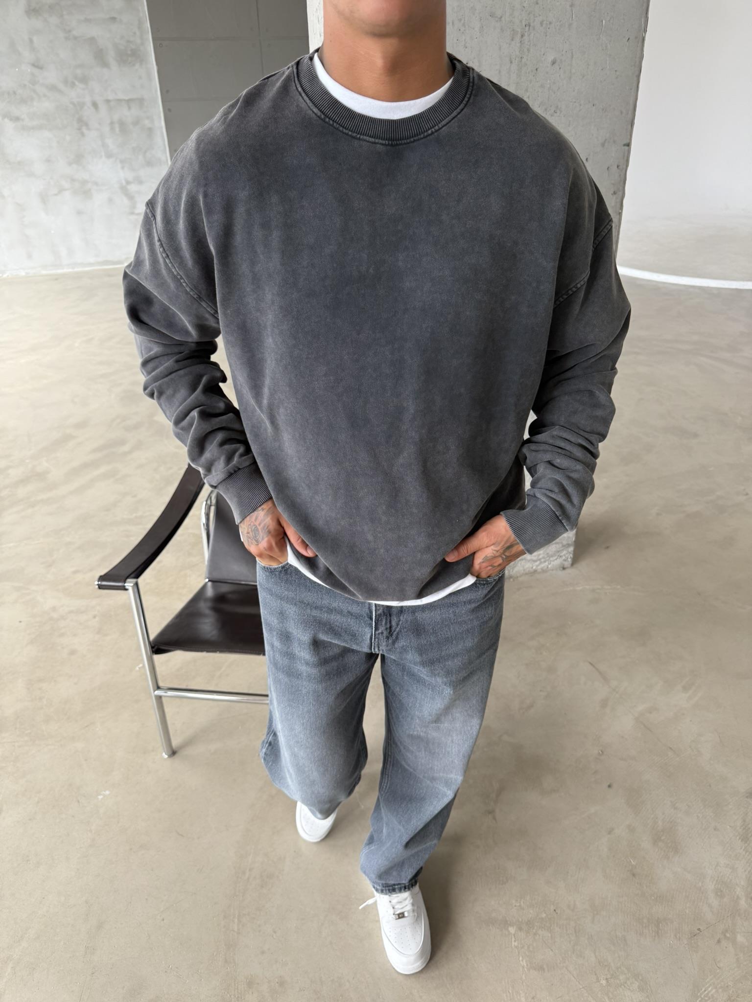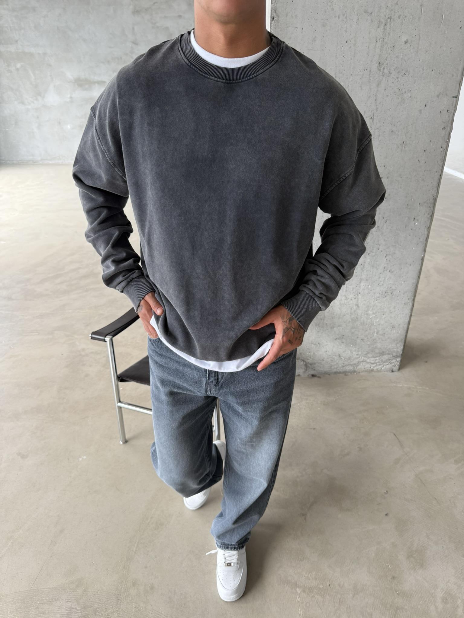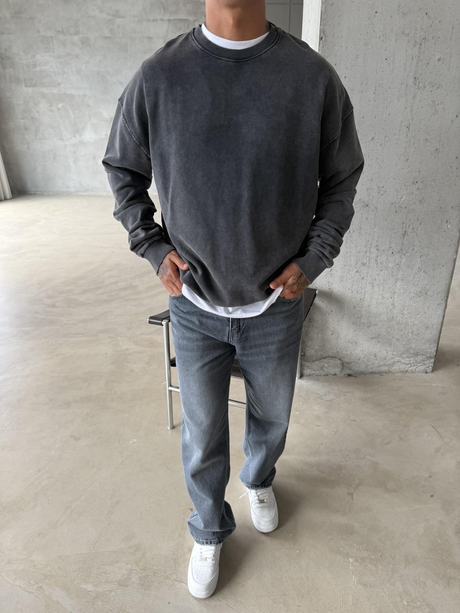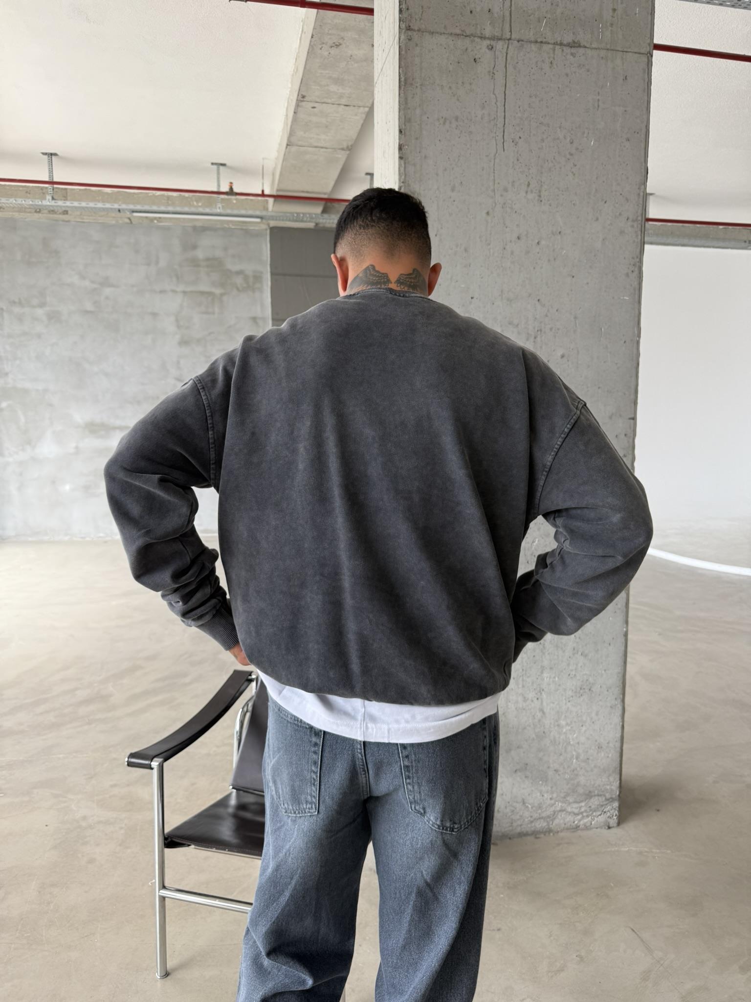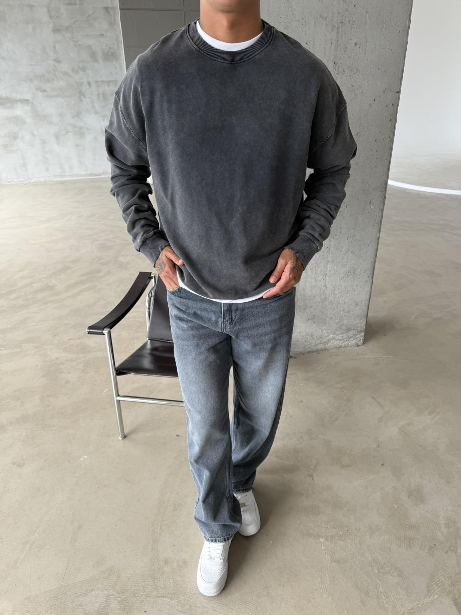 Acid Premium Basic Yıkamalı Sweatshirt - Siyah (SWT.0018-Siyah-S)