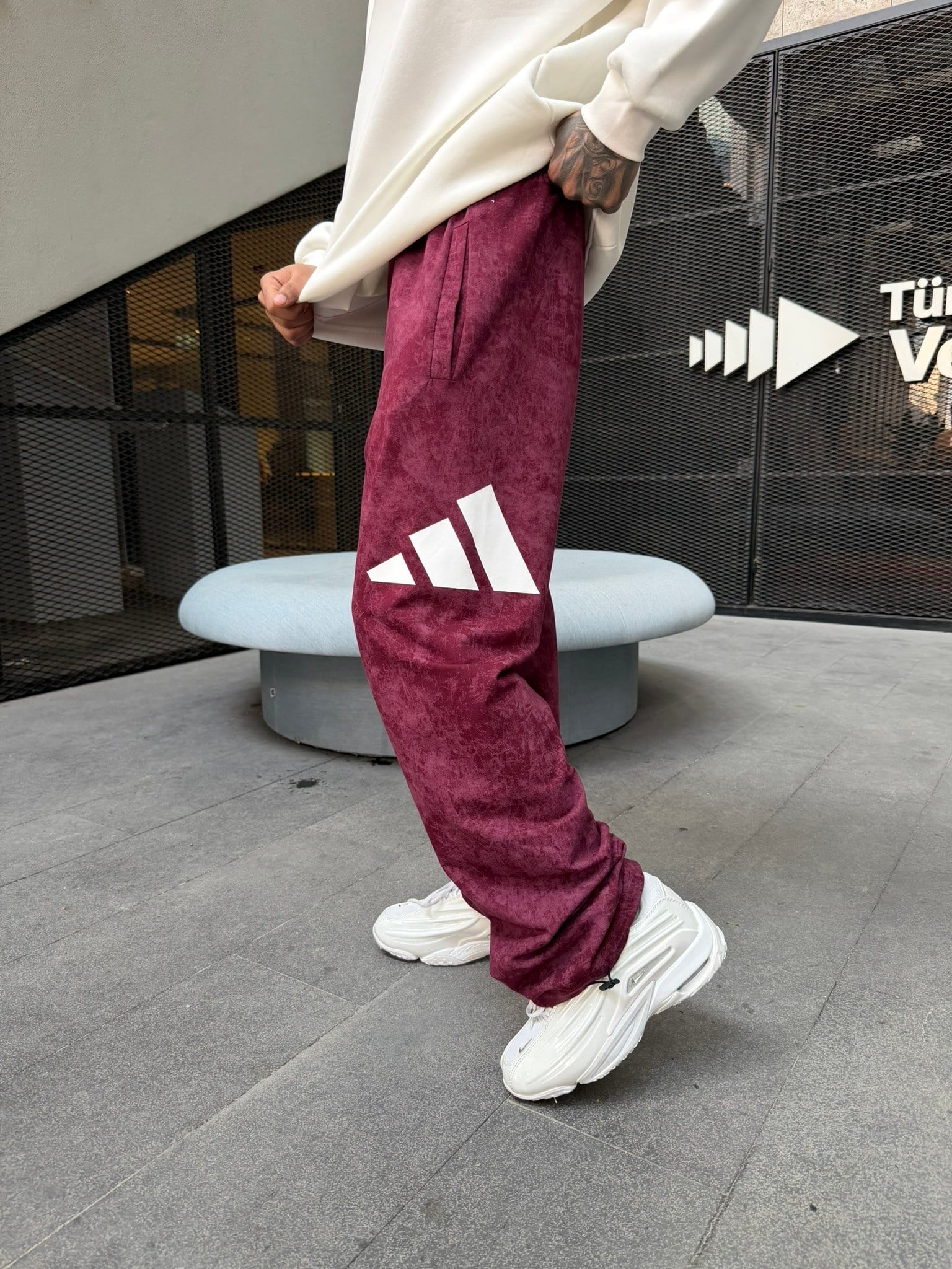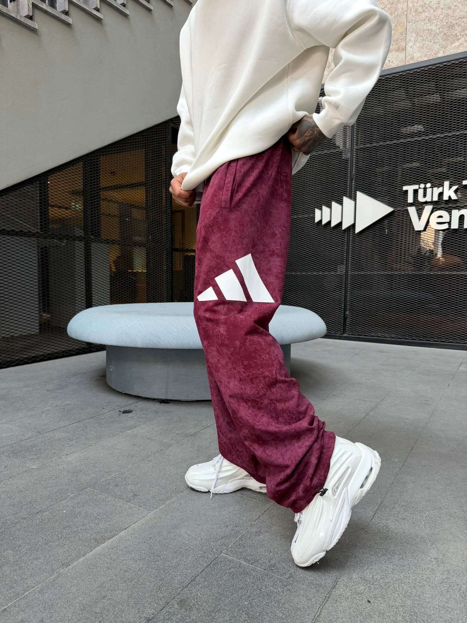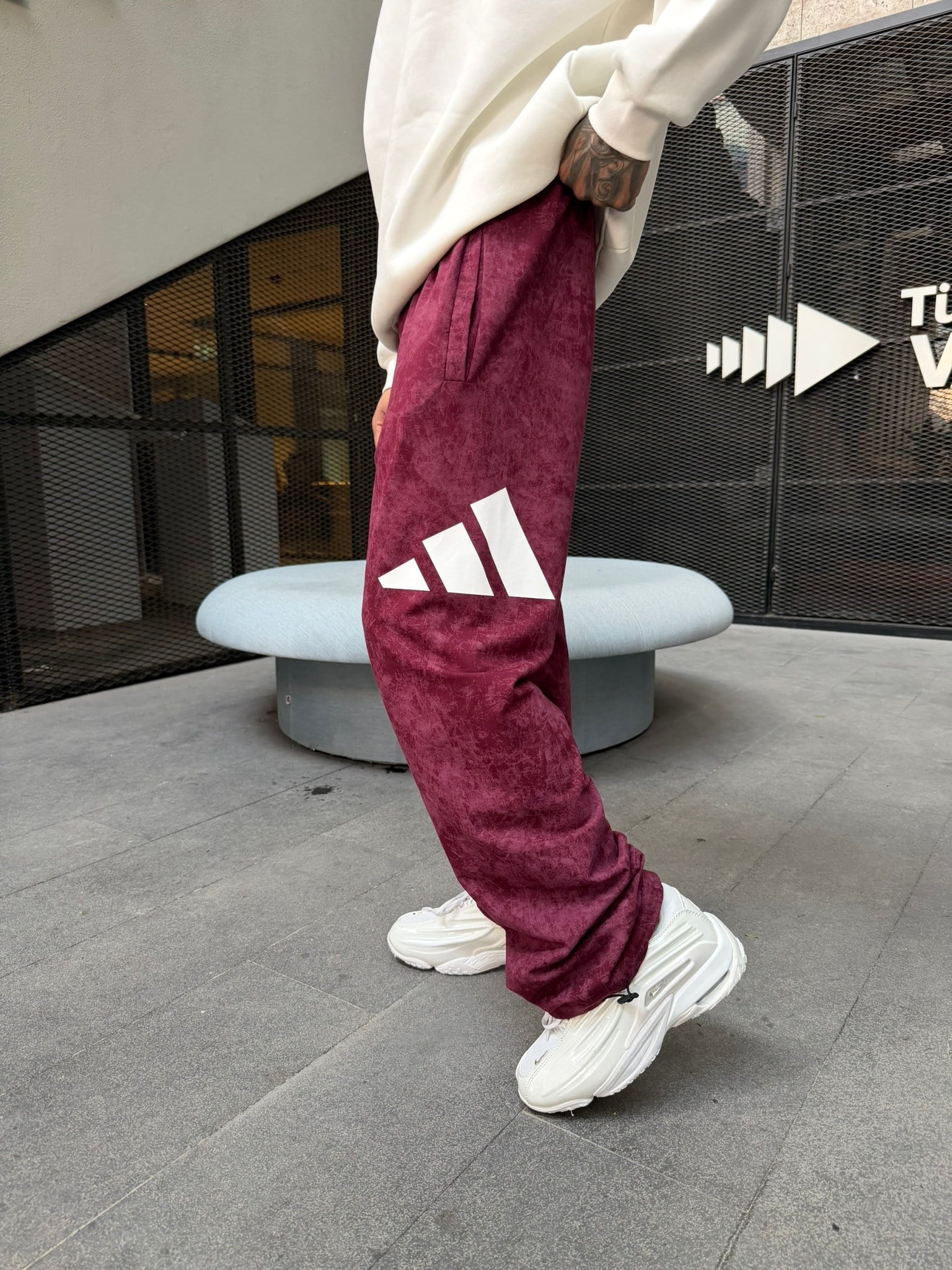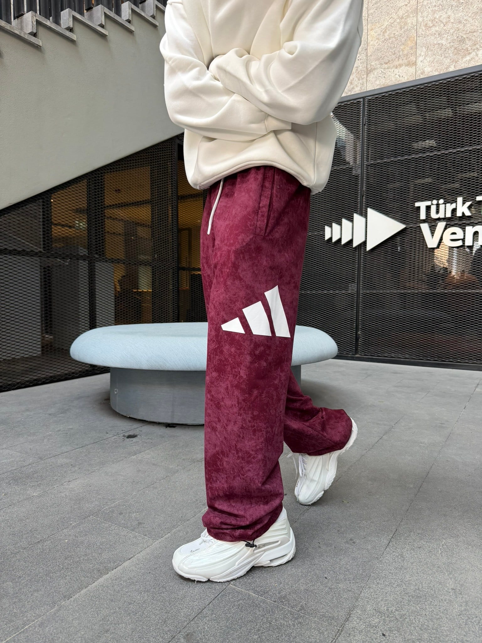 AD Büyük Baskı Acid Yıkamalı Basic Eşofman - Bordo (EŞF.0049-Bordo-S)