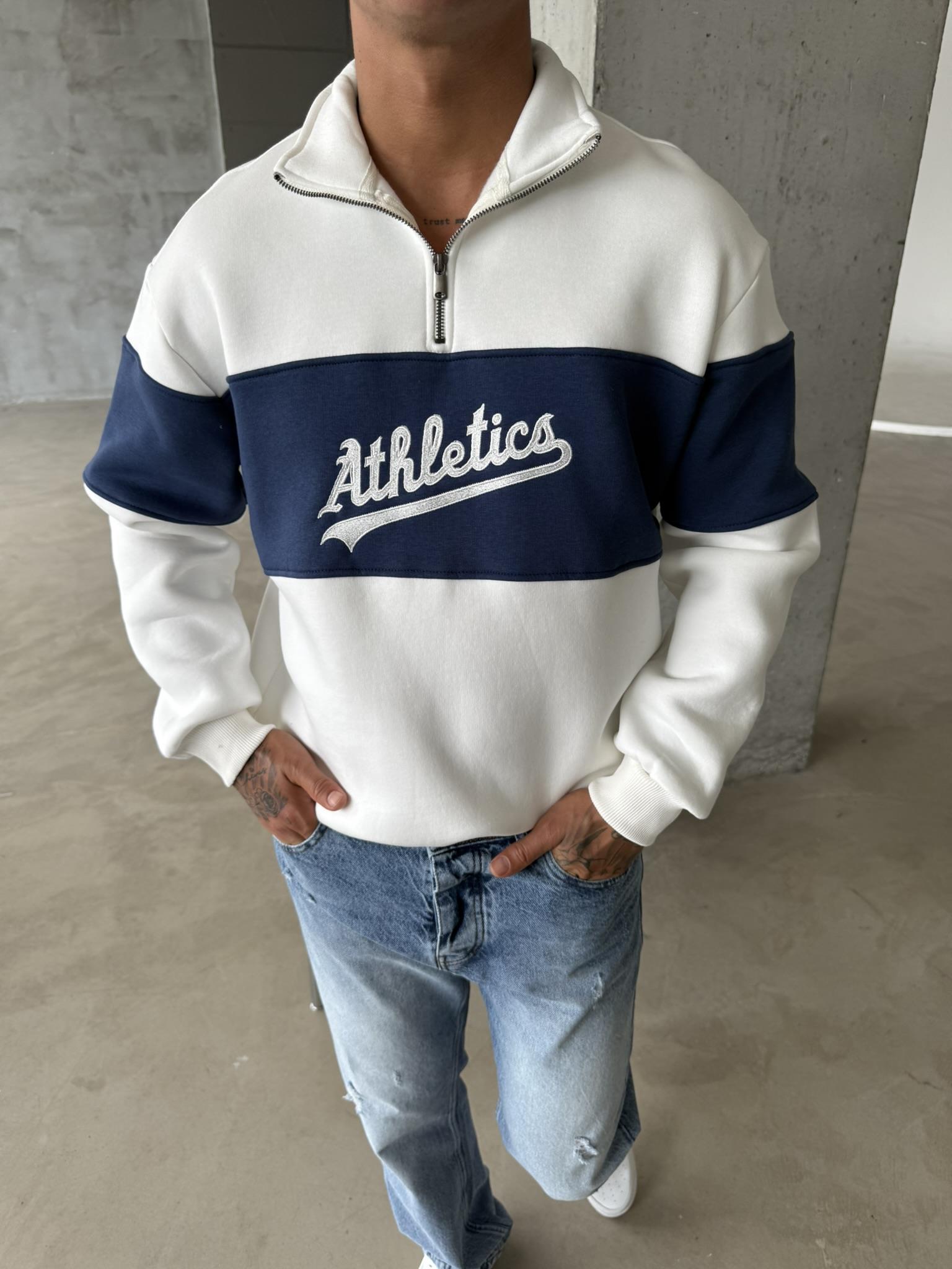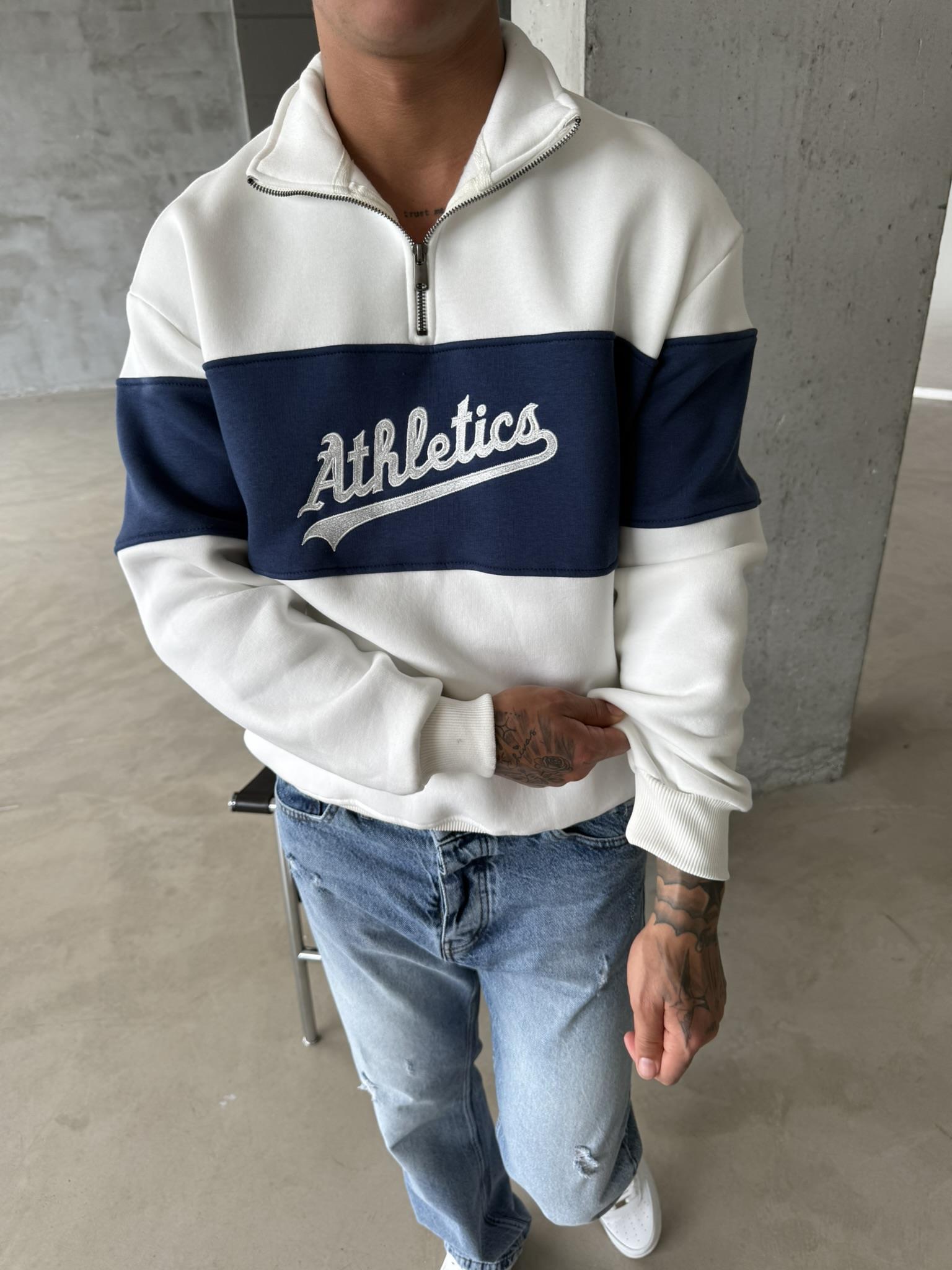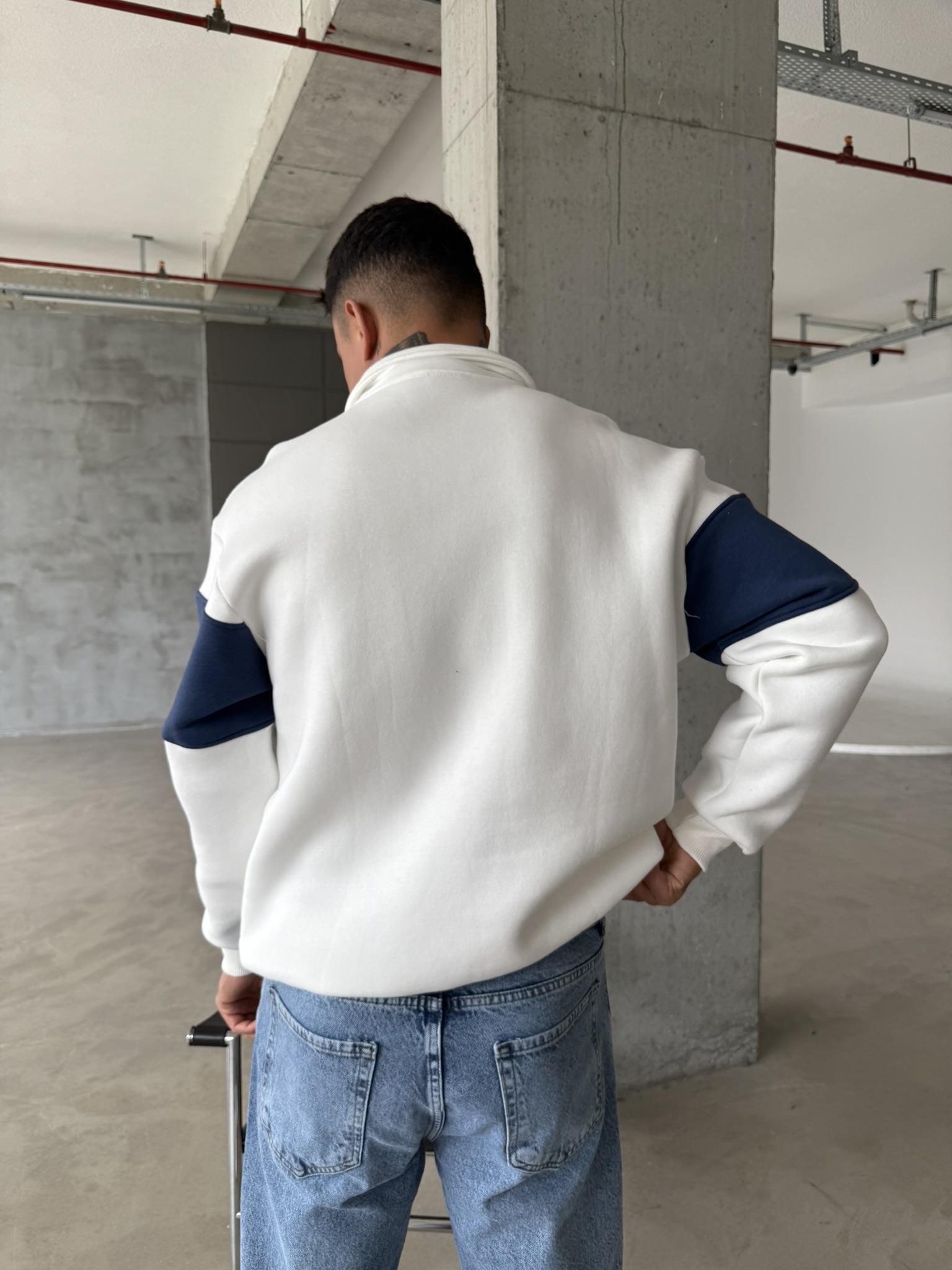 Athletic Nakışlı Yarım Fermuat Zip - Beyaz (SWT.0009-Beyaz-S)
