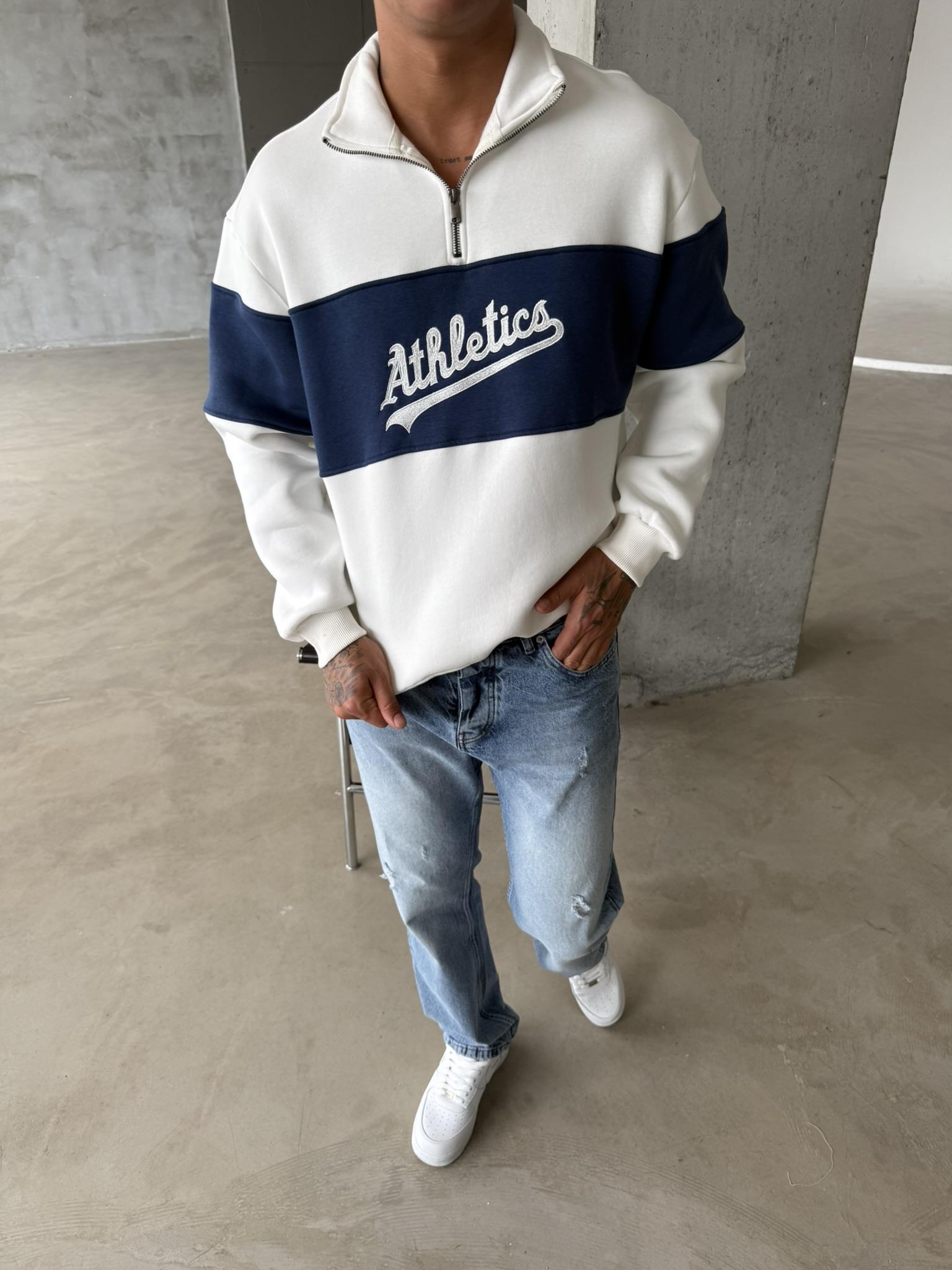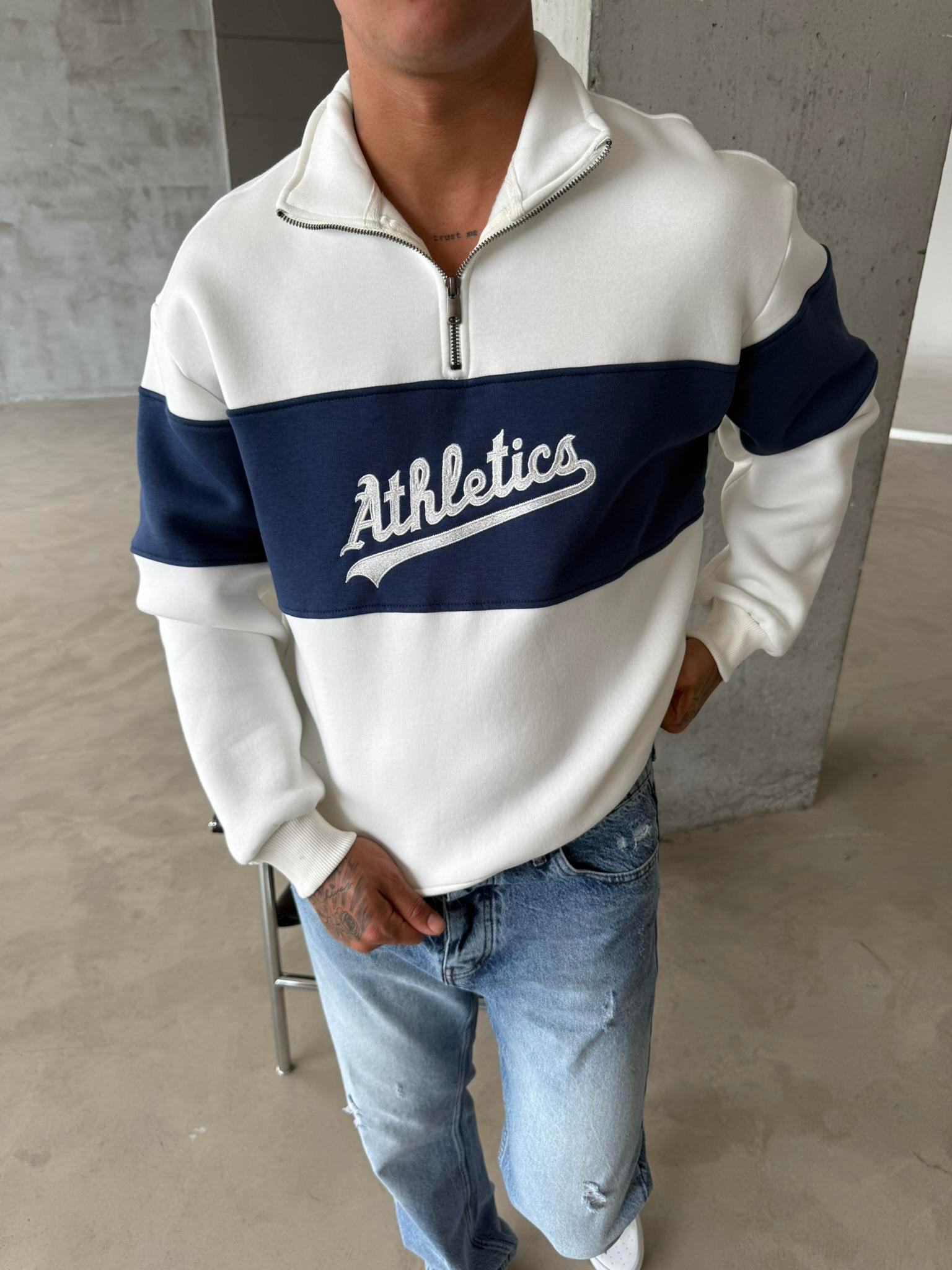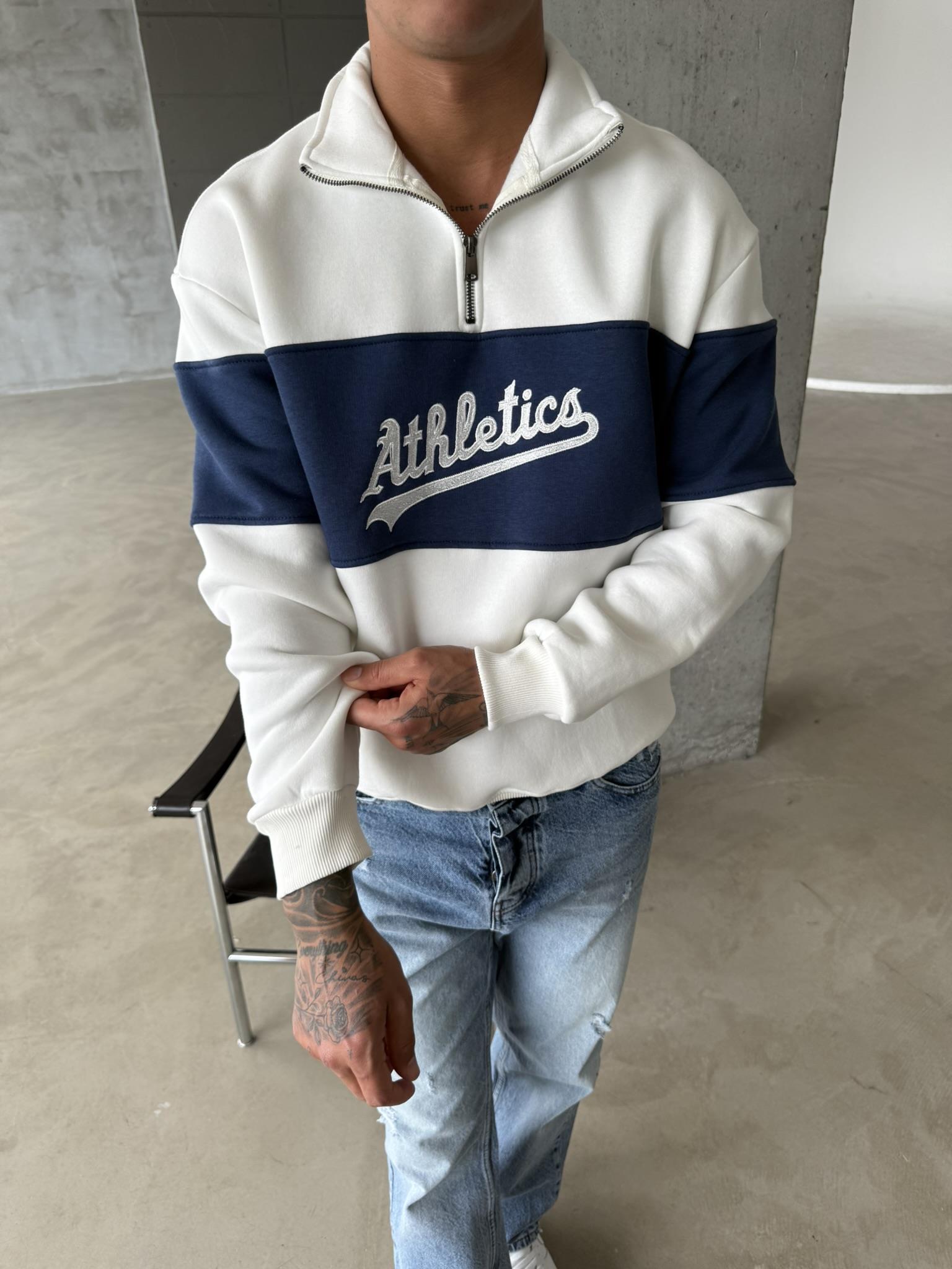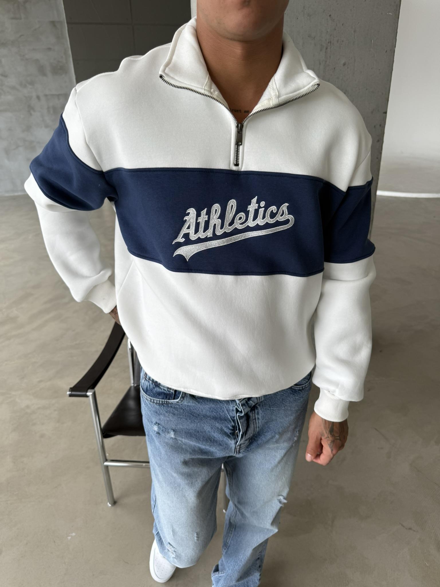 Athletic Nakışlı Yarım Fermuat Zip - Beyaz (SWT.0009-Beyaz-S)