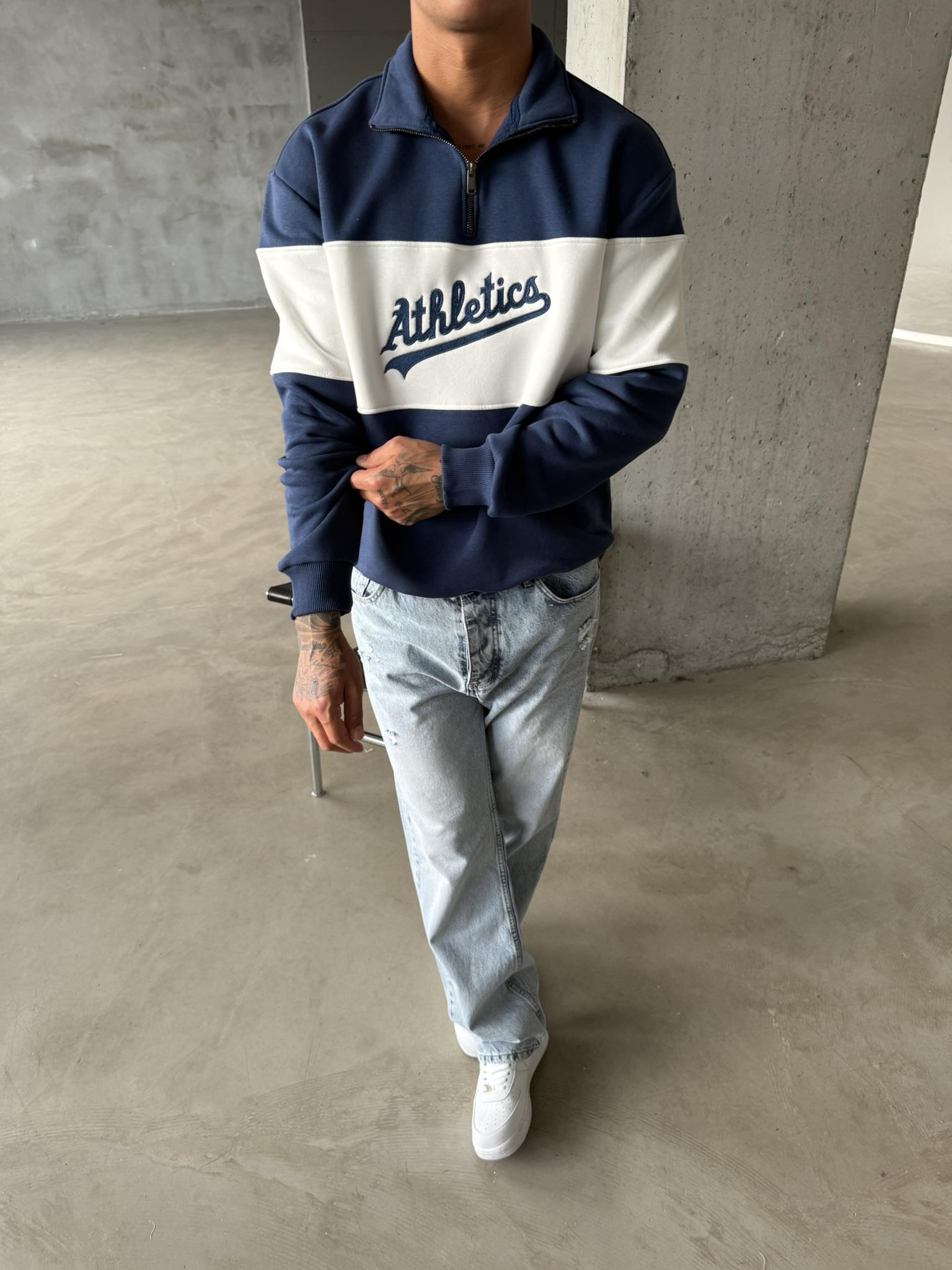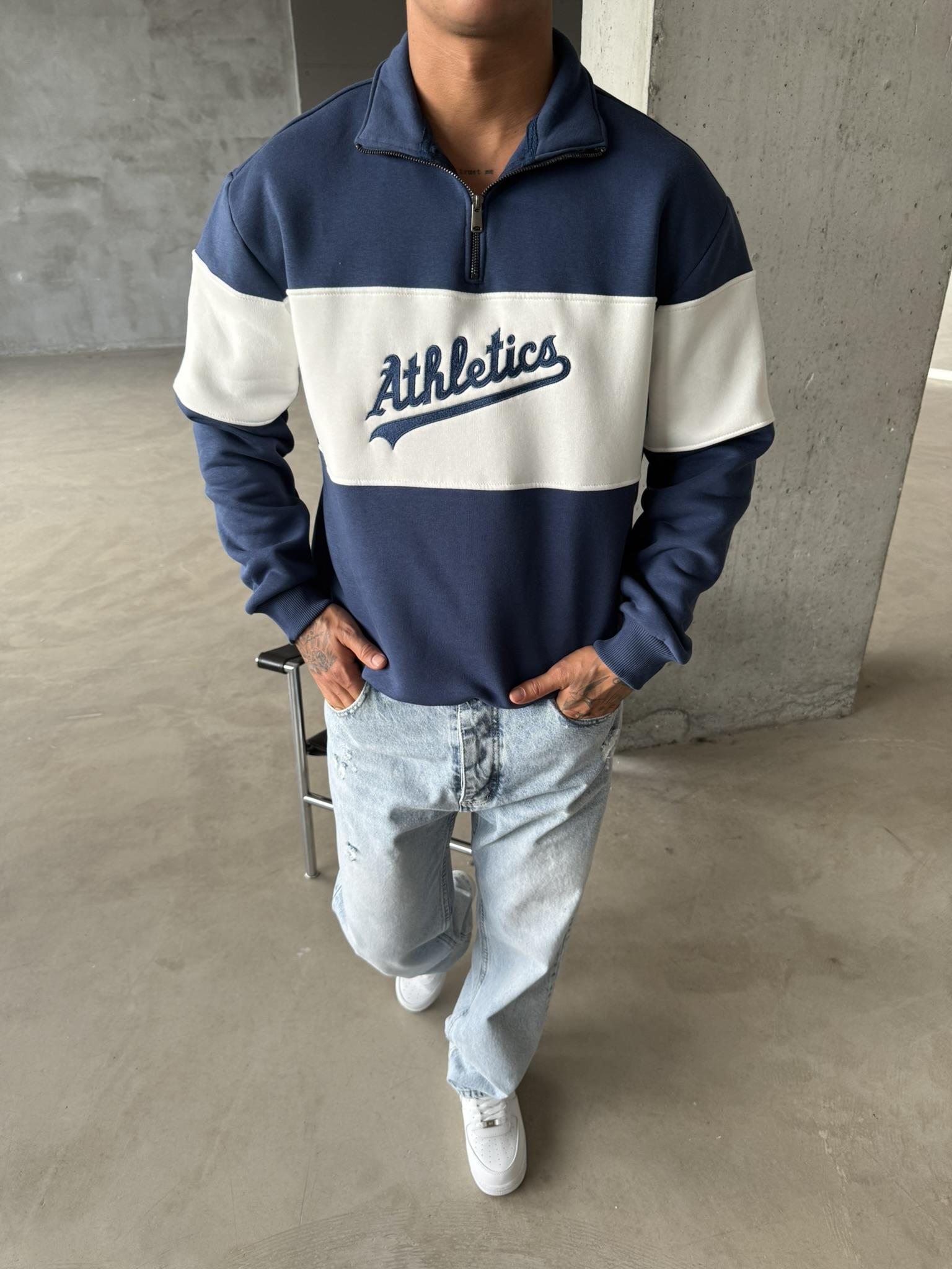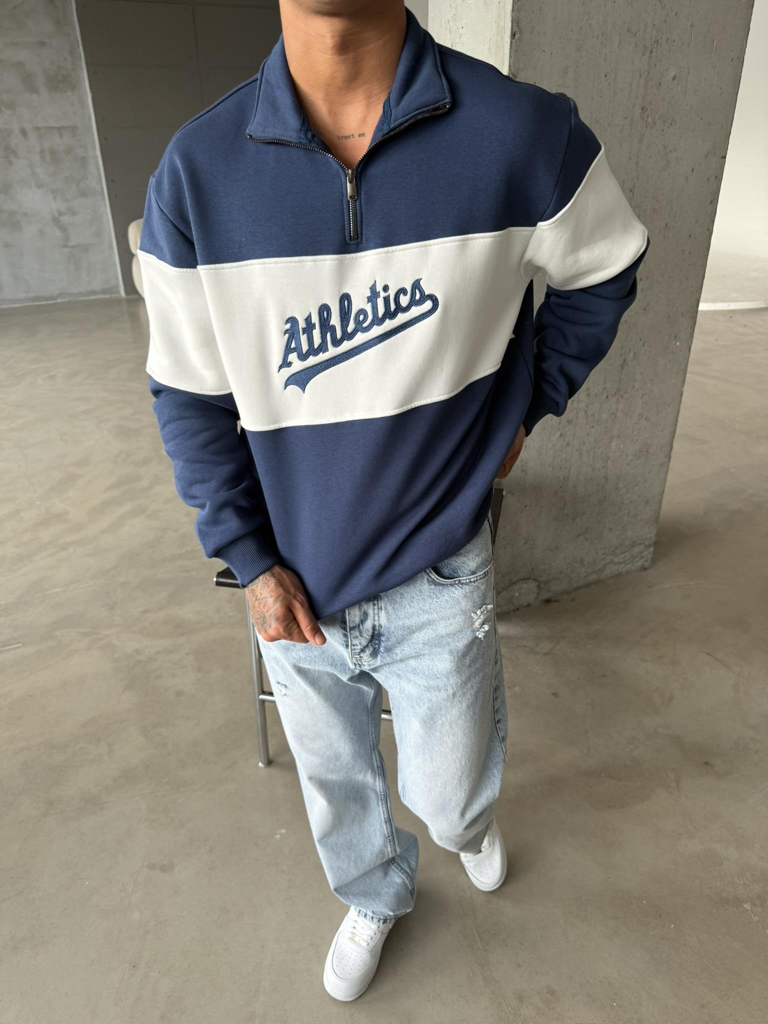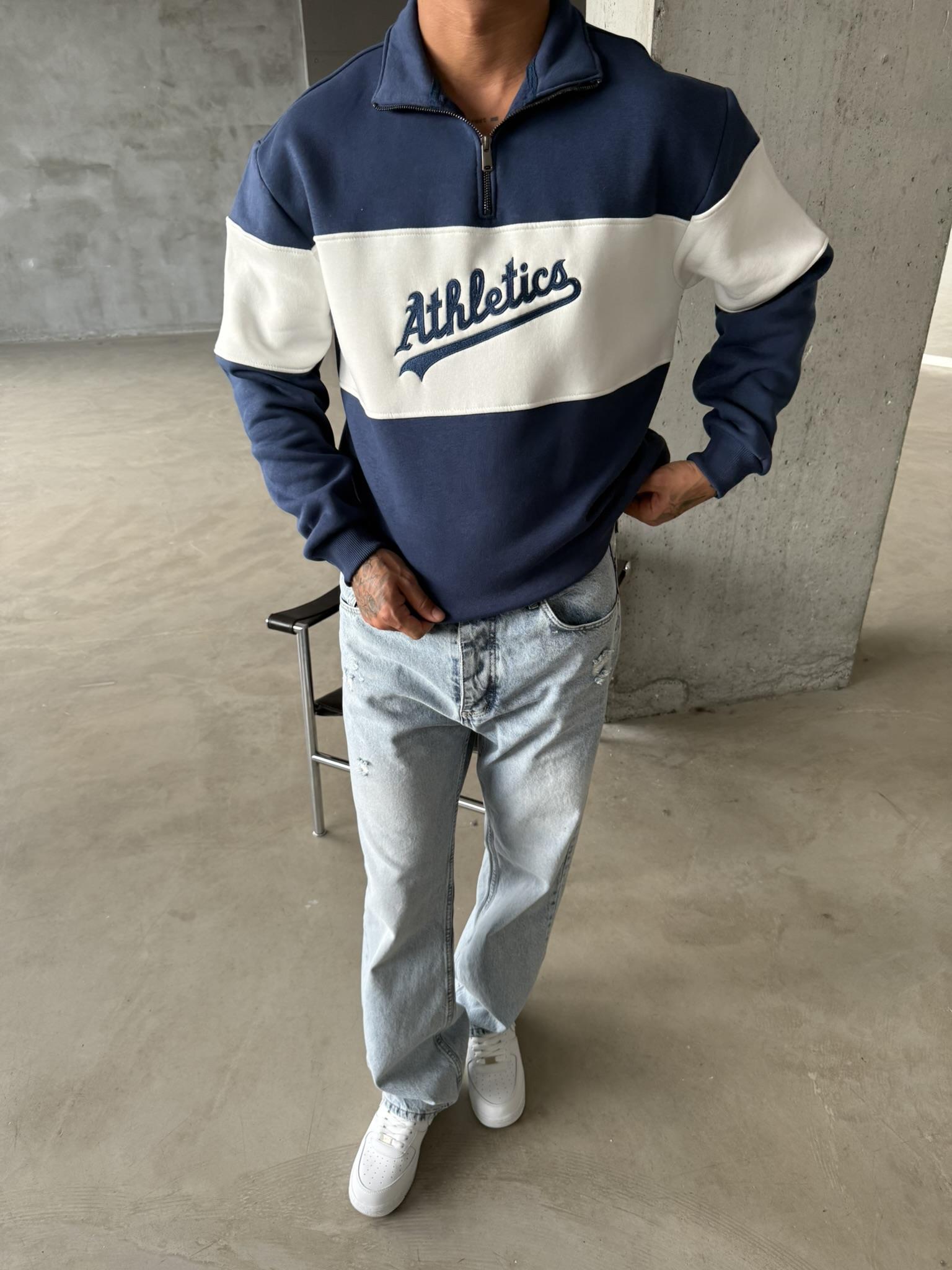 Athletic Nakışlı Yarım Fermuat Zip - Lacivert (SWT.0009-Lacivert-S)