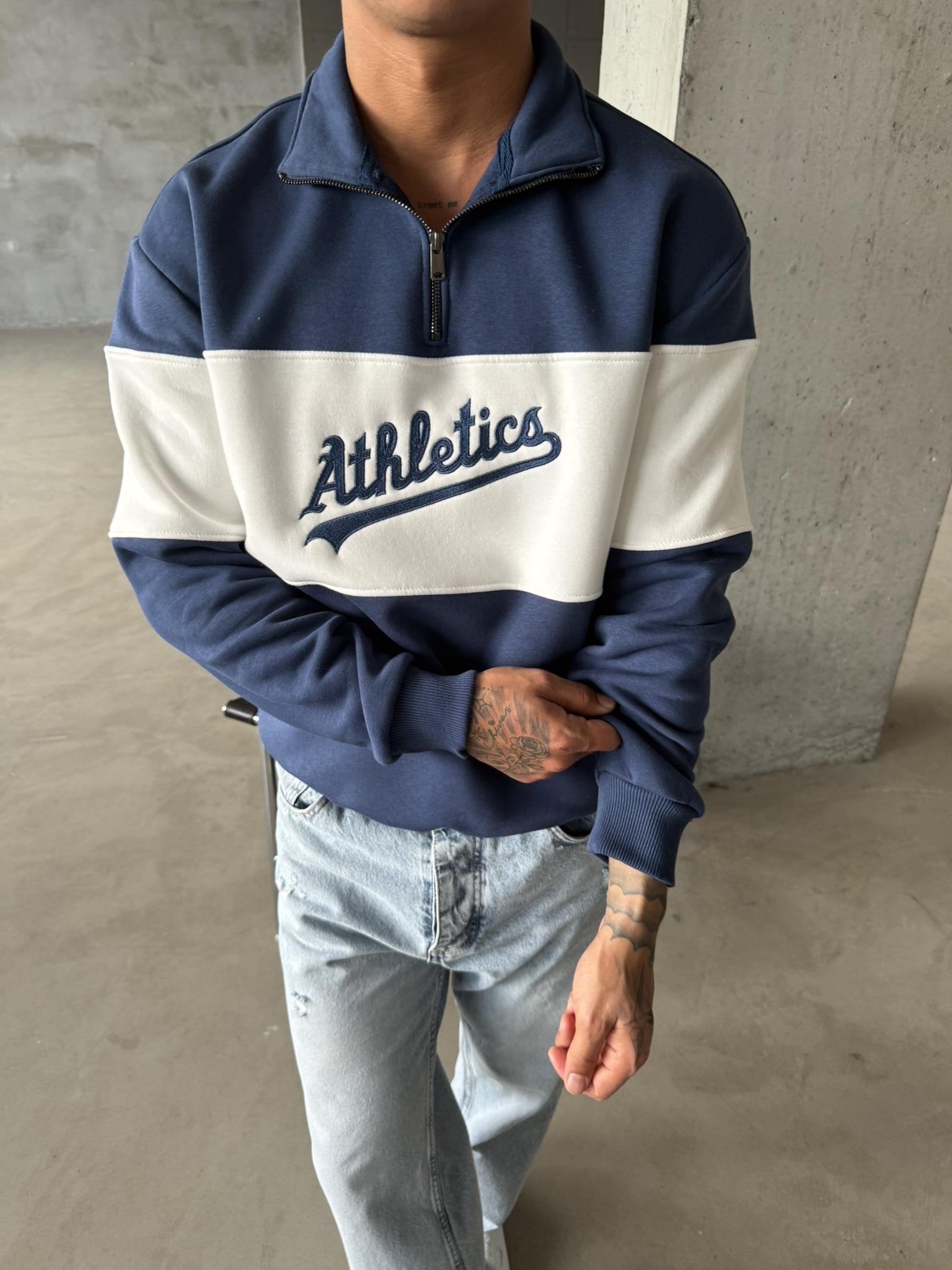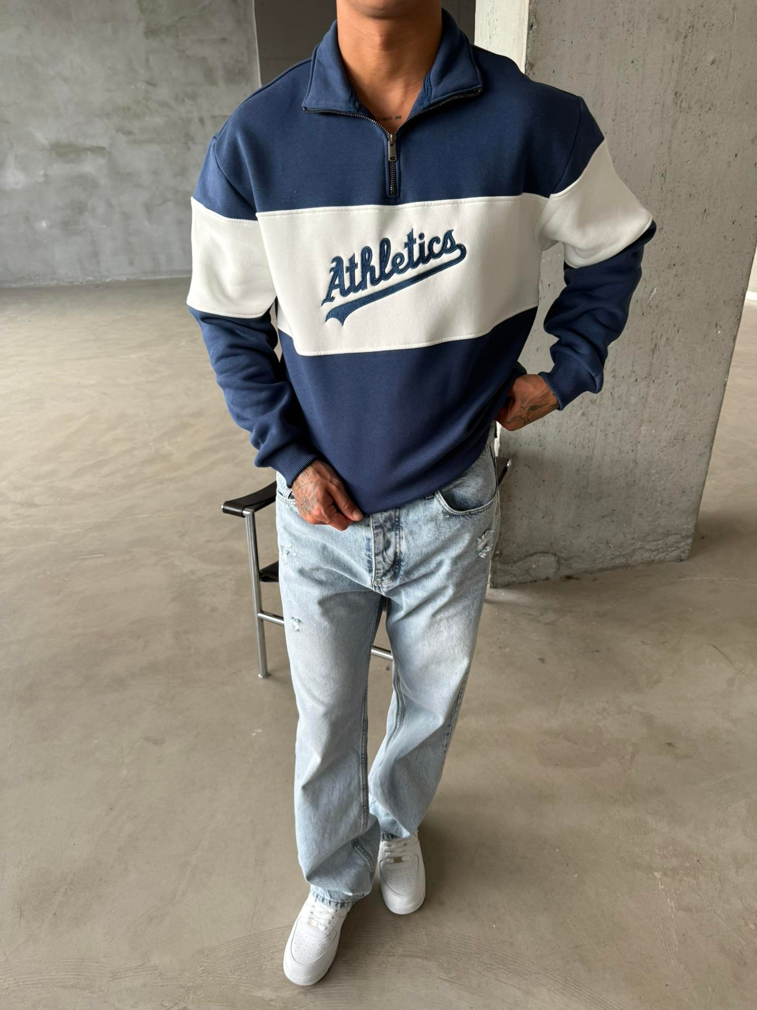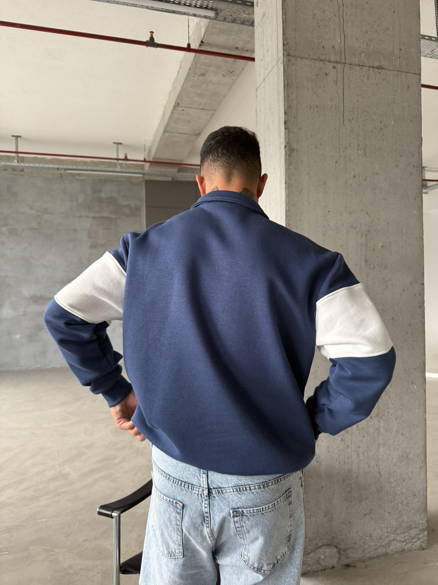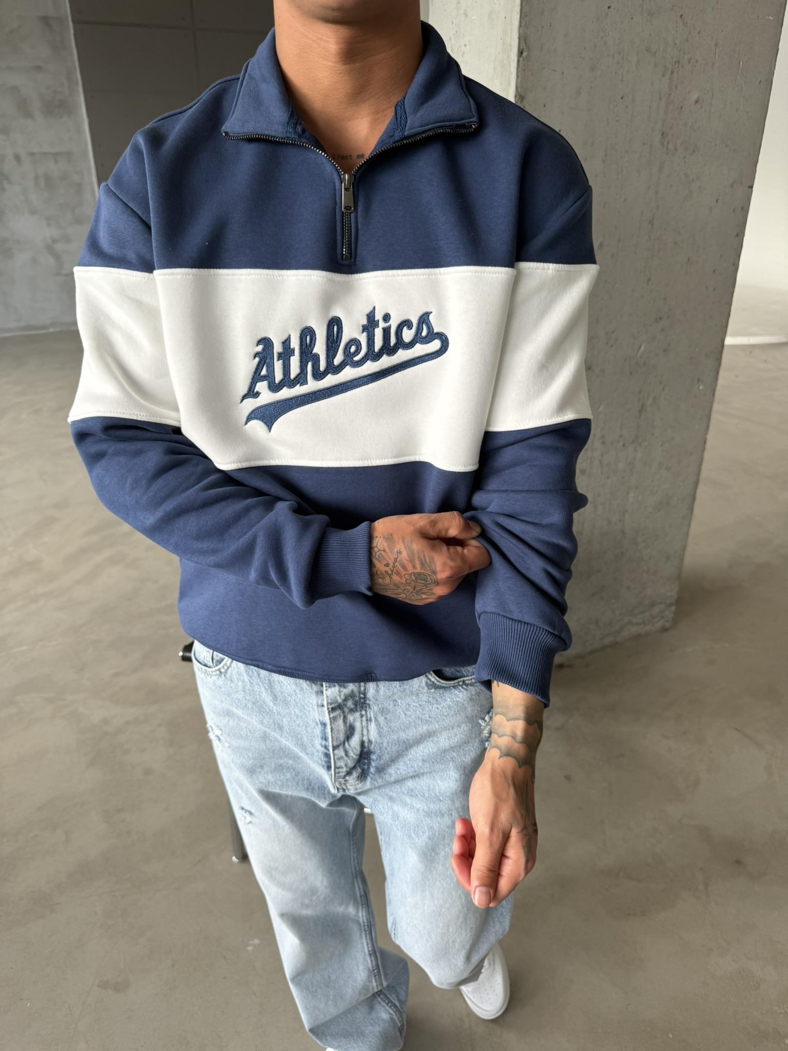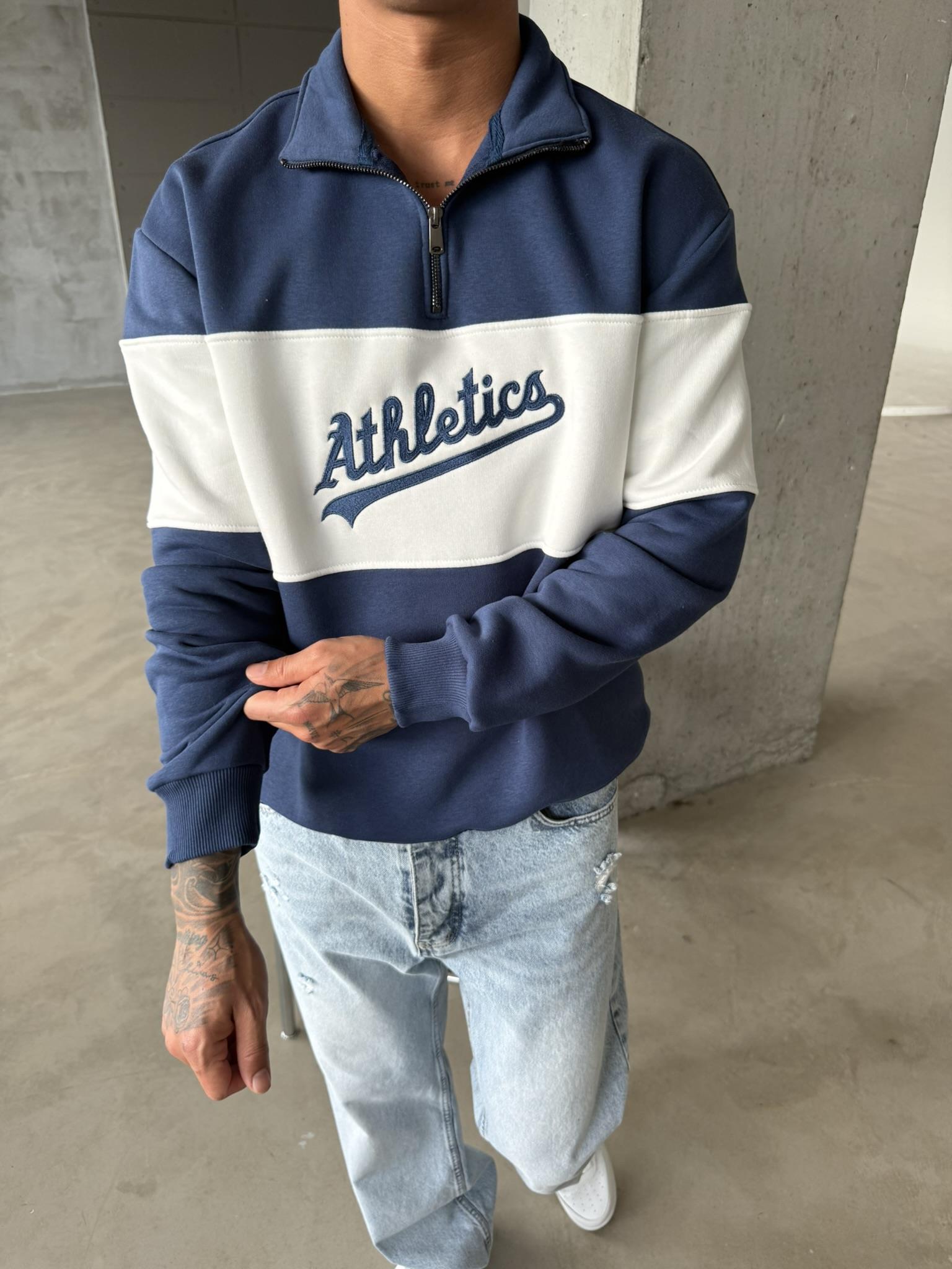Athletic Nakışlı Yarım Fermuat Zip - Lacivert (SWT.0009-Lacivert-S)