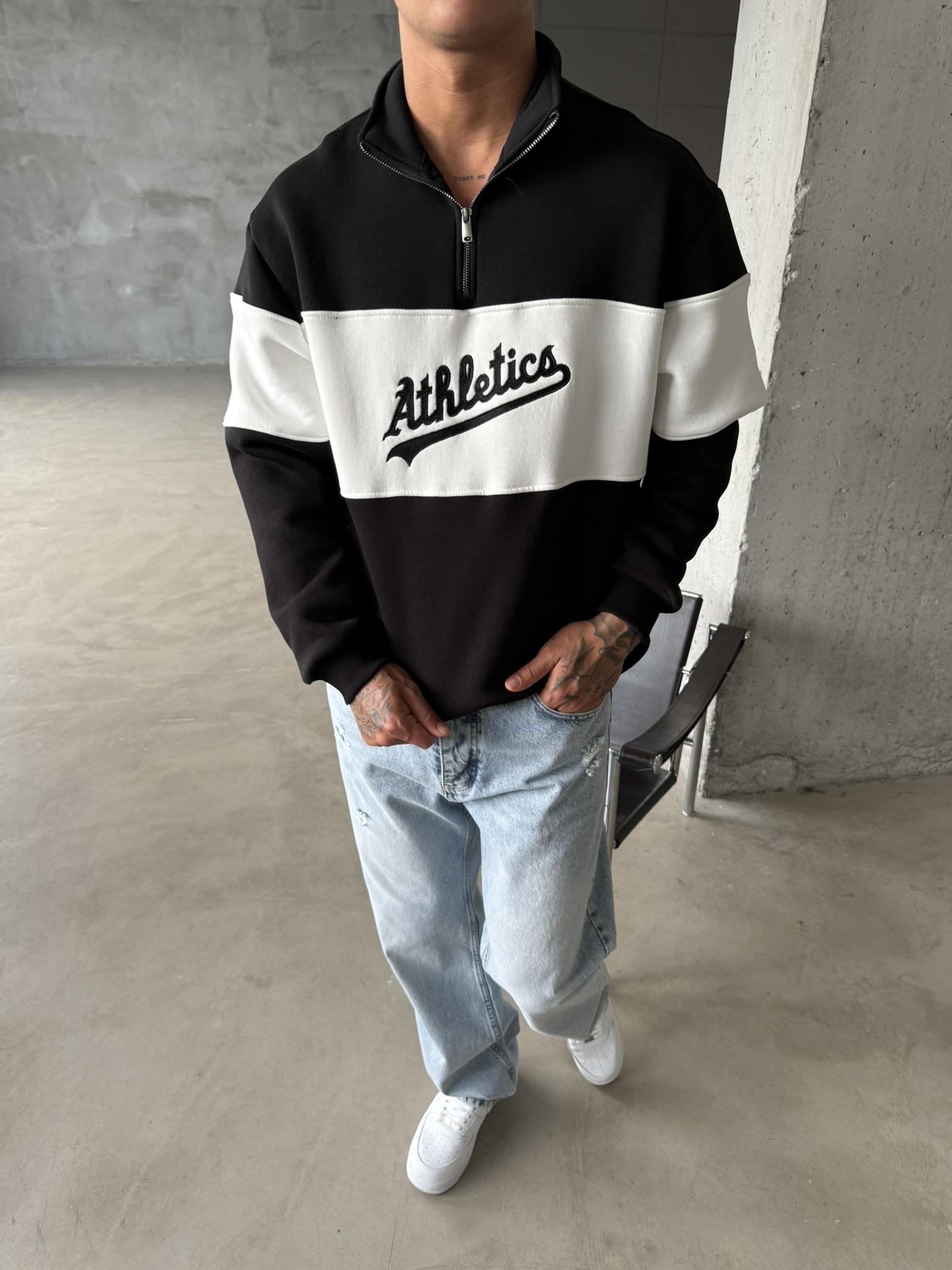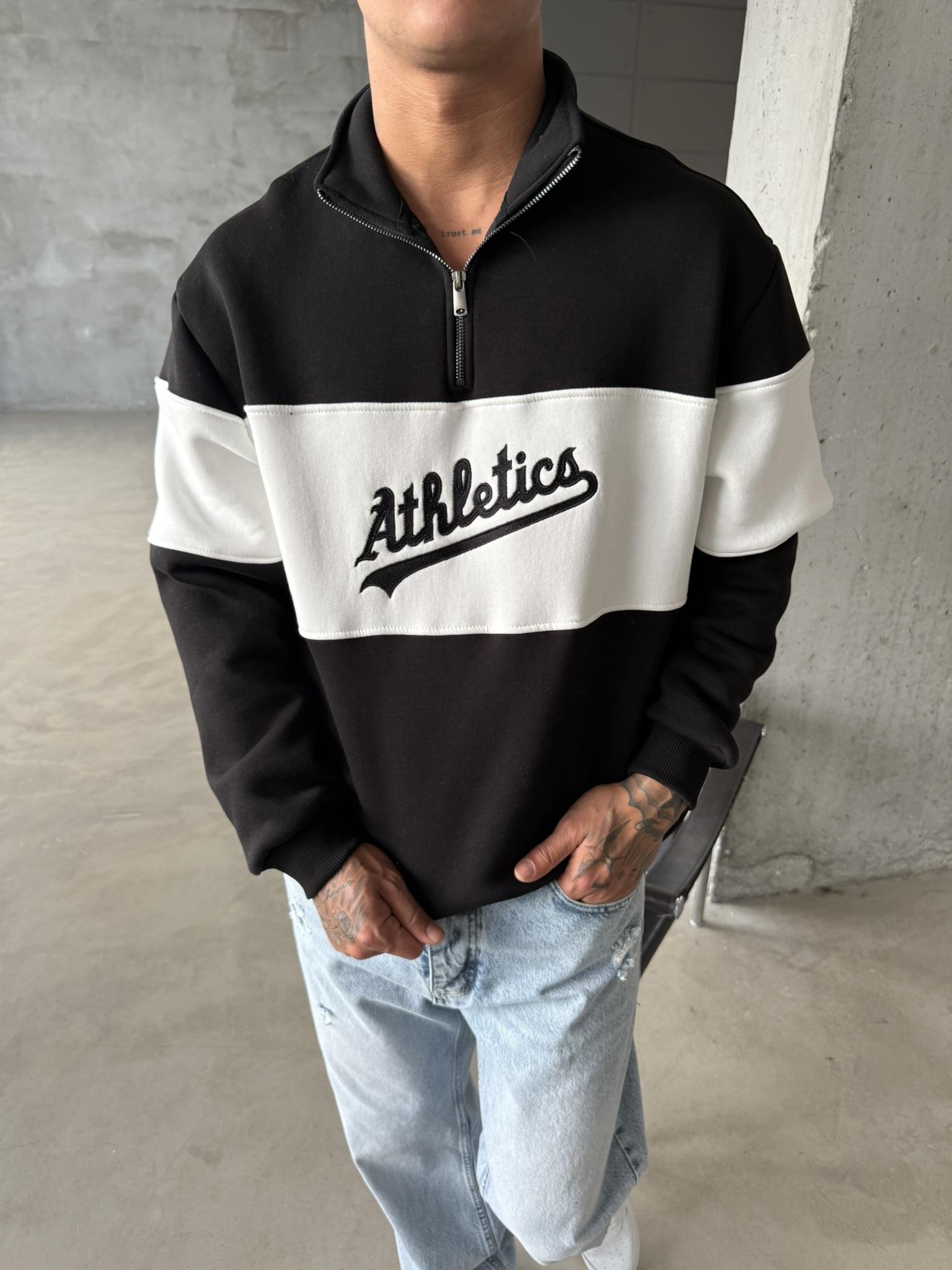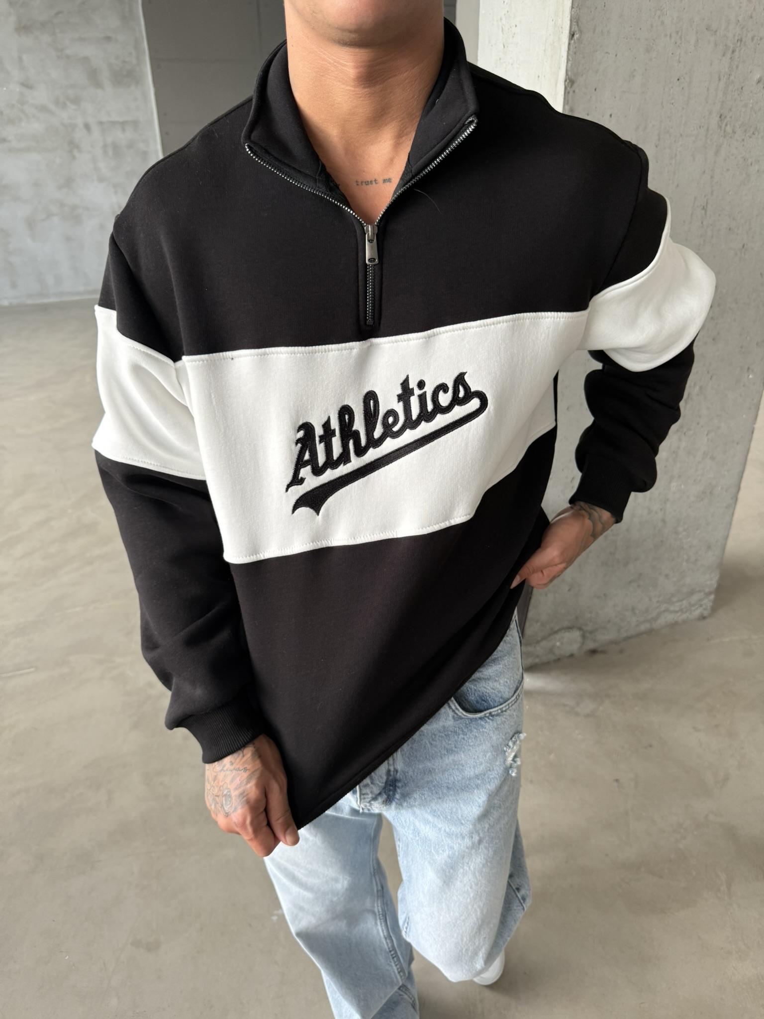 Athletic Nakışlı Yarım Fermuat Zip - Siyah (SWT.0009-Siyah-S)