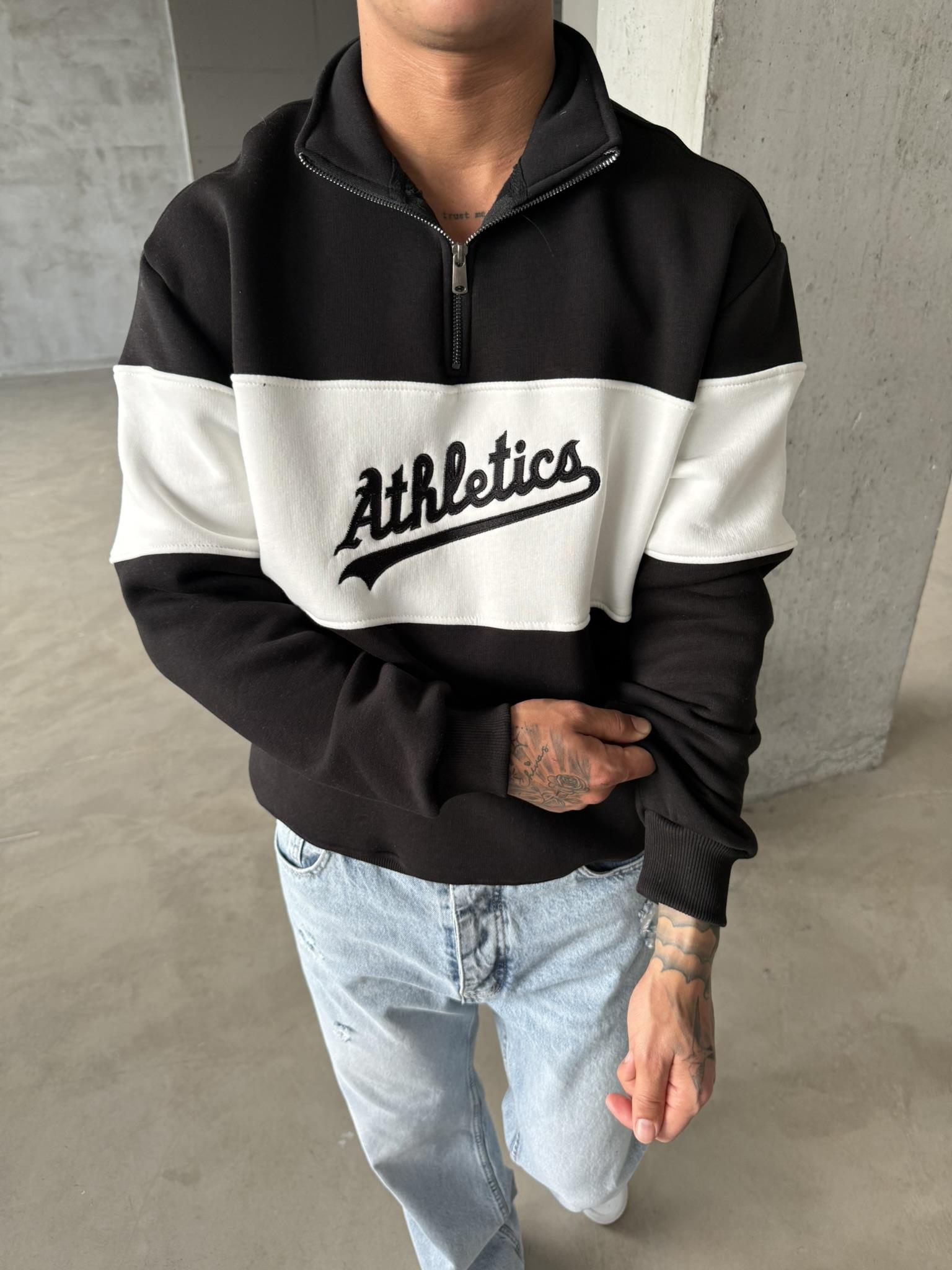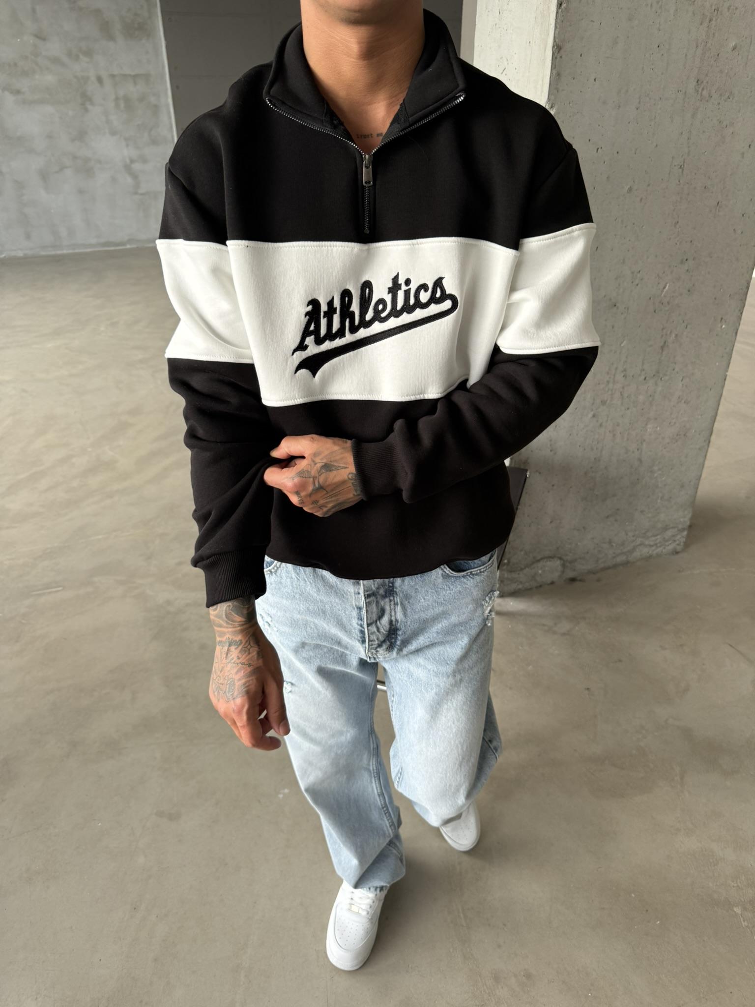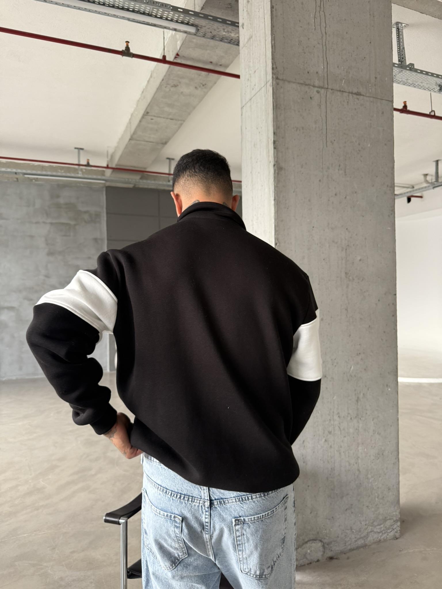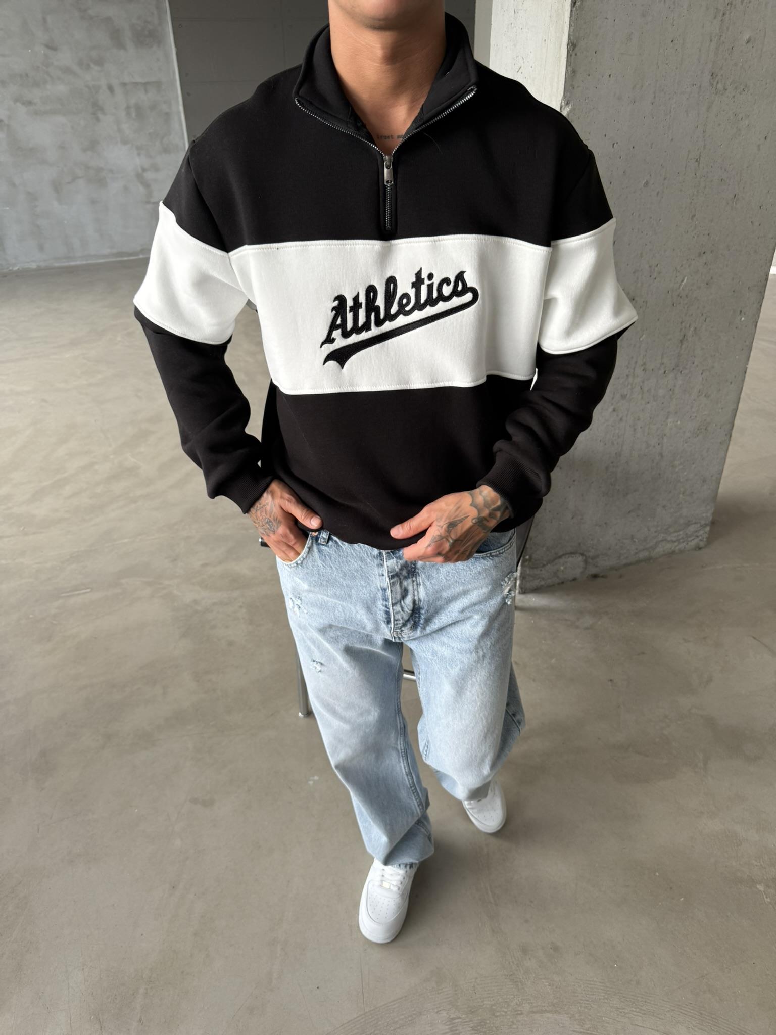 Athletic Nakışlı Yarım Fermuat Zip - Siyah (SWT.0009-Siyah-S)