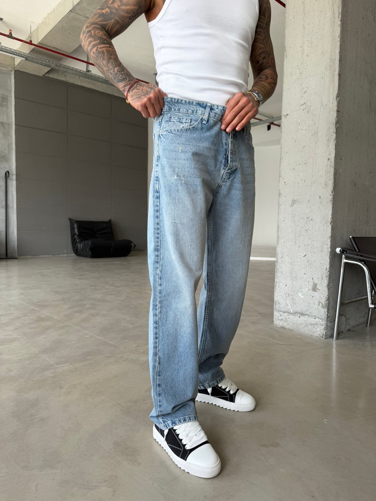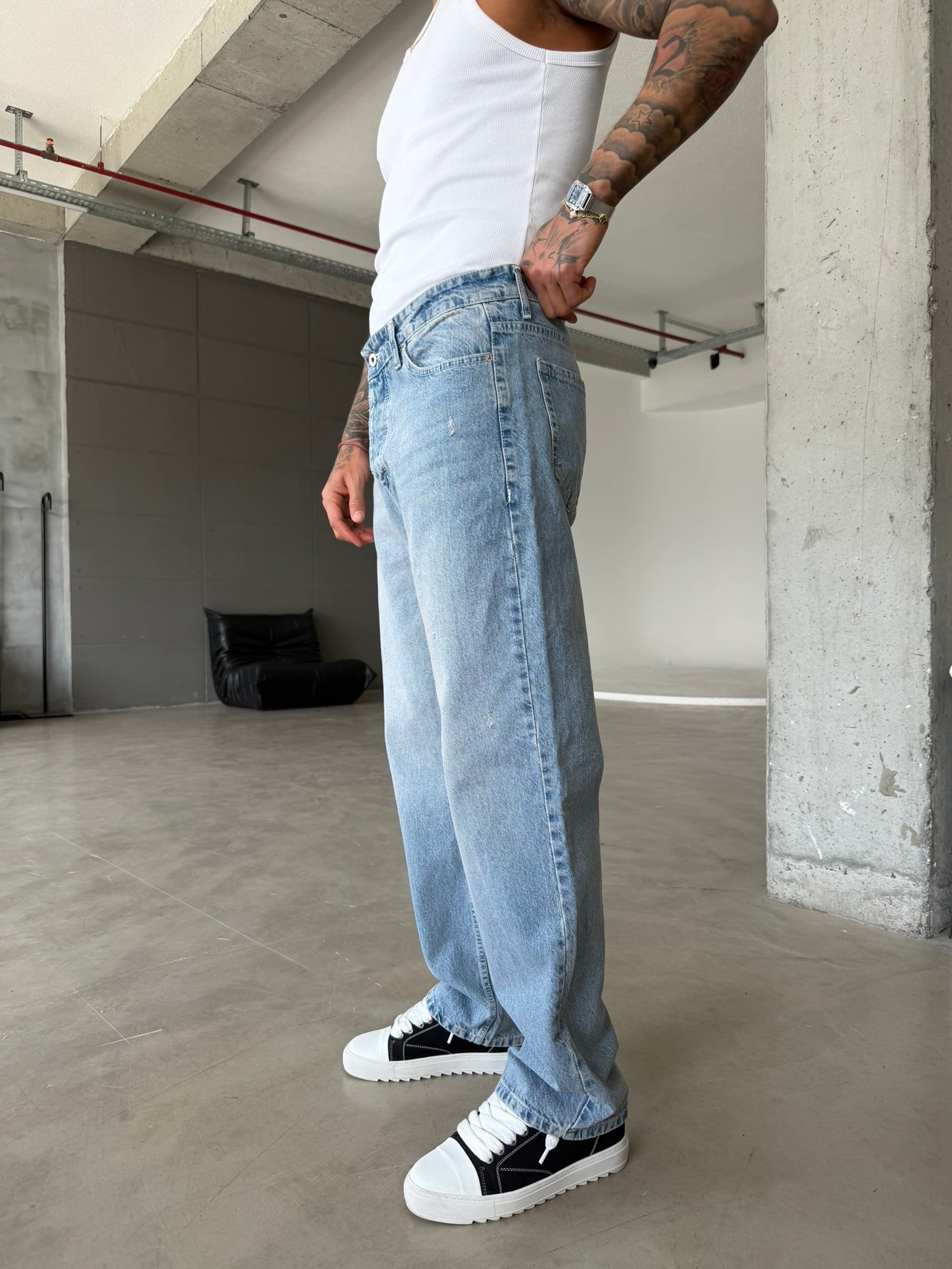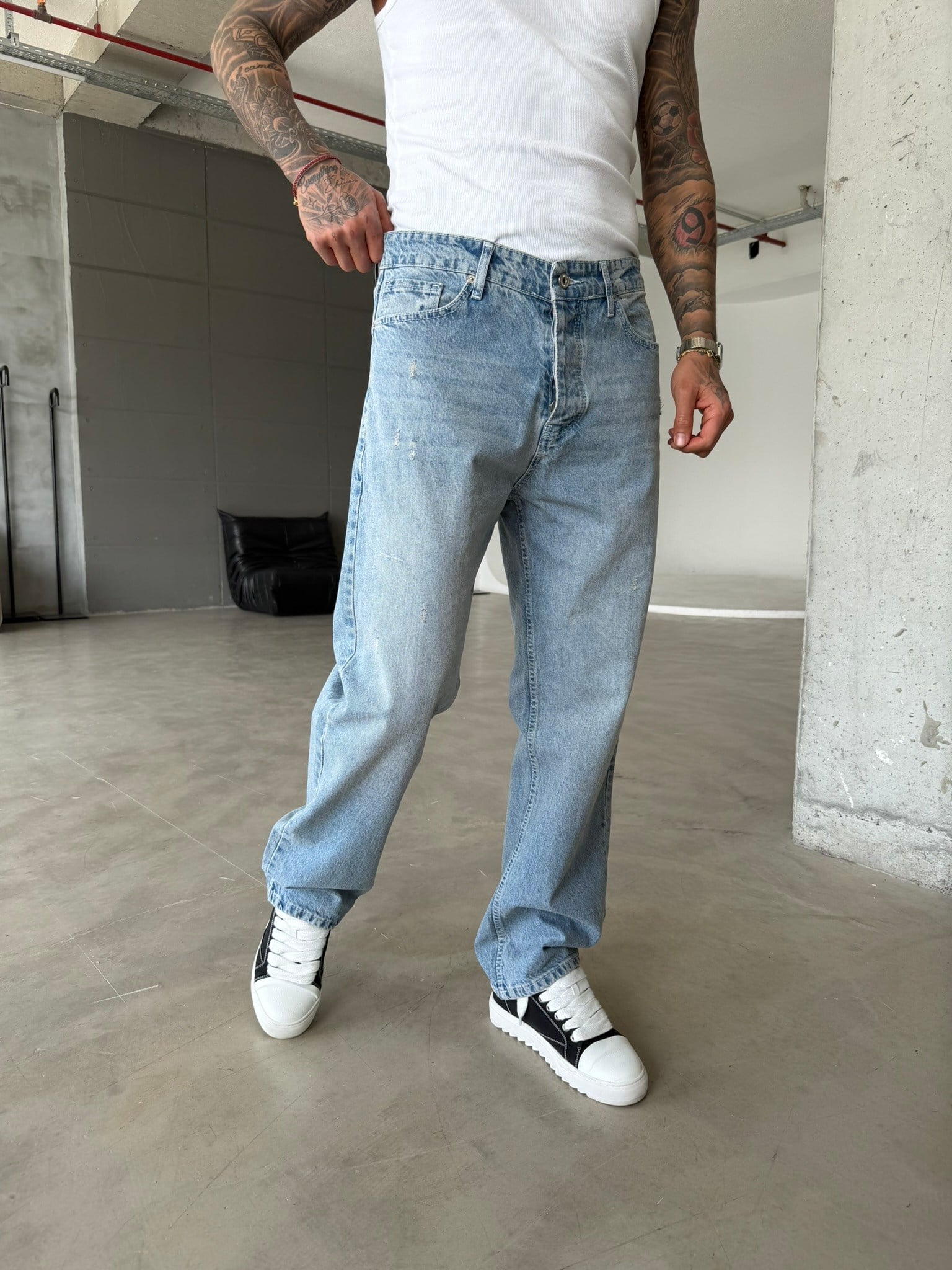 Basic Baggy Fit Detaylı Pantolon - Mavi (PNT.0157-Mavi-S)
