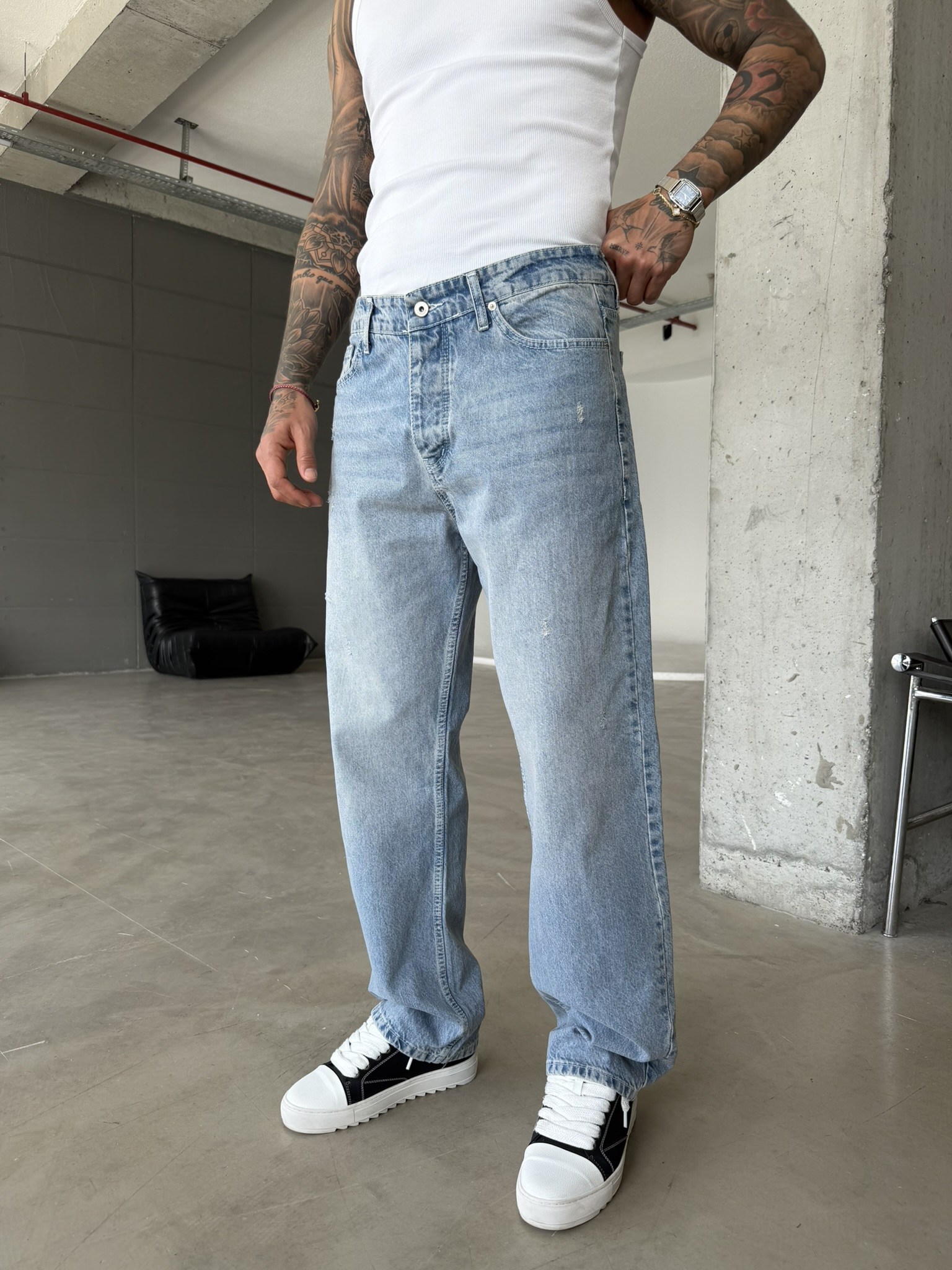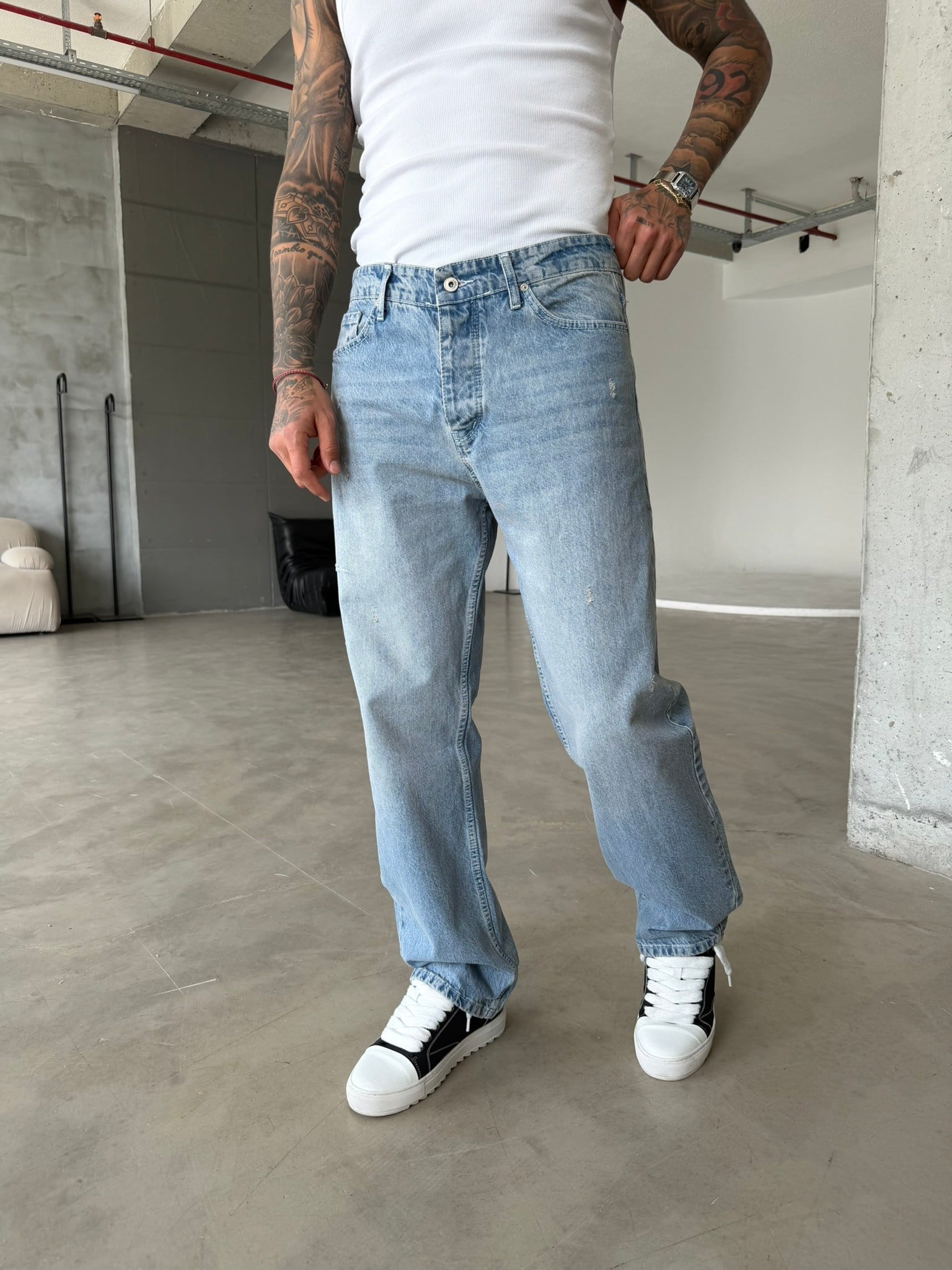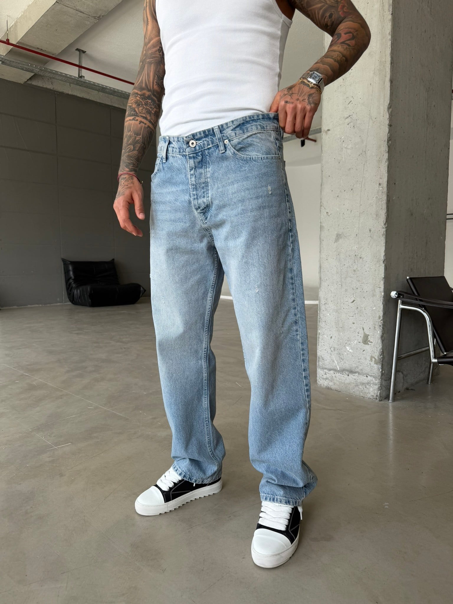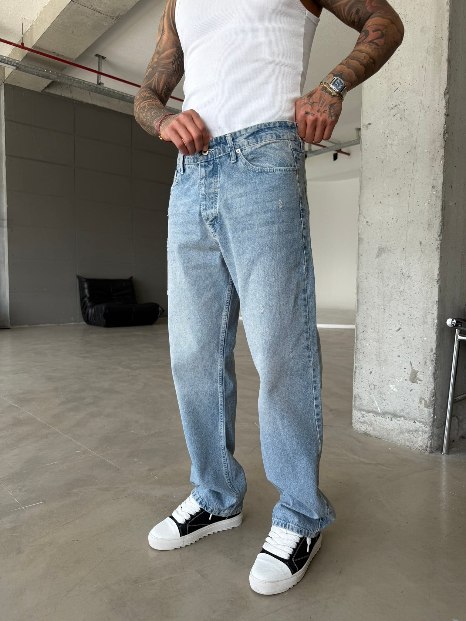 Basic Baggy Fit Detaylı Pantolon - Mavi (PNT.0157-Mavi-S)