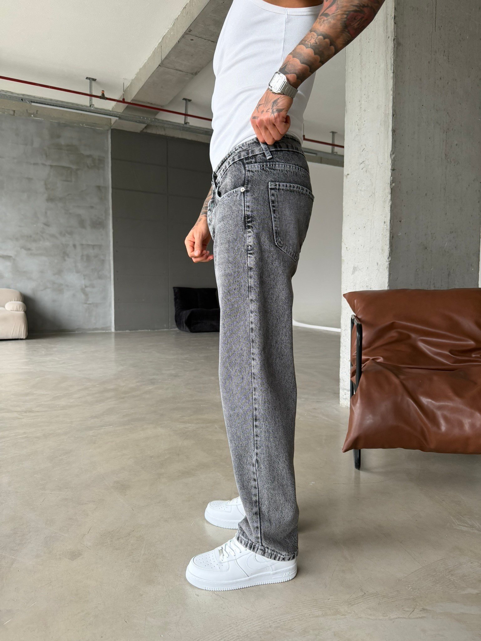Basic Baggy Fit Pantolon - Gri (PNT.0106-Gri-S)