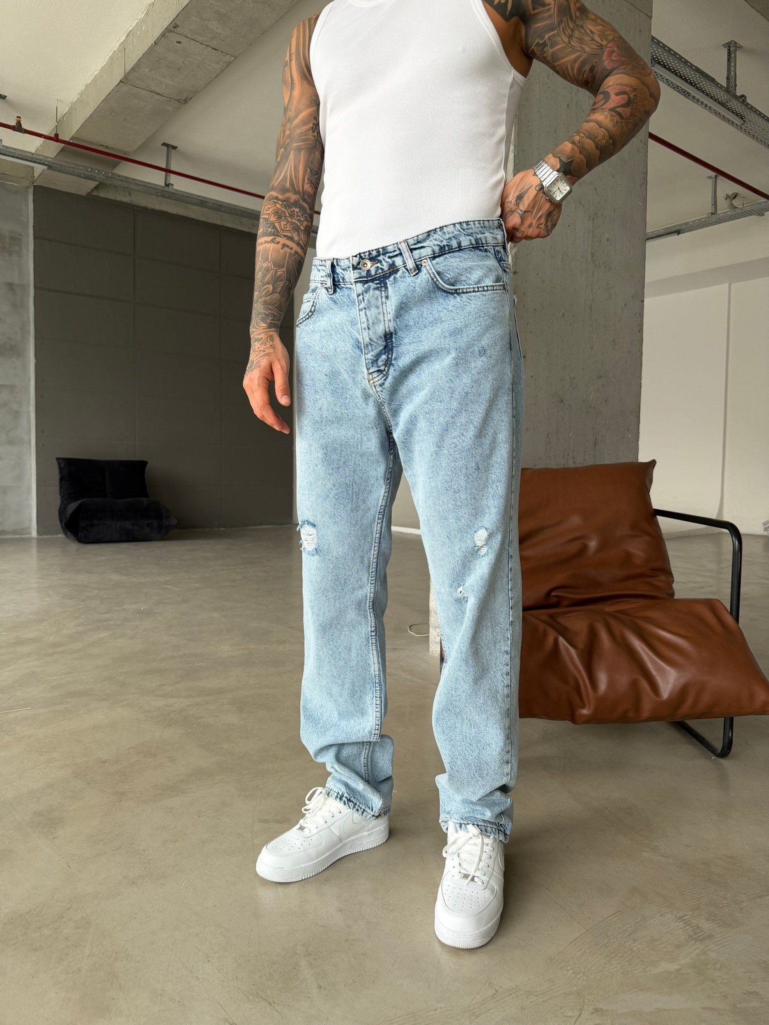 Basic Baggy Fit Yırtık Detay Pantolon - Mavi (PNT.0124-Mavi-29)