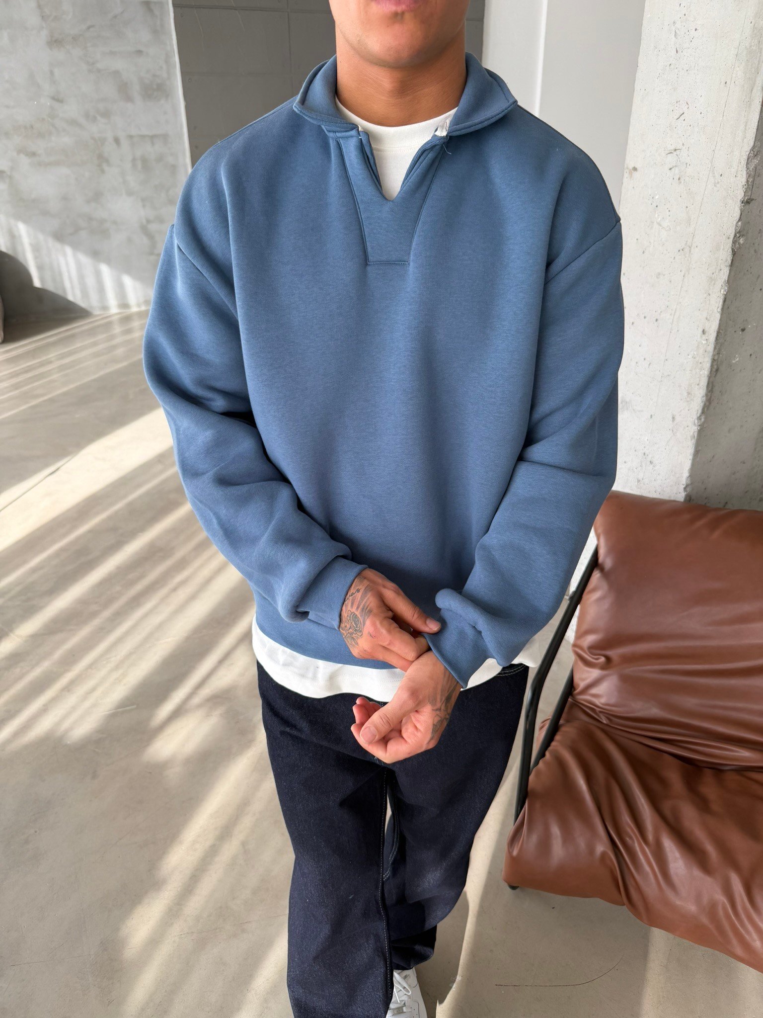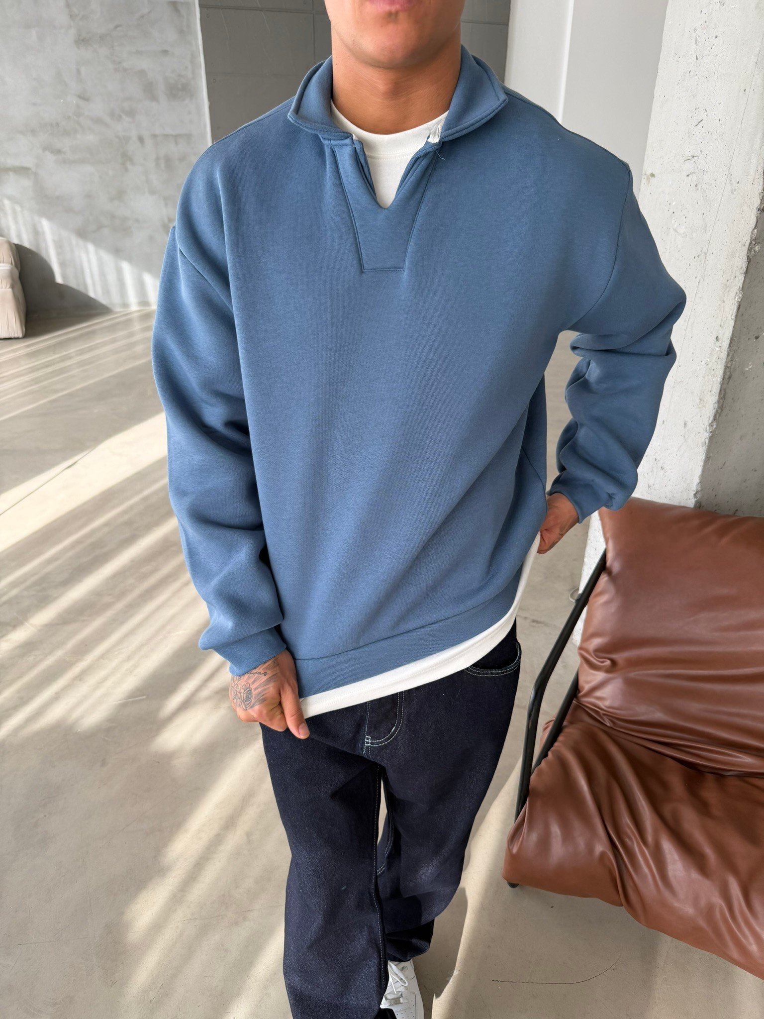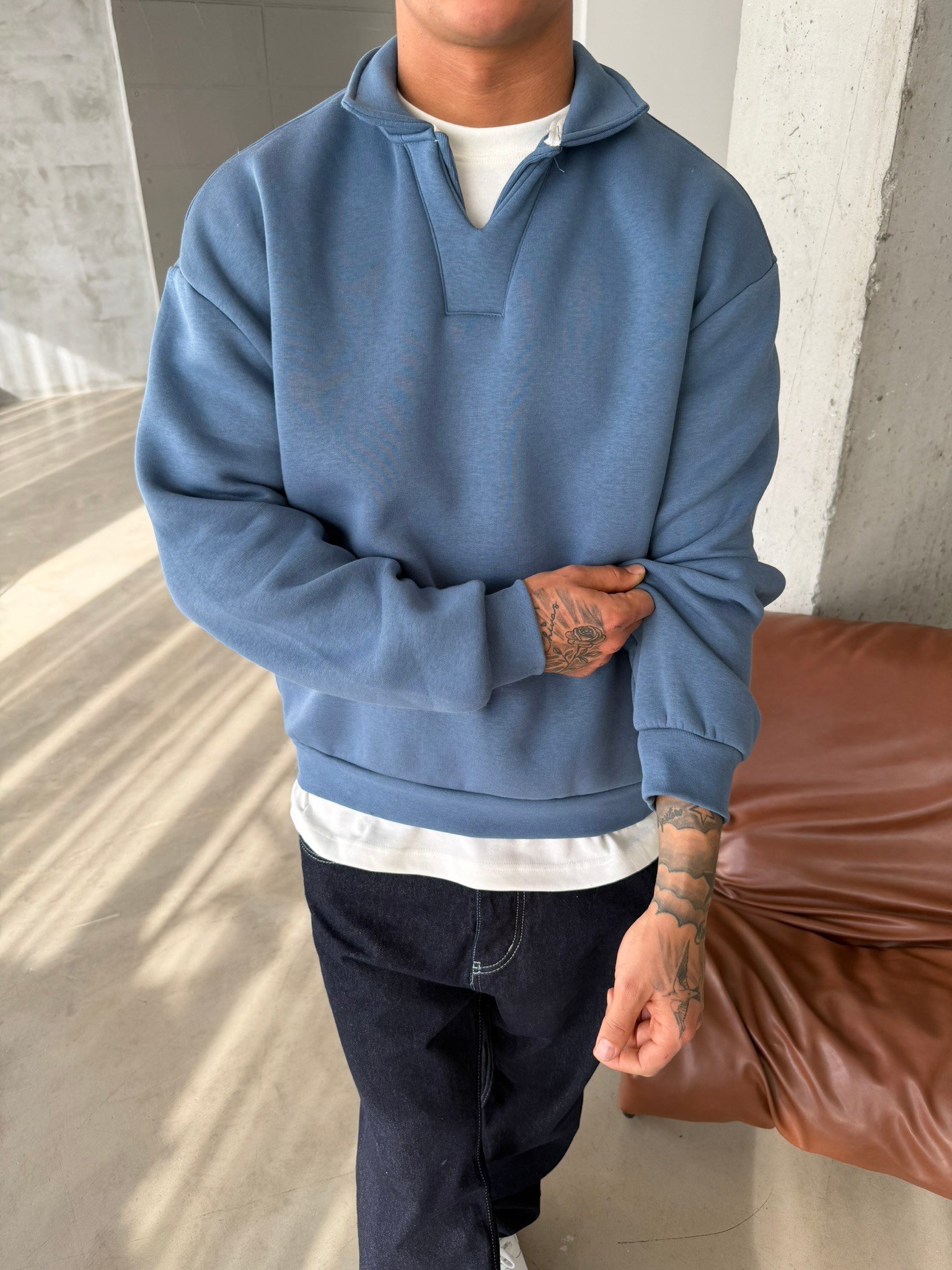 Basic Pat Yaka Polo Sweat - İndigo (SWT.0075-İndigo-S)