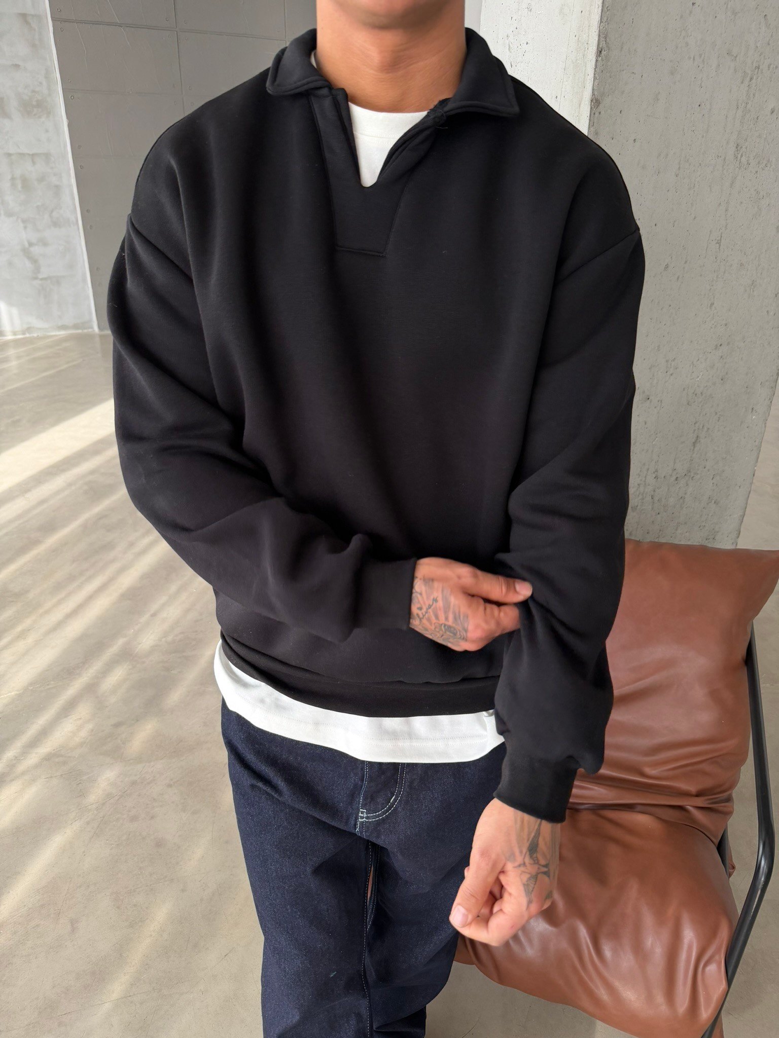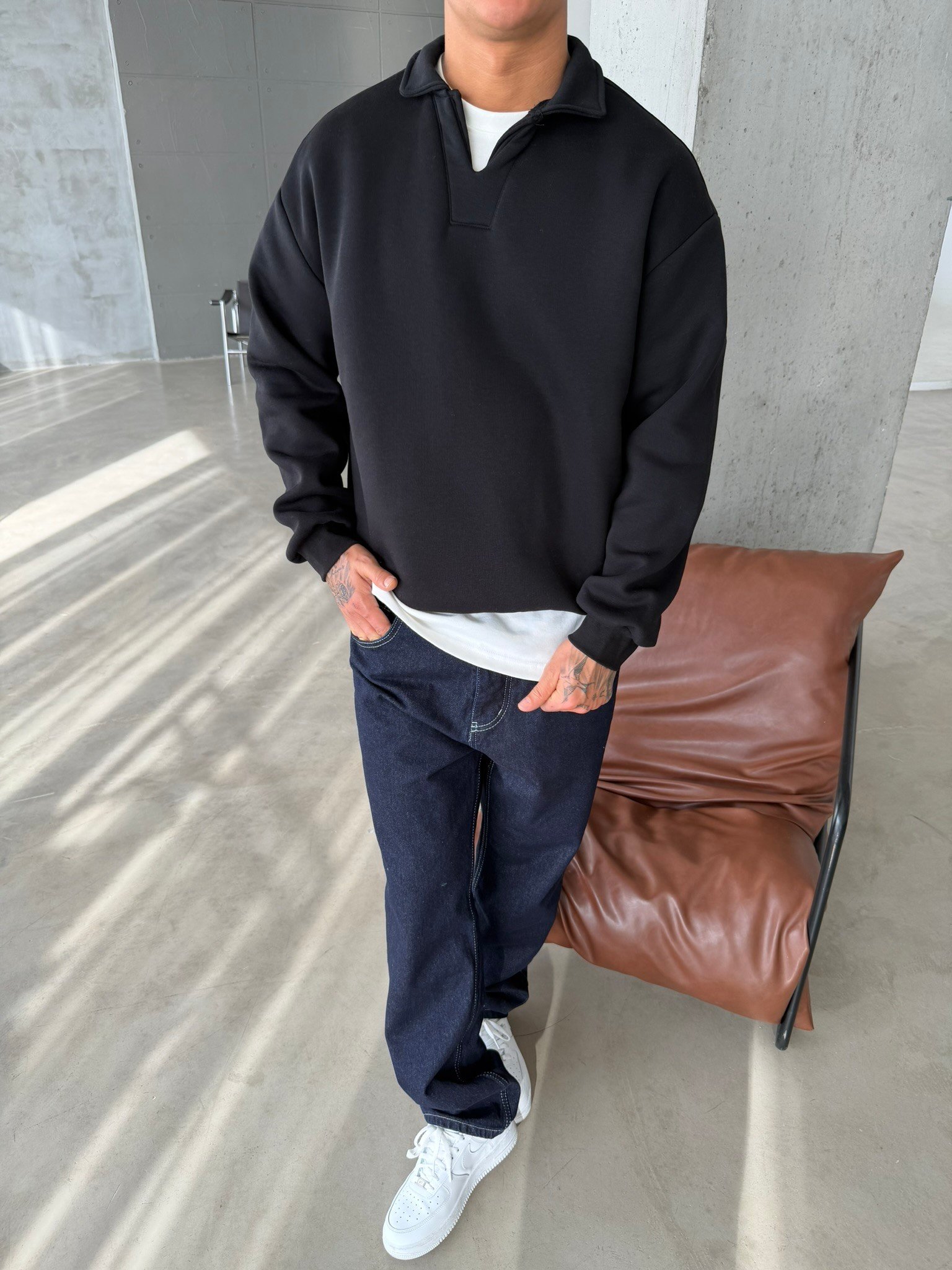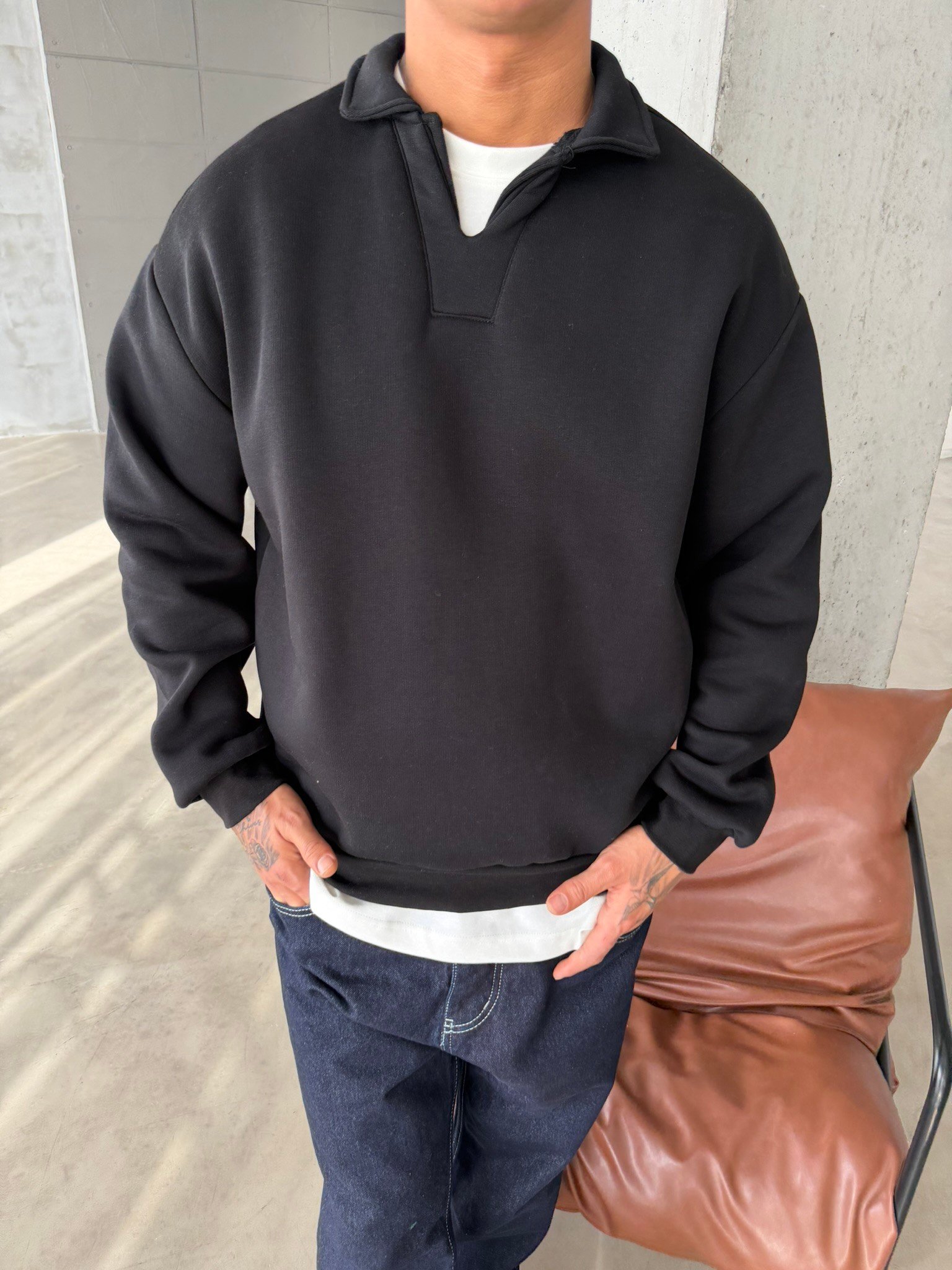 Basic Pat Yaka Polo Sweat - Siyah (SWT.0075-Siyah-S)