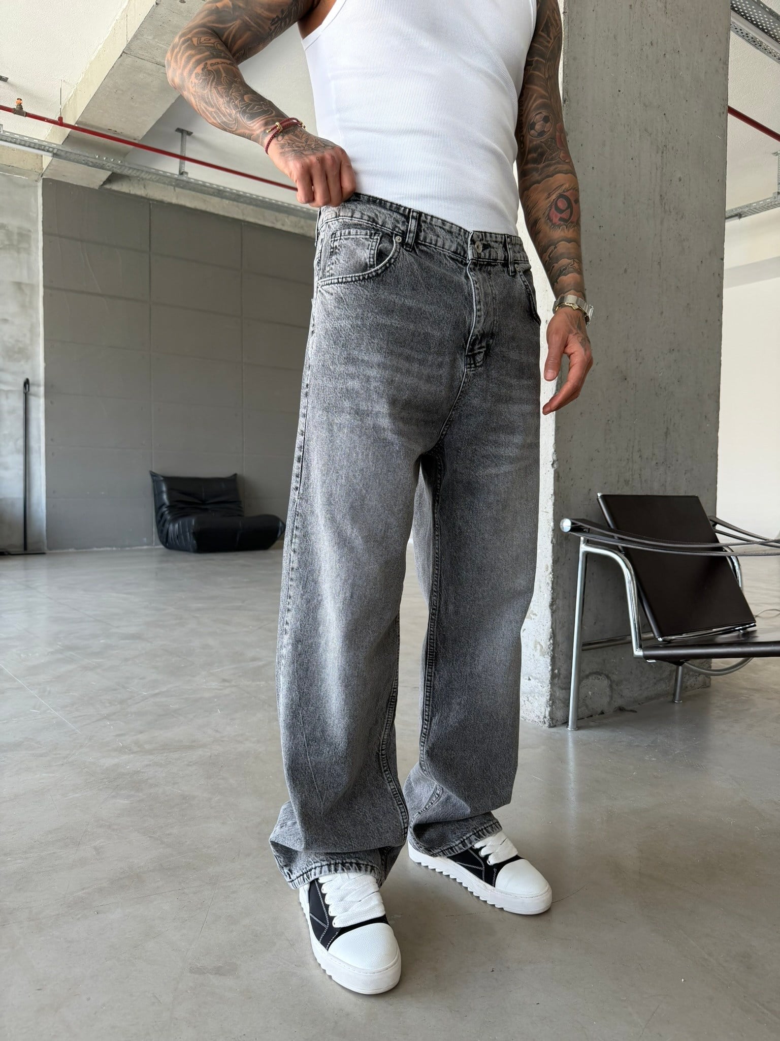 Basic Relax Baggy Pantolon - Gri (PNT.0145-Gri-29)