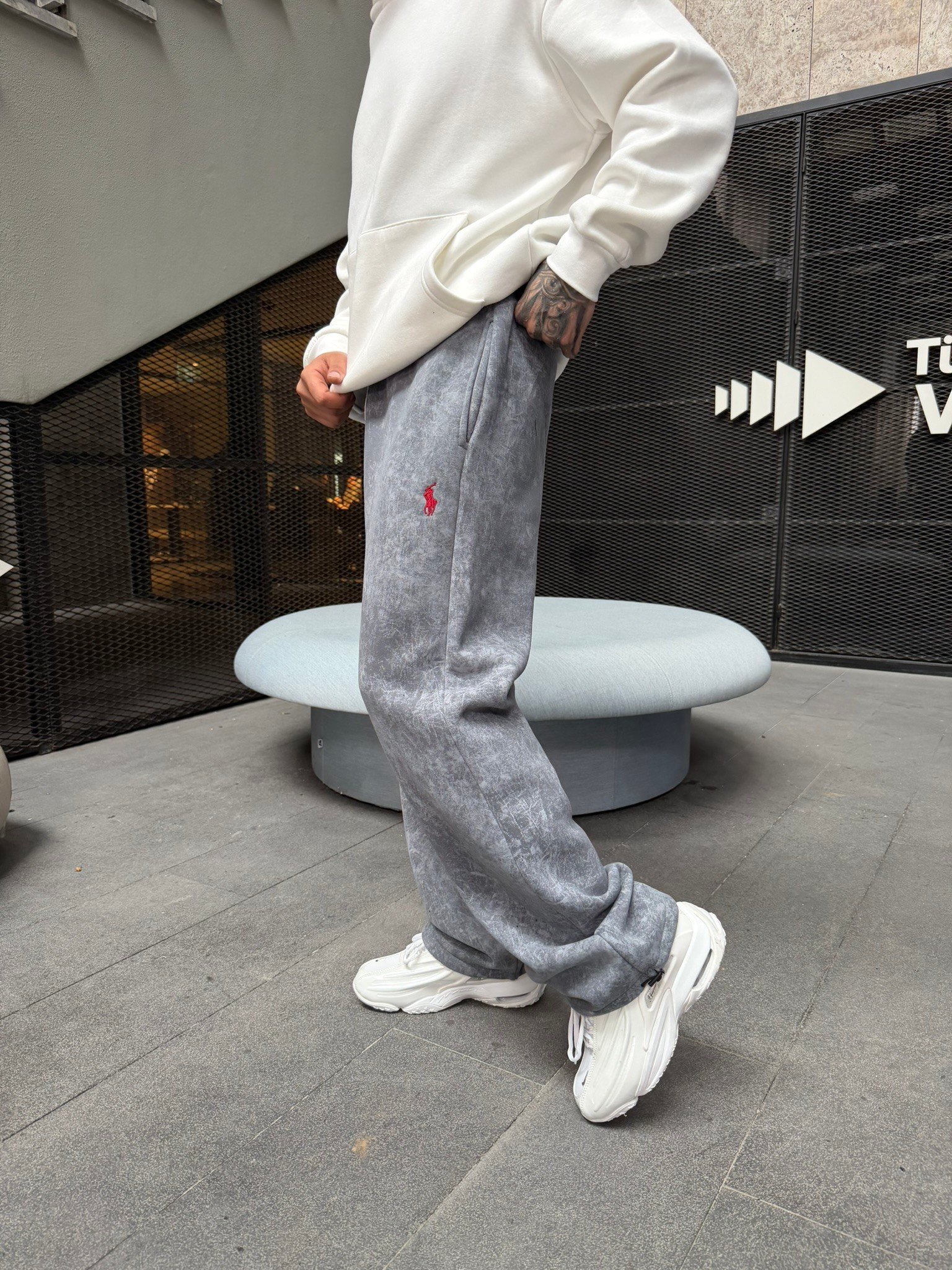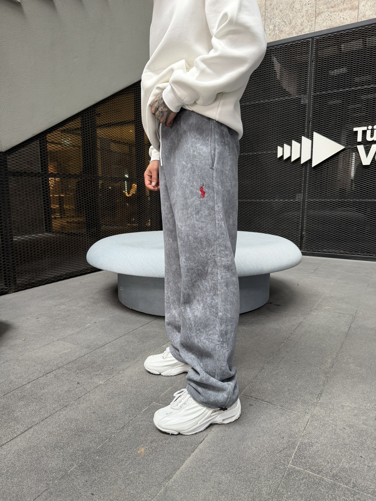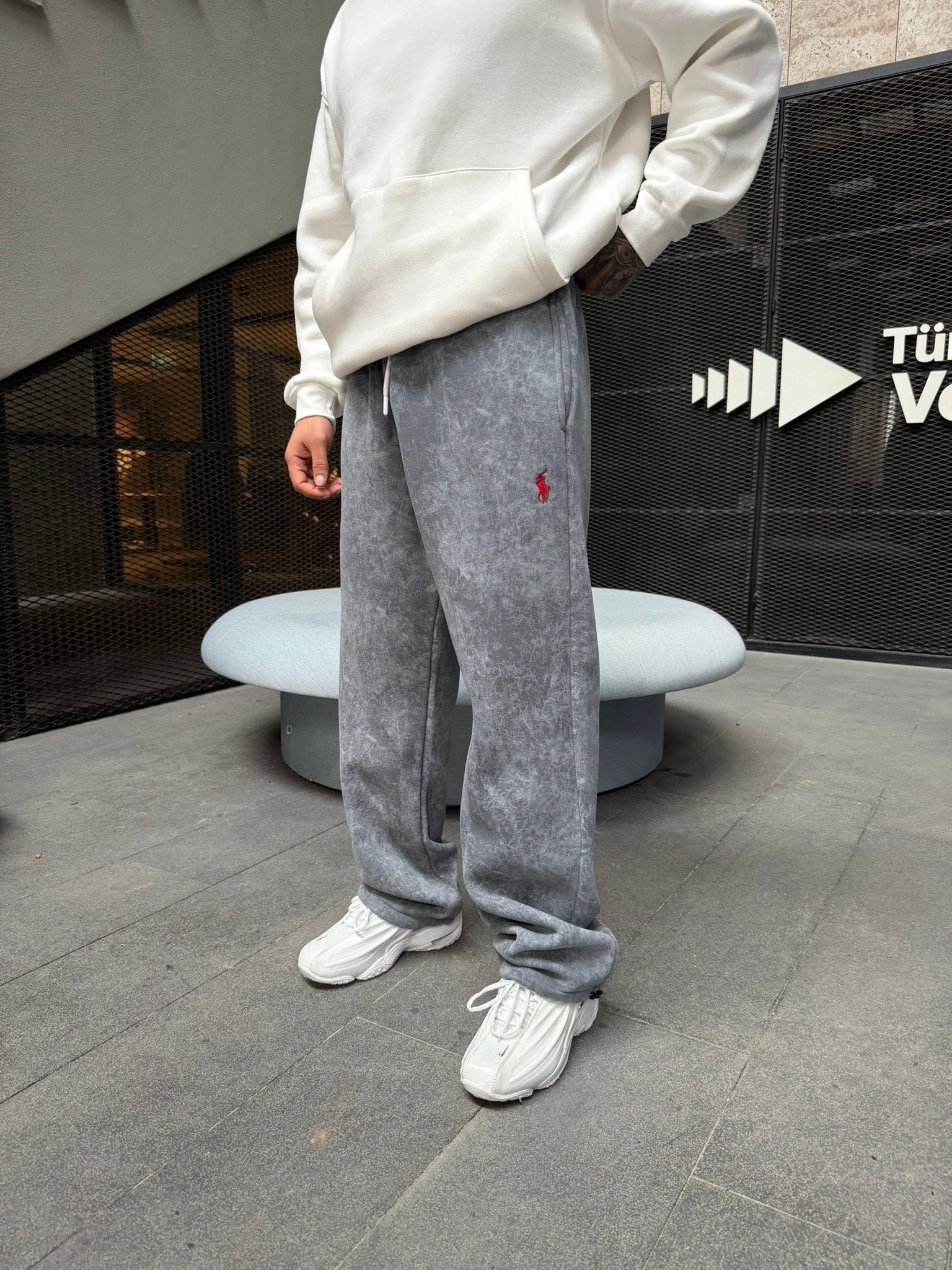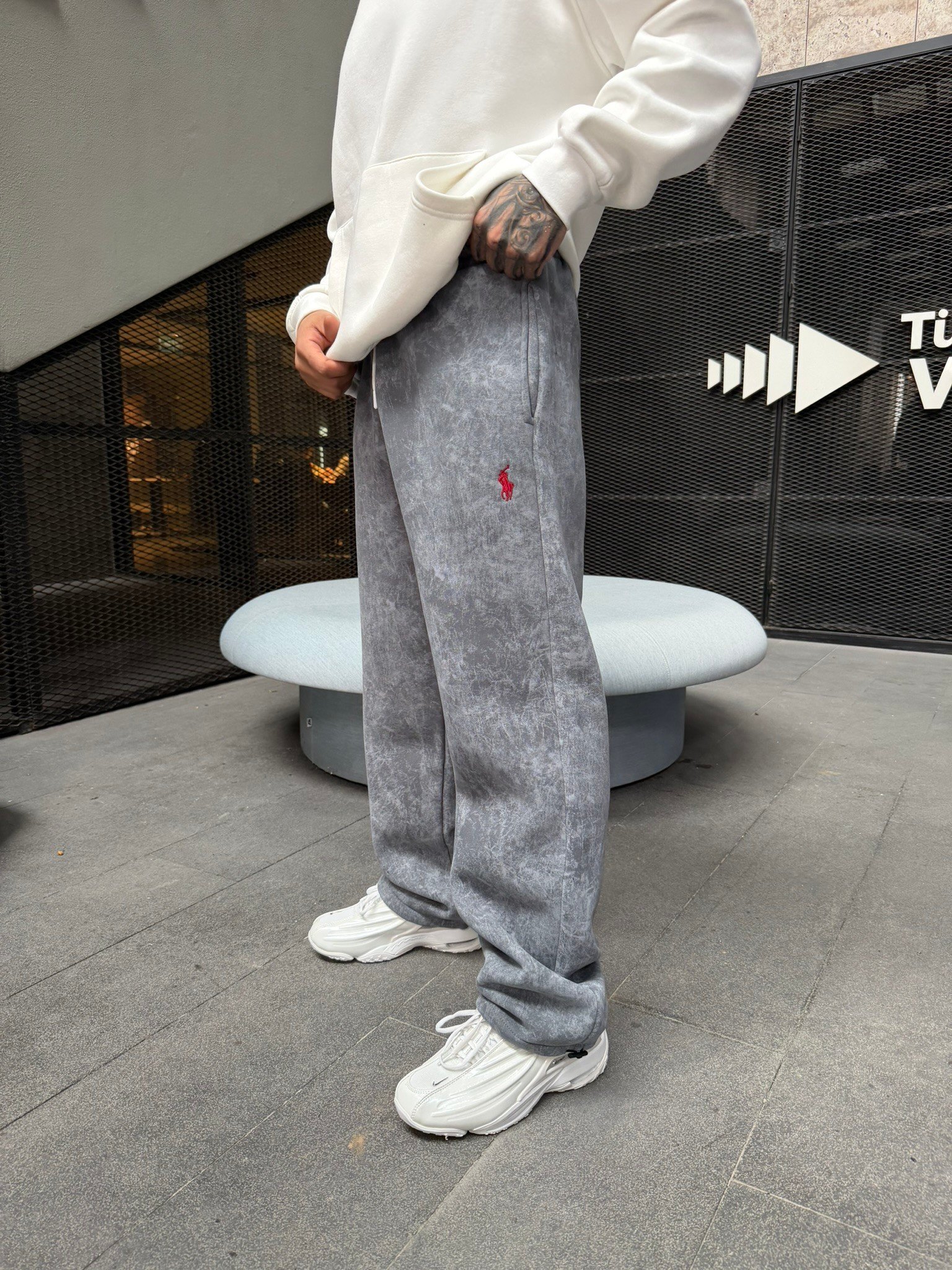 Basic Wide Yıkamlı Acid Baggy Eşofman - Füme (EŞF.0046-Füme-S)