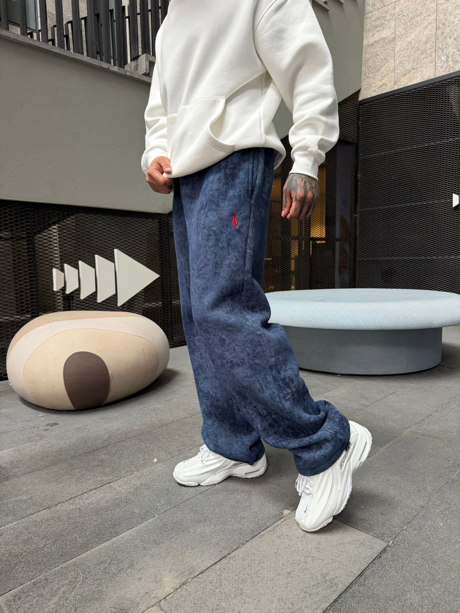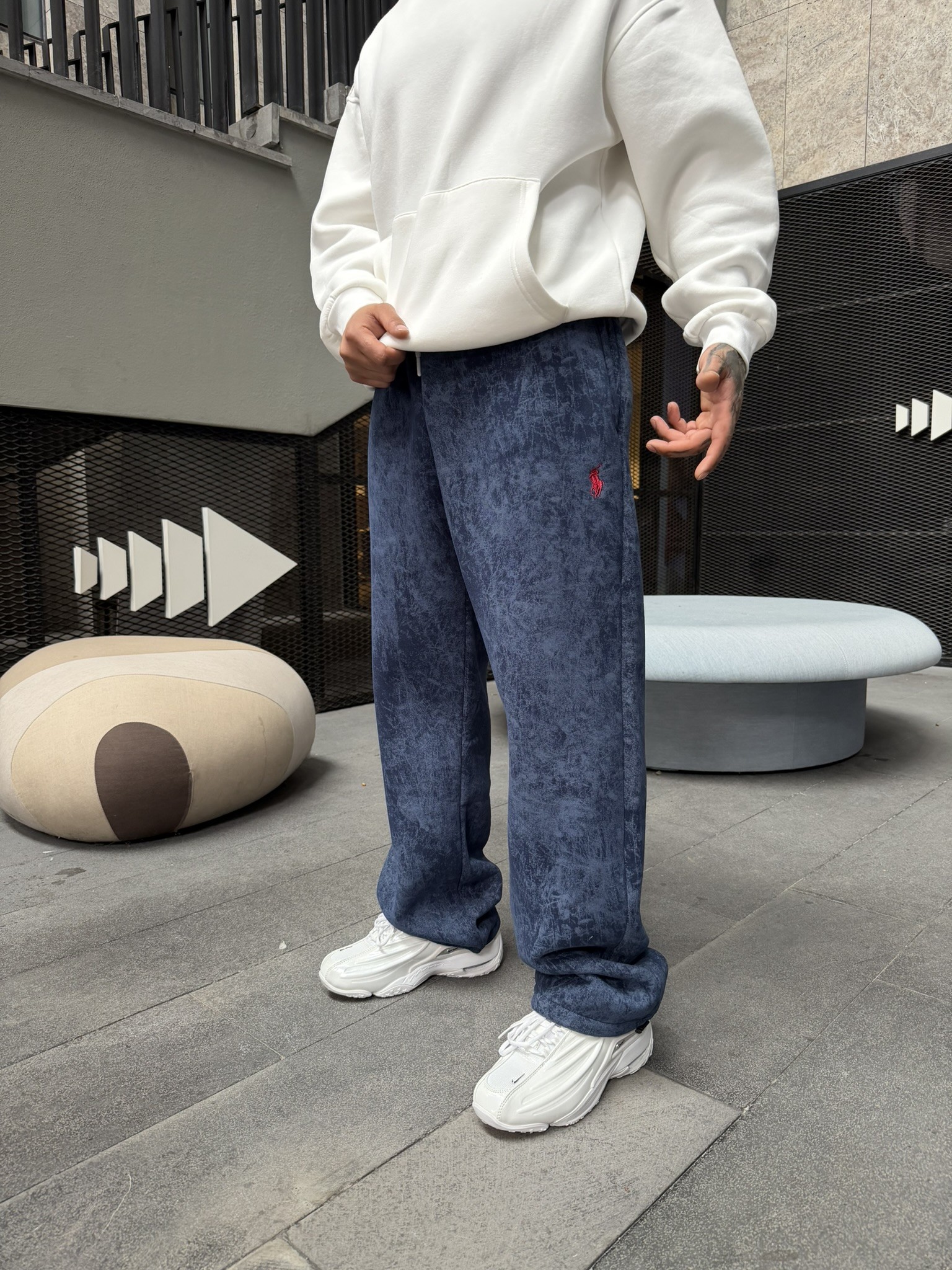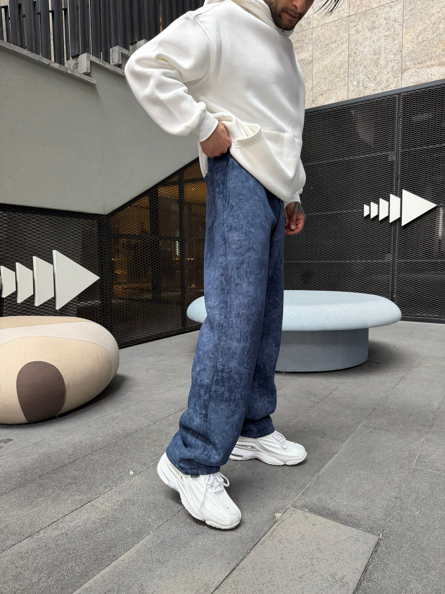 Basic Wide Yıkamlı Acid Baggy Eşofman - İndigo (EŞF.0046-İndigo-S)