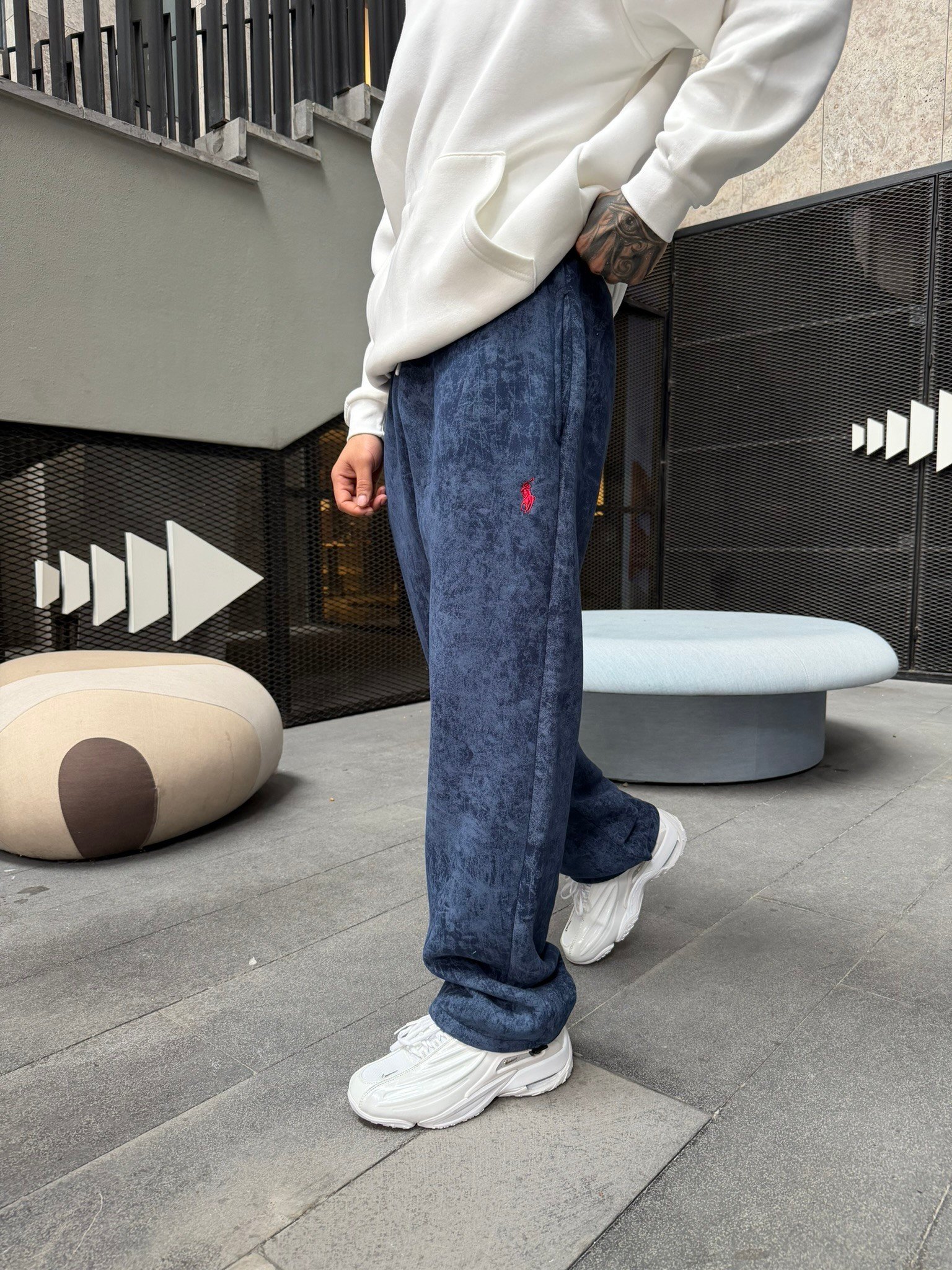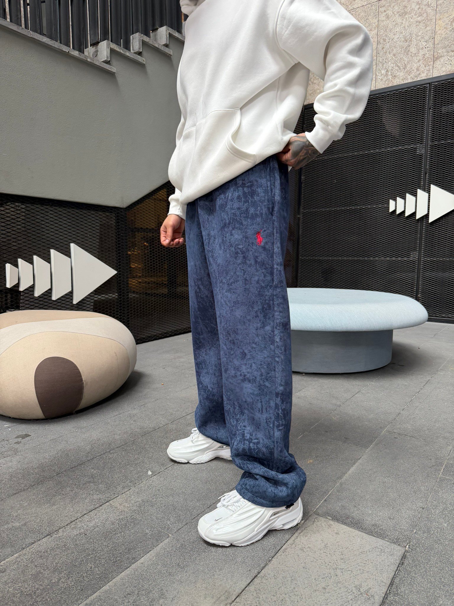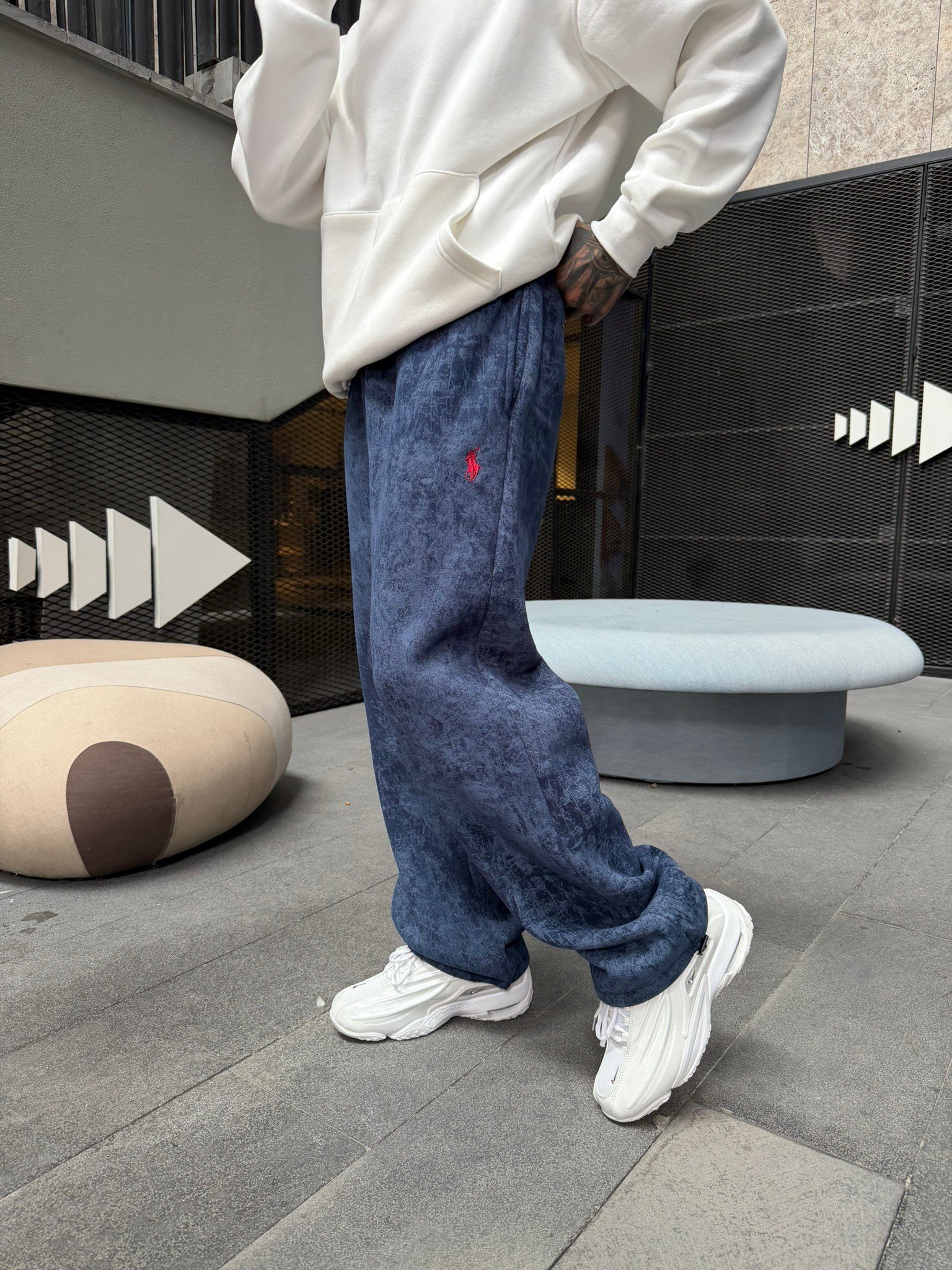Basic Wide Yıkamlı Acid Baggy Eşofman - İndigo (EŞF.0046-İndigo-S)
