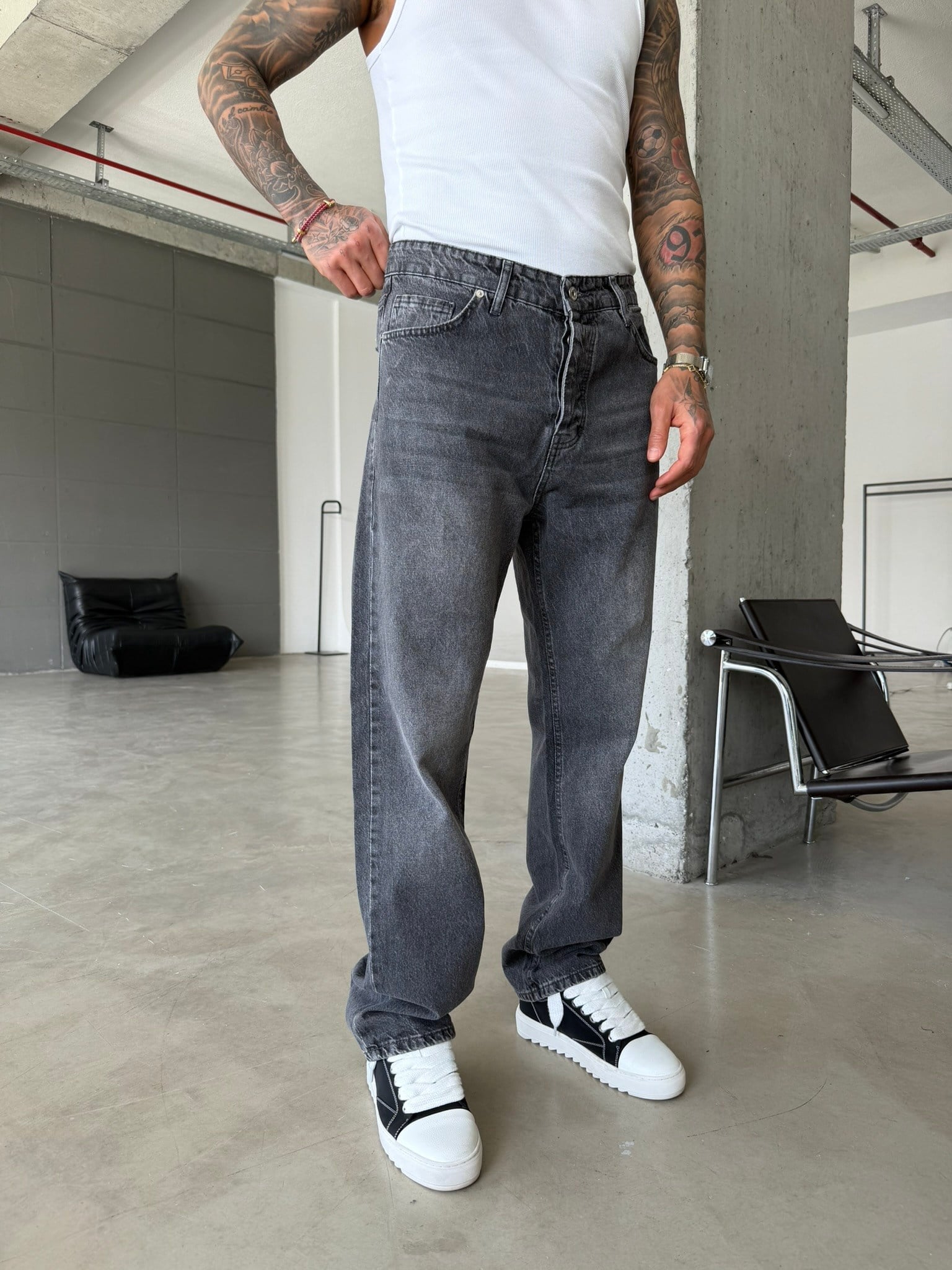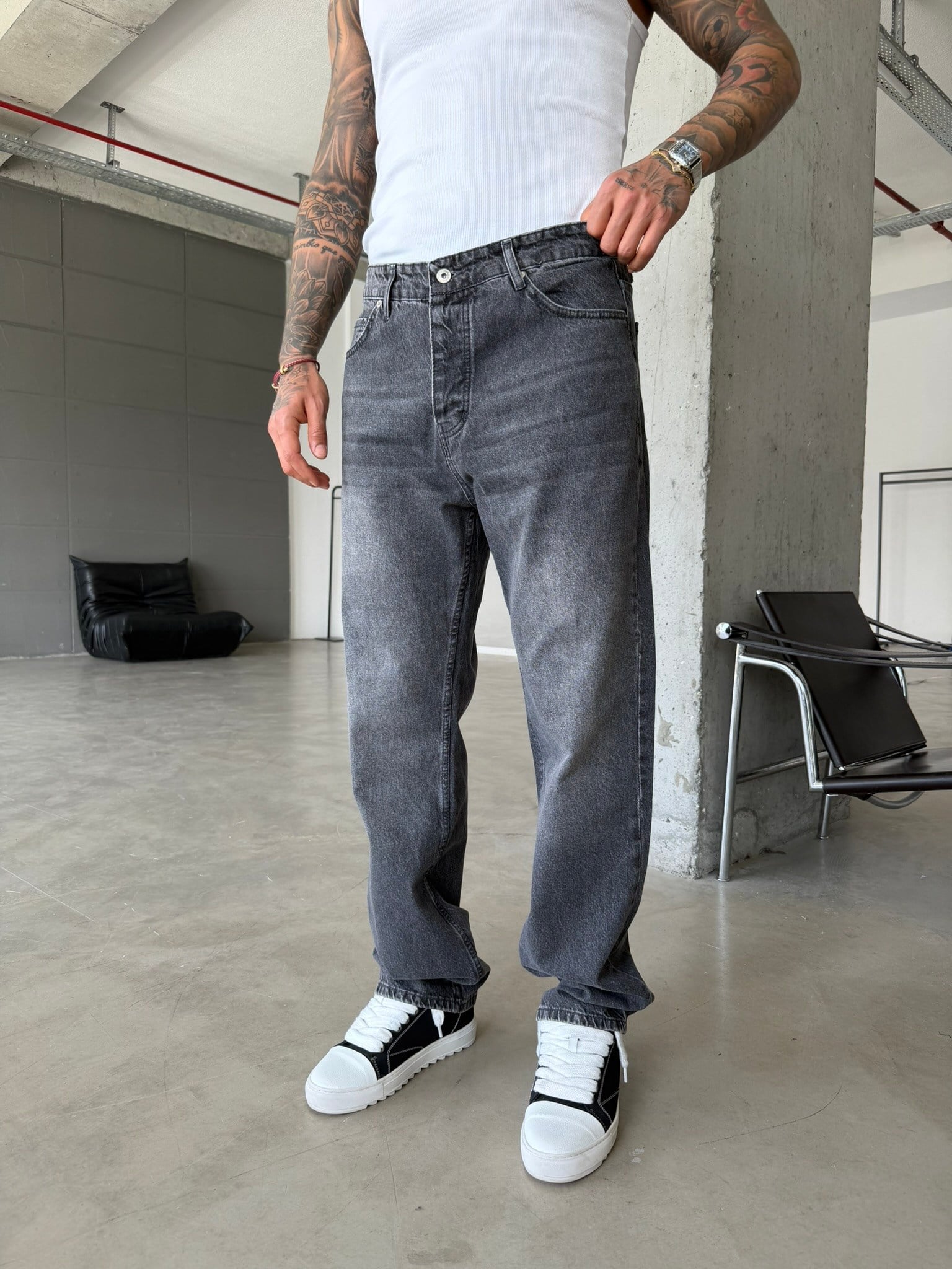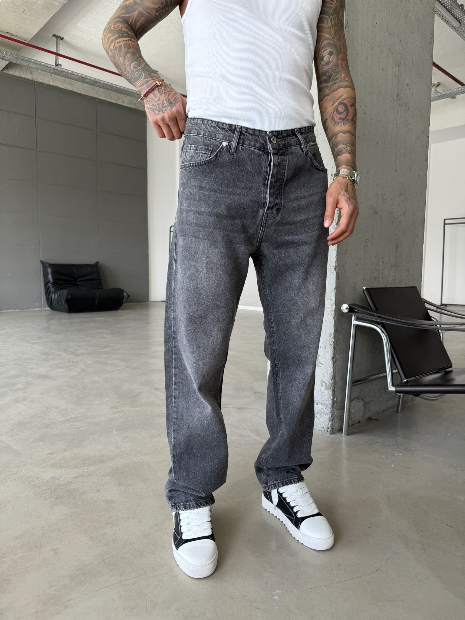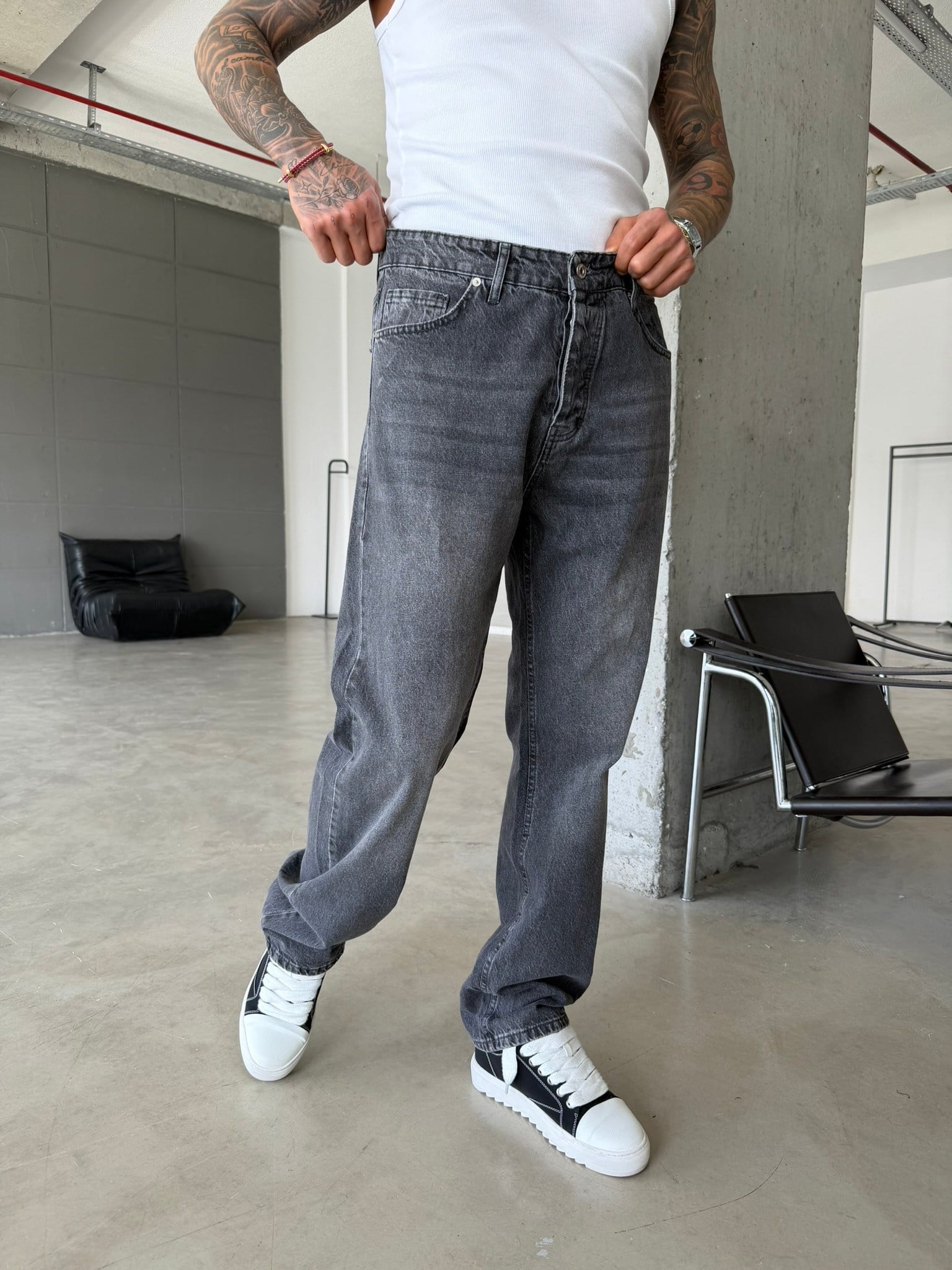 Basic Yıkama Detaylı Baggy Fit Pantolon - Gri (PNT.0154-Gri-29)