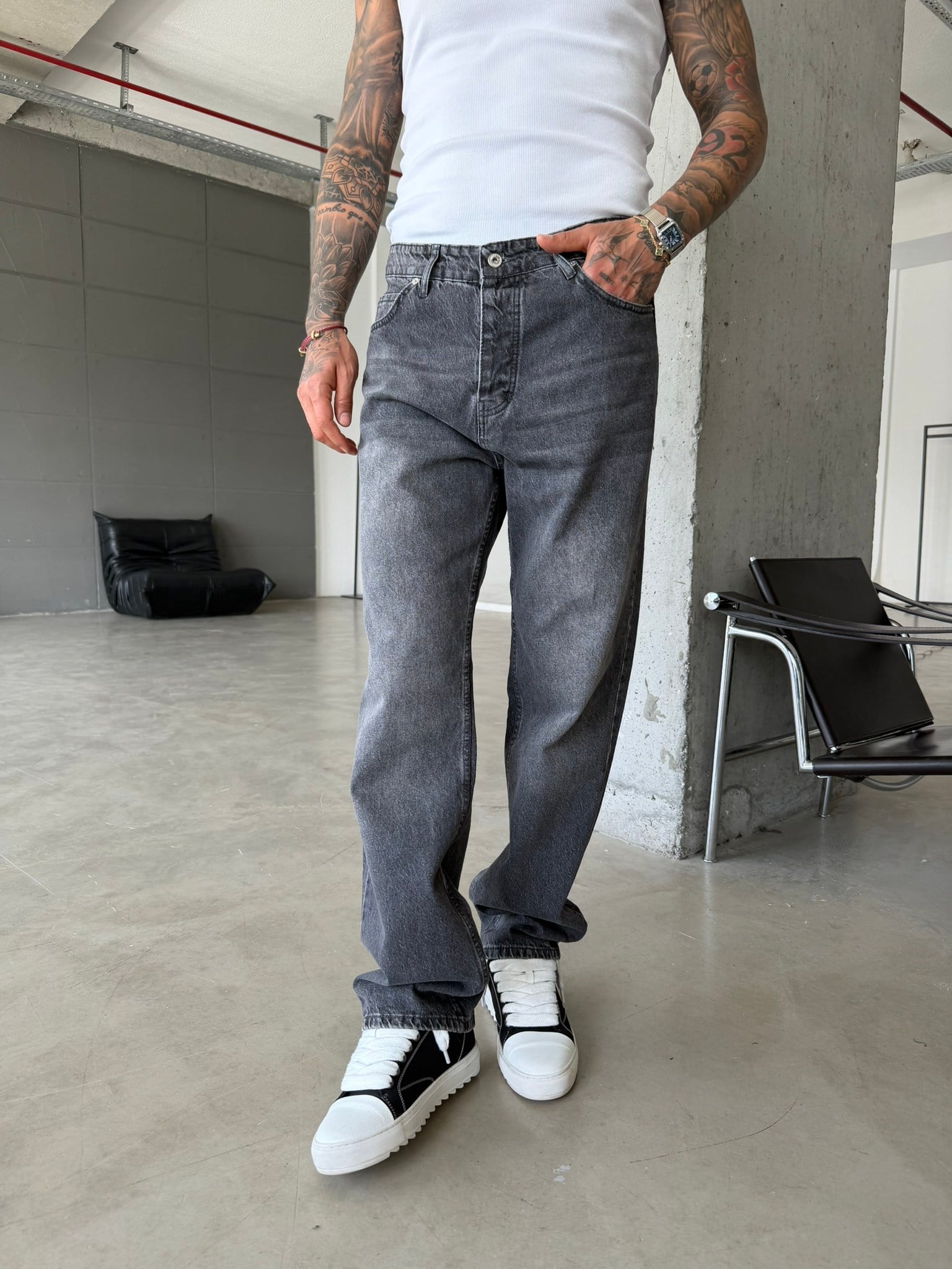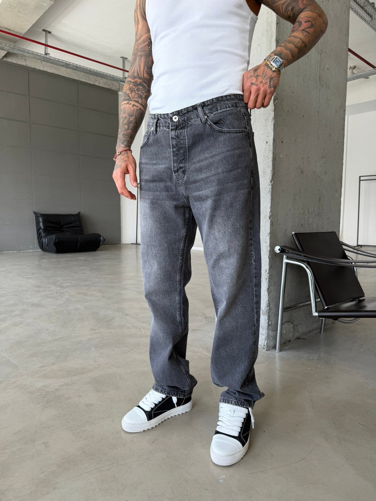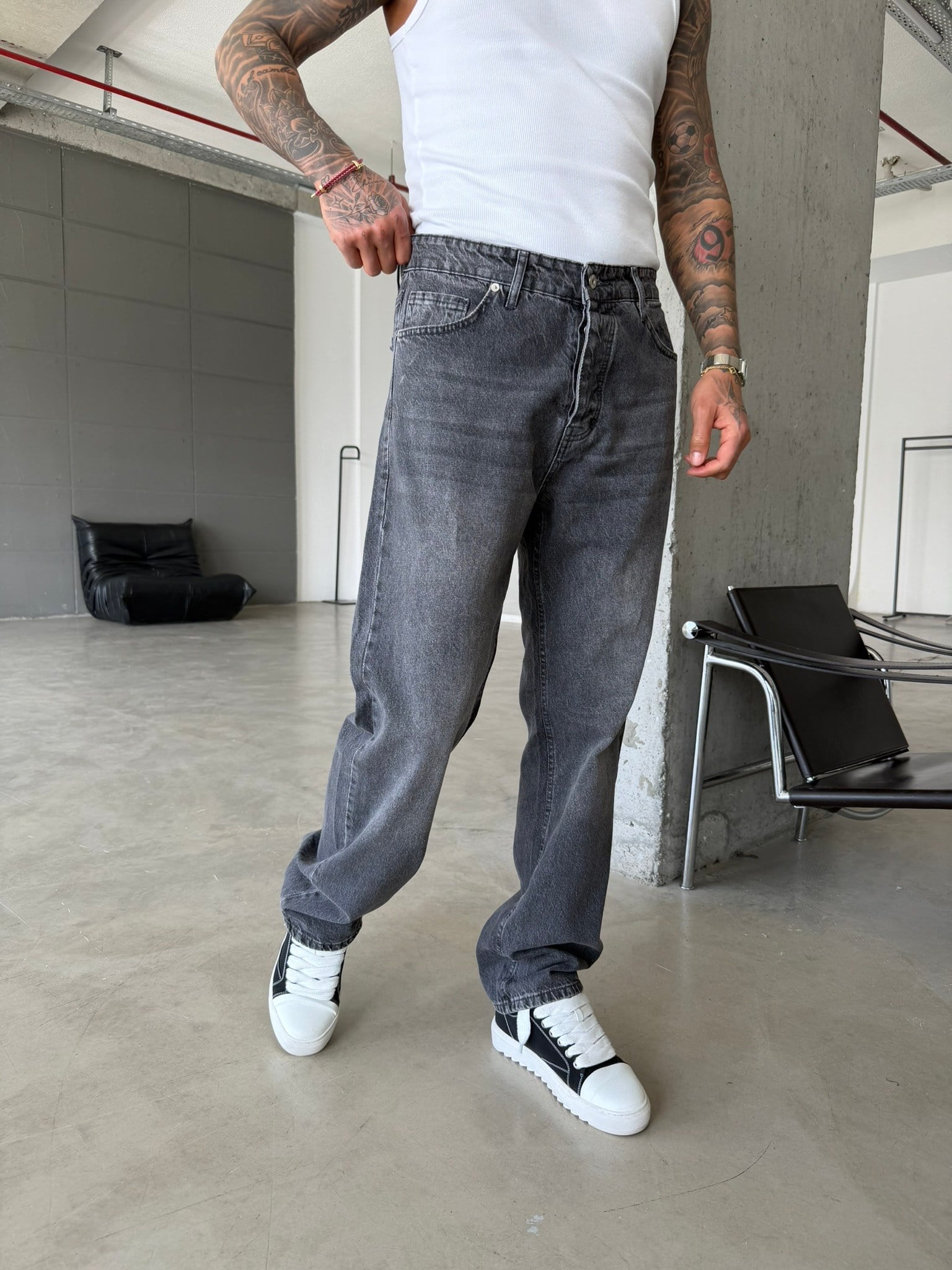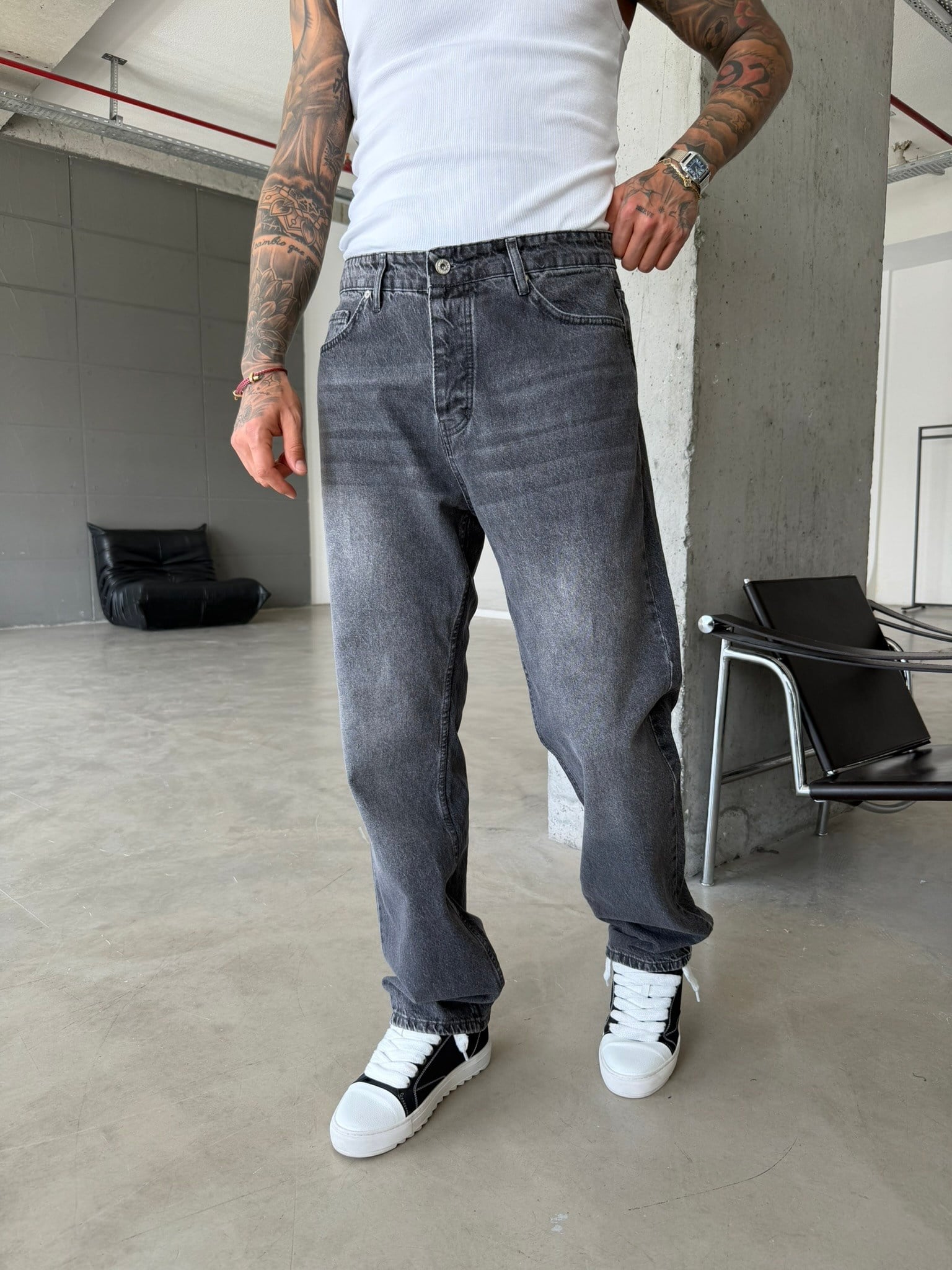 Basic Yıkama Detaylı Baggy Fit Pantolon - Gri (PNT.0154-Gri-29)
