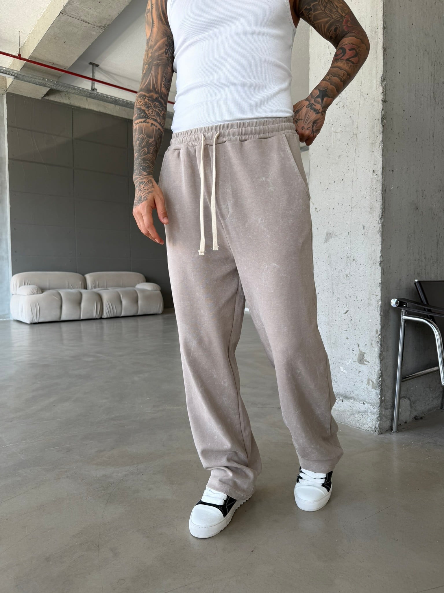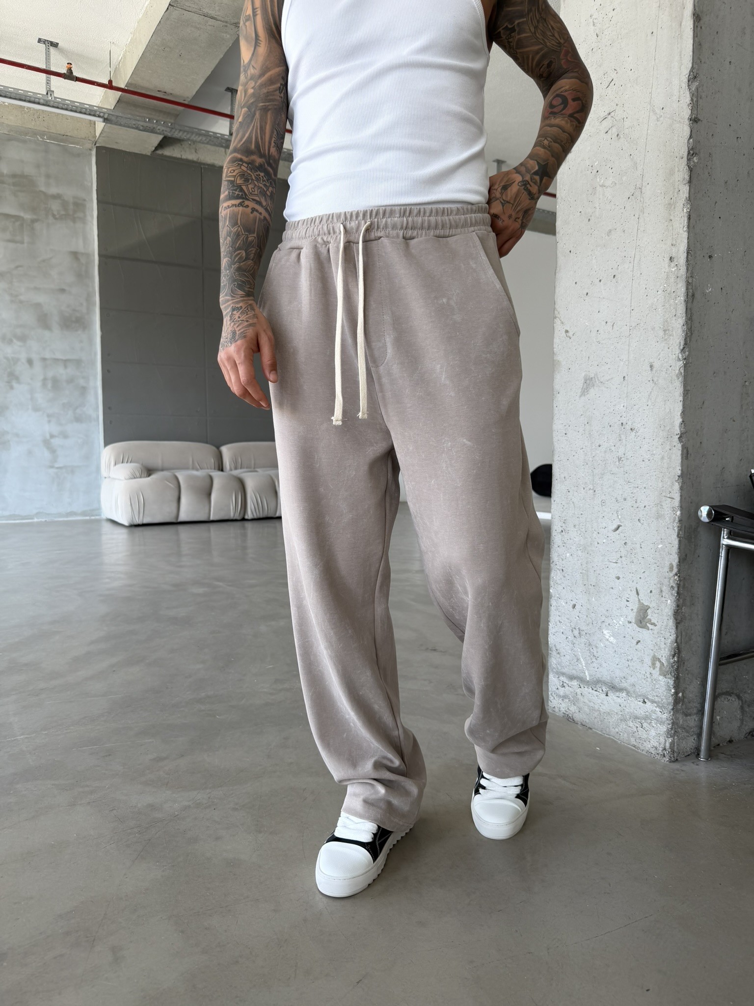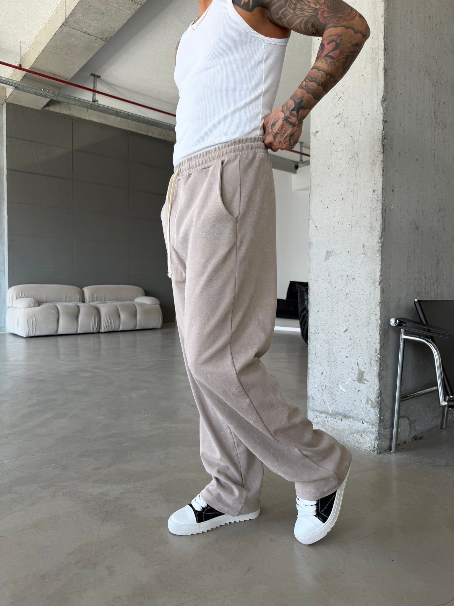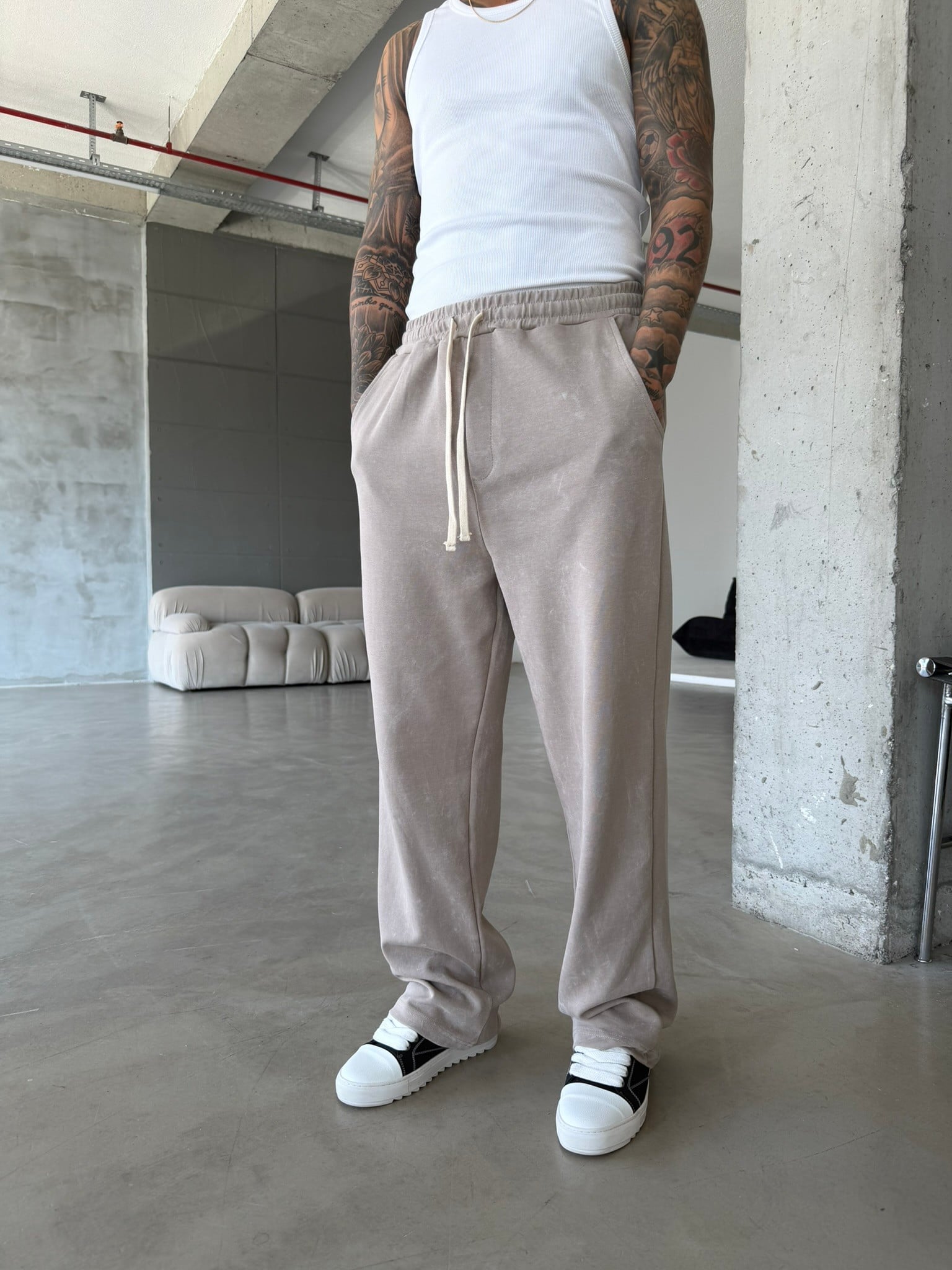 Basic Yıkamalı Acid Baggy Eşofman - Bej (EŞF.0062-Bej-S)