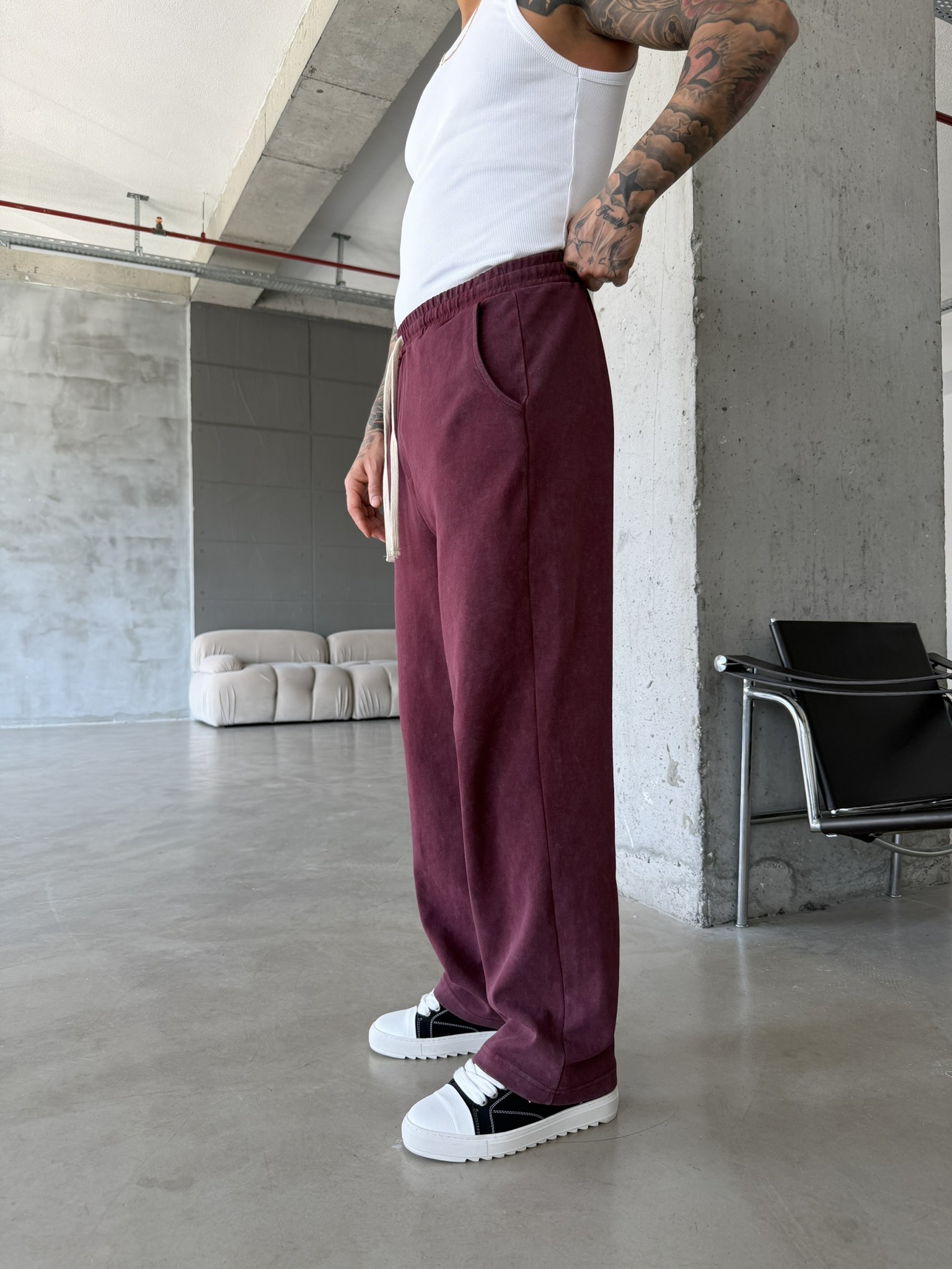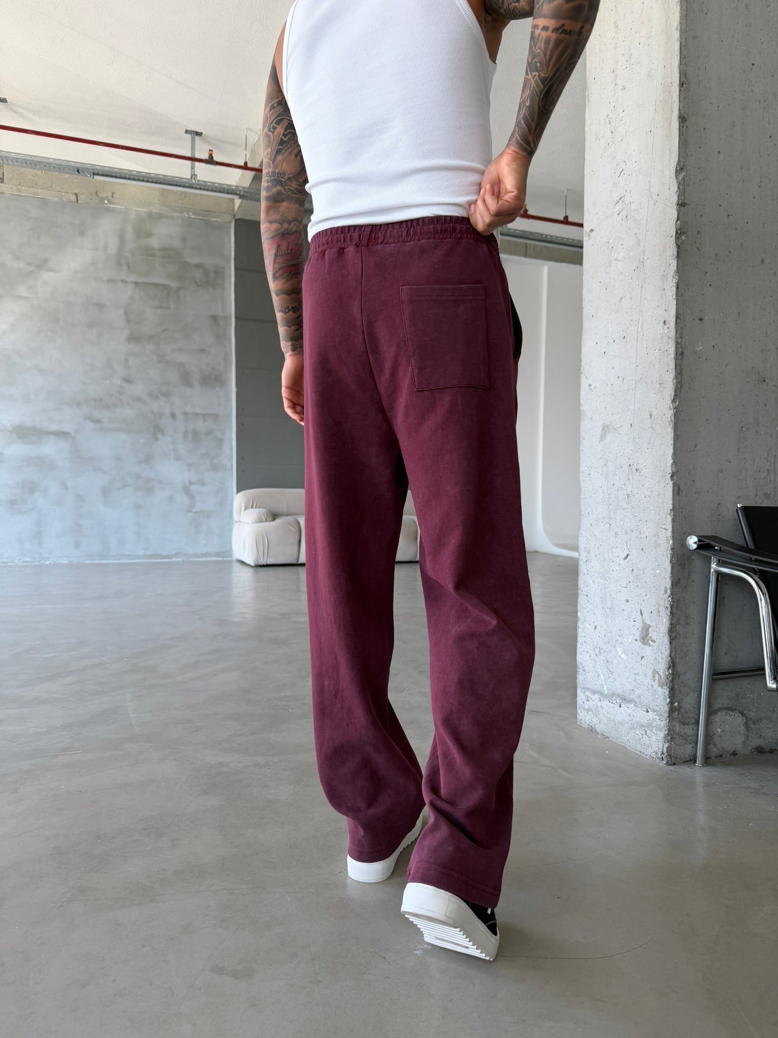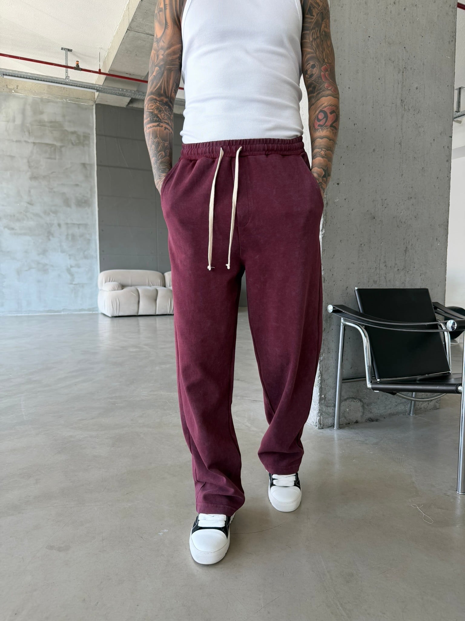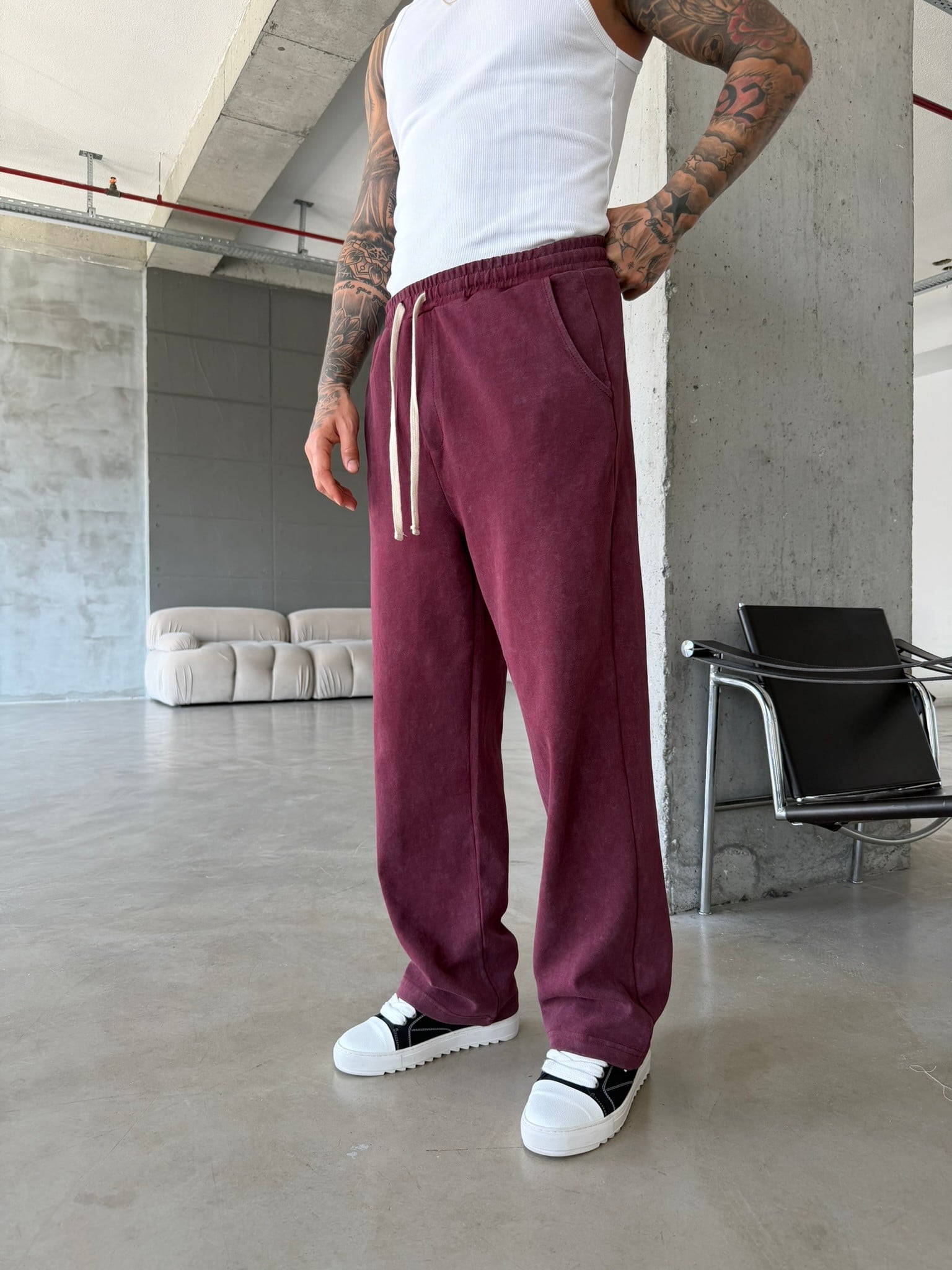 Basic Yıkamalı Acid Baggy Eşofman - Bordo (EŞF.0062-Bordo-S)