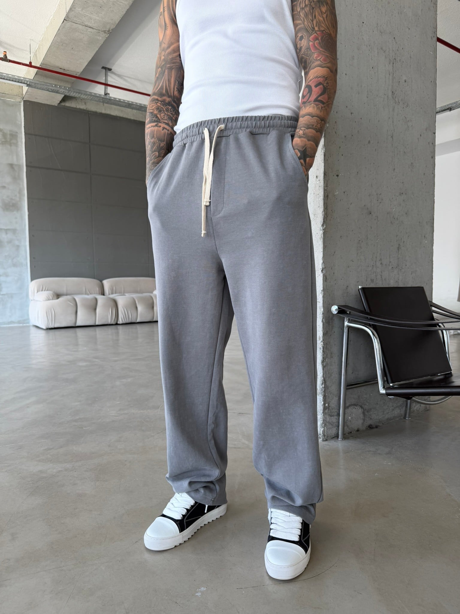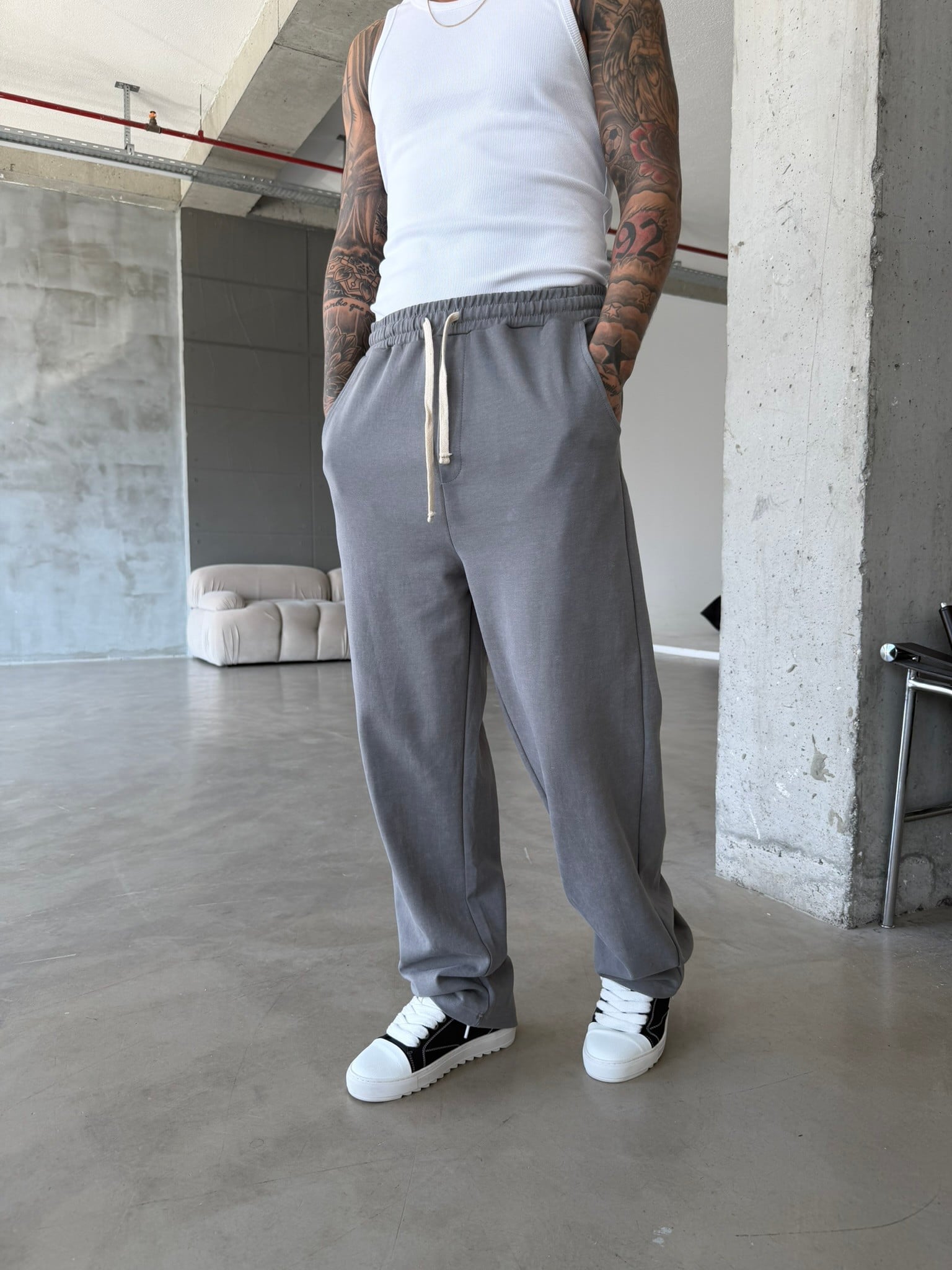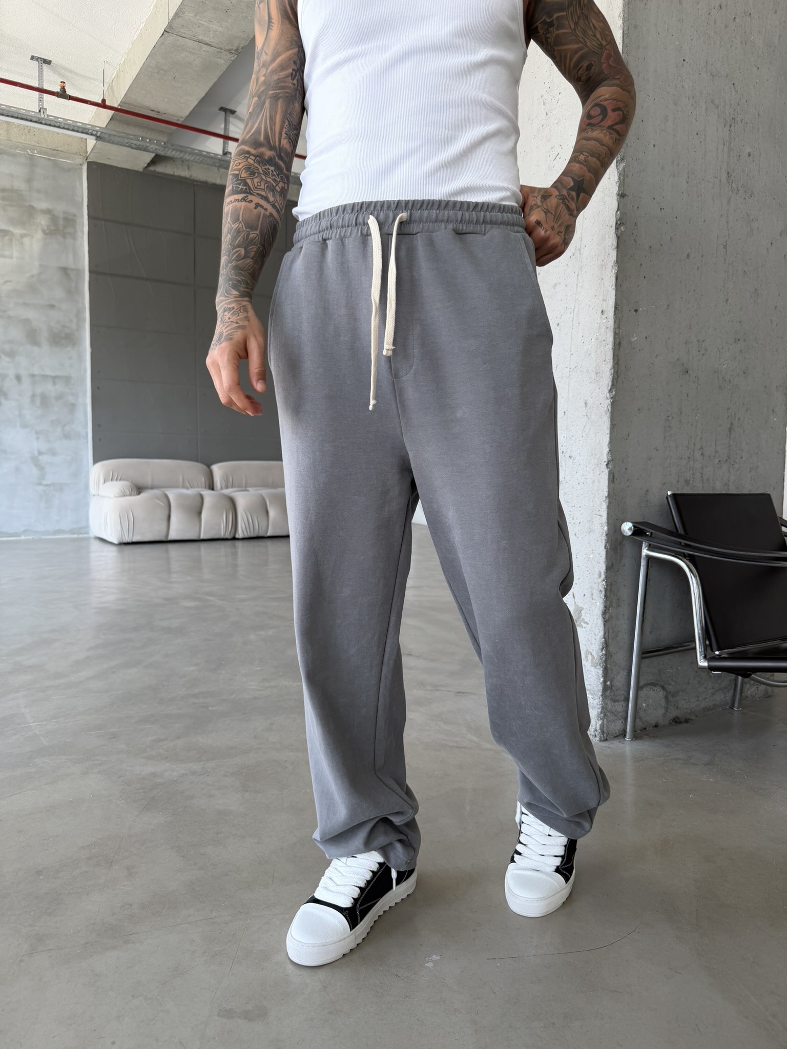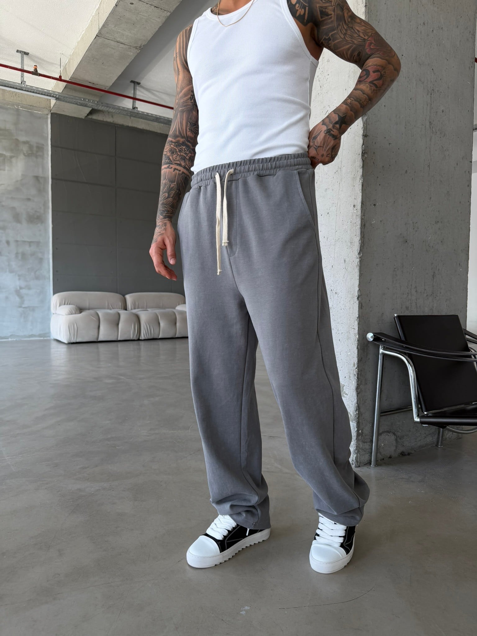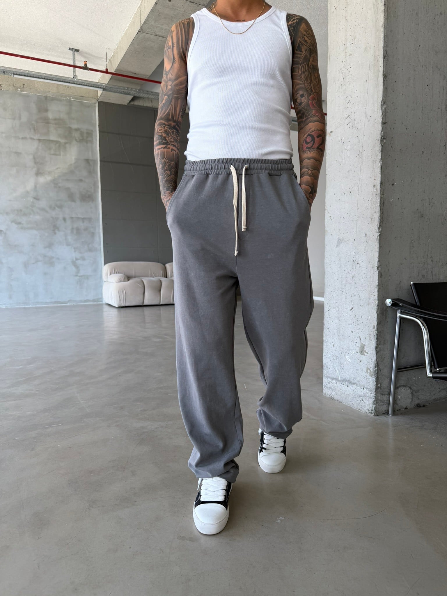 Basic Yıkamalı Acid Baggy Eşofman - Füme (EŞF.0062-Füme-S)