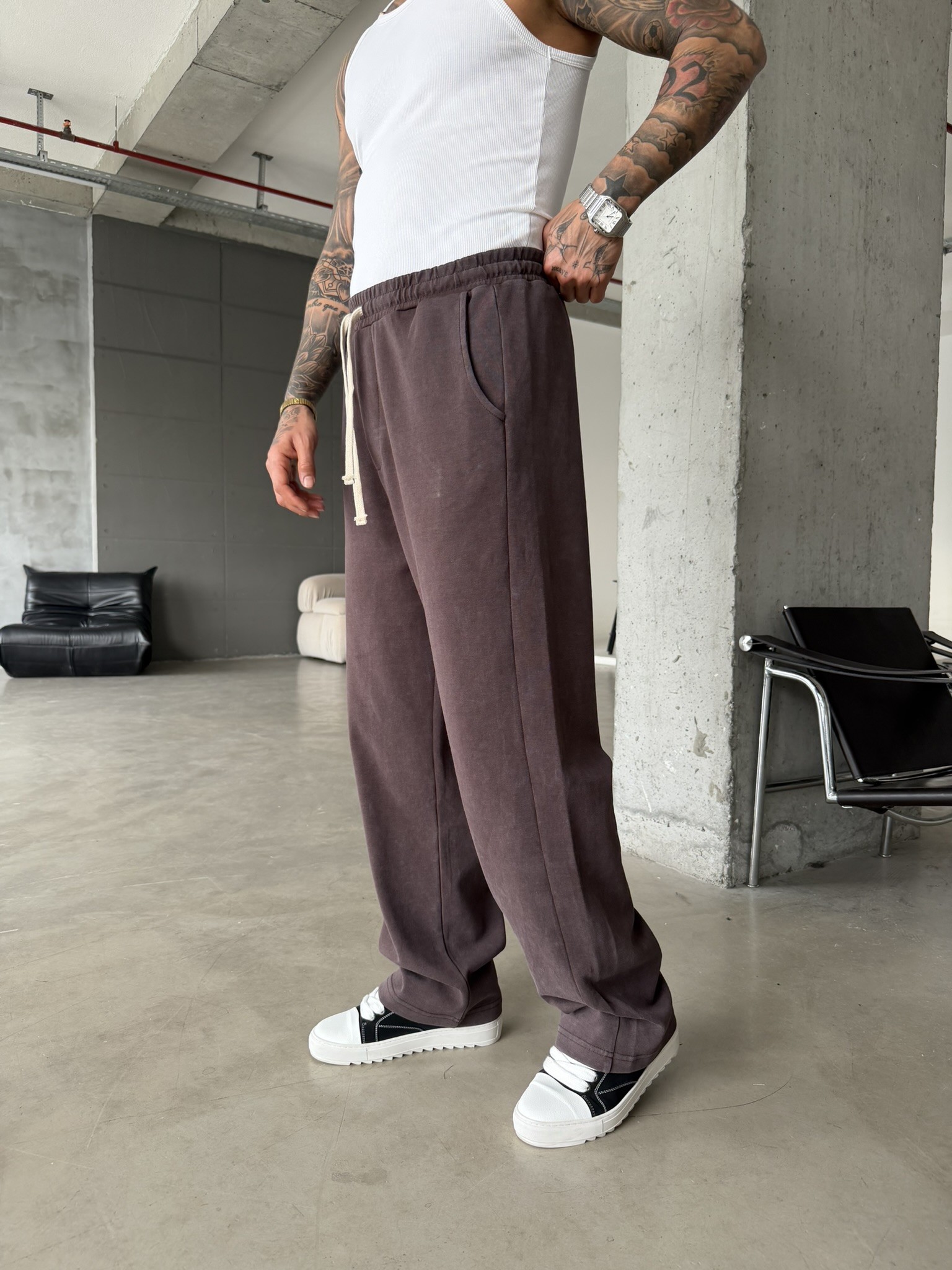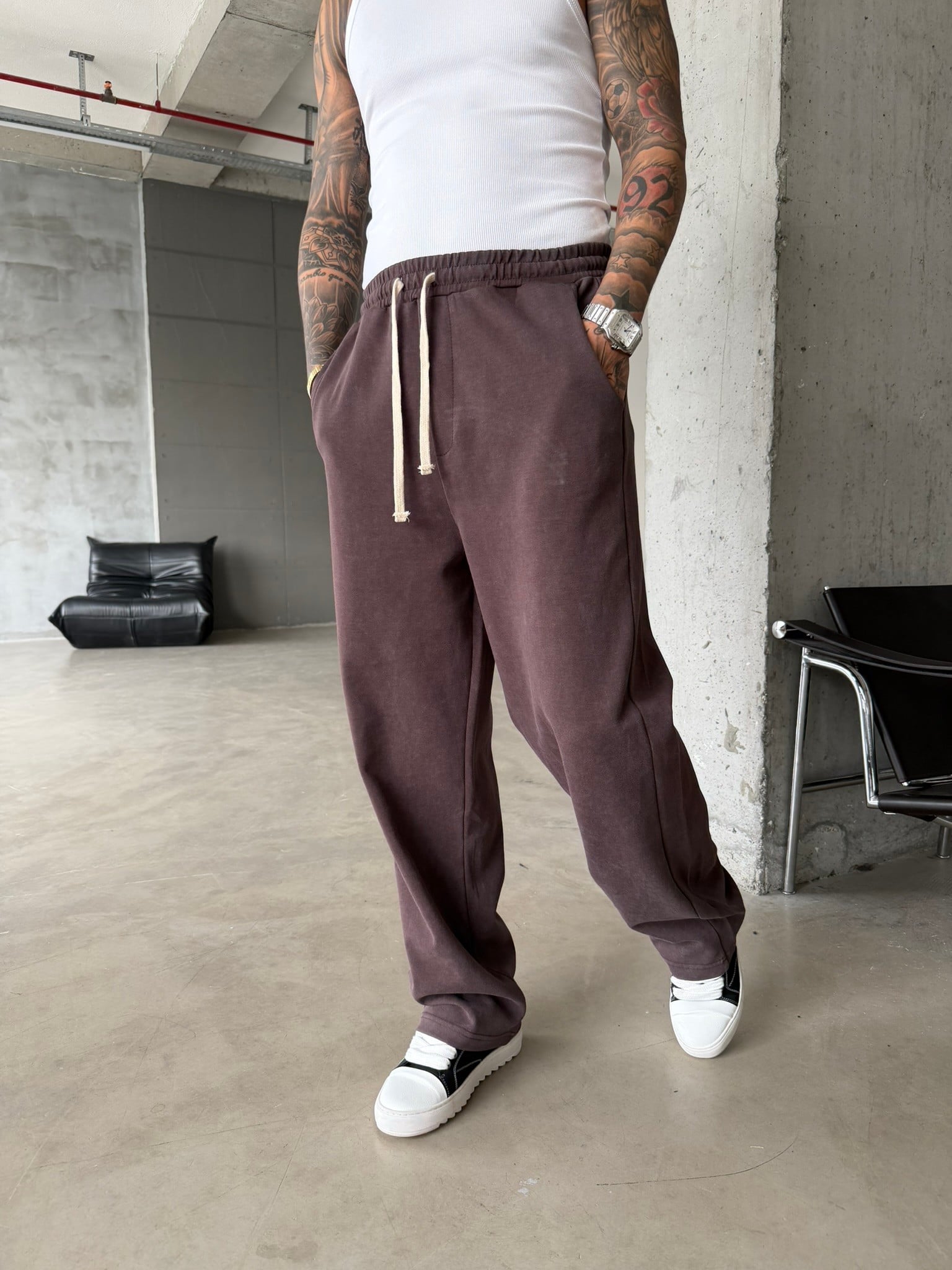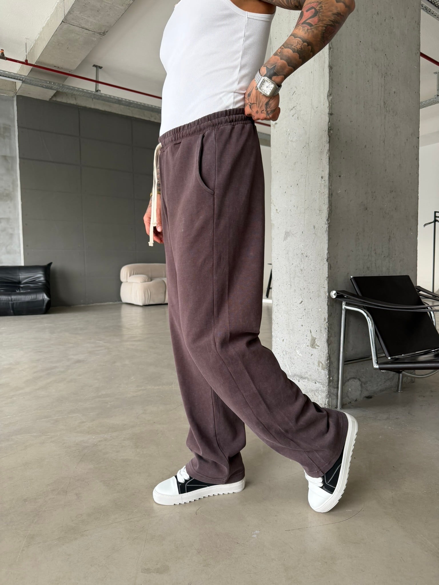 Basic Yıkamalı Acid Baggy Eşofman - Kahve (EŞF.0062-Kahve-S)