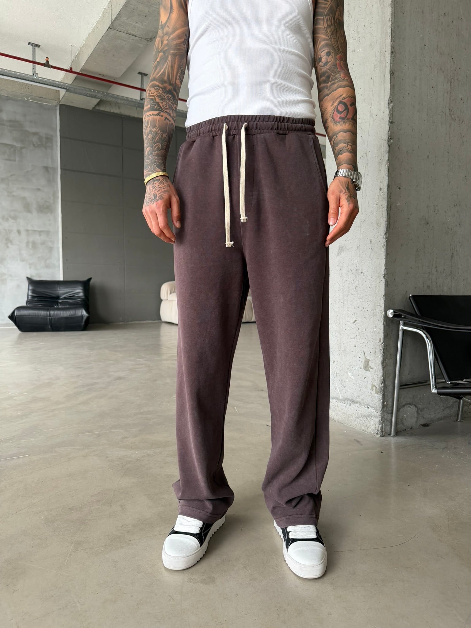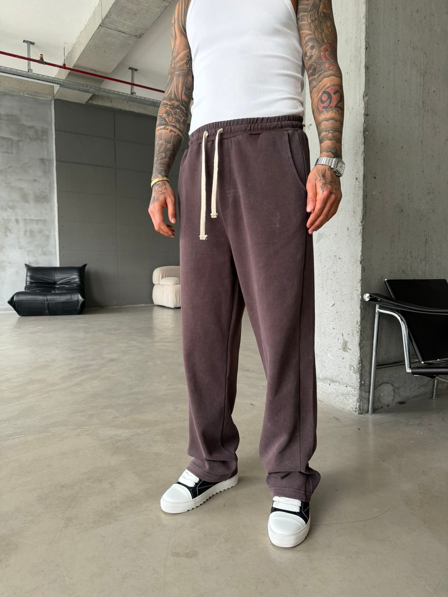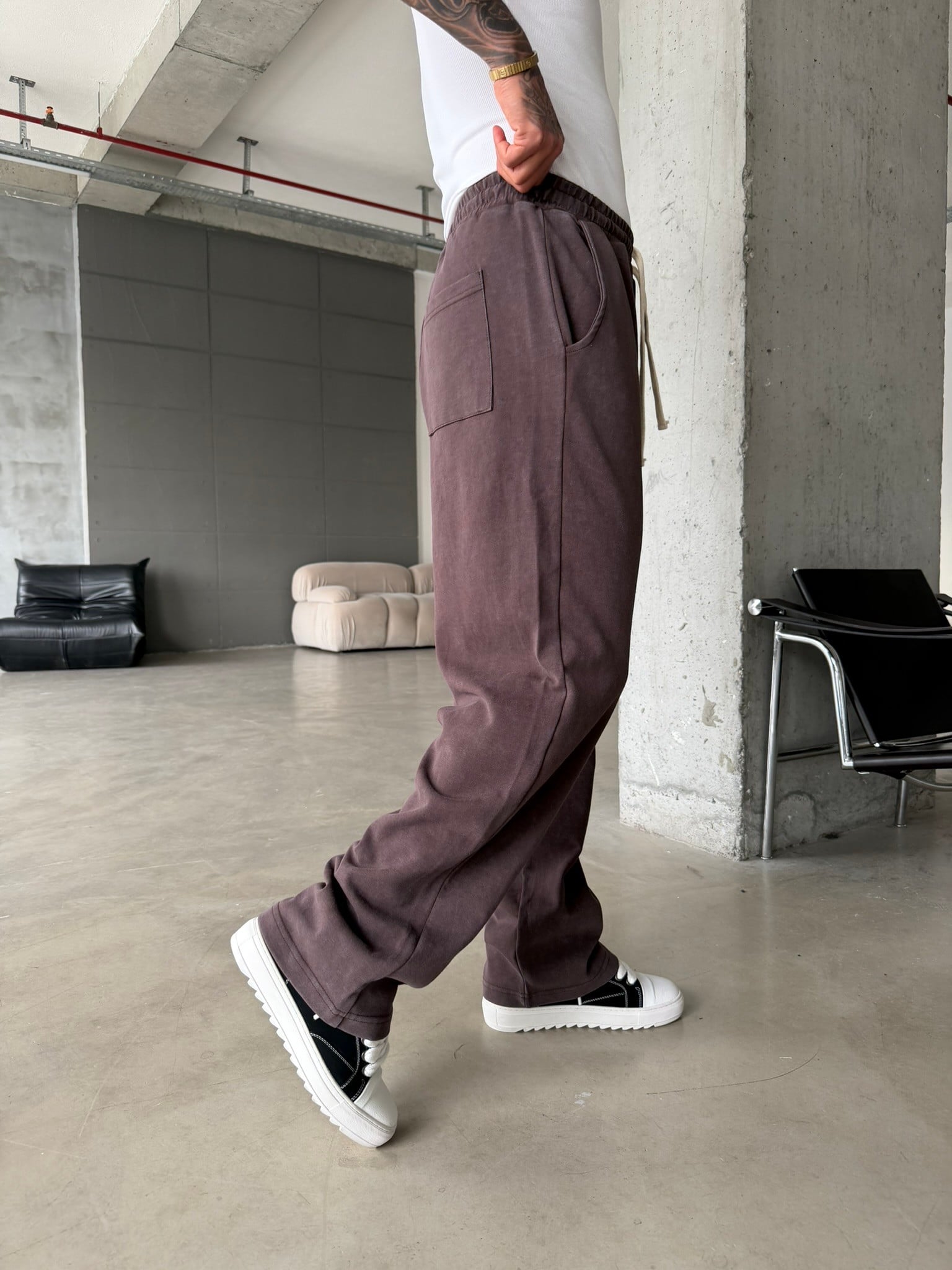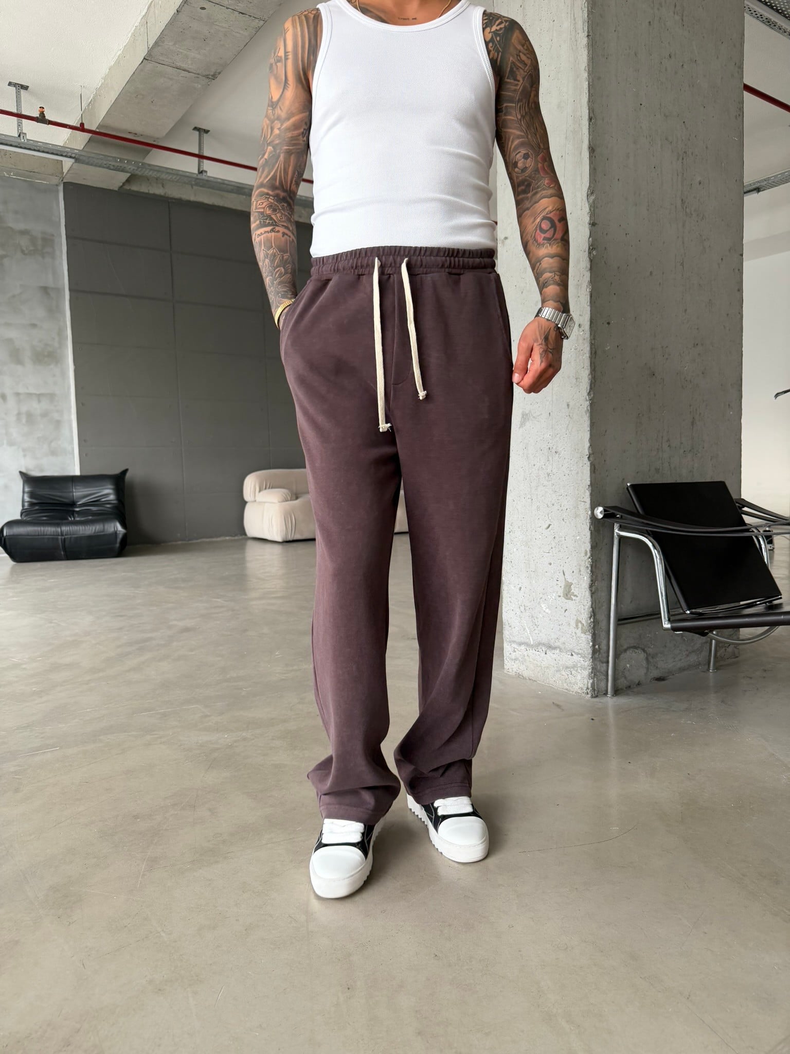 Basic Yıkamalı Acid Baggy Eşofman - Kahve (EŞF.0062-Kahve-S)