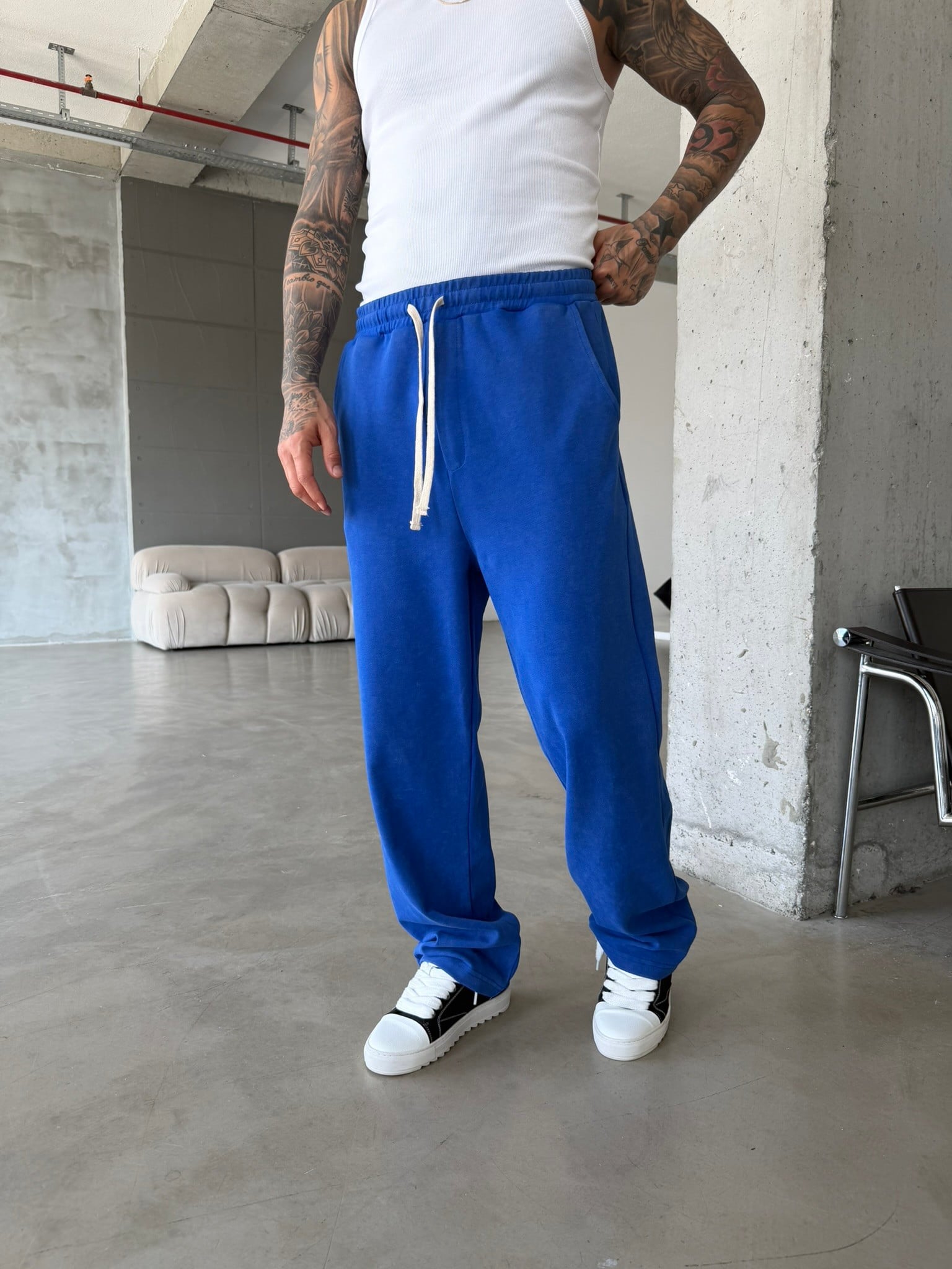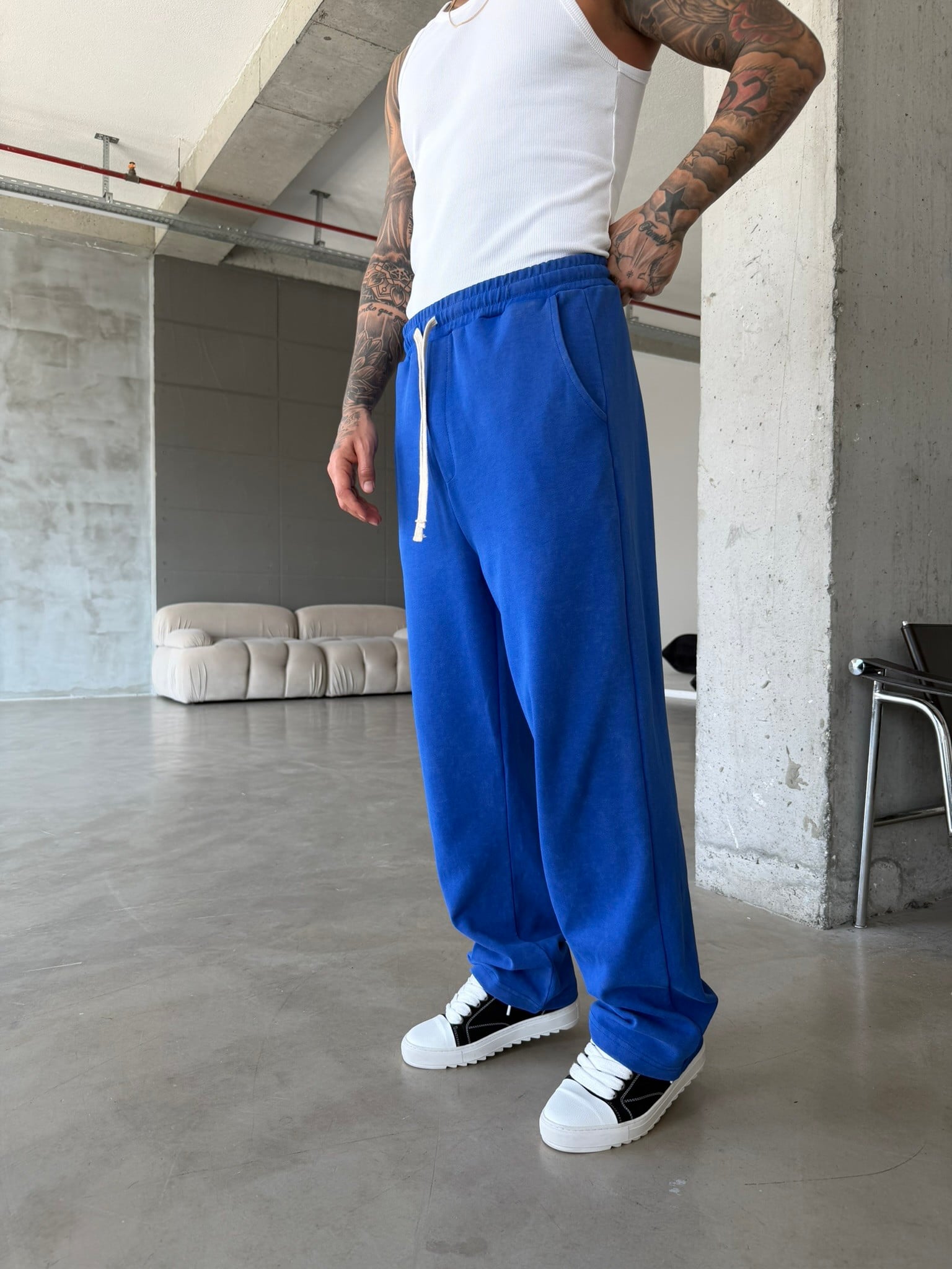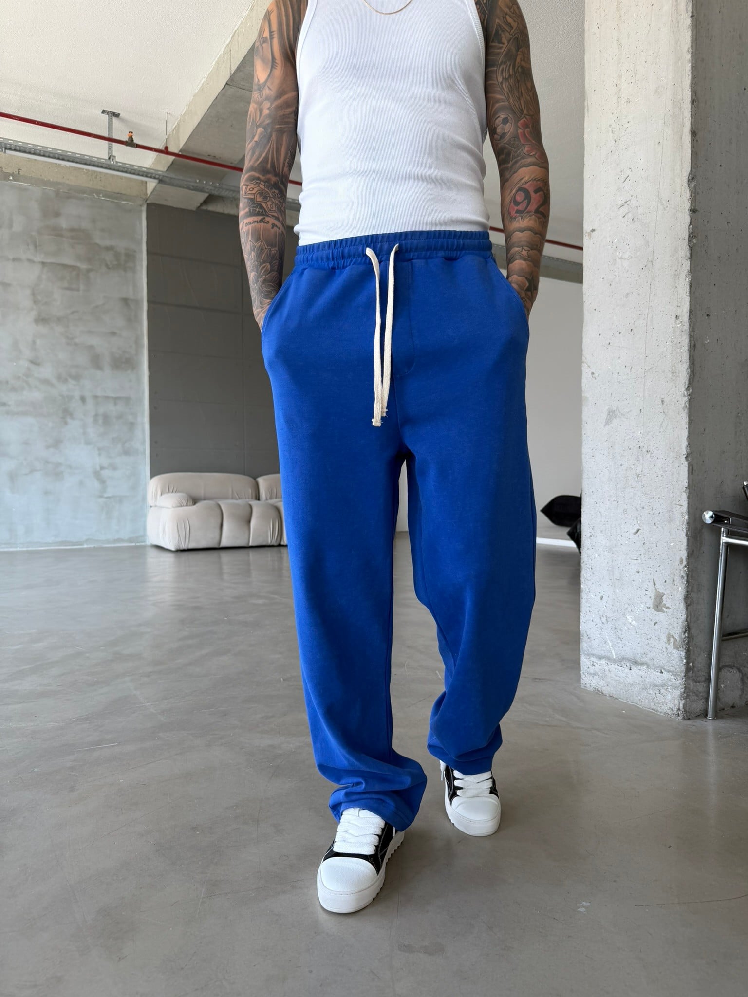 Basic Yıkamalı Acid Baggy Eşofman - Mavi (EŞF.0062-Mavi-S)