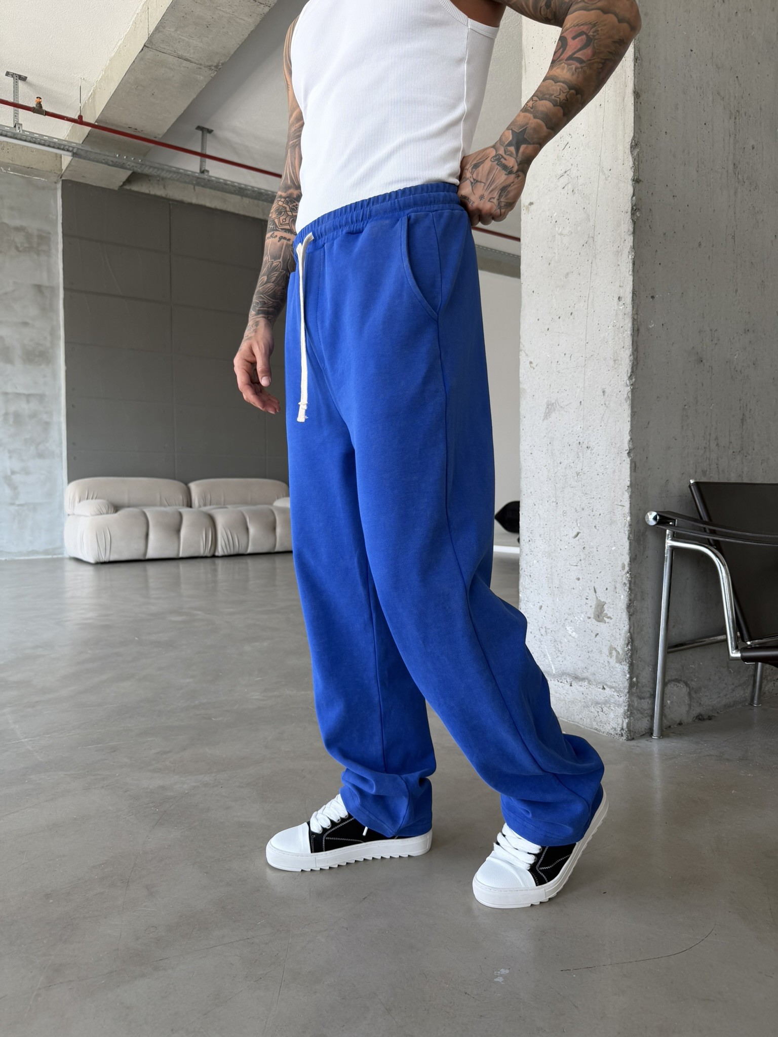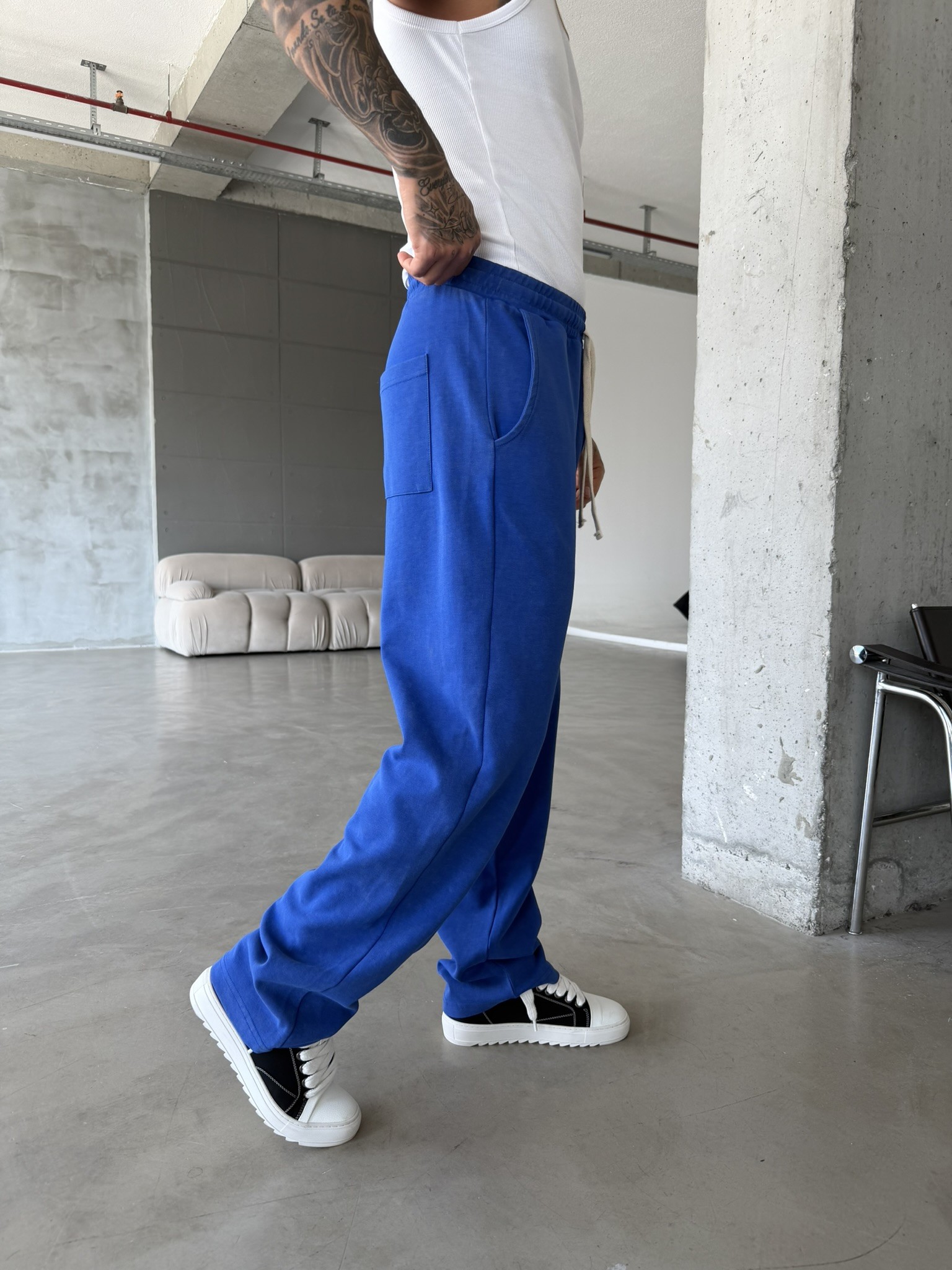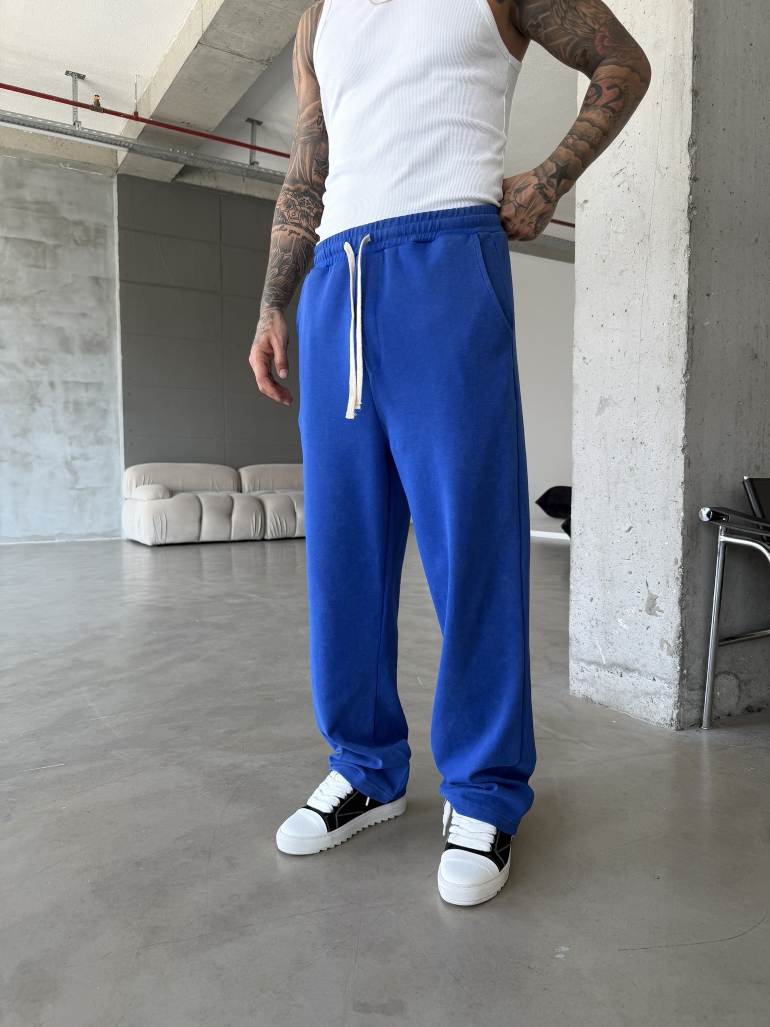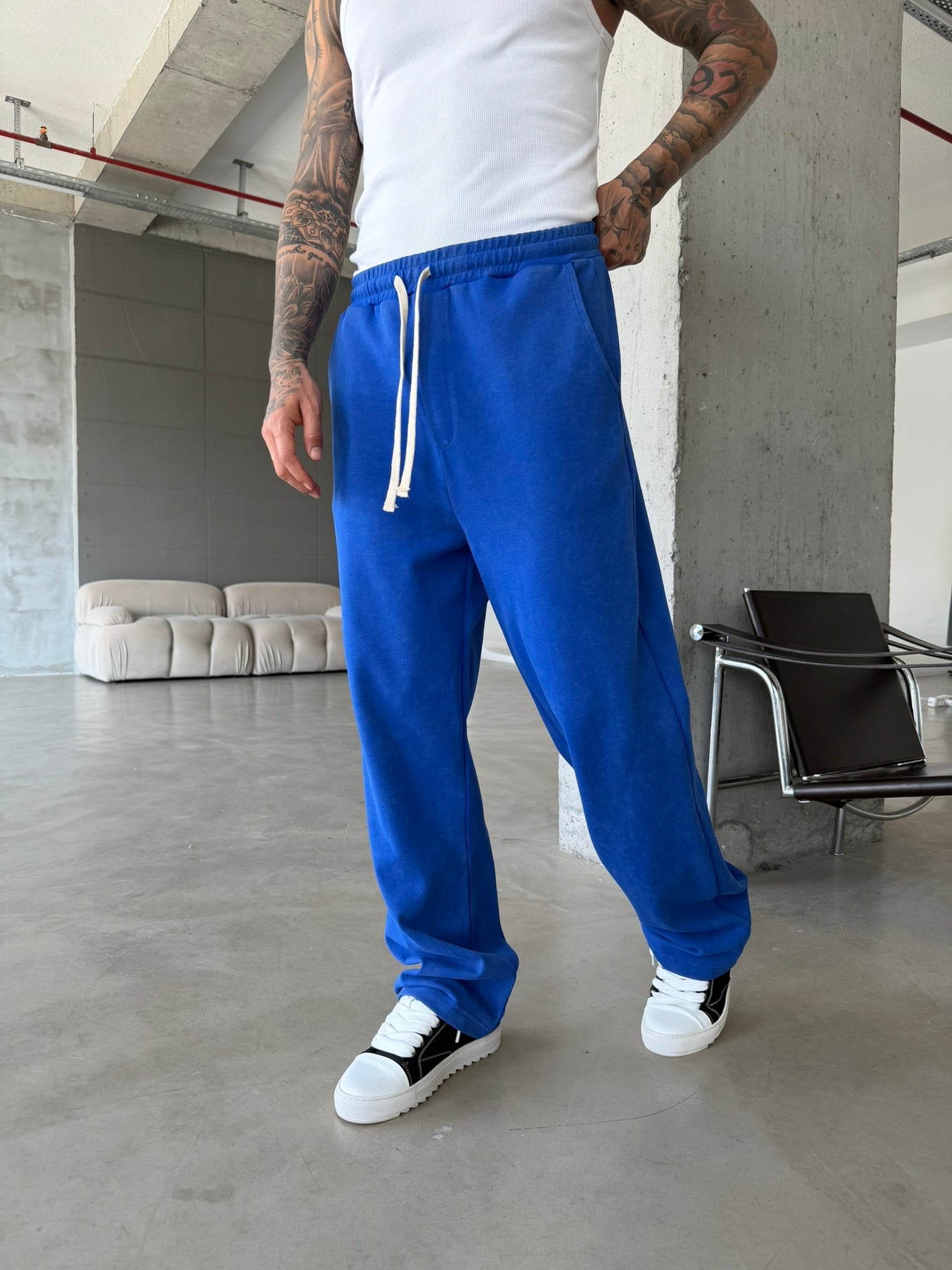 Basic Yıkamalı Acid Baggy Eşofman - Mavi (EŞF.0062-Mavi-S)