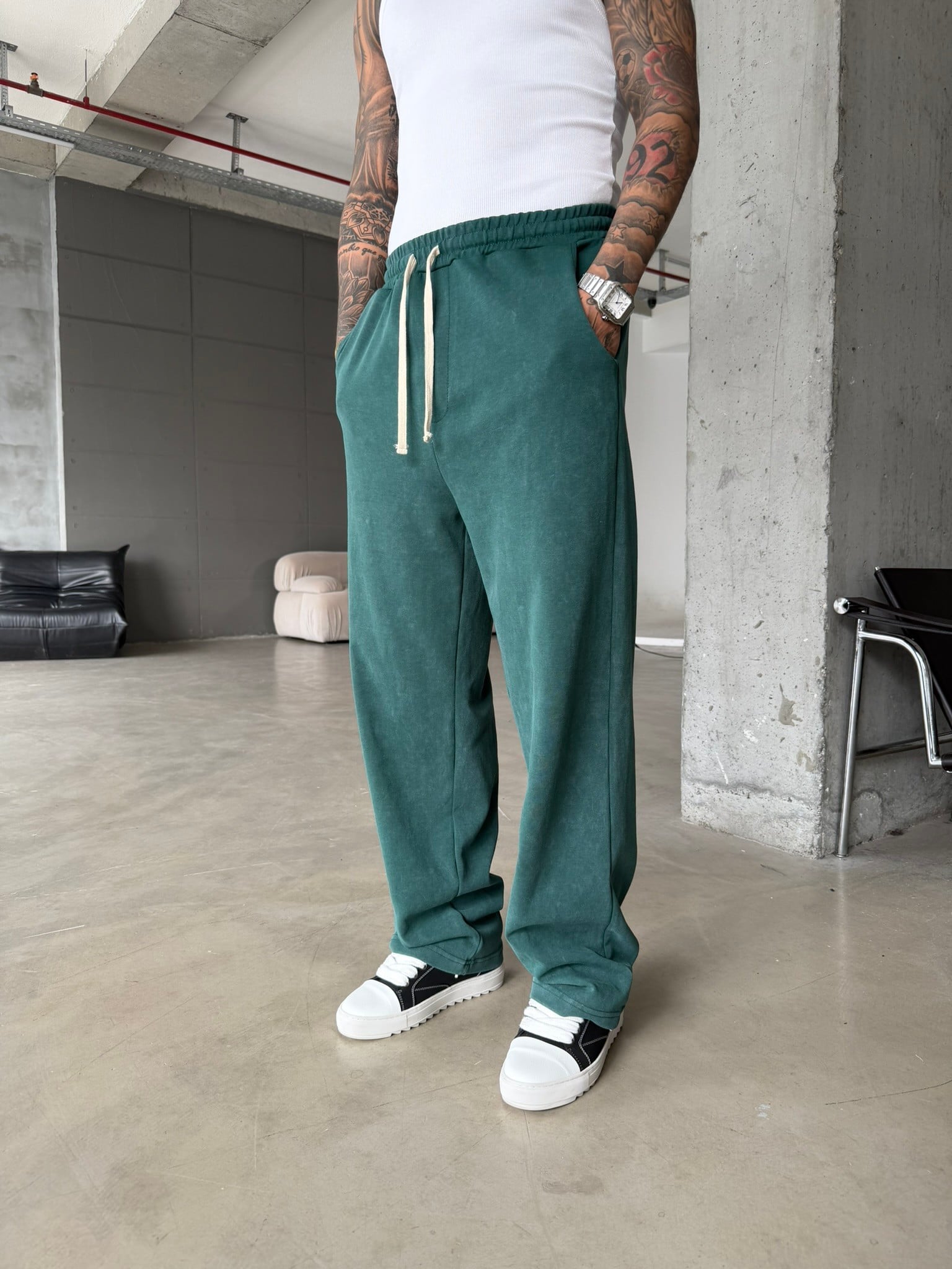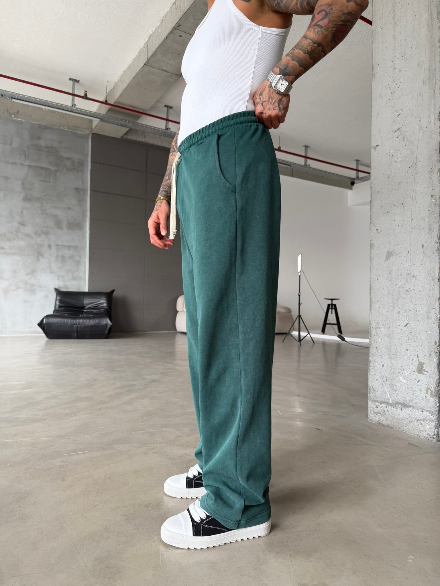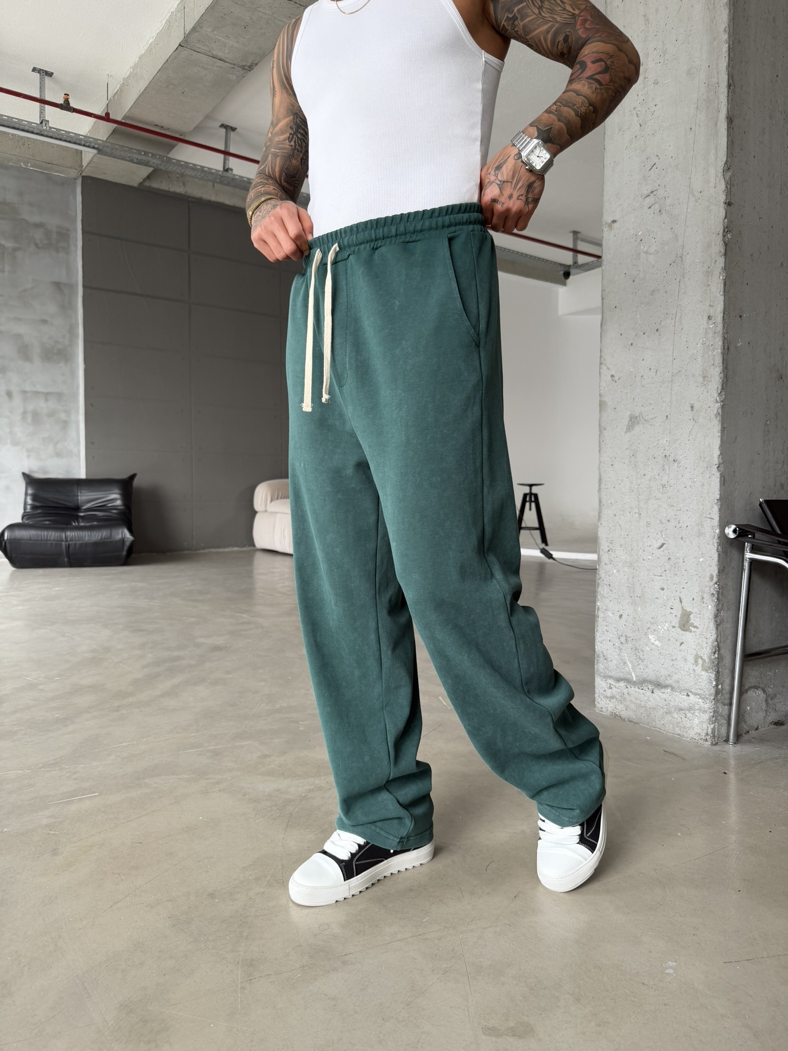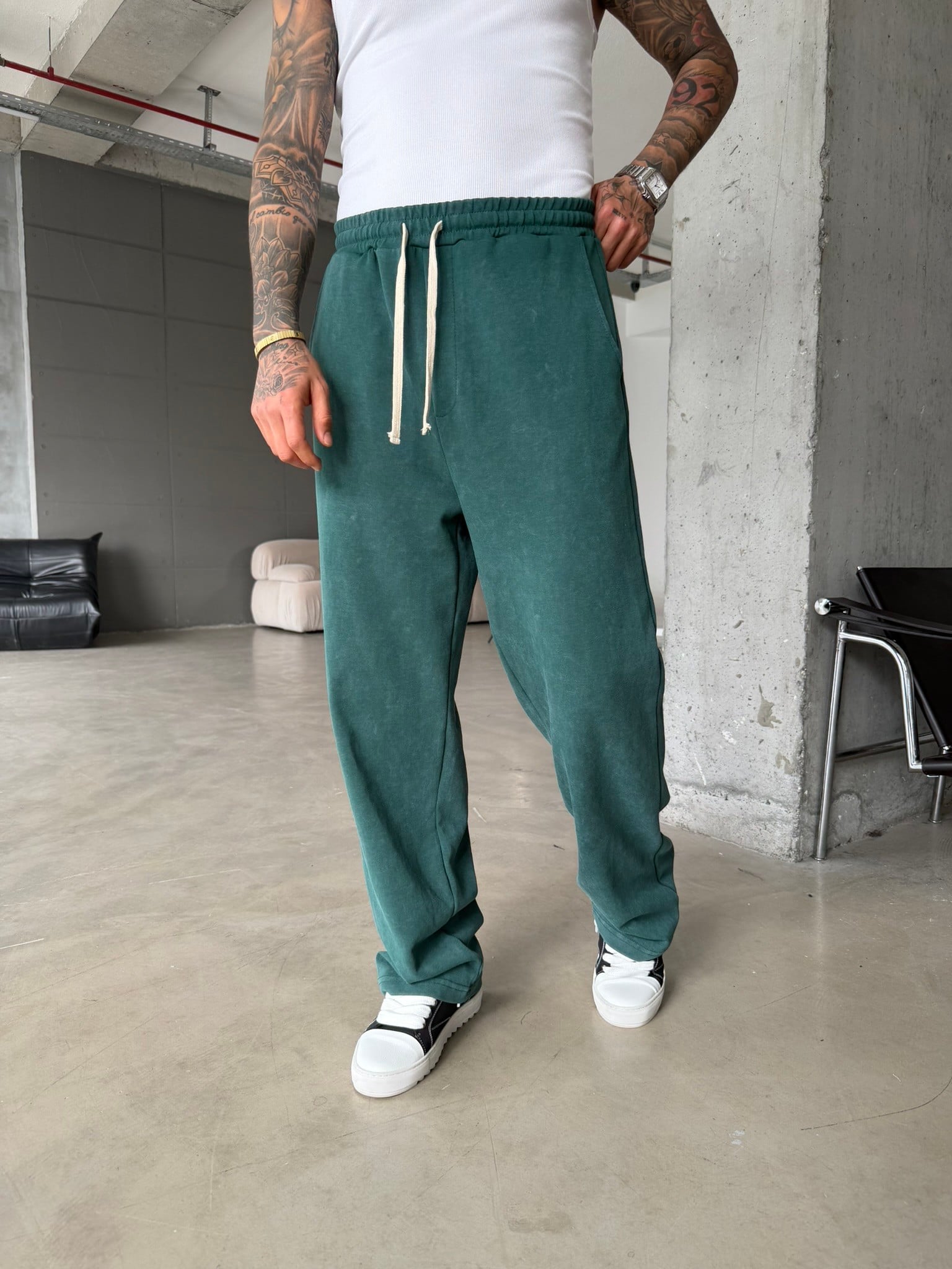 Basic Yıkamalı Acid Baggy Eşofman - Yeşil (EŞF.0062-Yeşil-S)