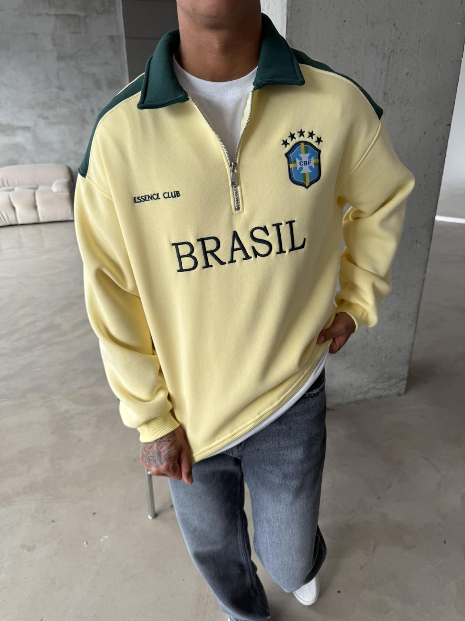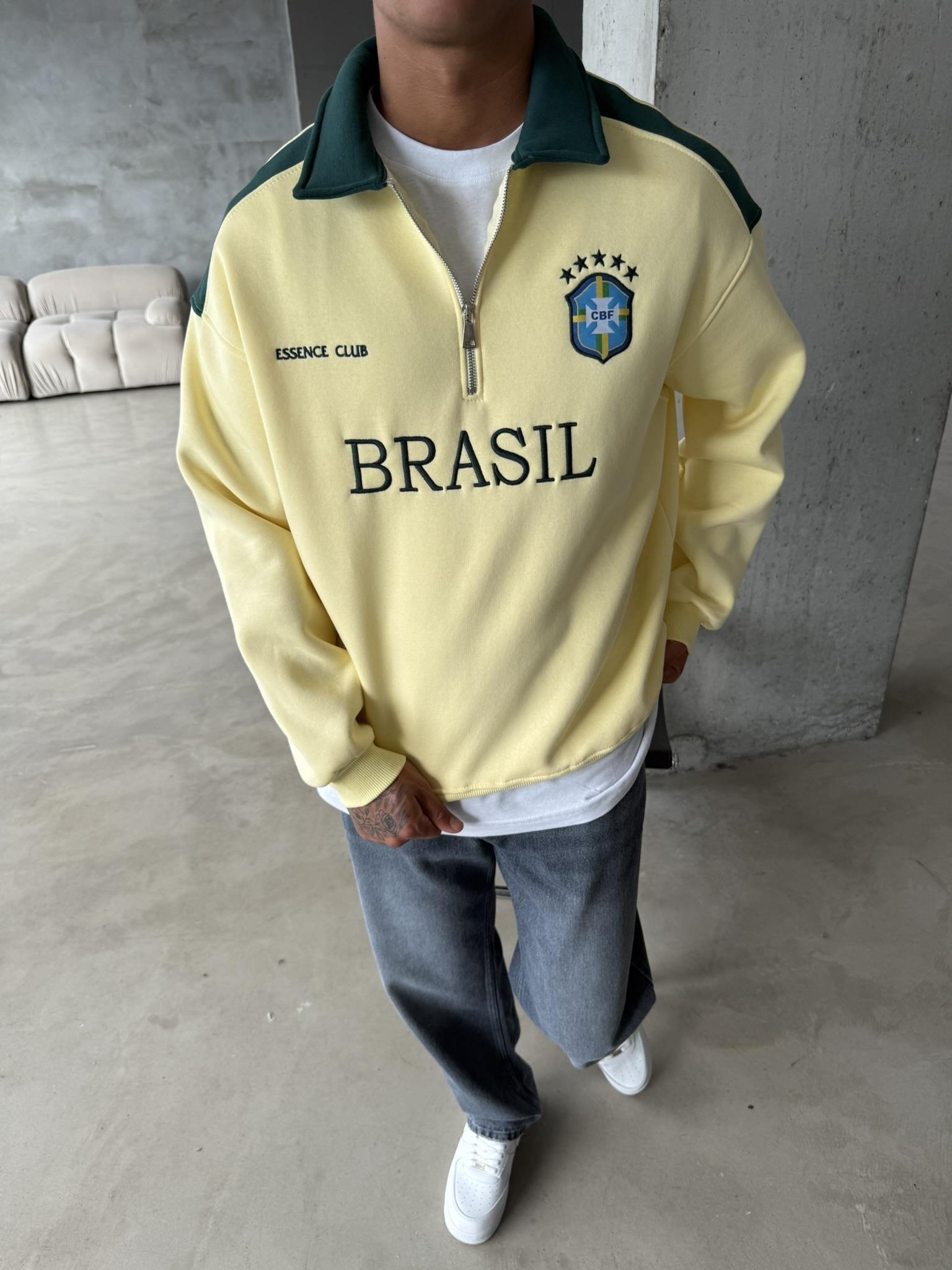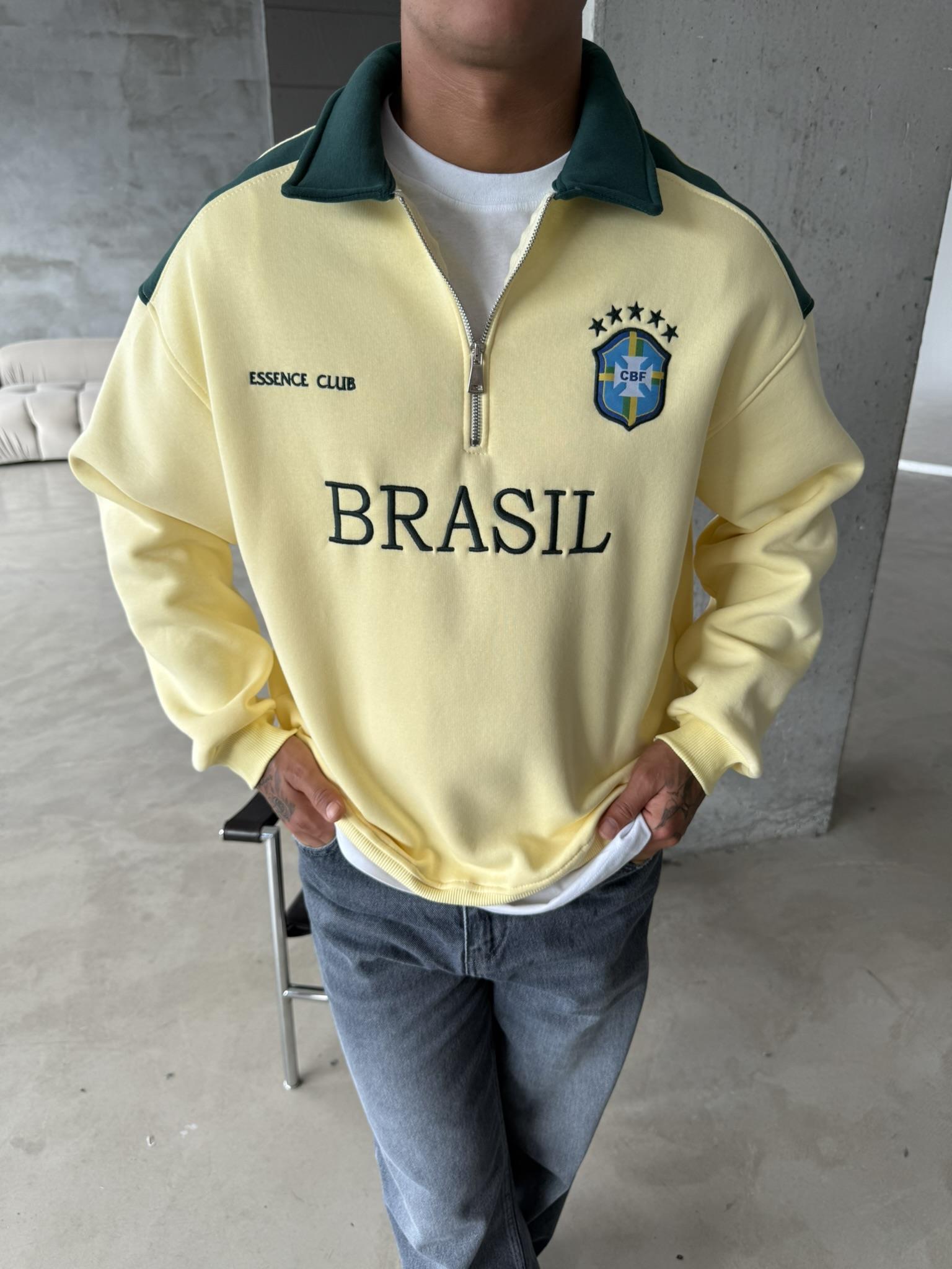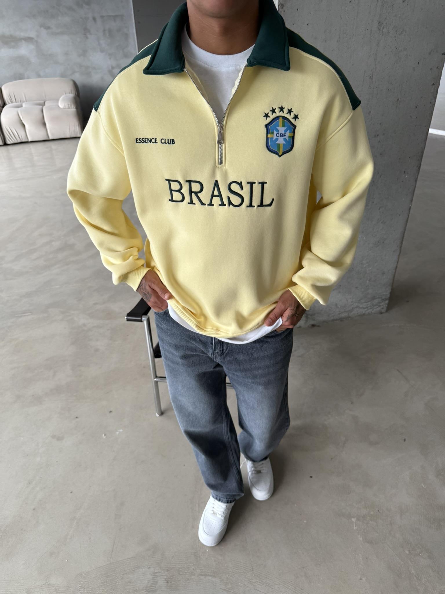 Brasil Yarım Fermuar Sweatshirt - Sarı (SWT.0004-Sarı-S)