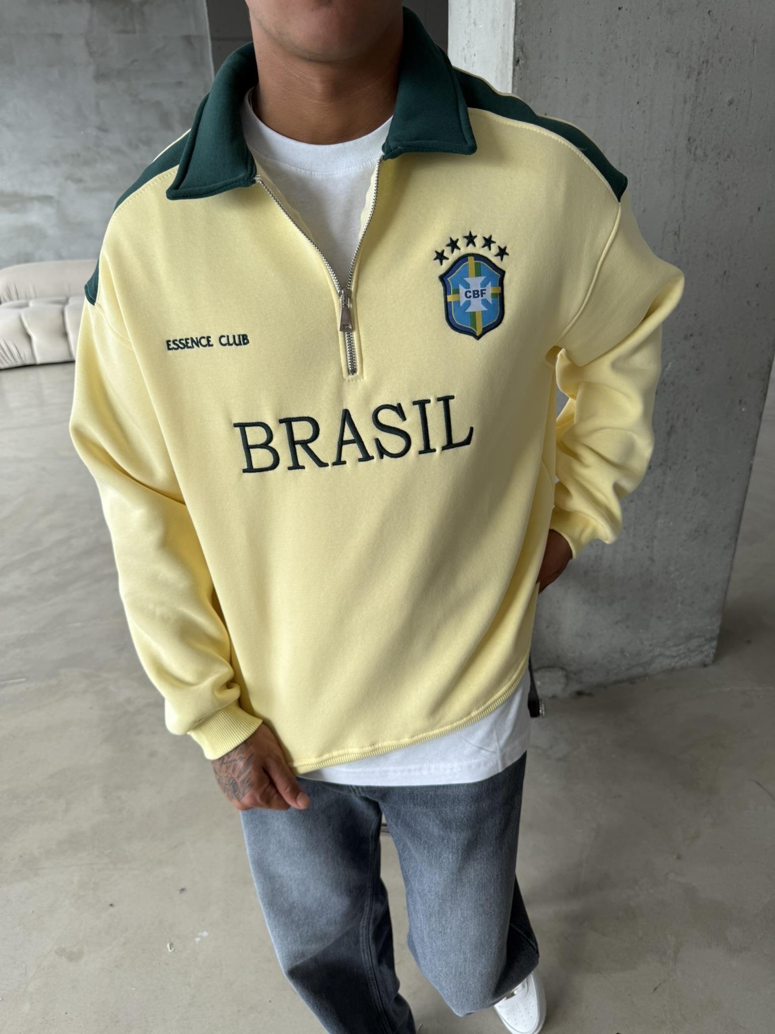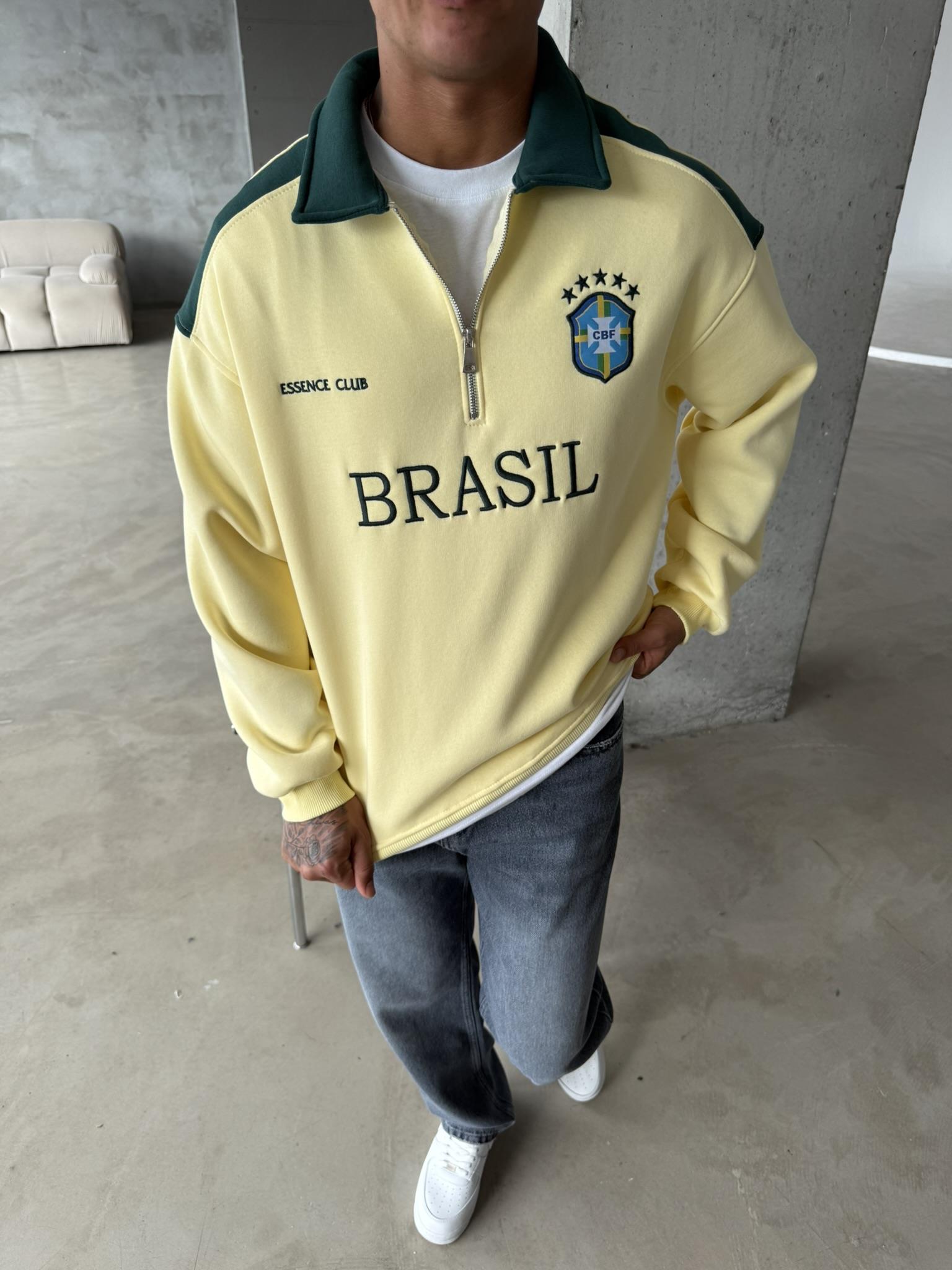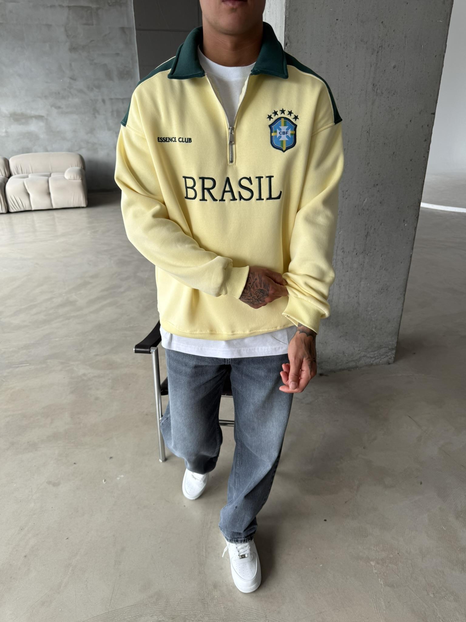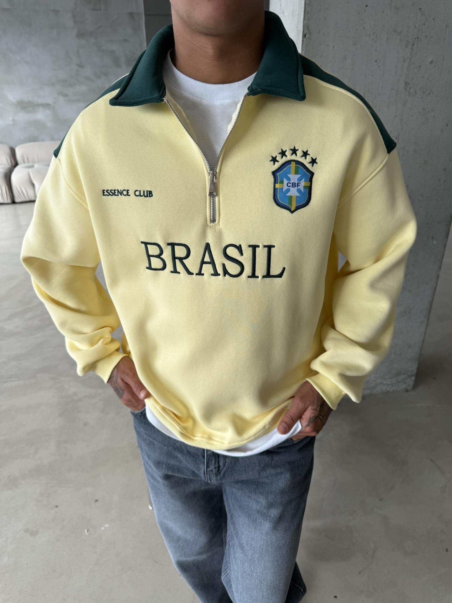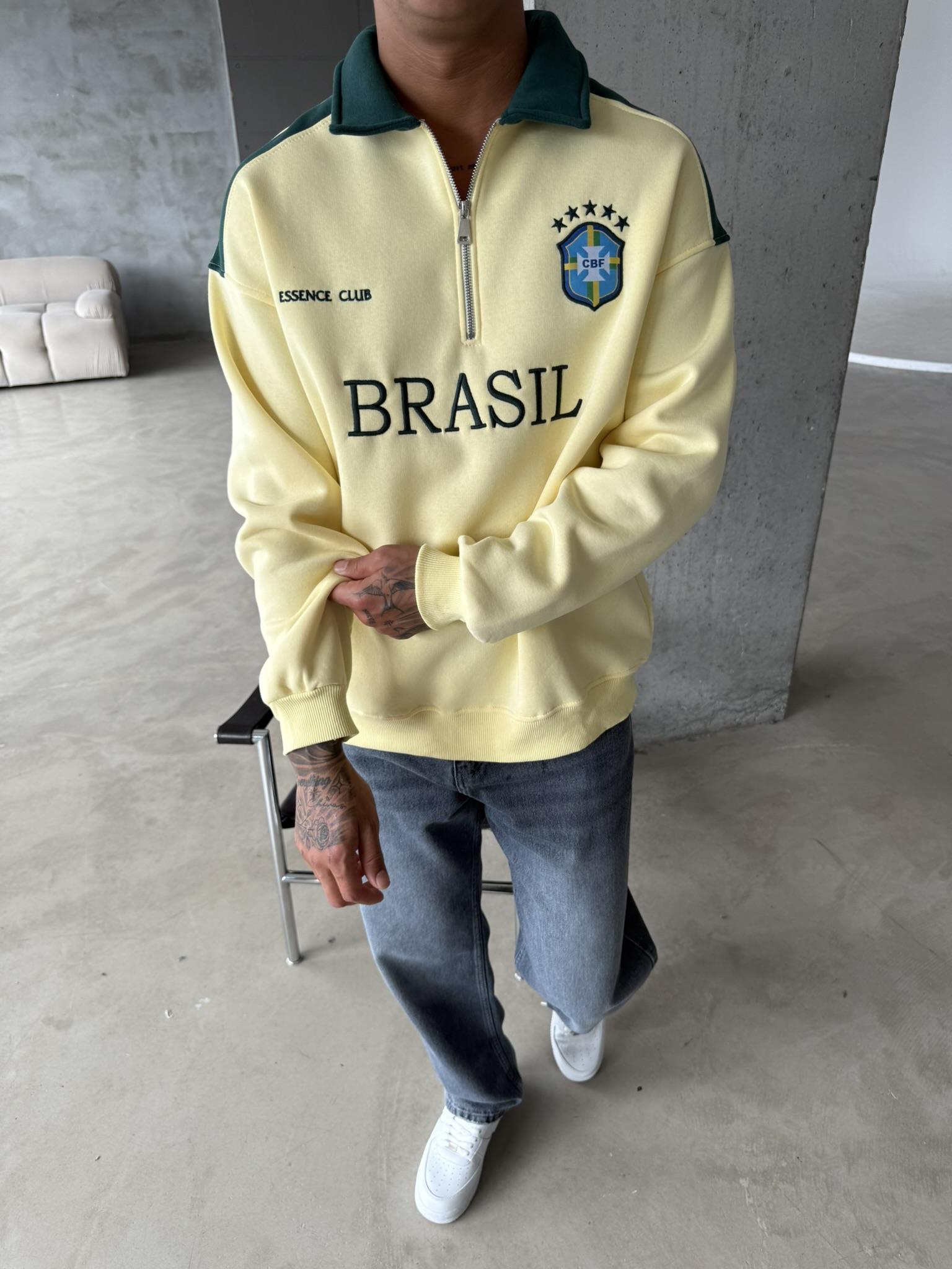Brasil Yarım Fermuar Sweatshirt - Sarı (SWT.0004-Sarı-S)