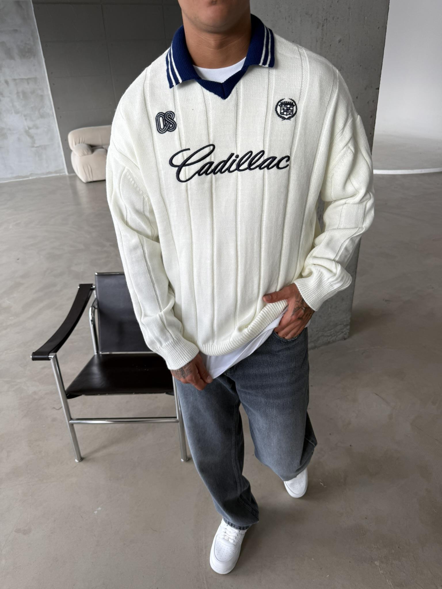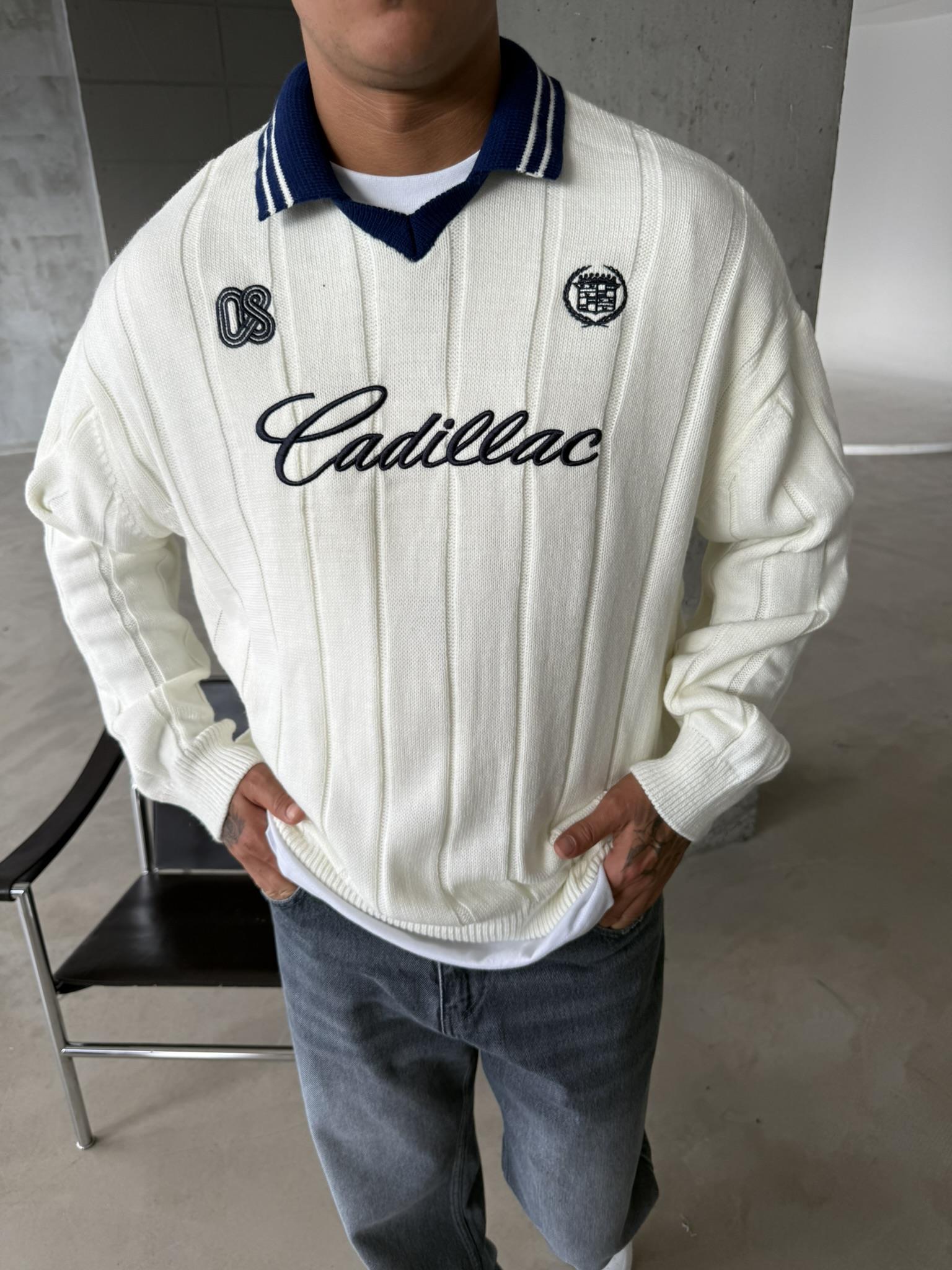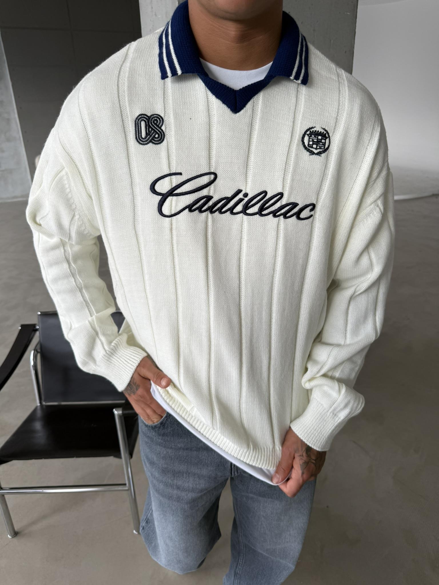 Cadillac Nakışlı Polo Yaka Triko - Beyaz (SWT.0008-Beyaz-S)