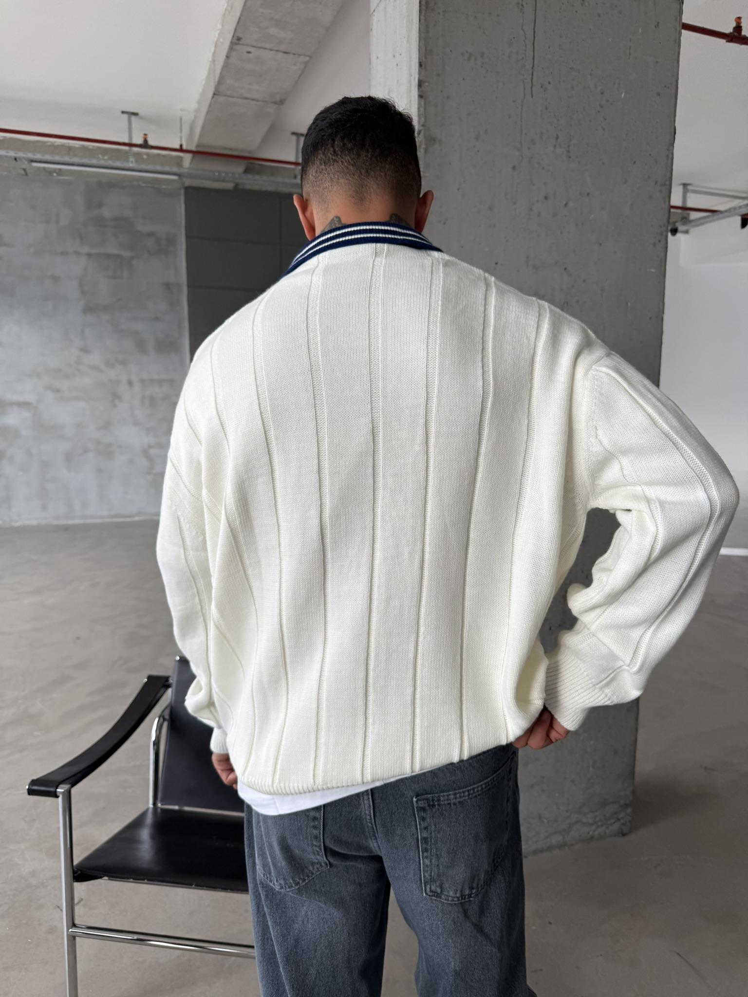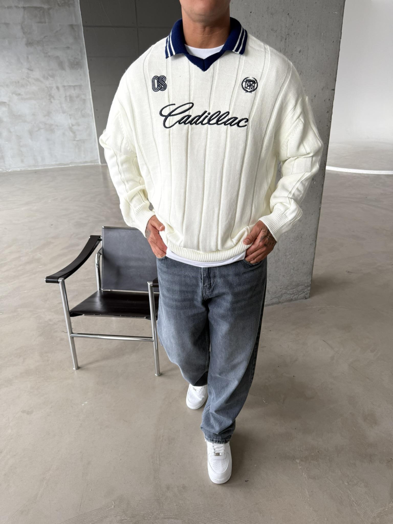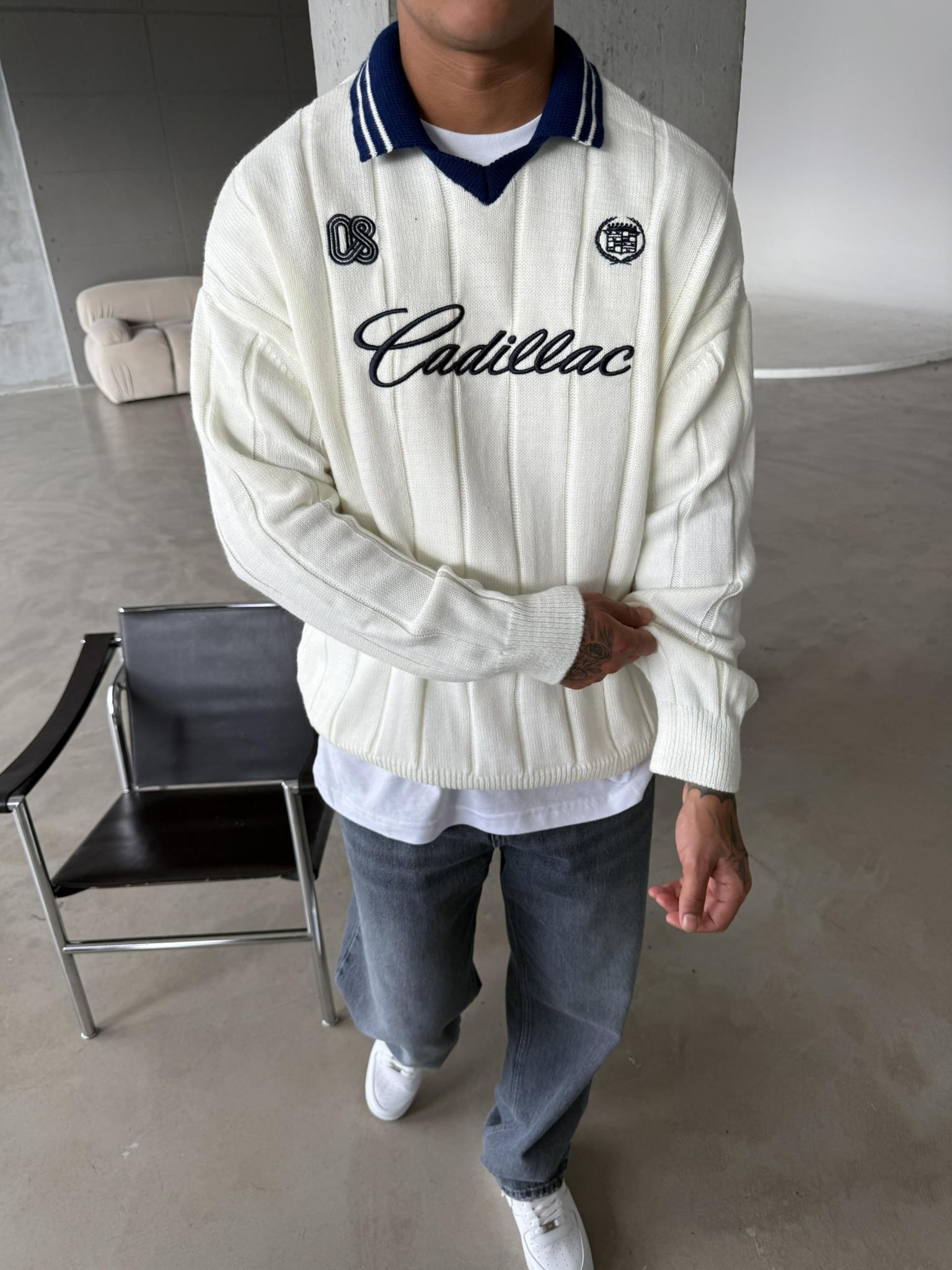 Cadillac Nakışlı Polo Yaka Triko - Beyaz (SWT.0008-Beyaz-S)