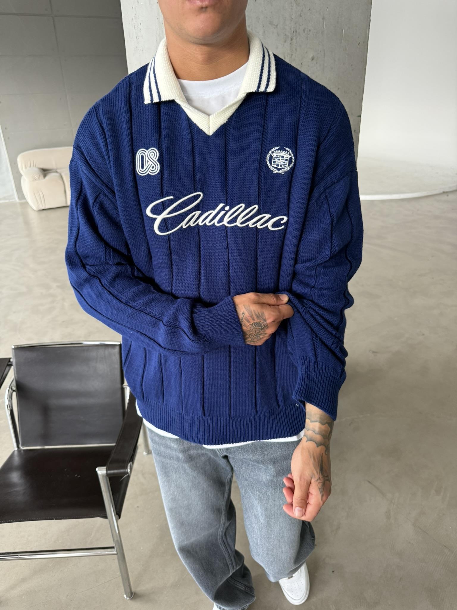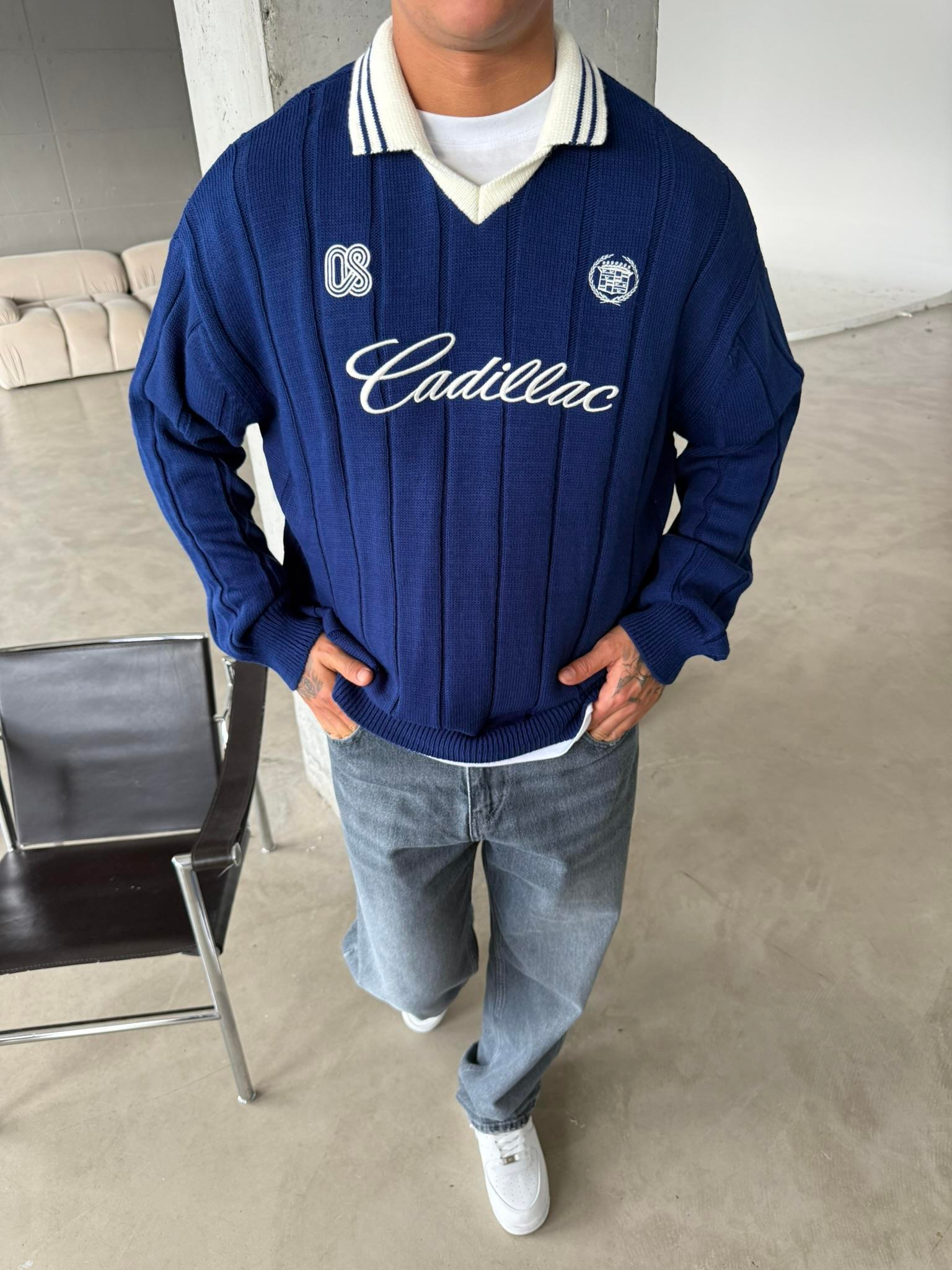 Cadillac Nakışlı Polo Yaka Triko - Lacivert (SWT.0008-Lacivert-S)