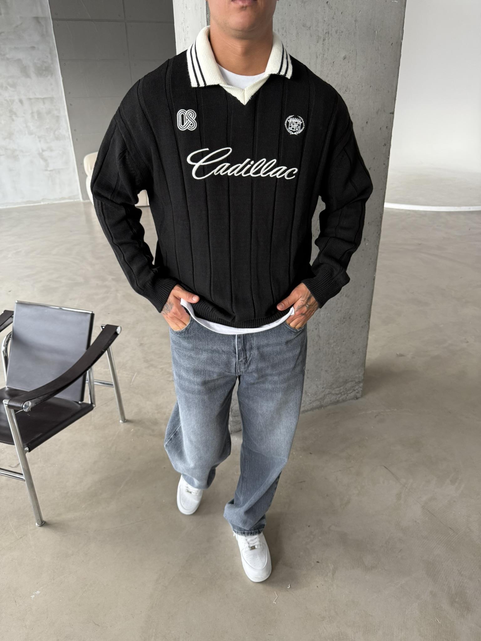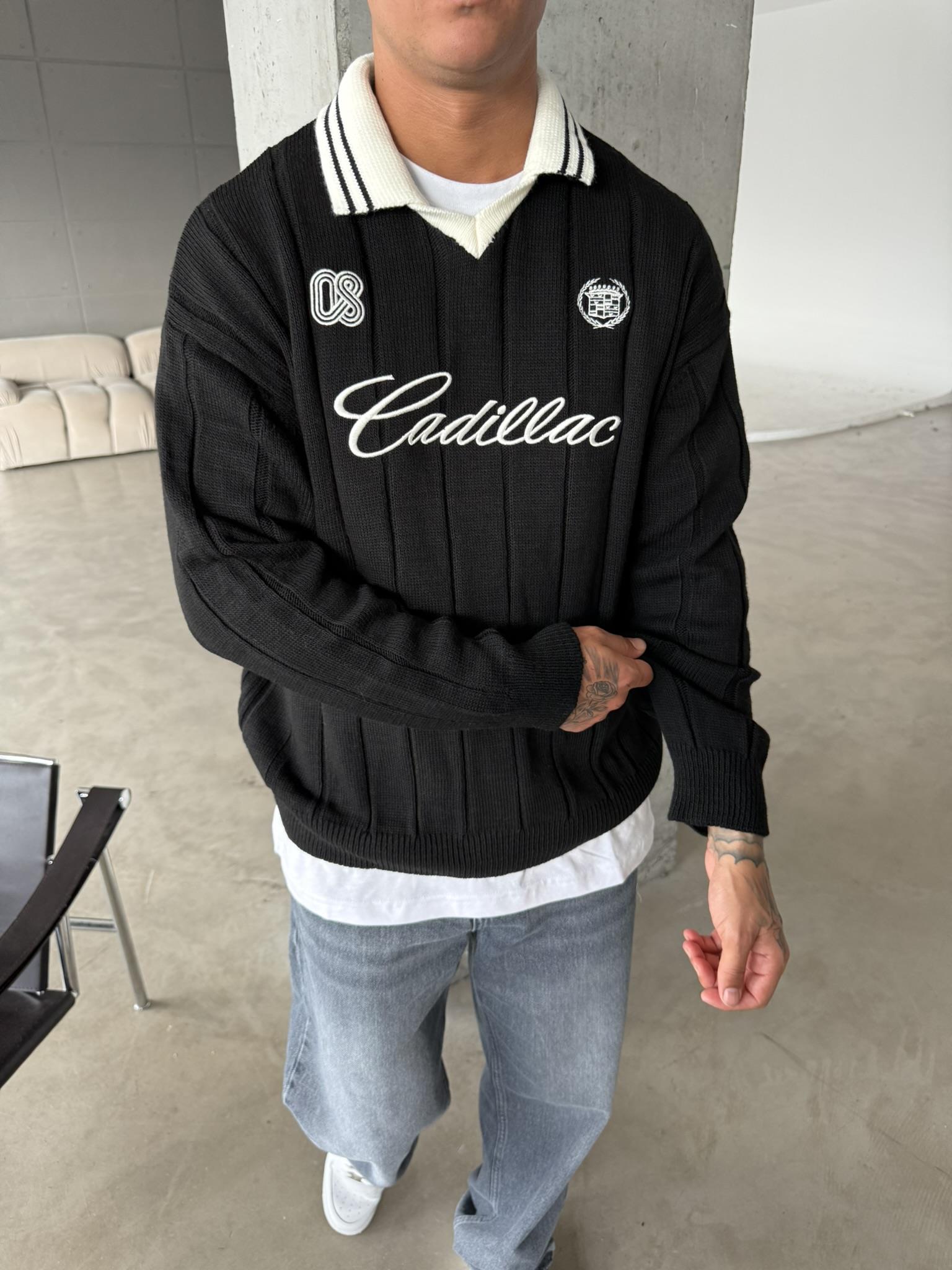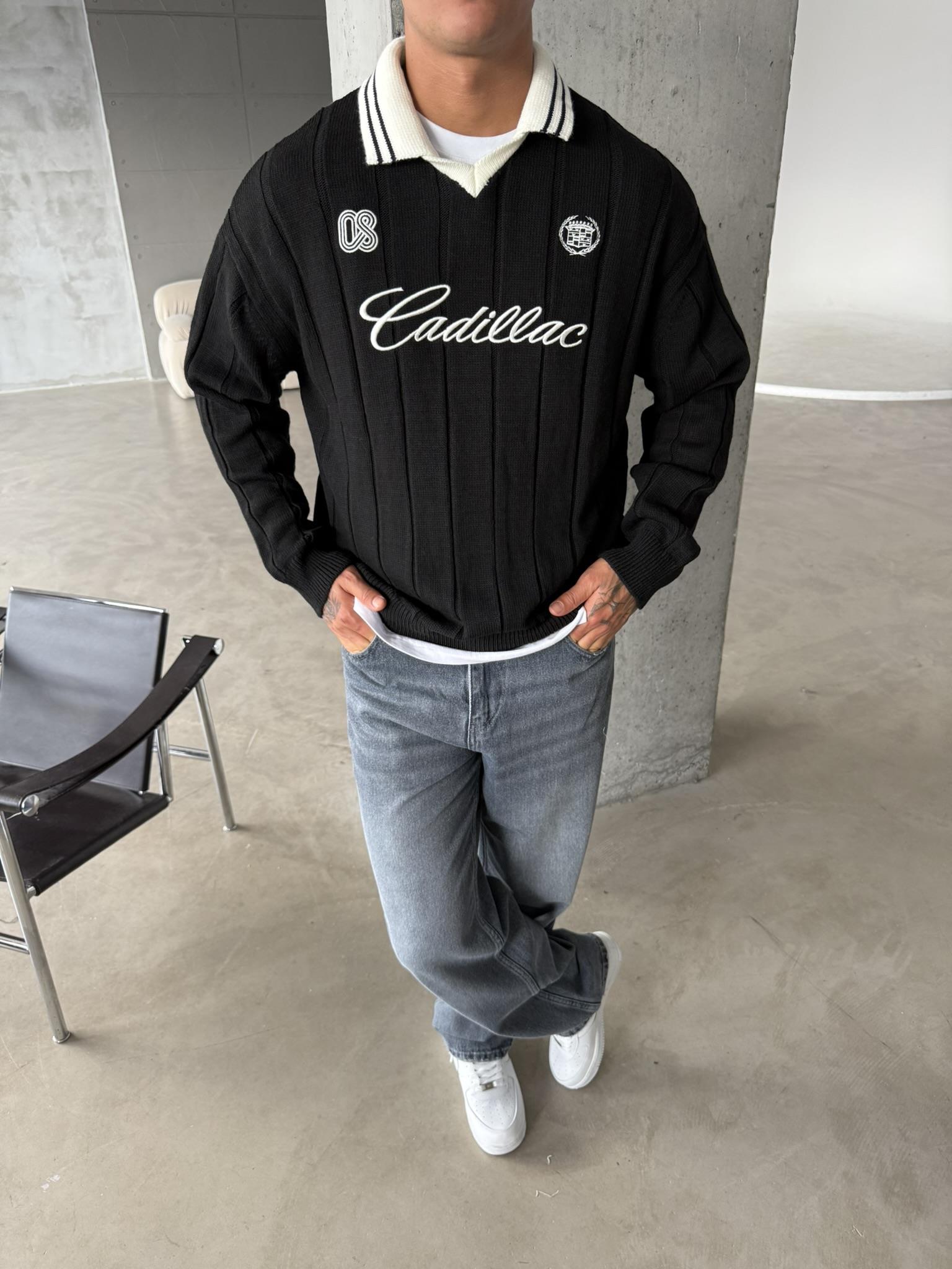 Cadillac Nakışlı Polo Yaka Triko - Siyah (SWT.0008-Siyah-S)
