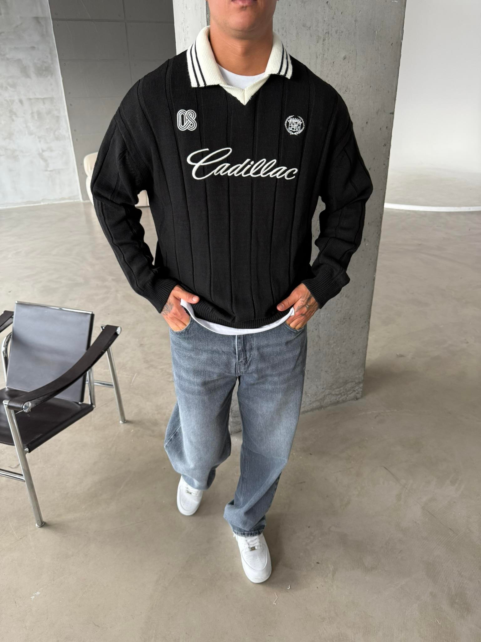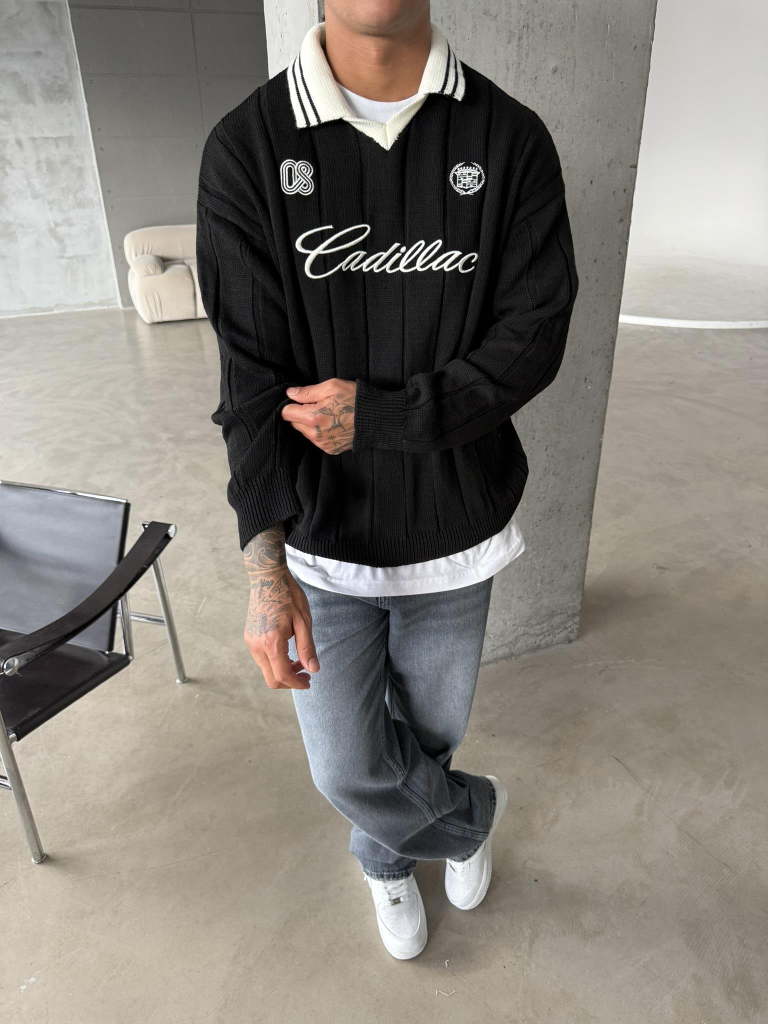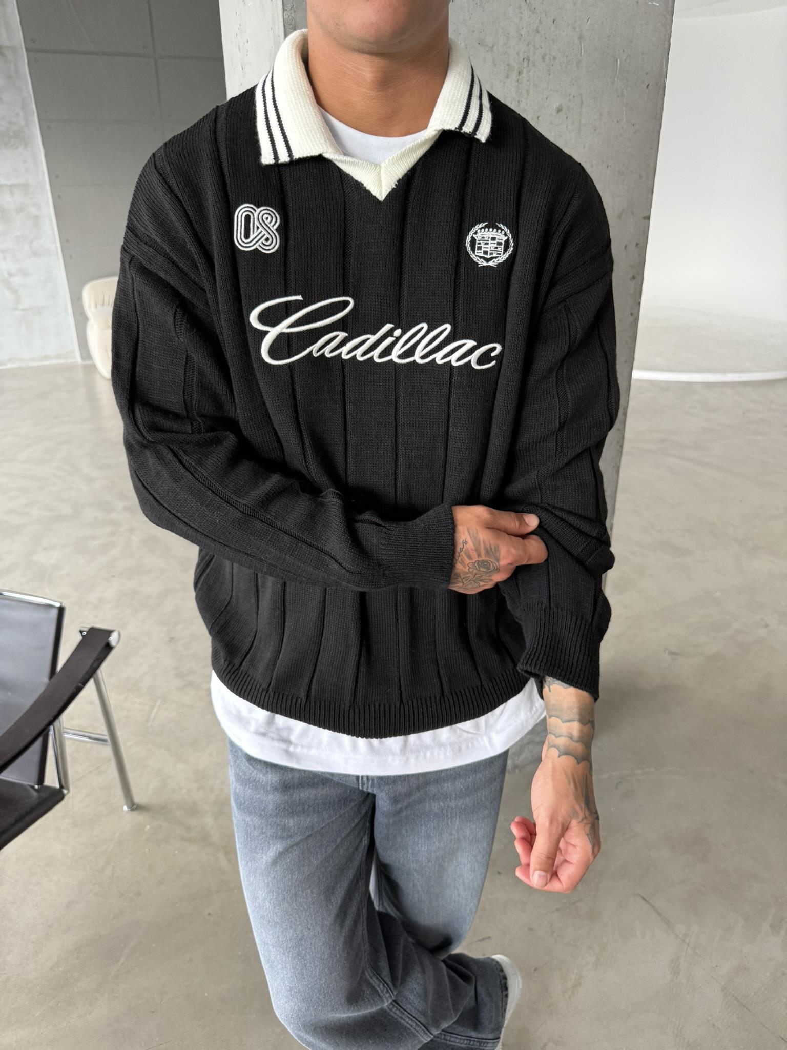 Cadillac Nakışlı Polo Yaka Triko - Siyah (SWT.0008-Siyah-S)