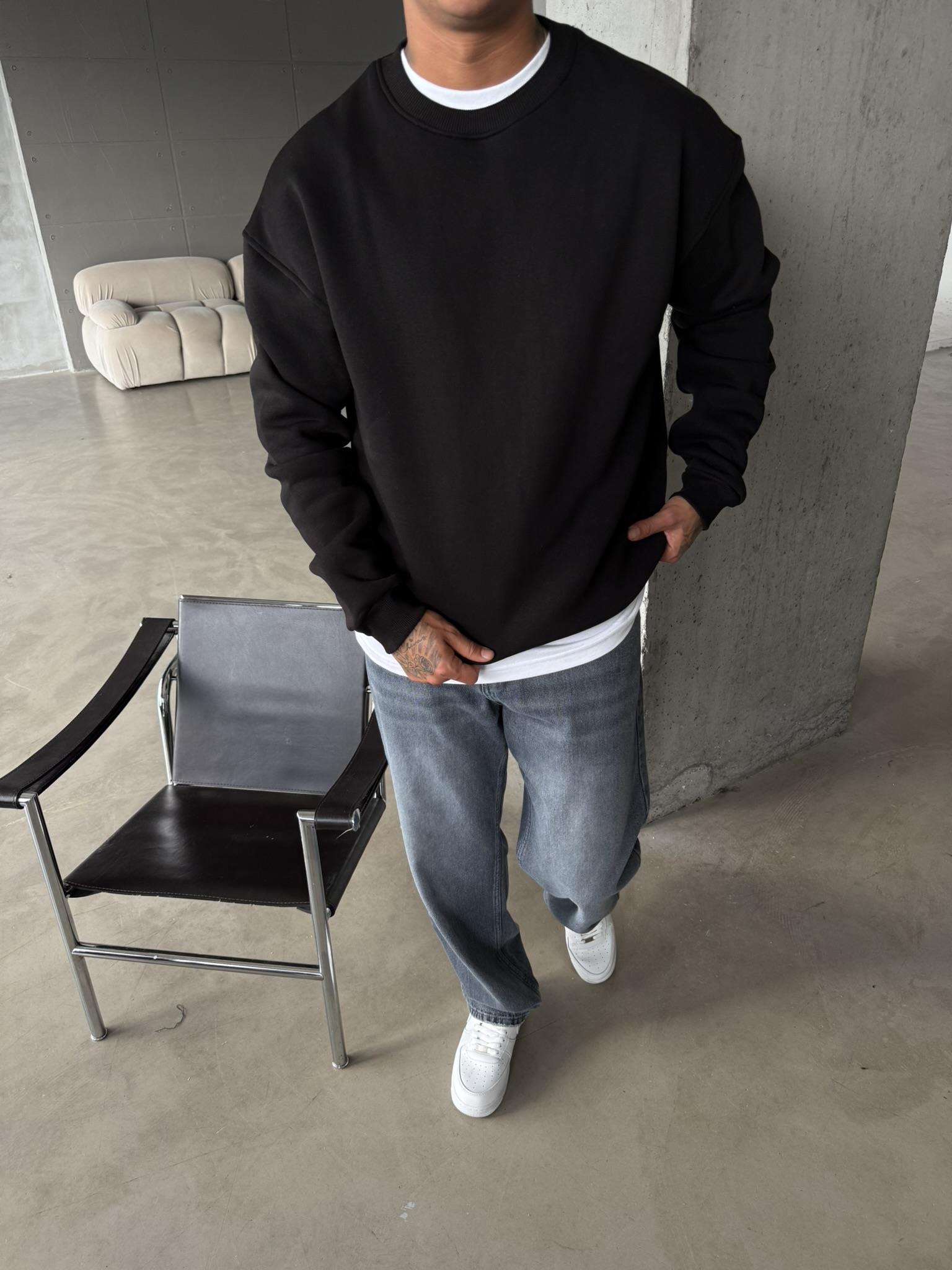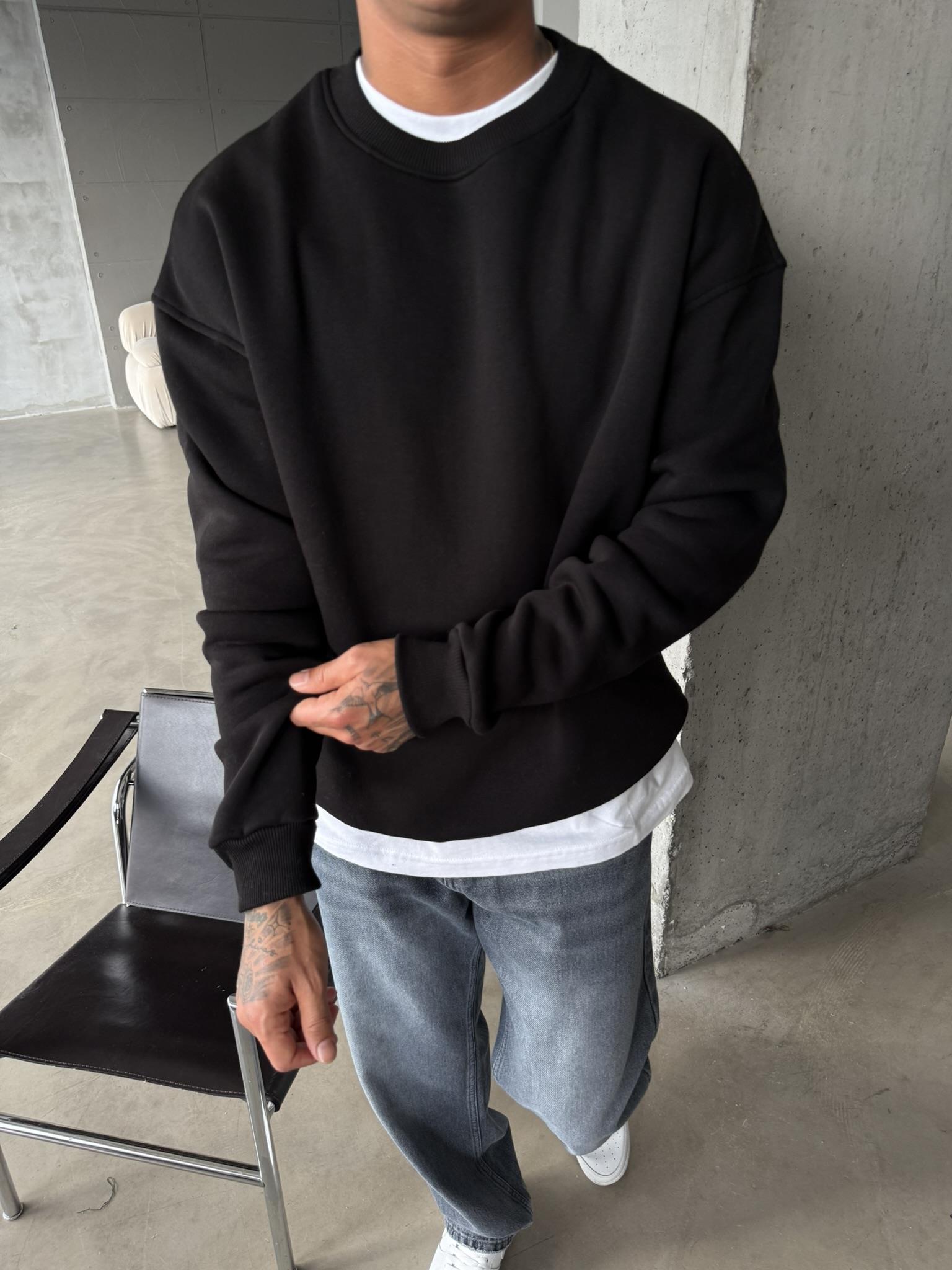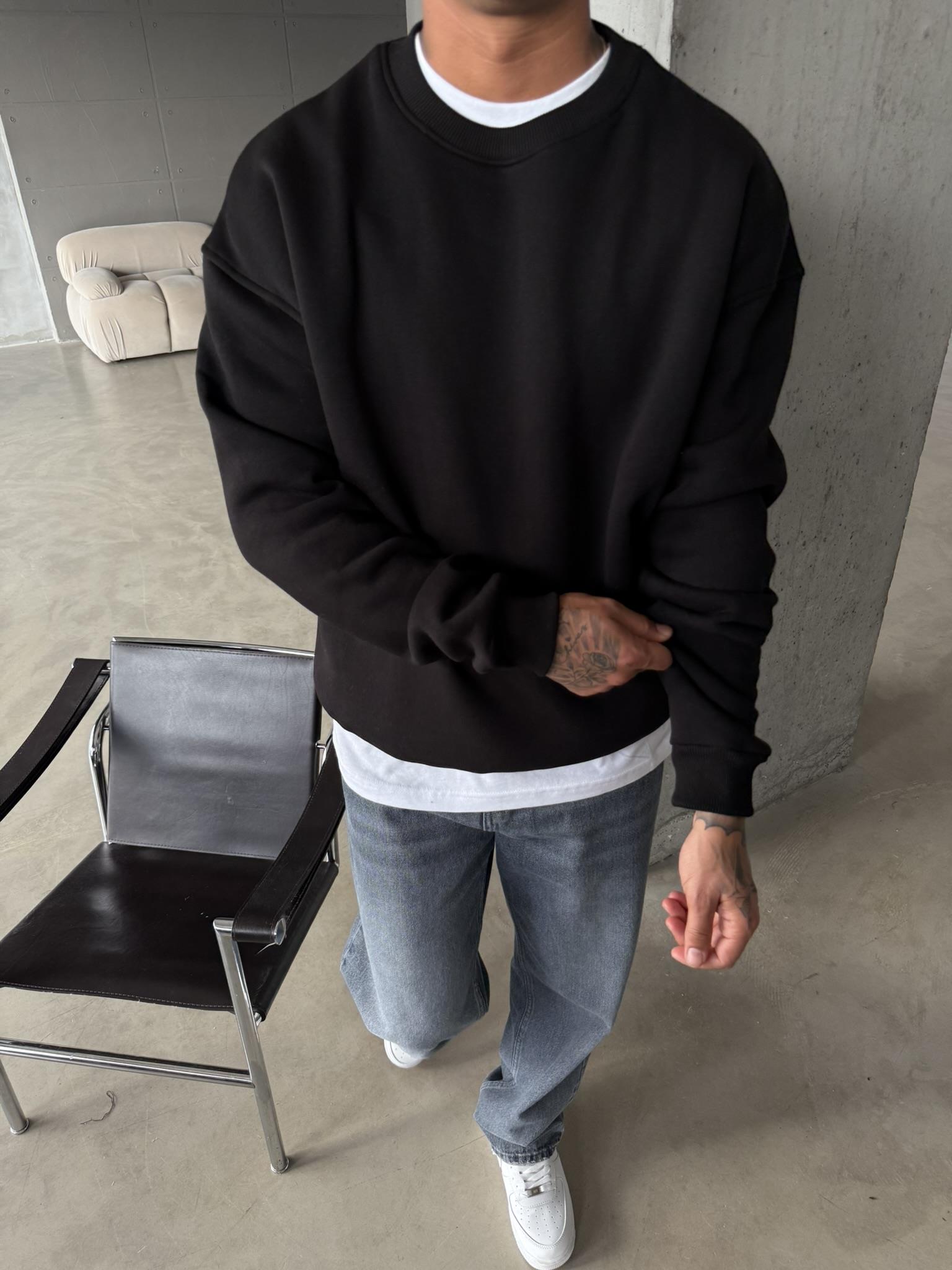 Düz Basic Bisiklet Yaka Sweat - Siyah (SWT.0021-Siyah-S)