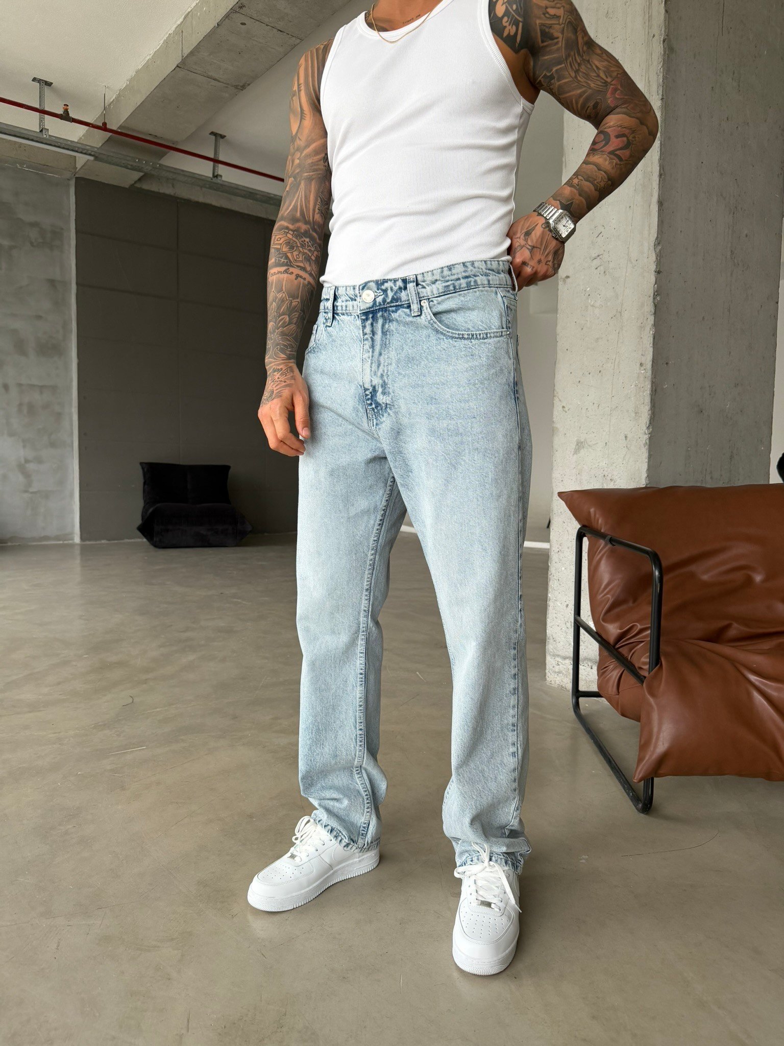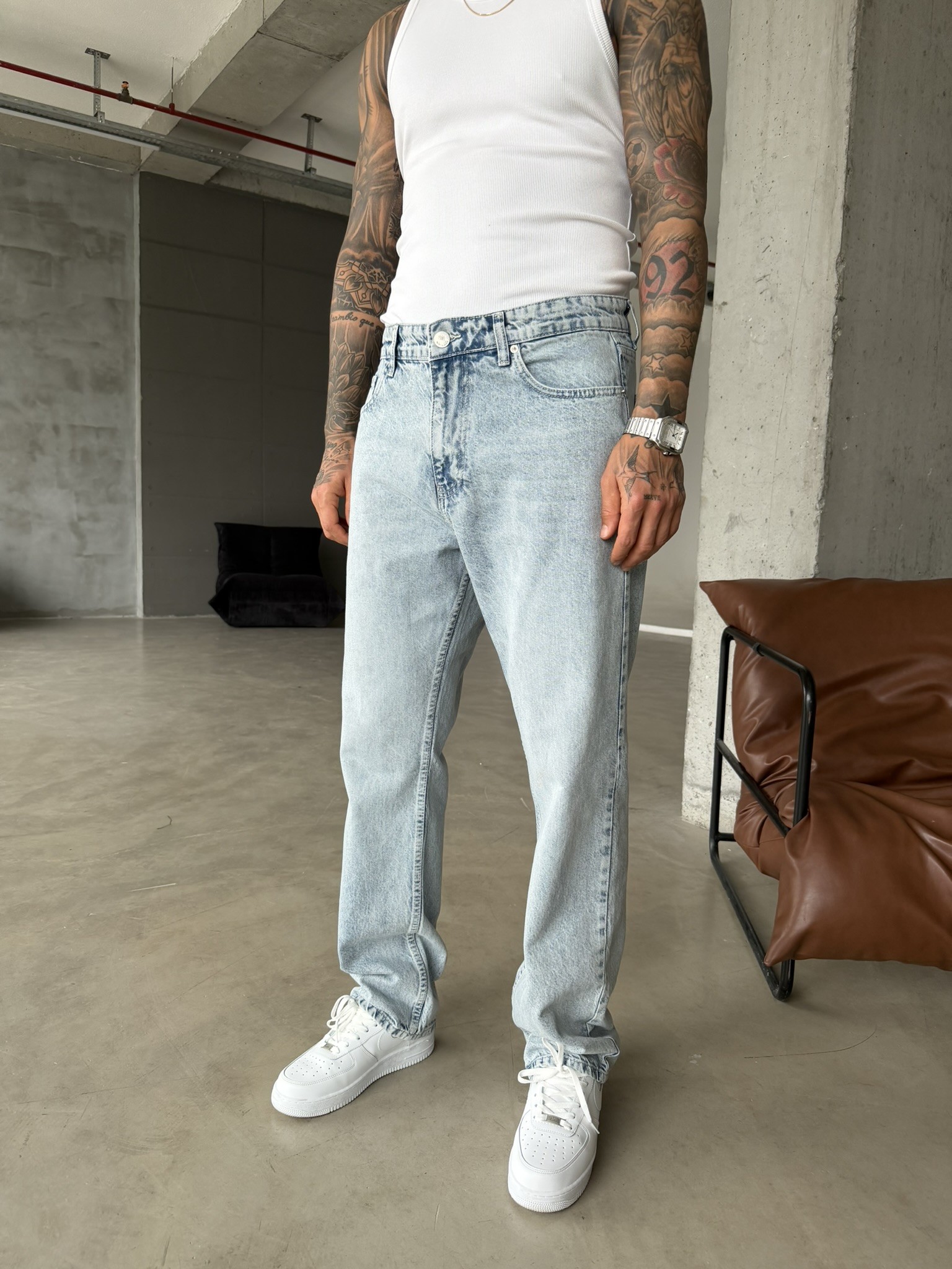 Düz Basic Detaylı Baggy Fit Pantolon - Buz Mavi (PNT.0118-Buz Mavi-29)