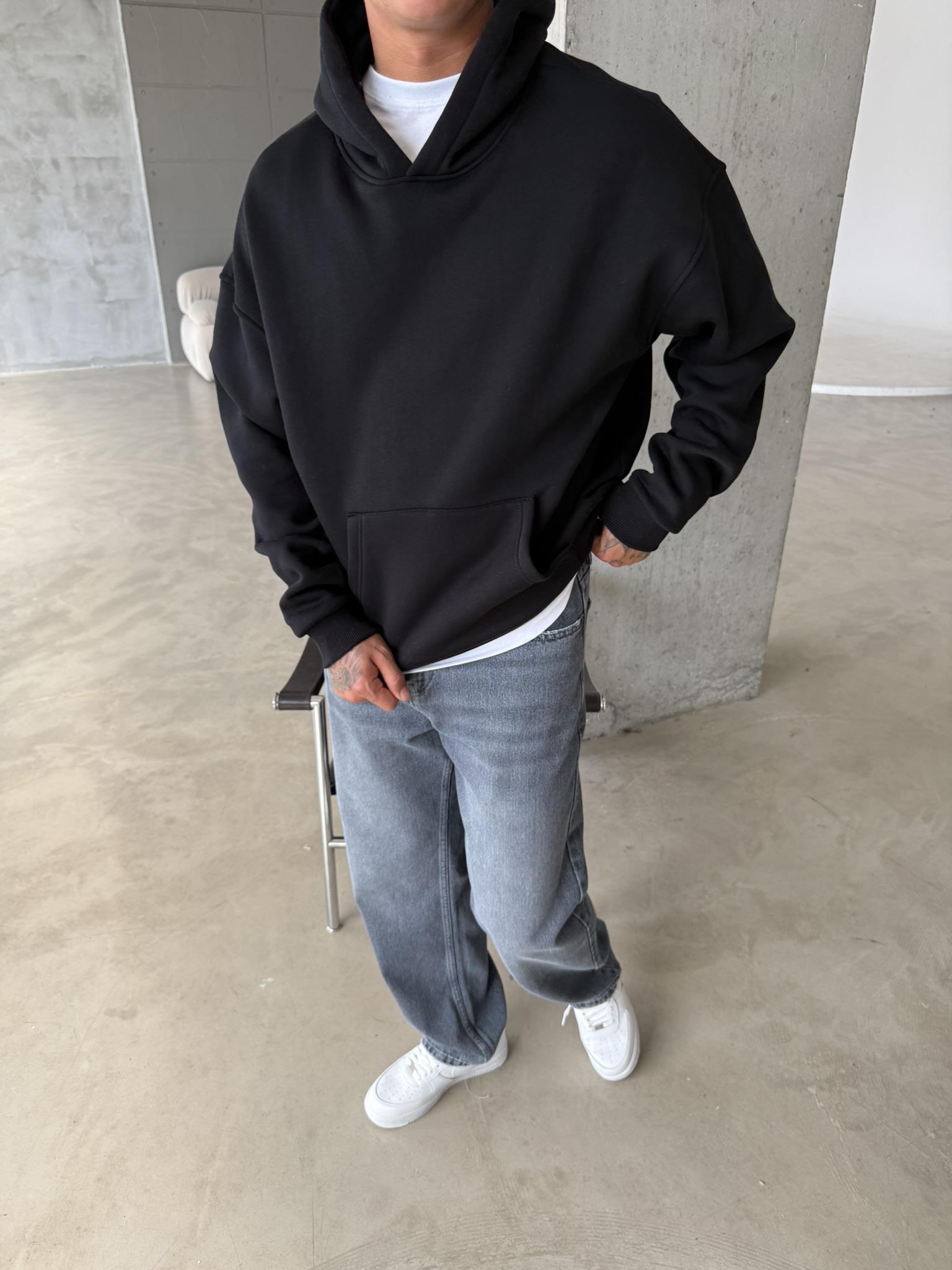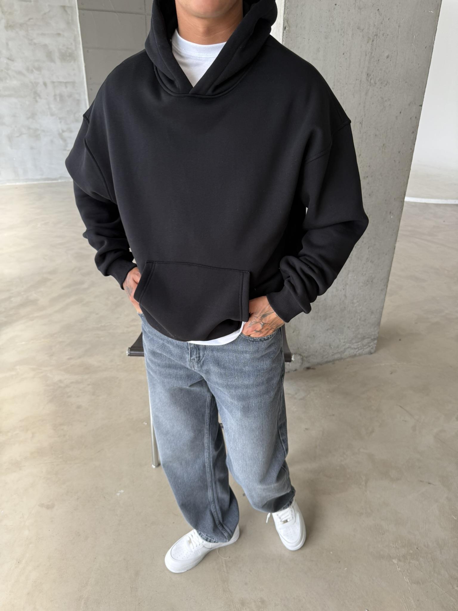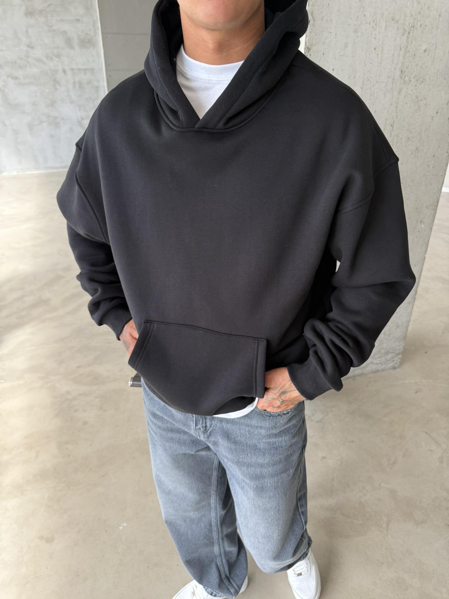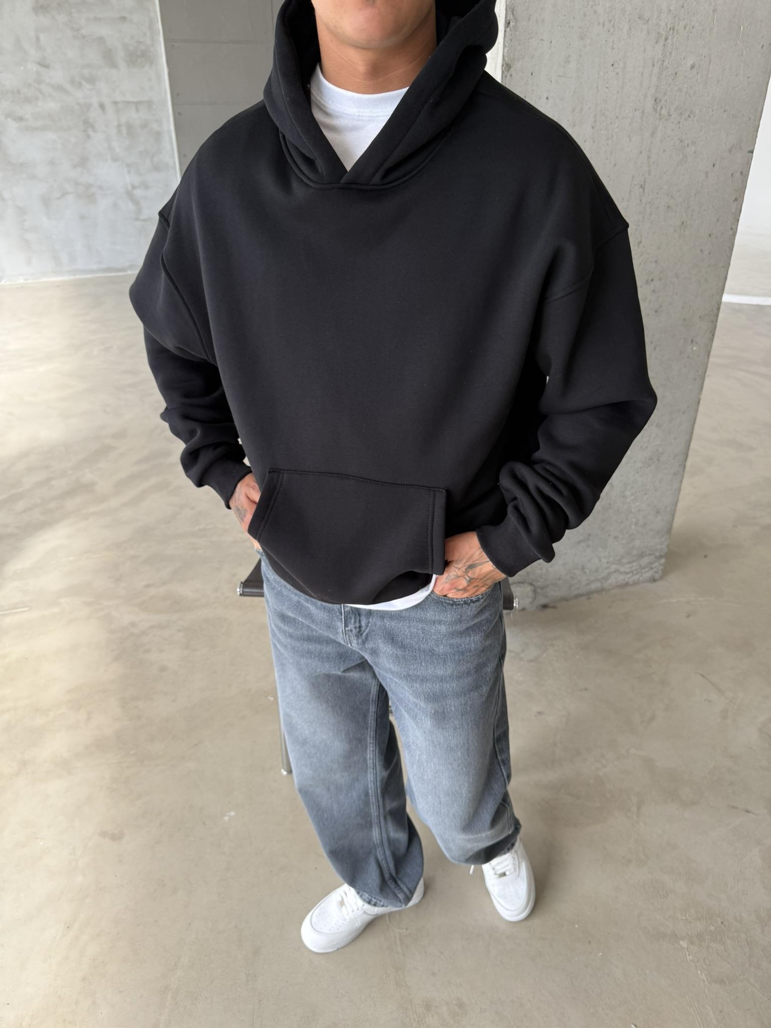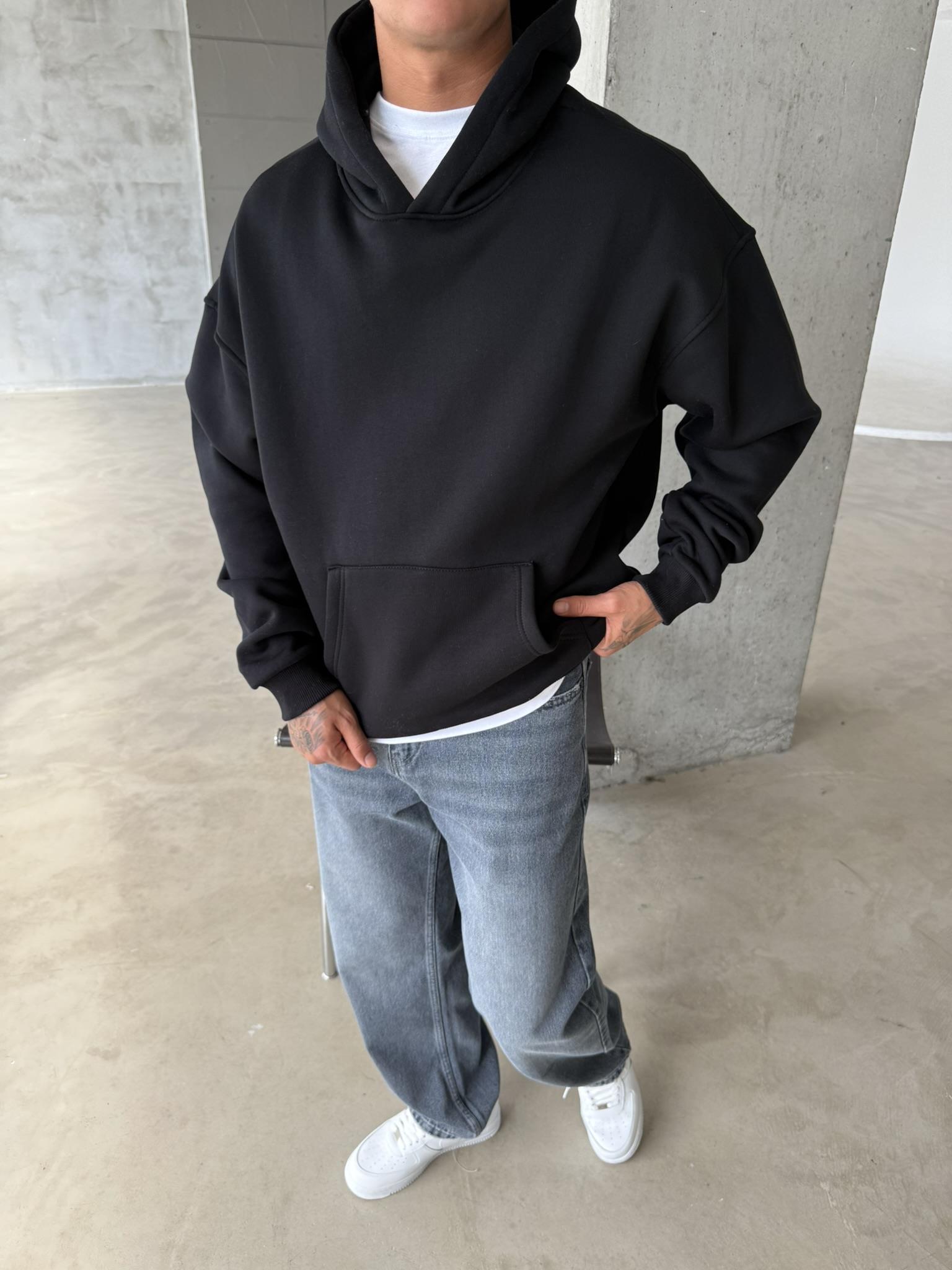 Düz Basic Kapüşonlu Sweatshirt - Siyah (SWT.0019-Siyah-S)