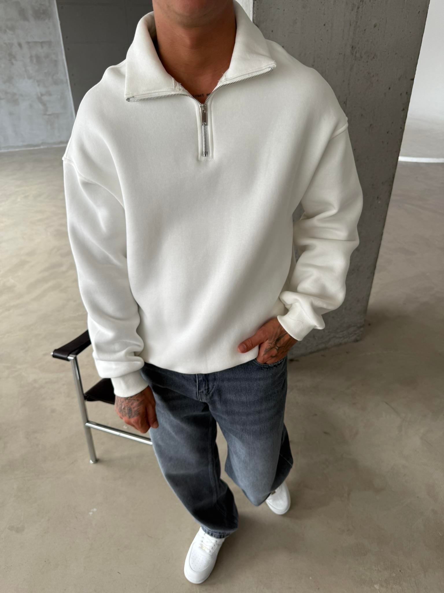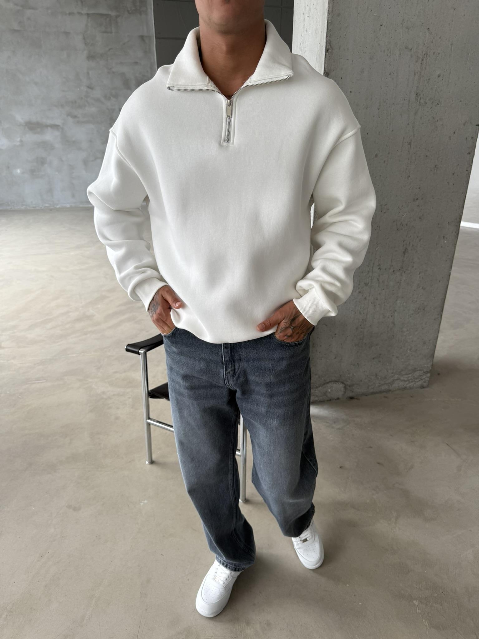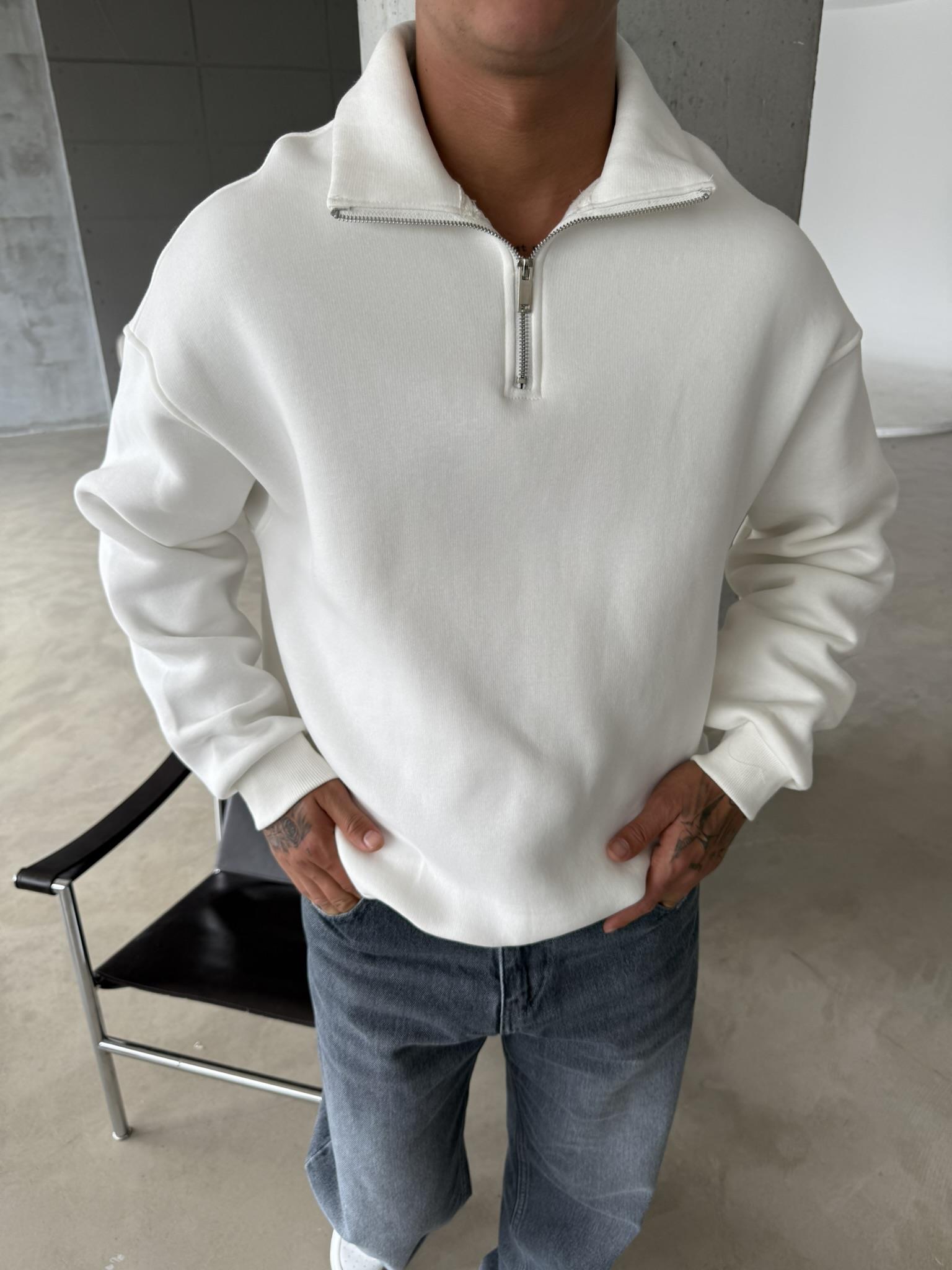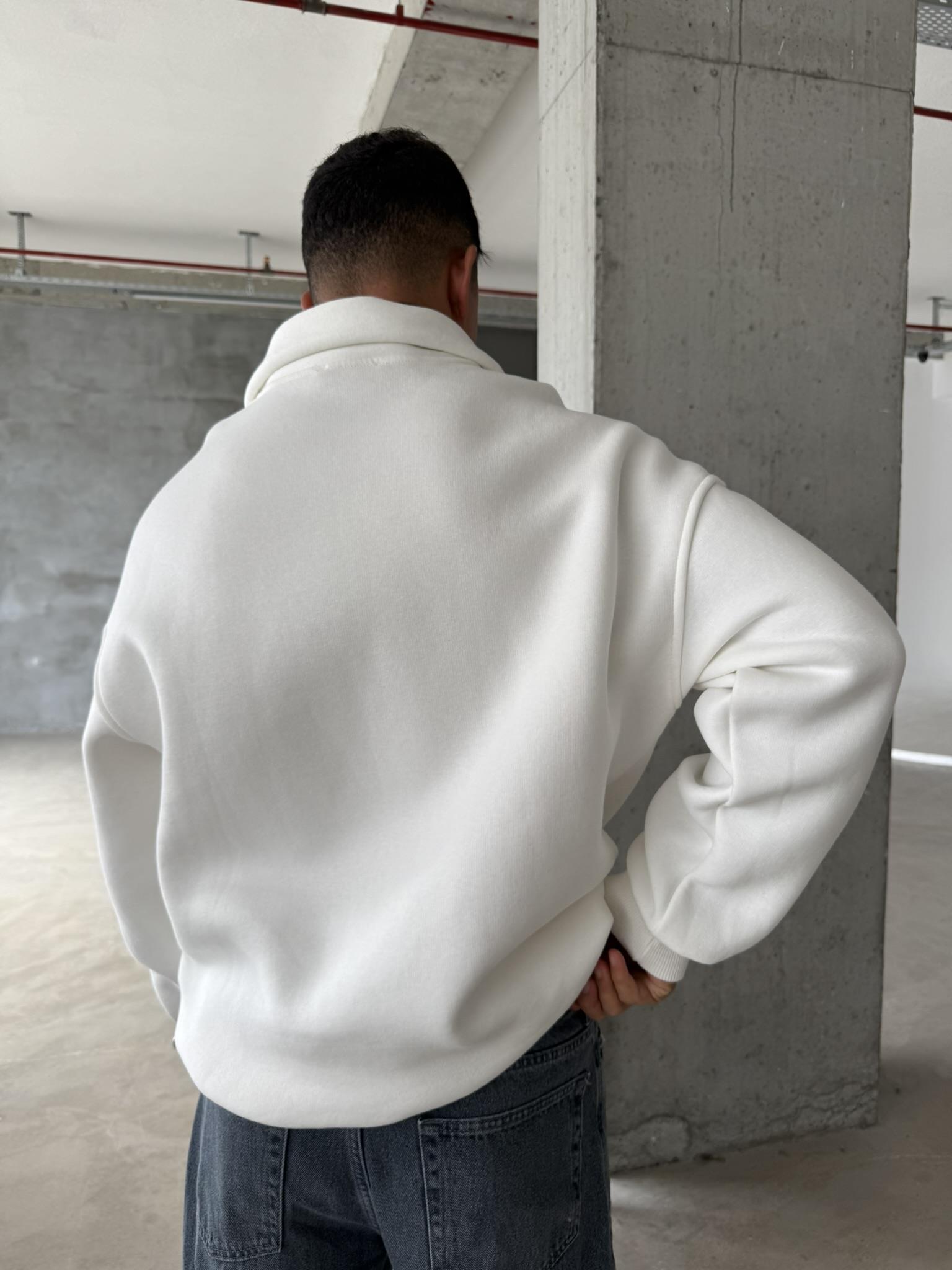 Düz Basic Yarım Fermuarlı Zip Sweat - Beyaz (SWT.0020-Beyaz-S)