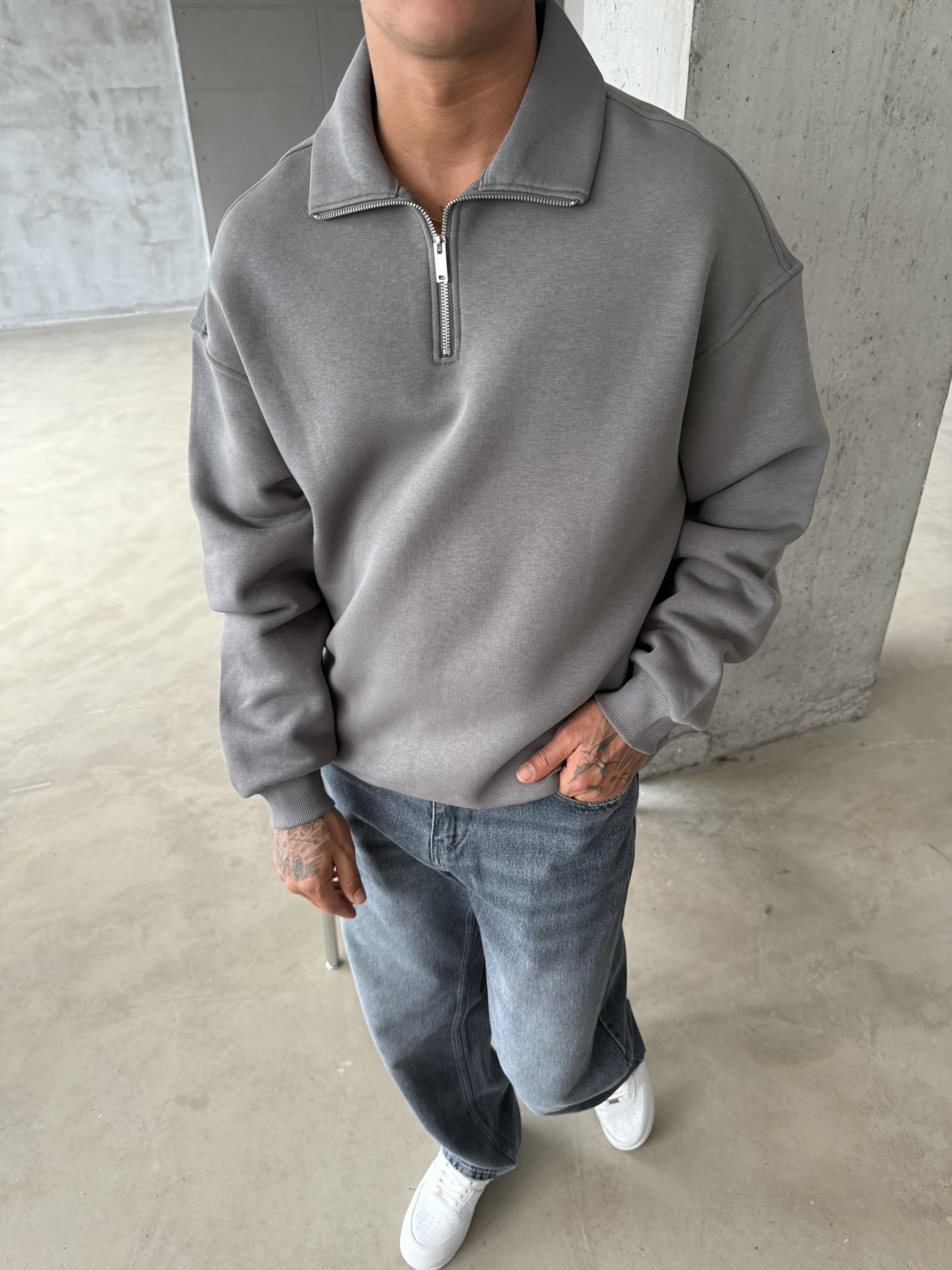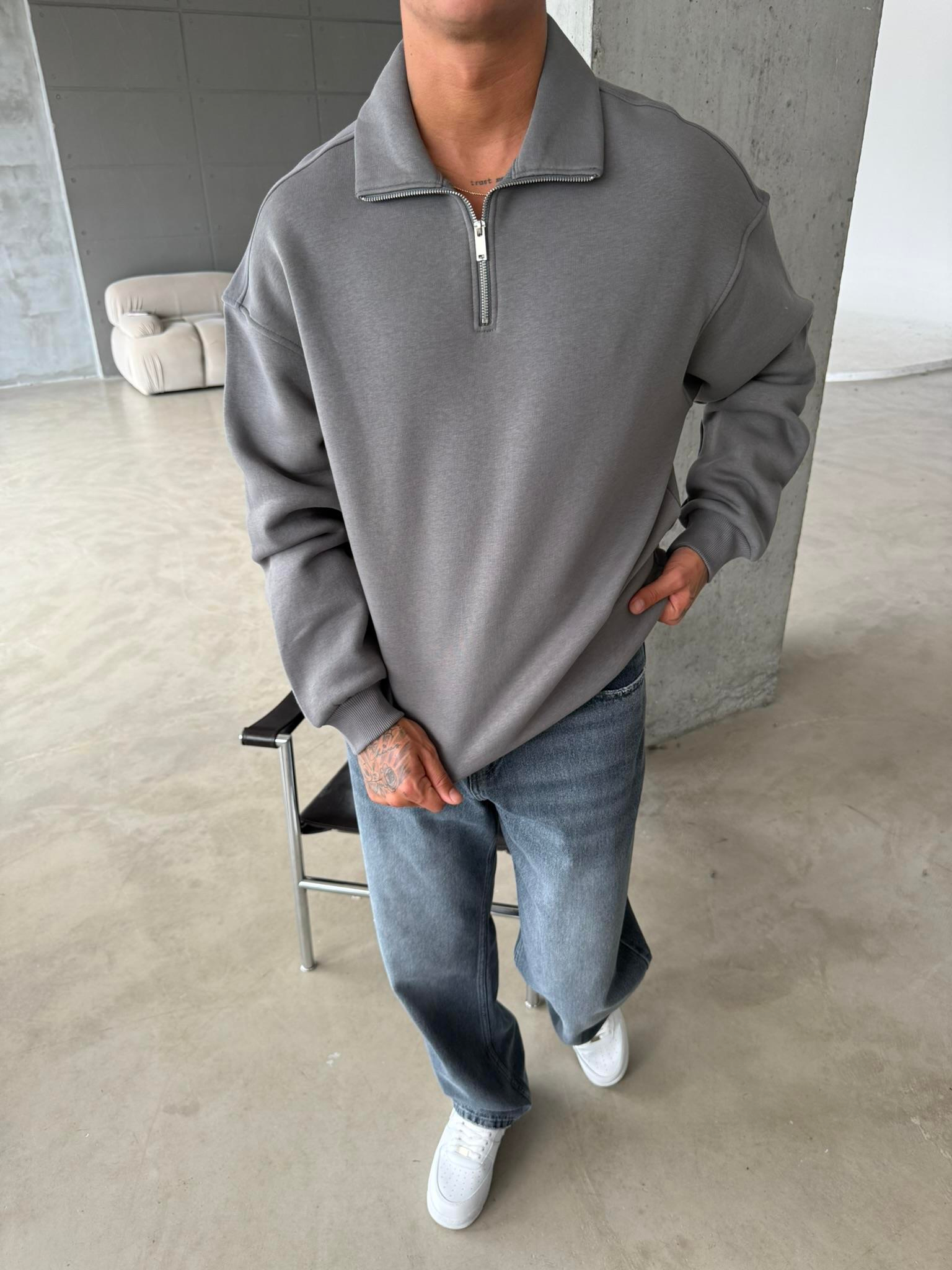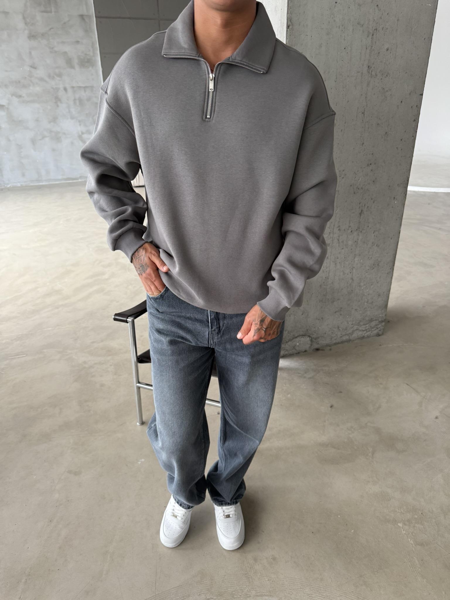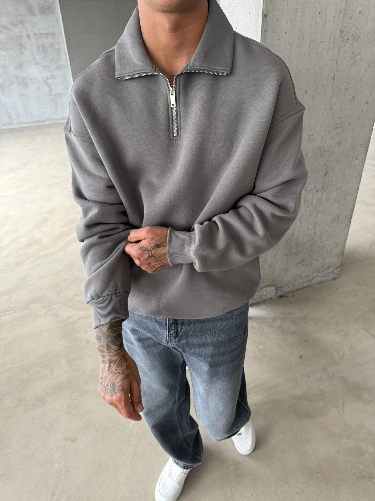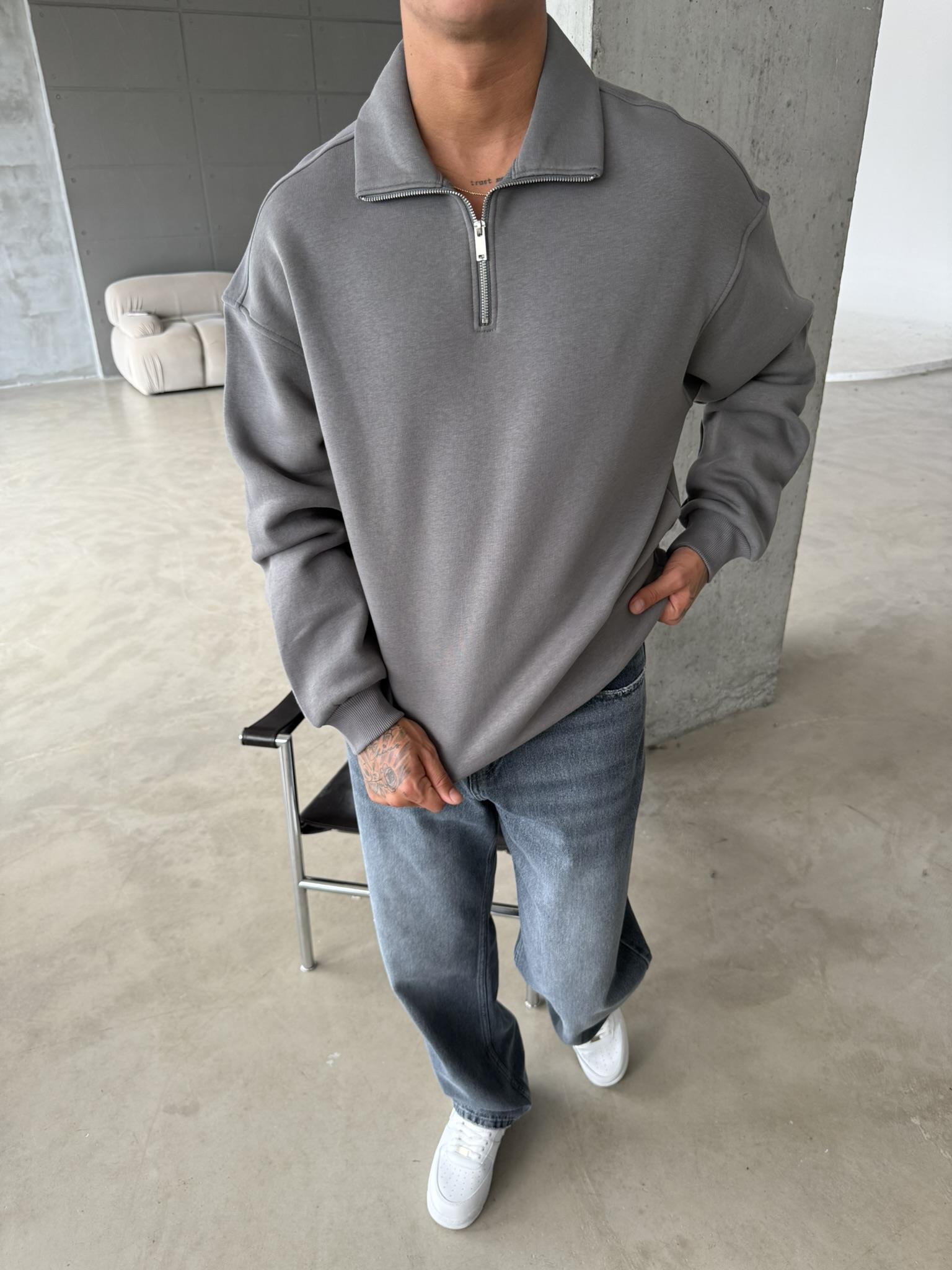 Düz Basic Yarım Fermuarlı Zip Sweat - Füme (SWT.0020-Füme-S)