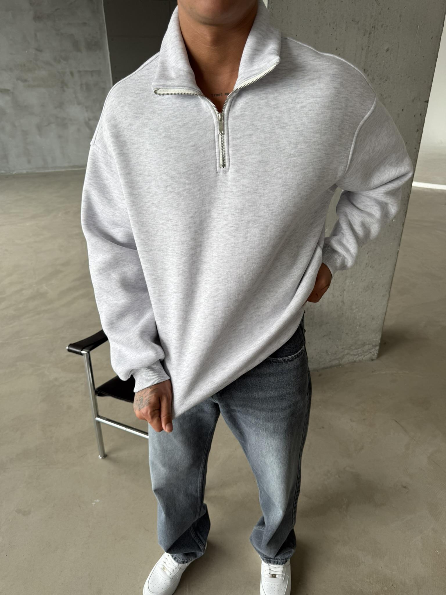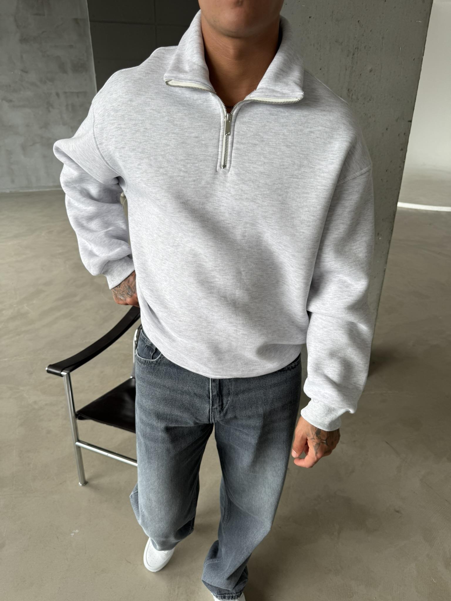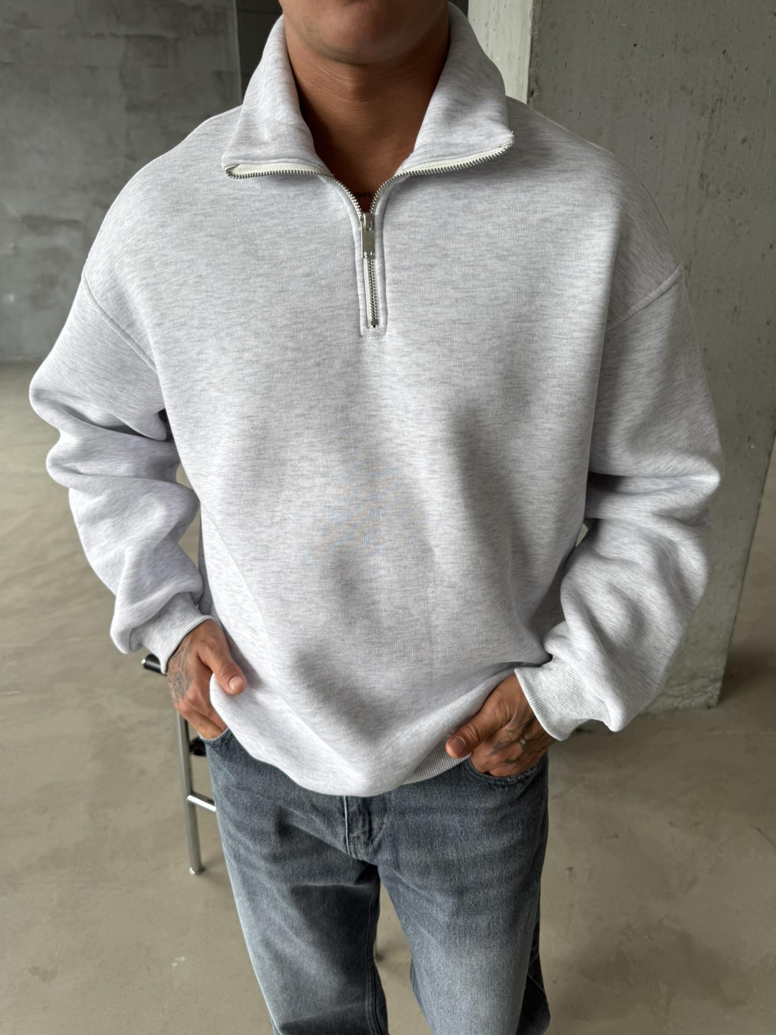 Düz Basic Yarım Fermuarlı Zip Sweat - Karmelanj (SWT.0020-Karmelanj-S)